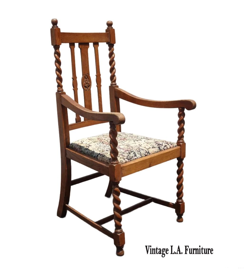 Vintage French Country Brown Barley Twist Arm Chair ~ Floral Seat
