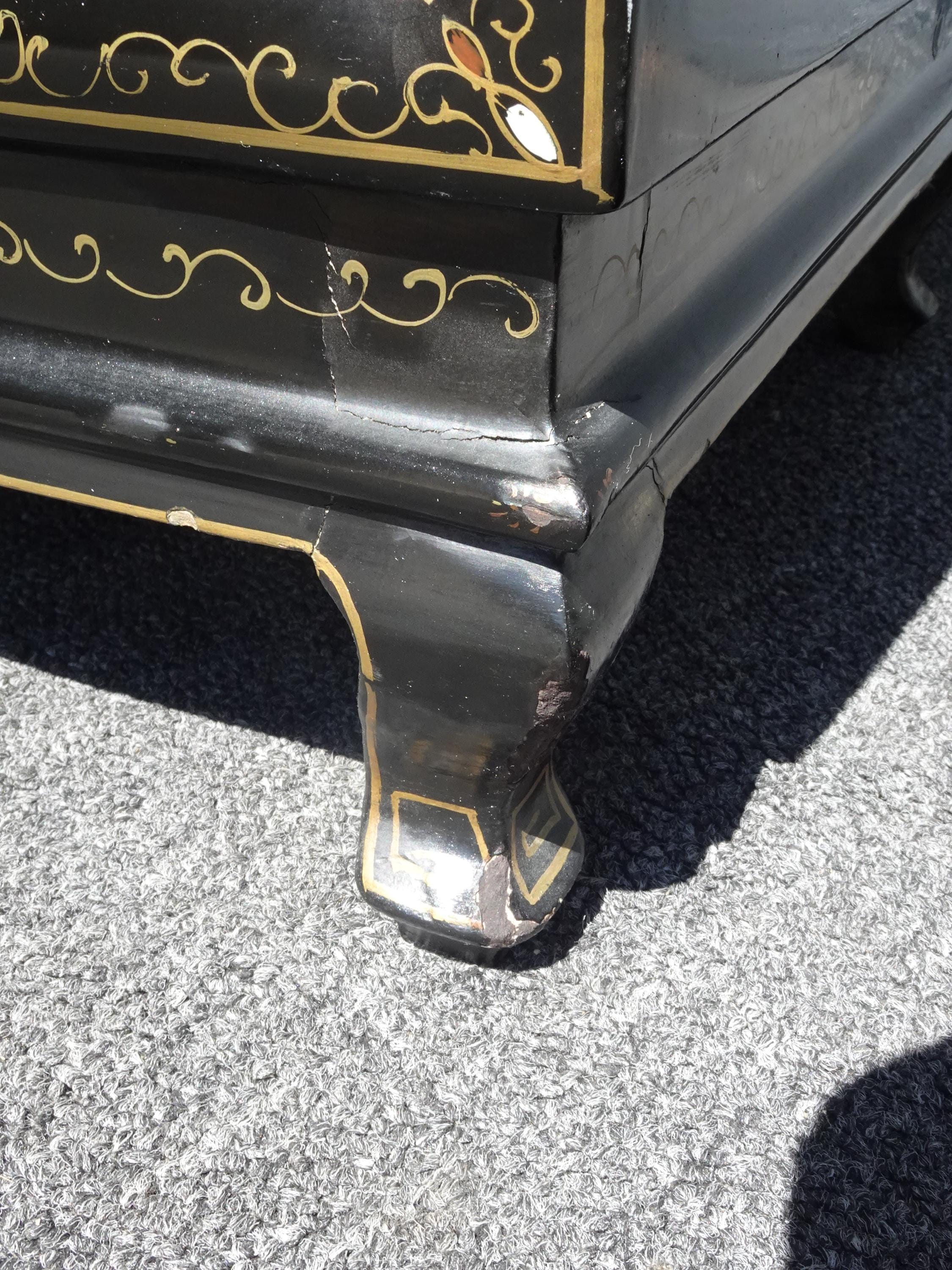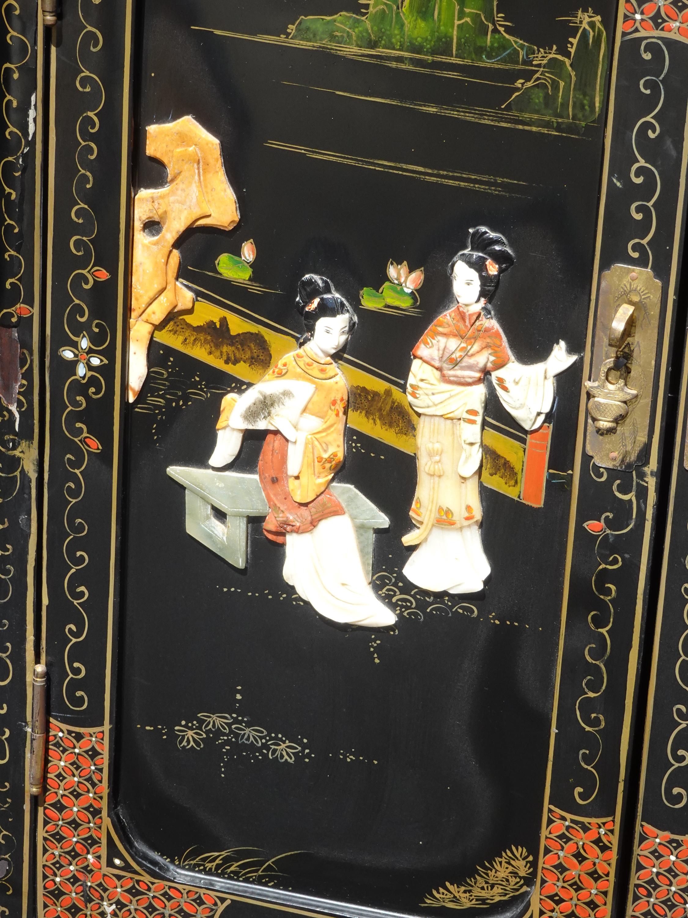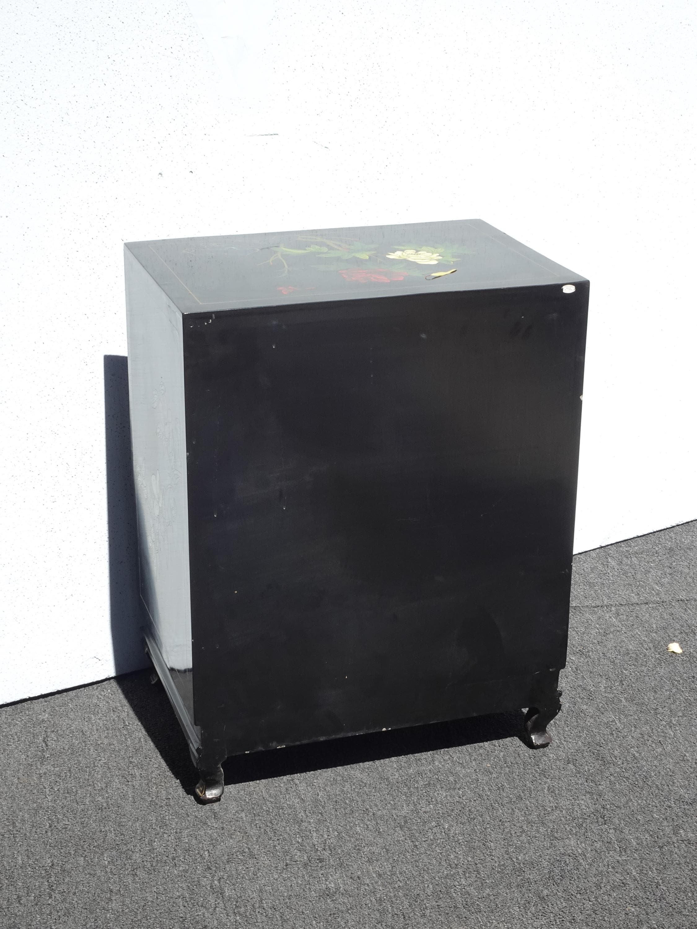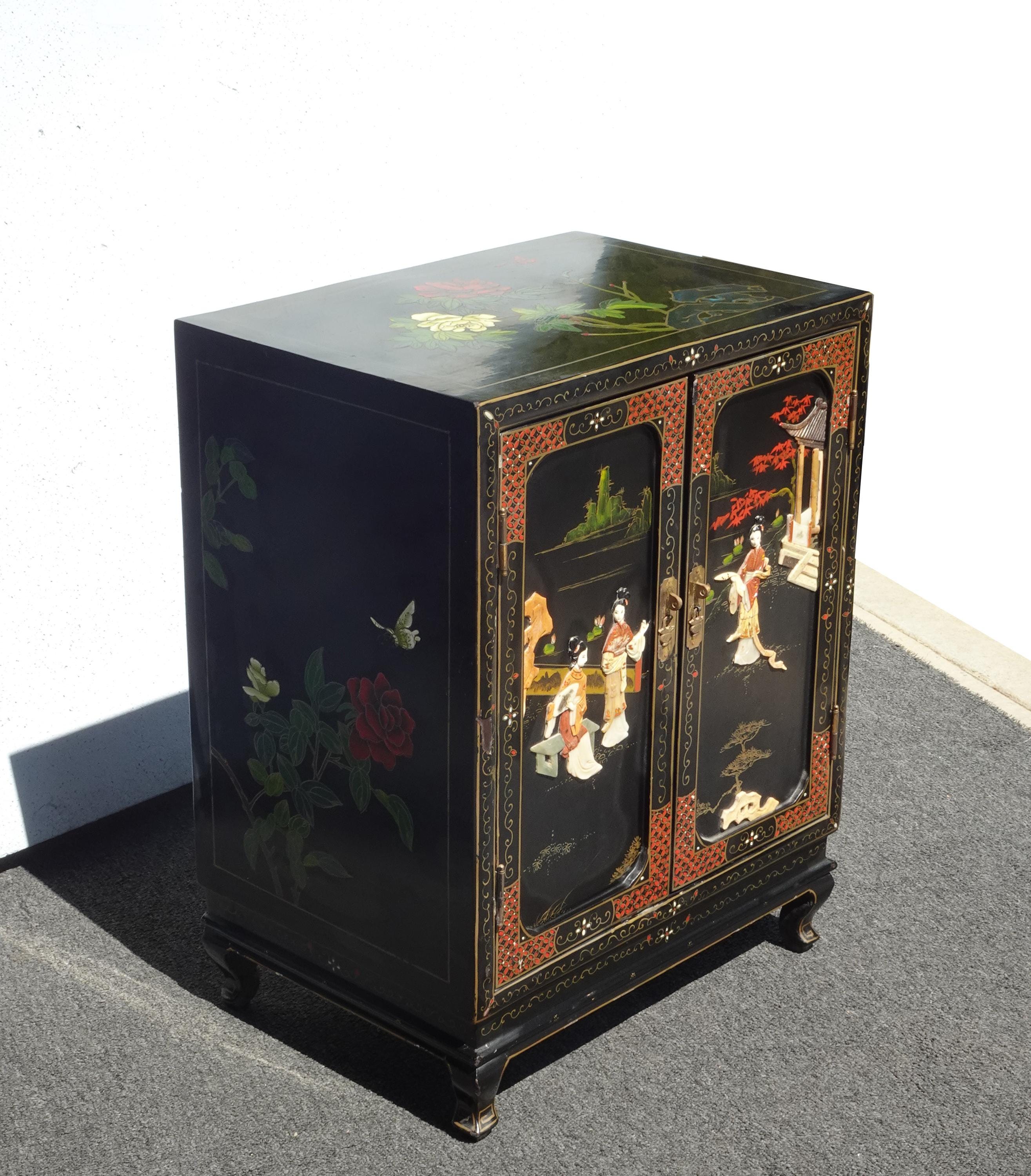 Vintage Oriental Black Lacquer Hand Painted Two Door Cabinet ~ Mother of Pearl