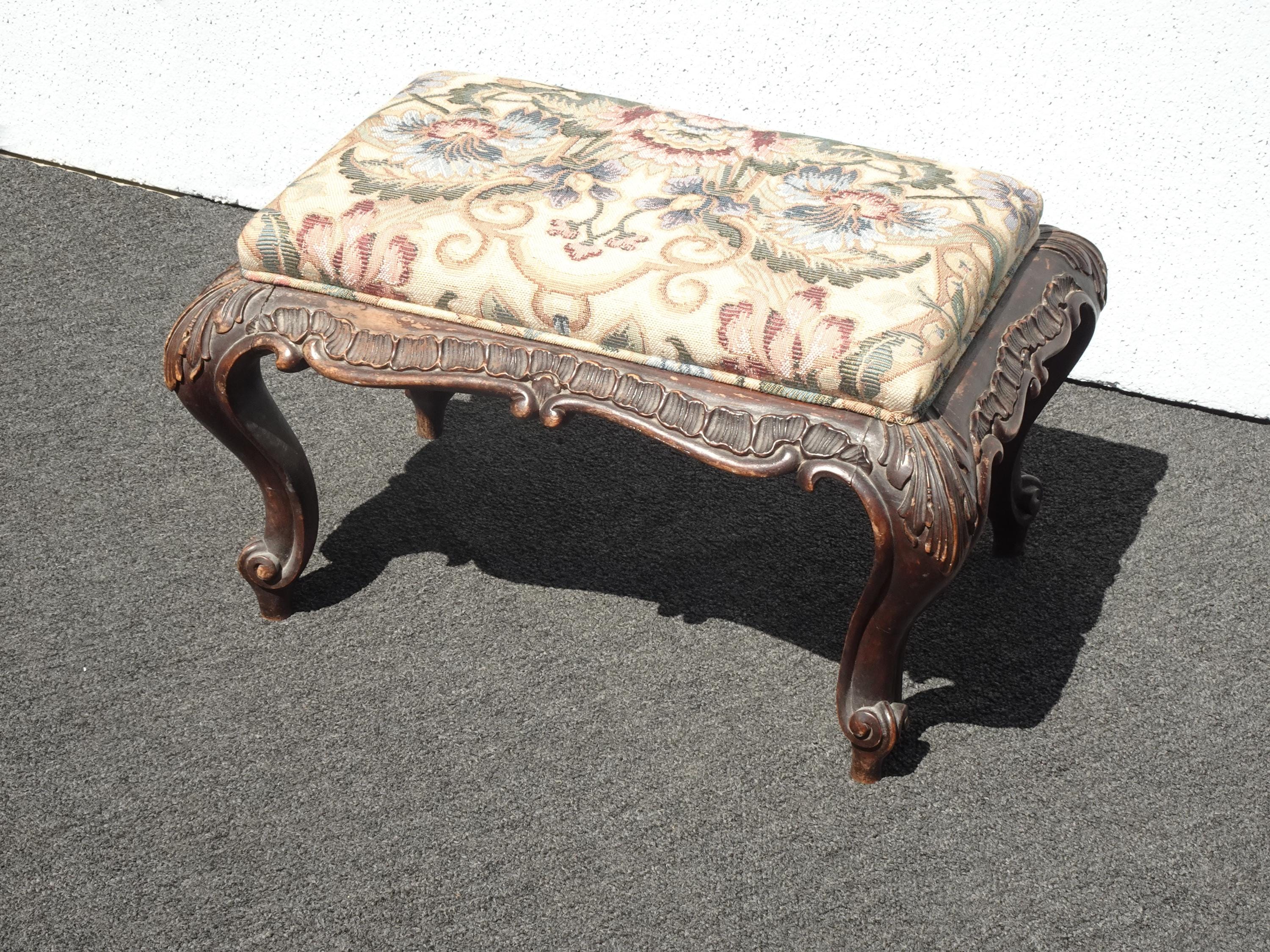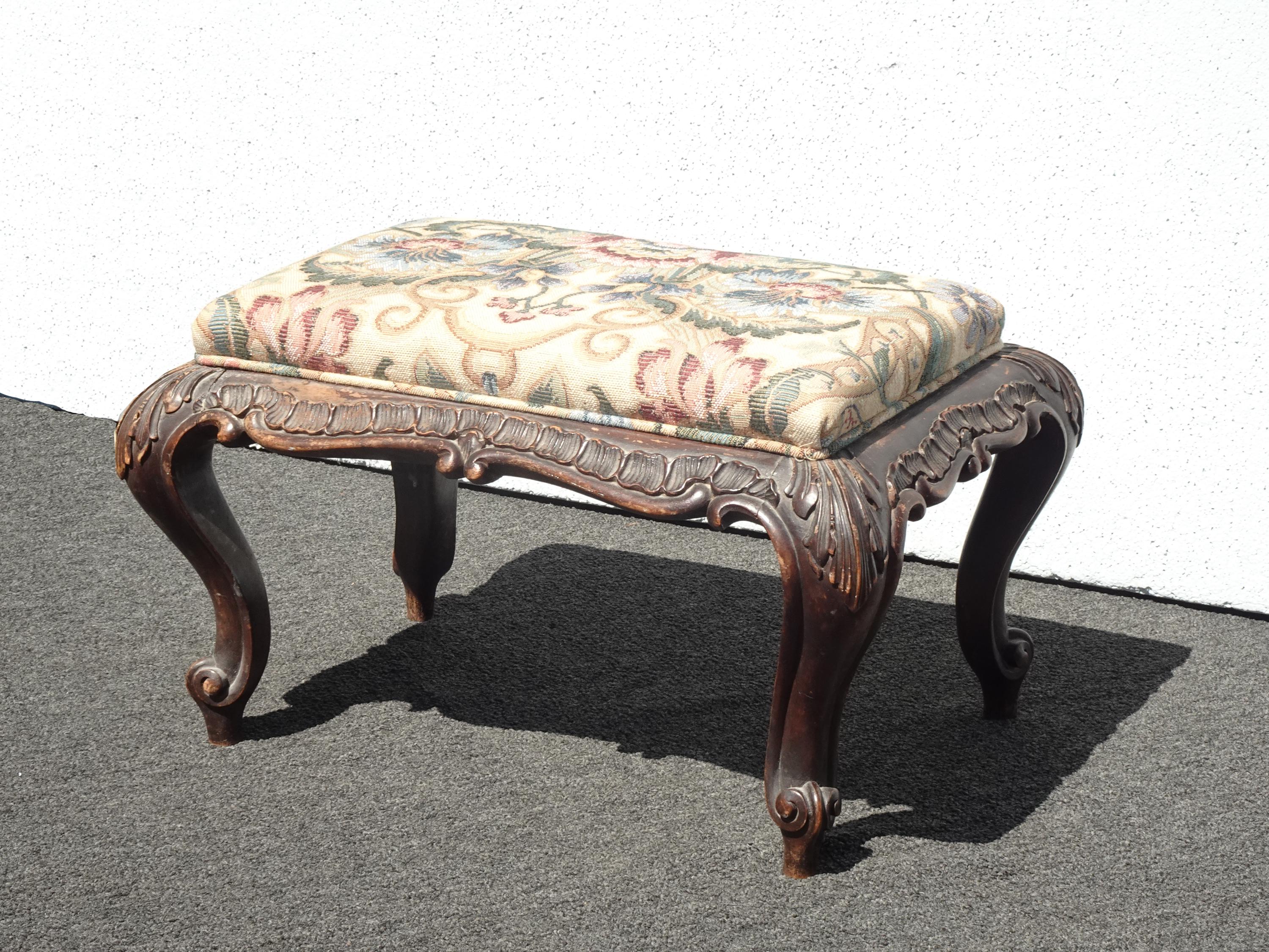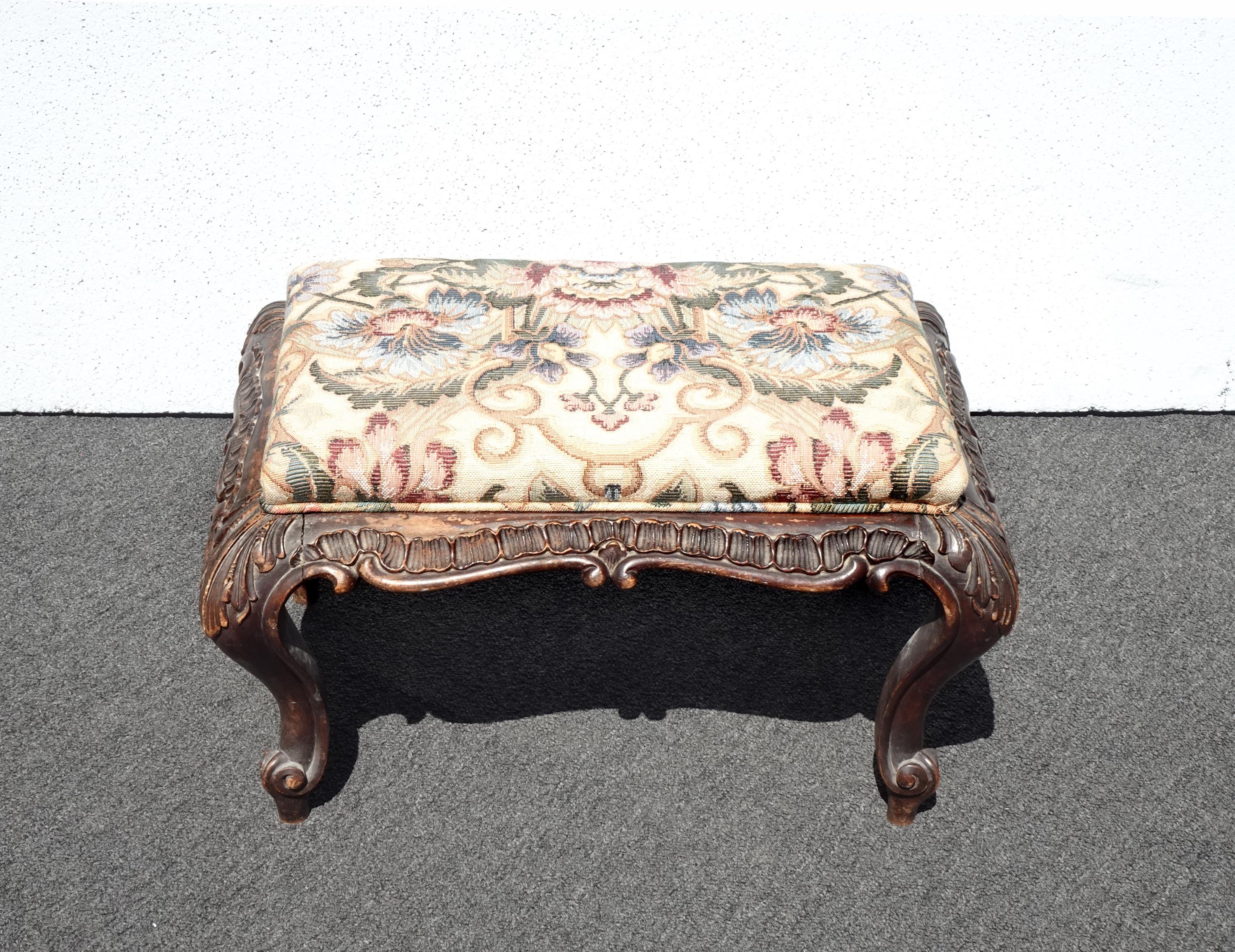 Antique French Louis XVI Ornately Carved Footstool Bench