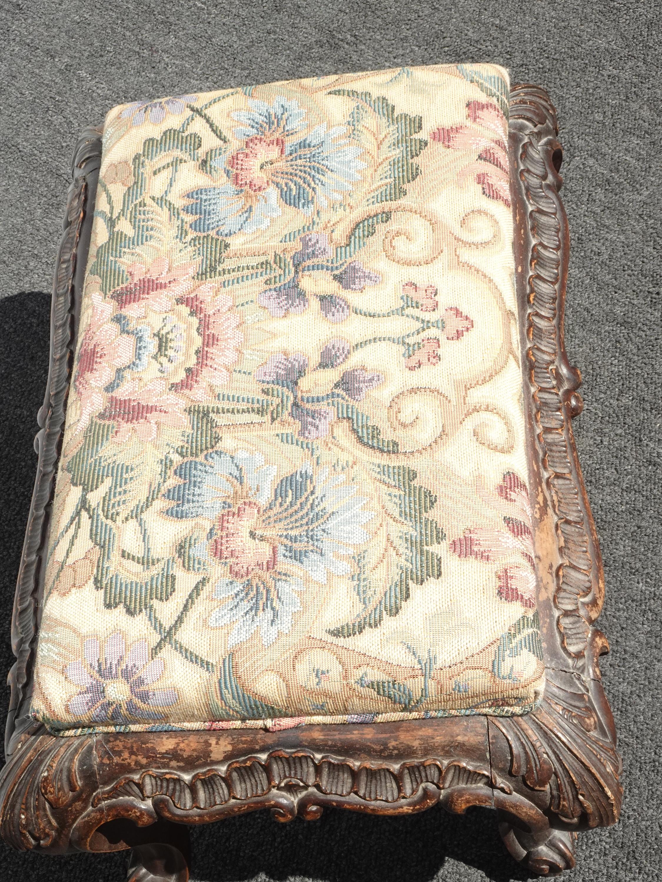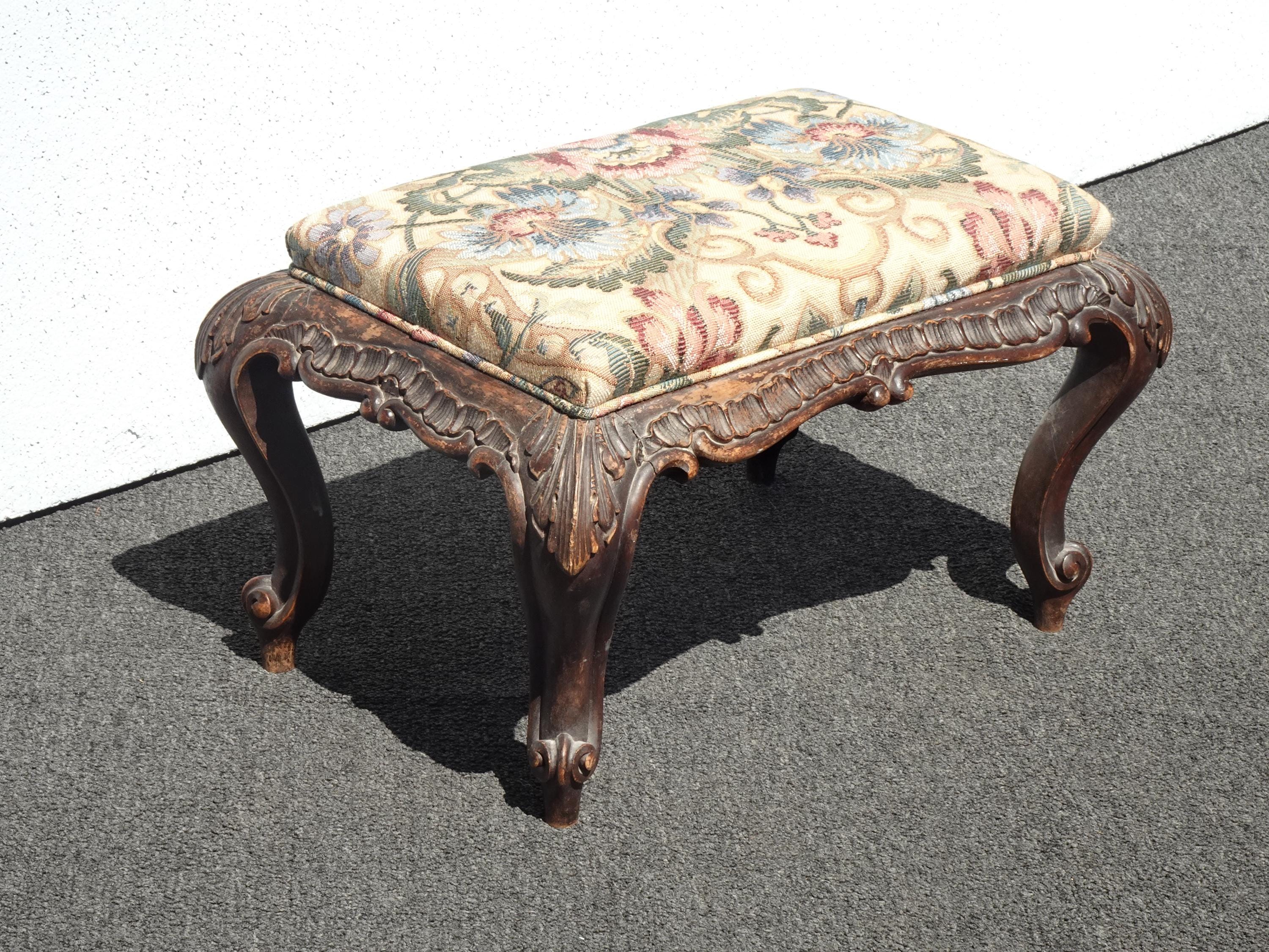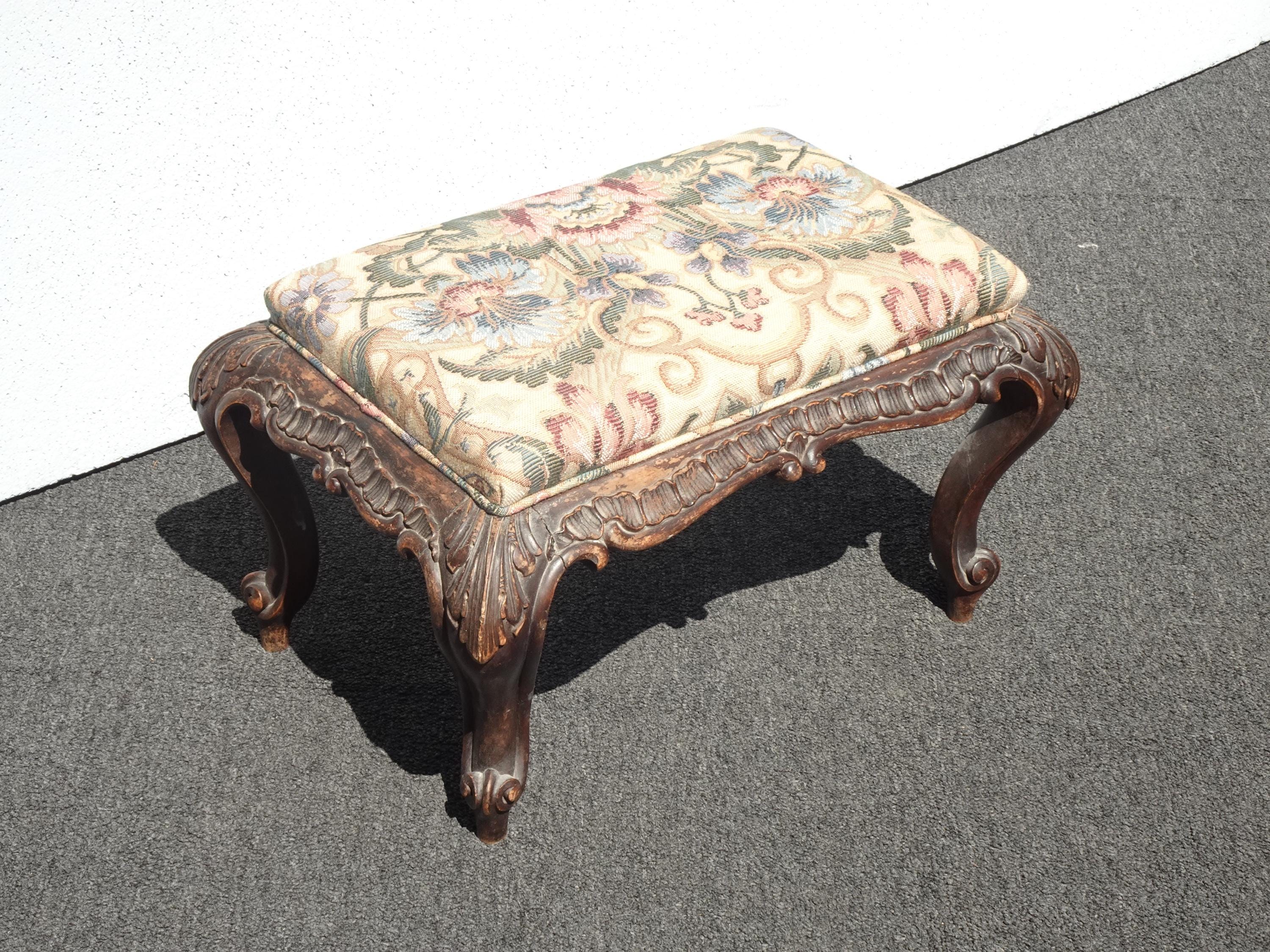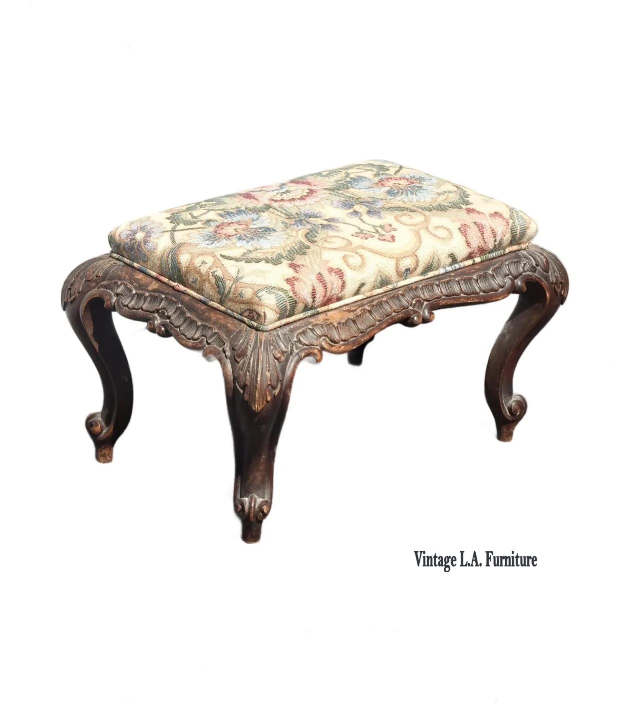 Antique French Louis XVI Ornately Carved Footstool Bench