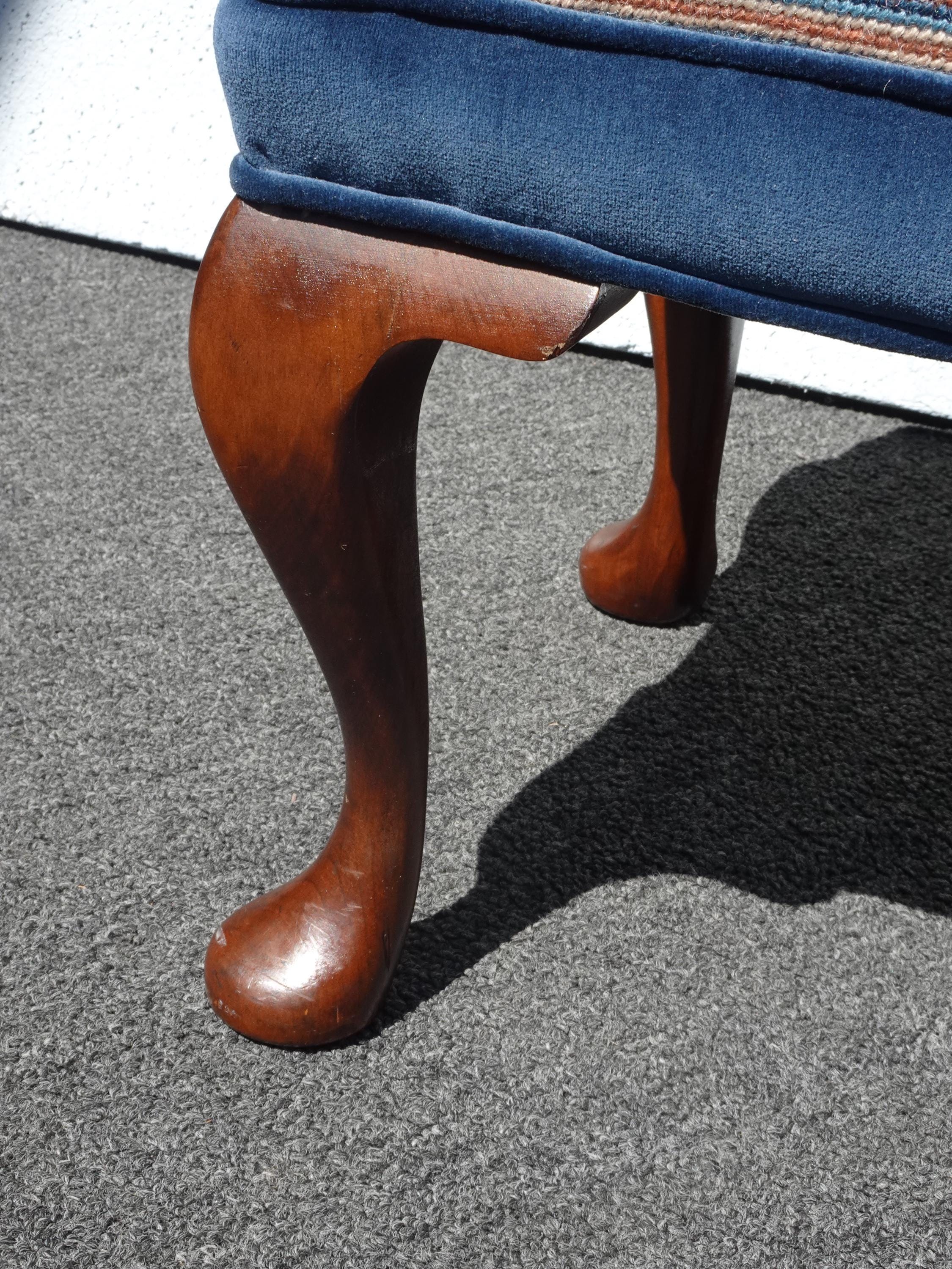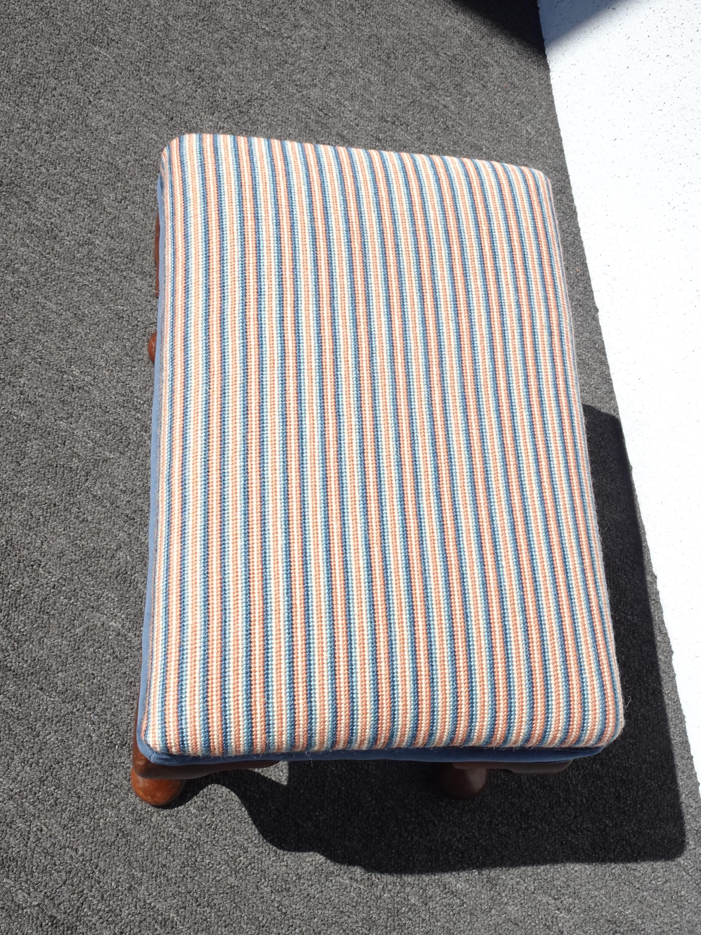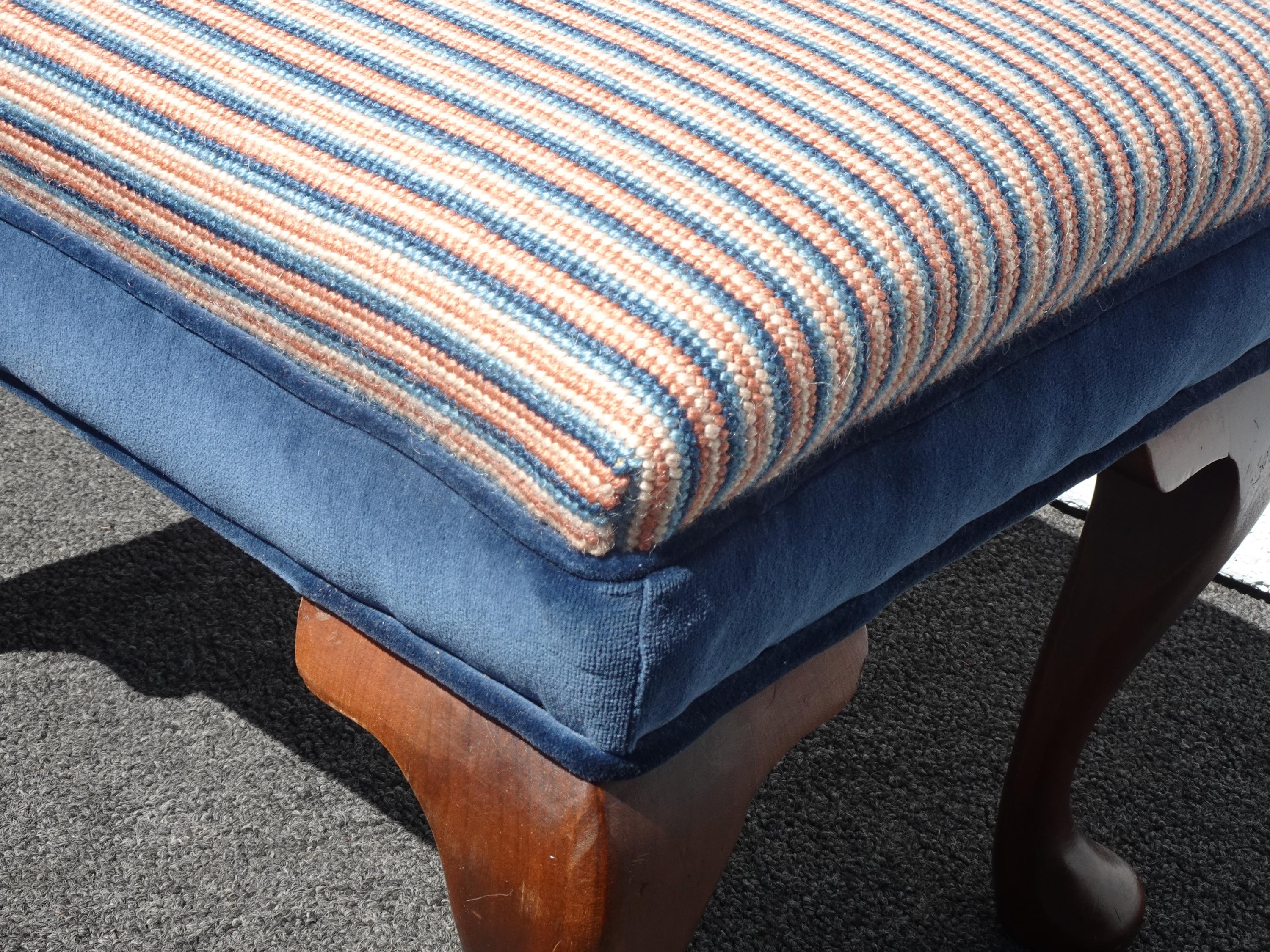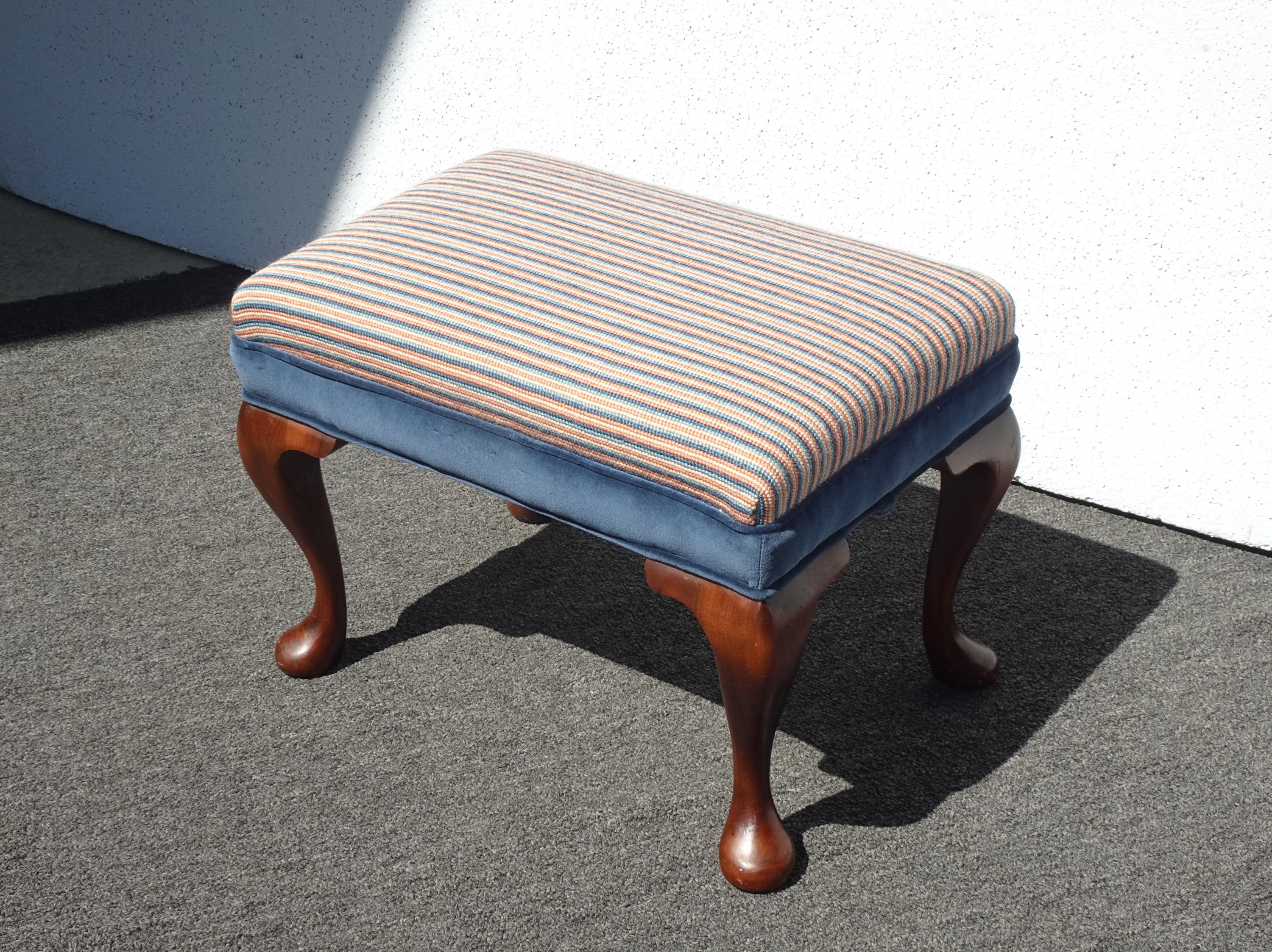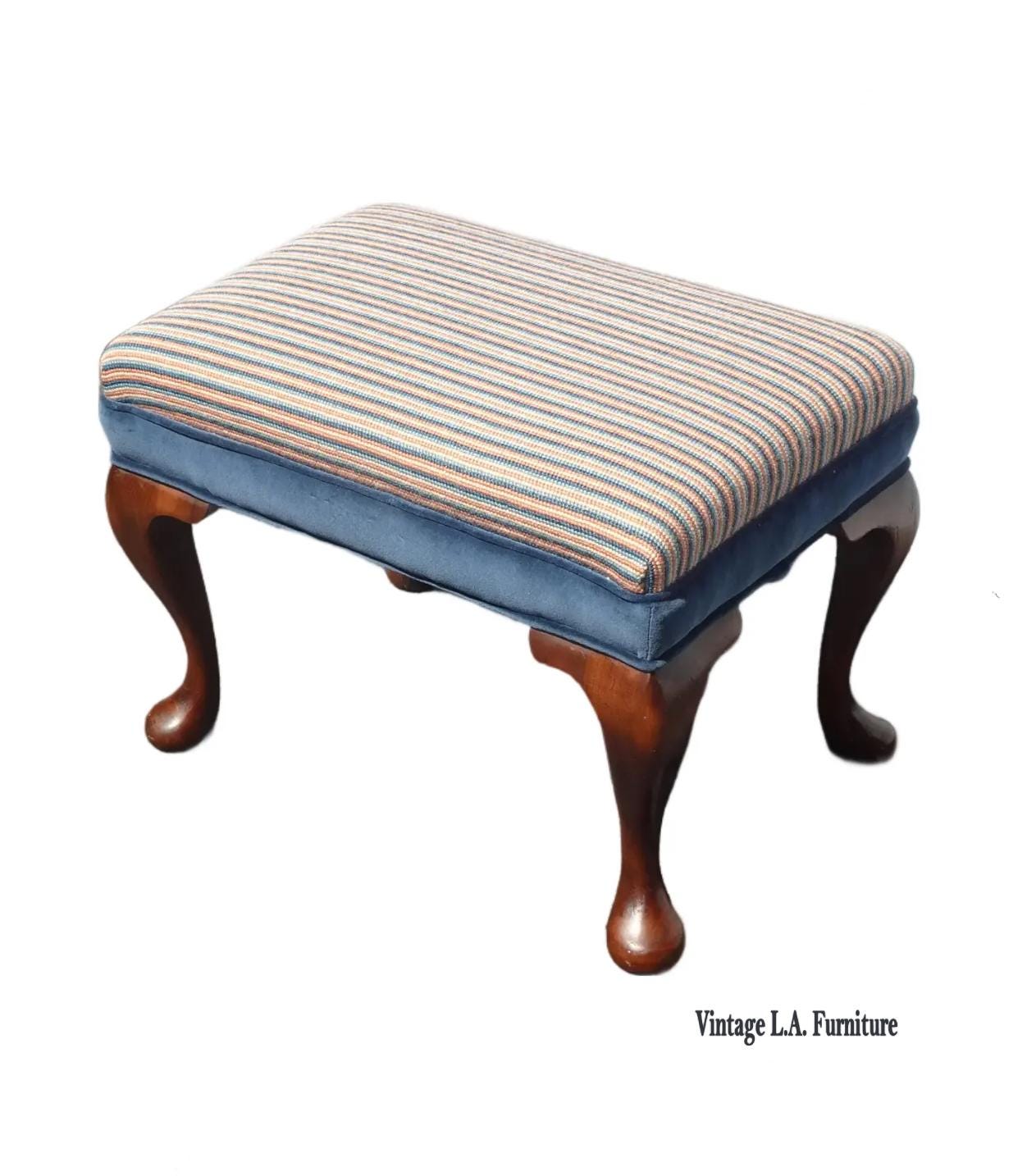 Vintage Queen Anne Blue Stripped Footstool Bench