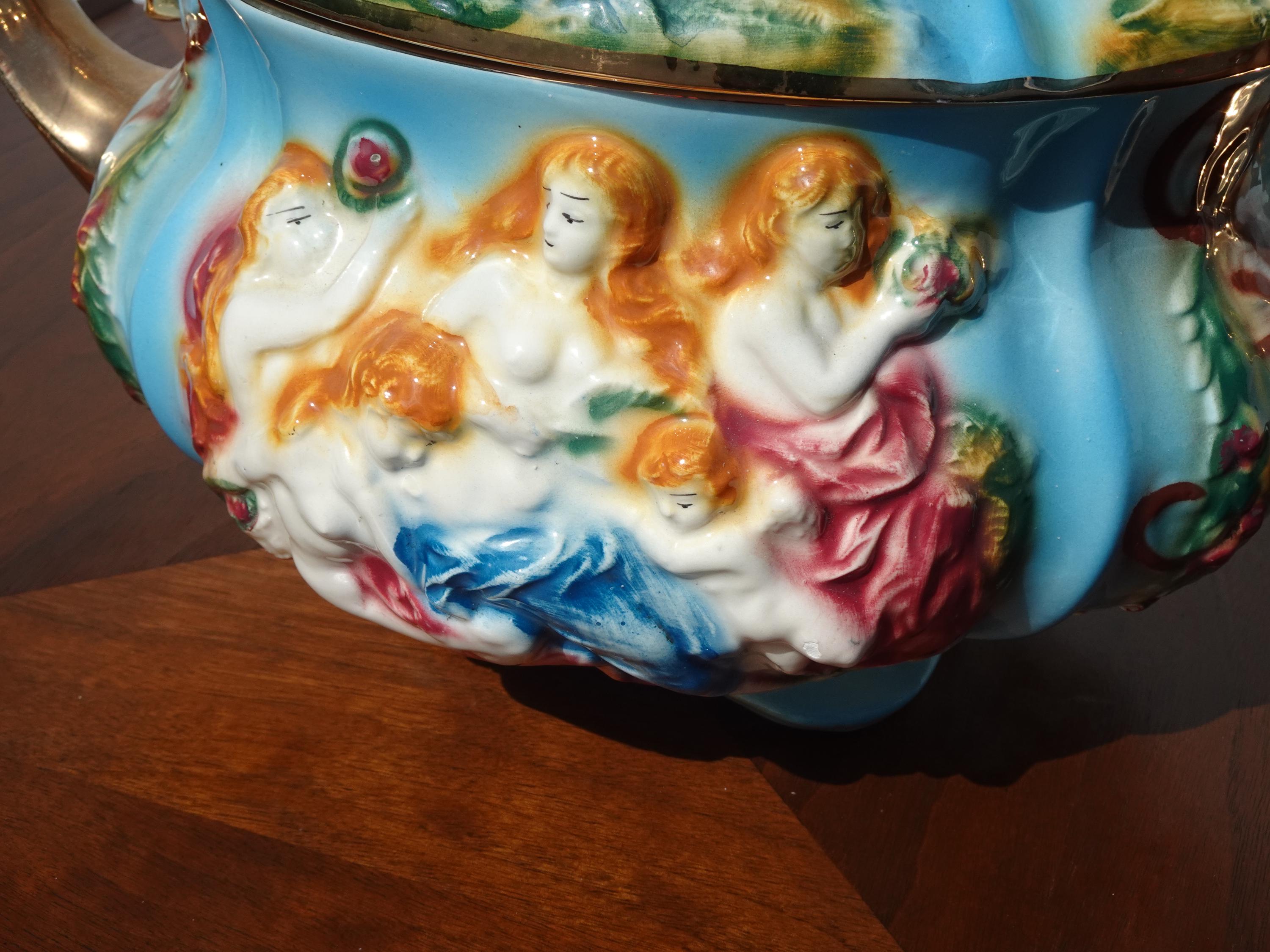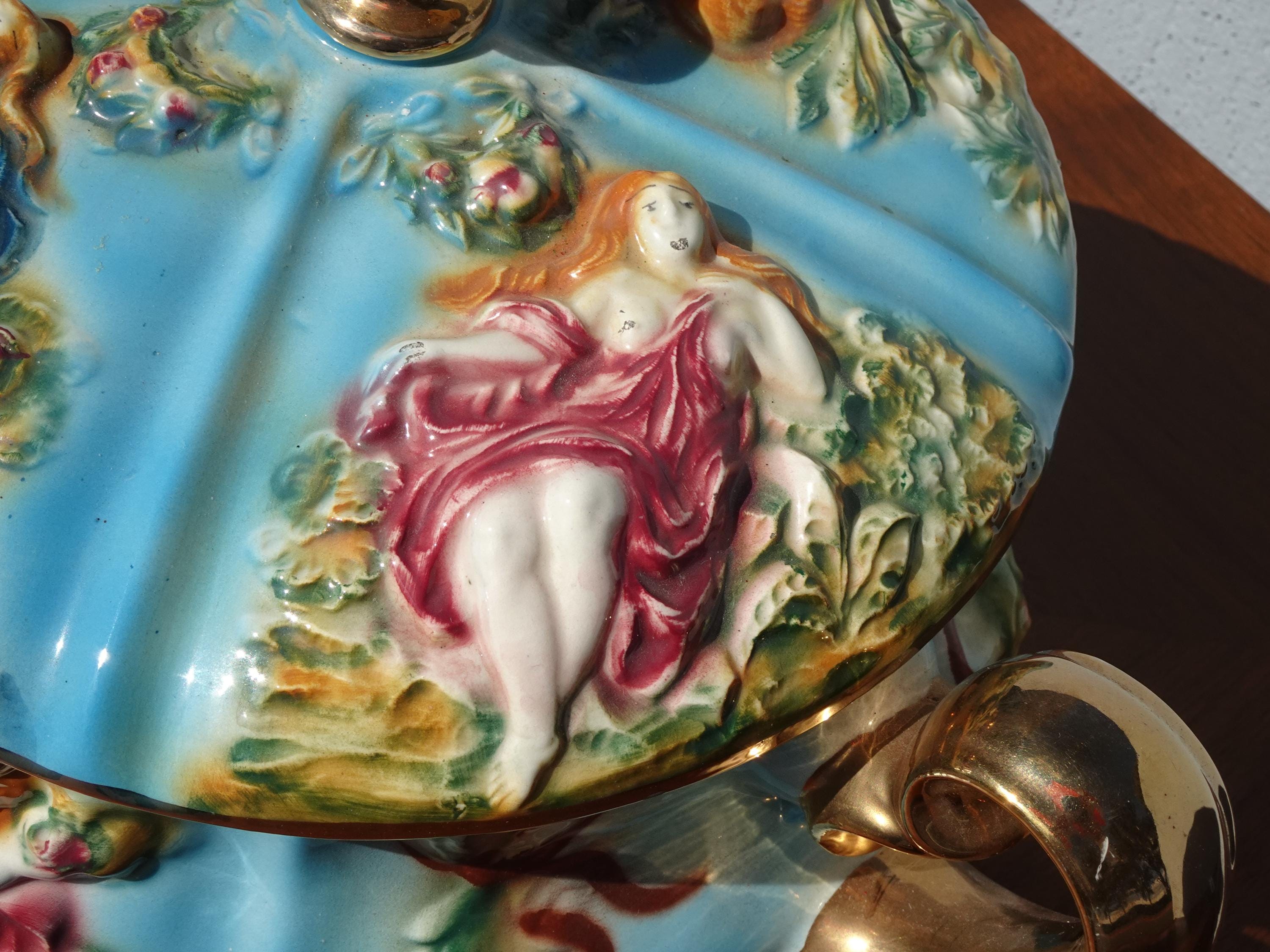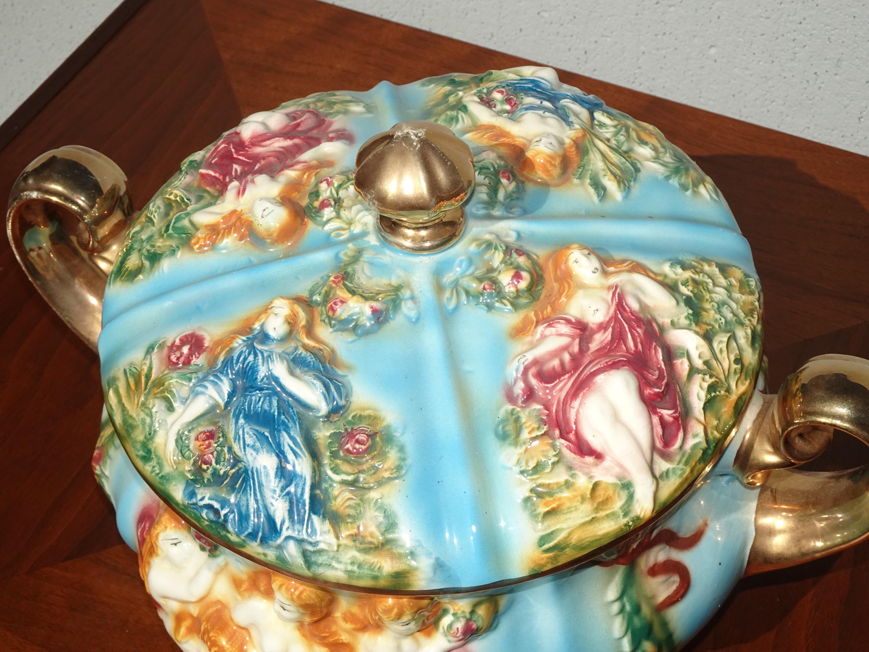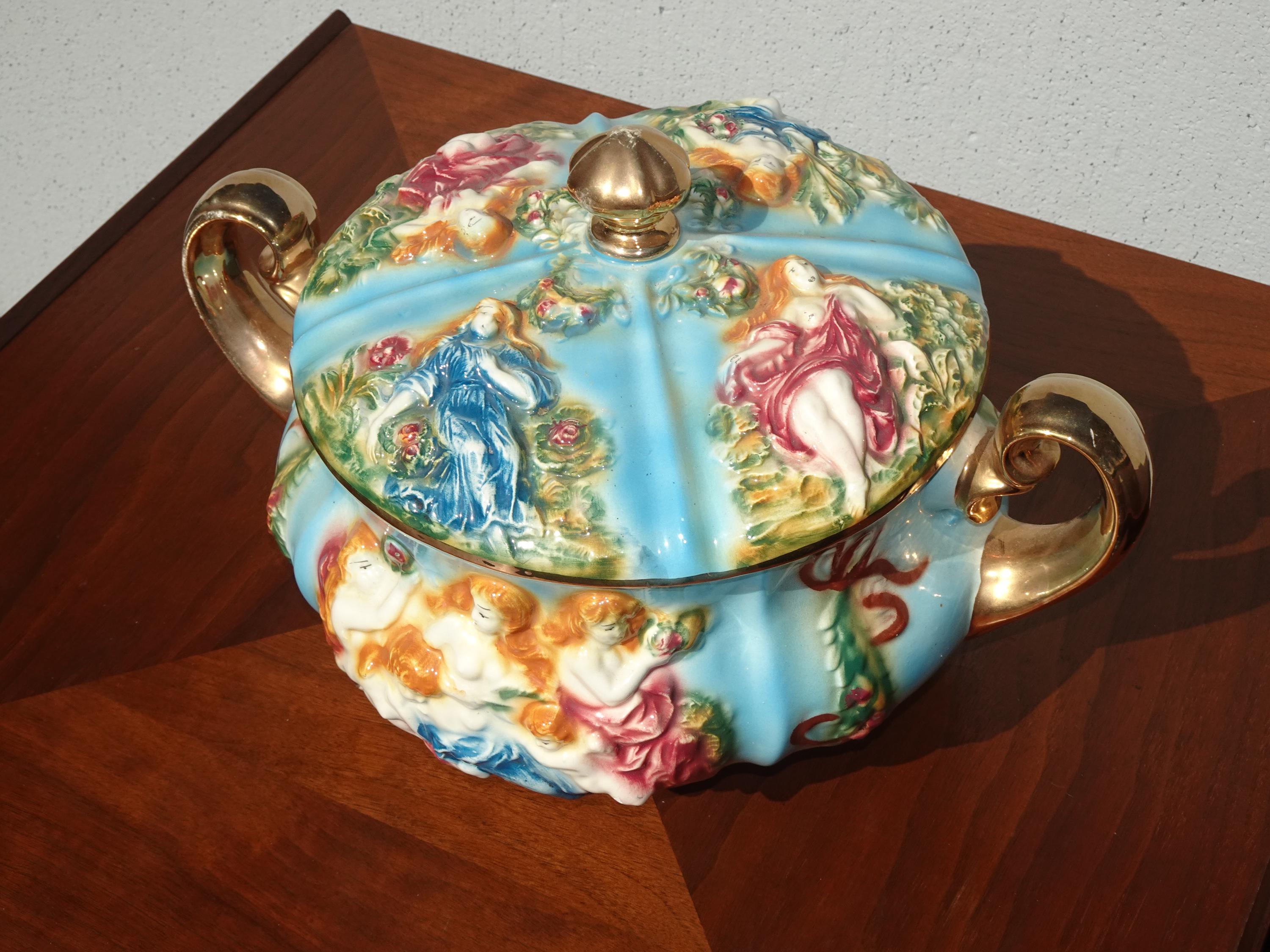 Vintage Blue Capodimonte Bowl w Lid w Handles Naked Cherubs ~ Made in Italy