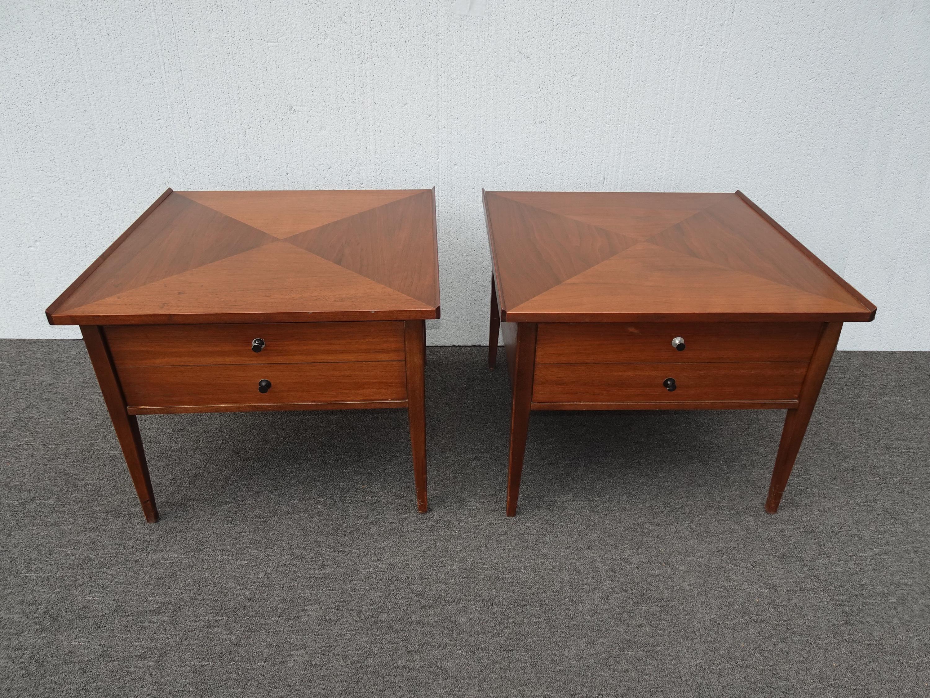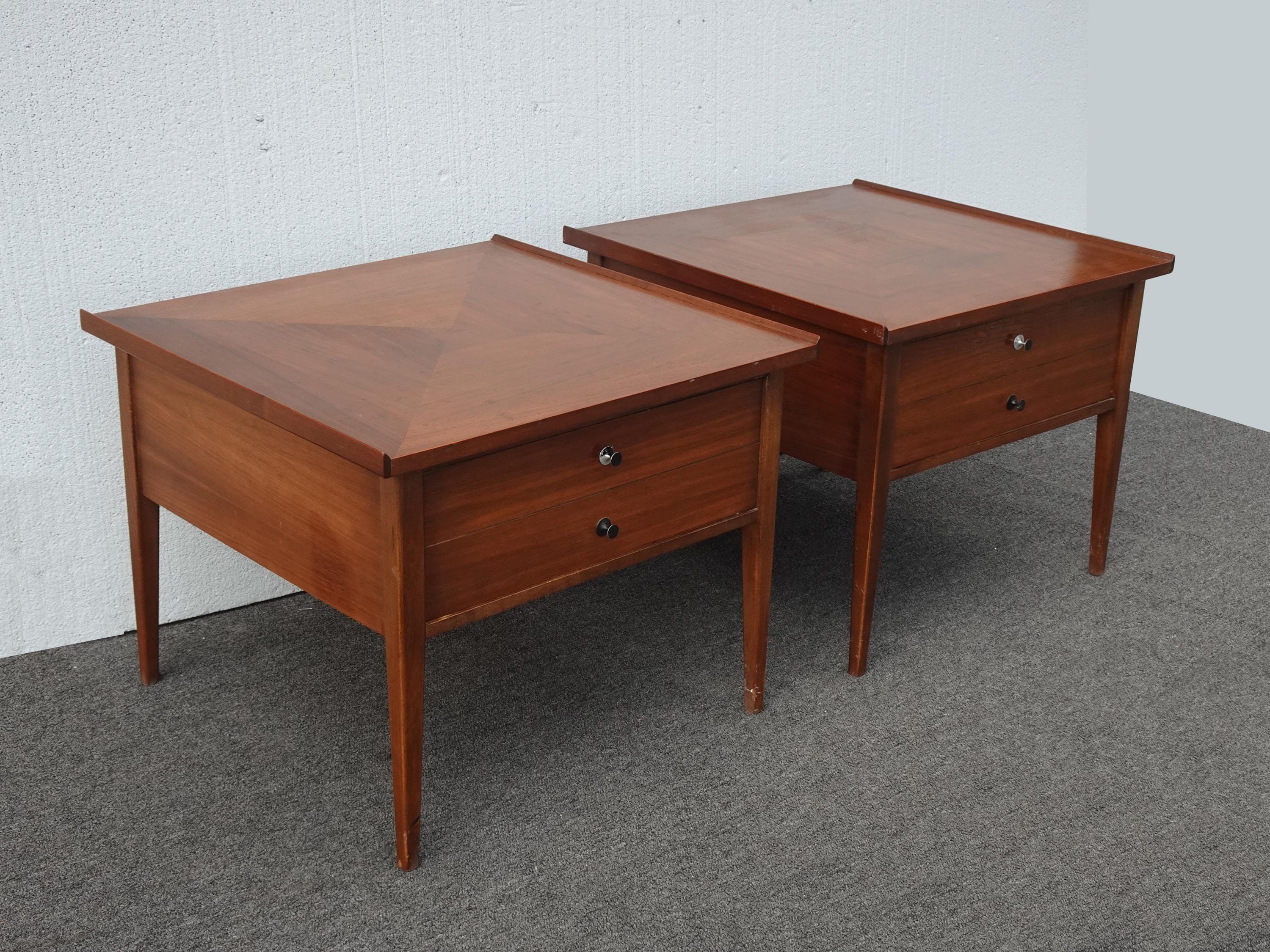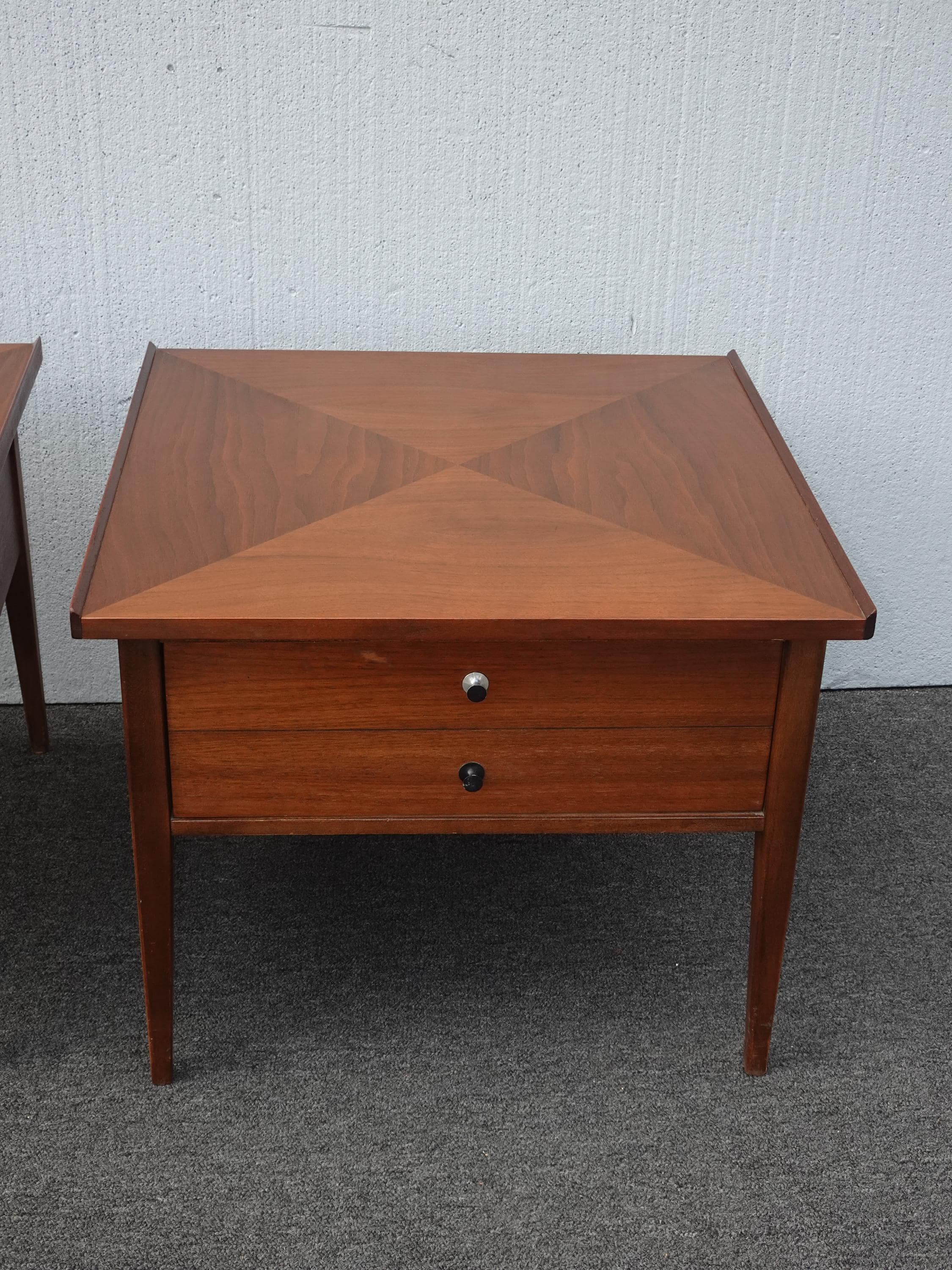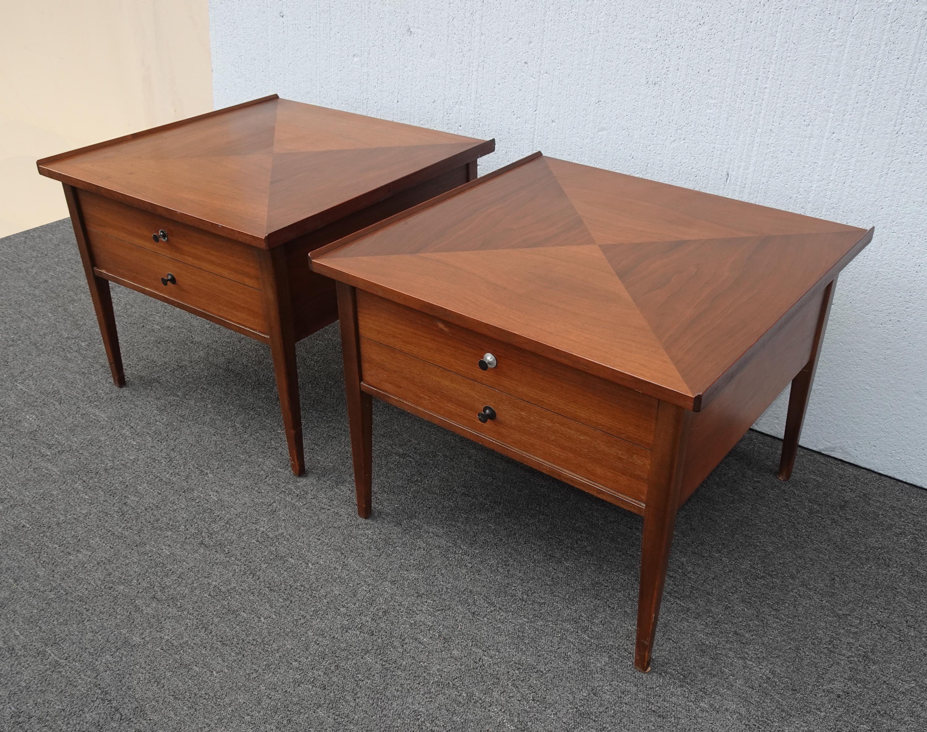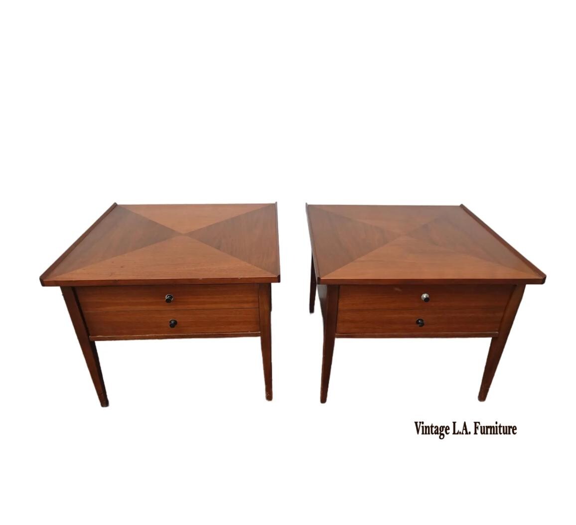 Pair of Vintage American of Martinsville Mid Century Modern Walnut End Tables ~ Nightstands