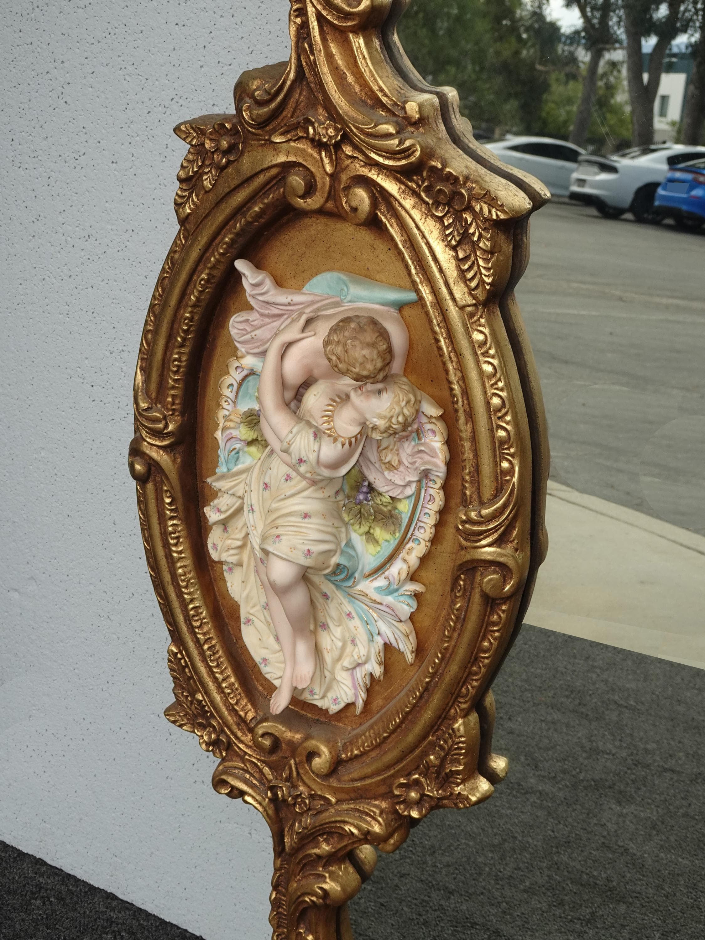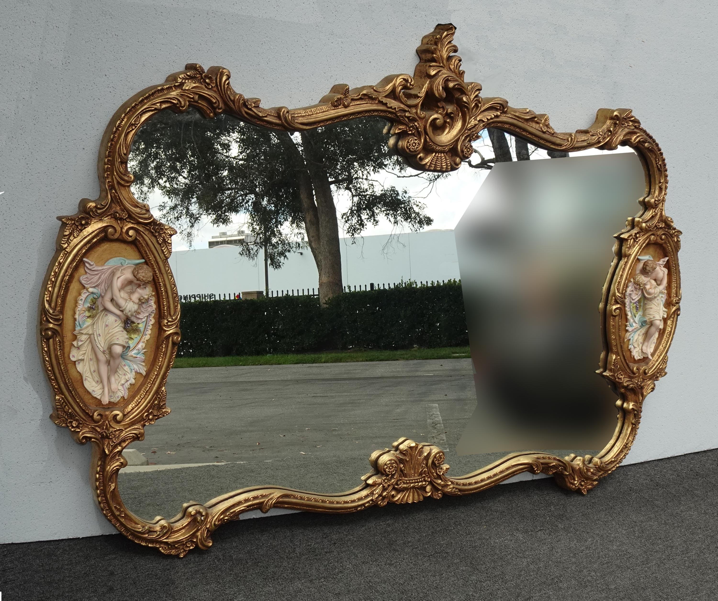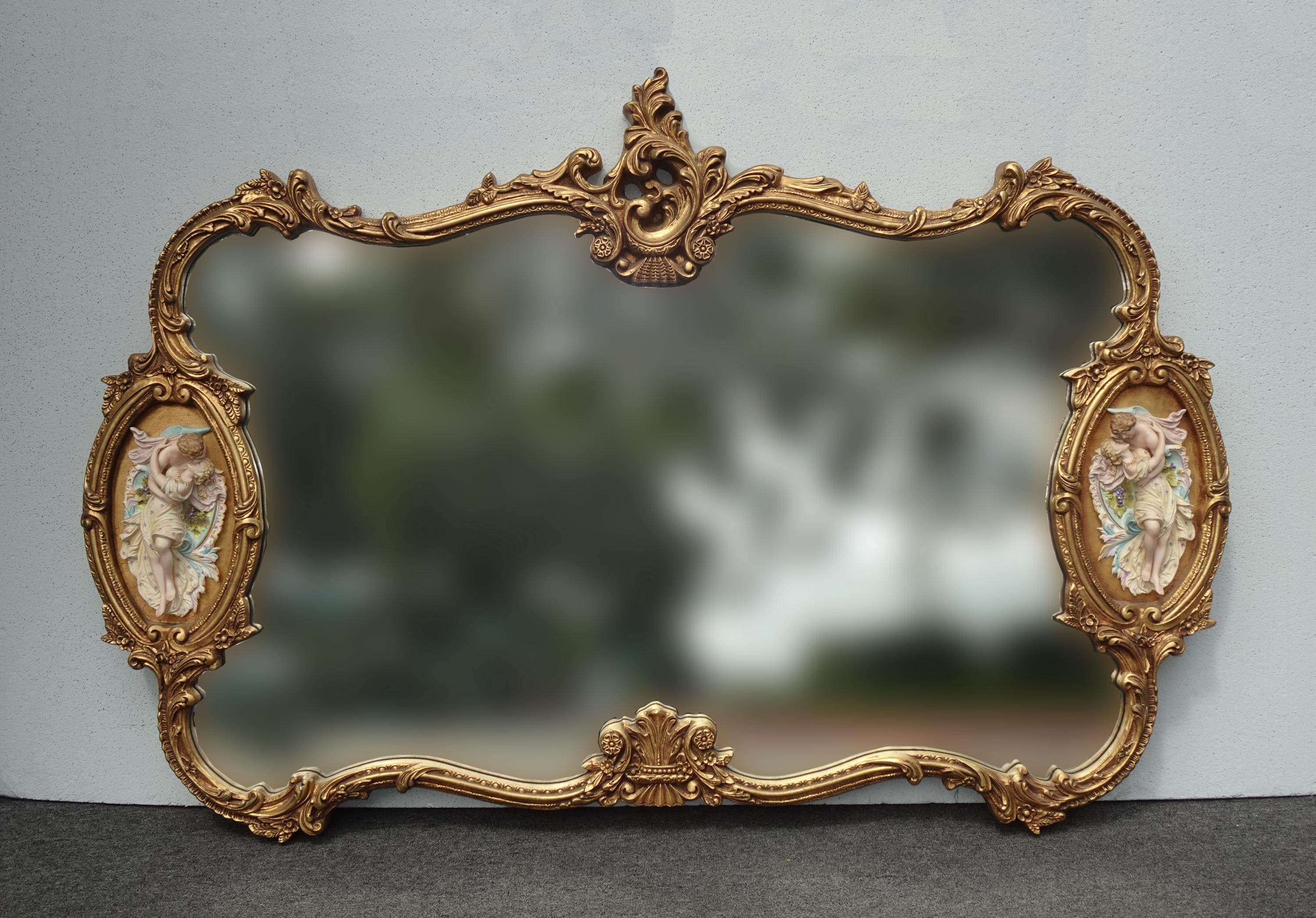 Vintage French Rococo Louis XV Gold Wall Mantle Mirror ~ Bisque Figural Lovers