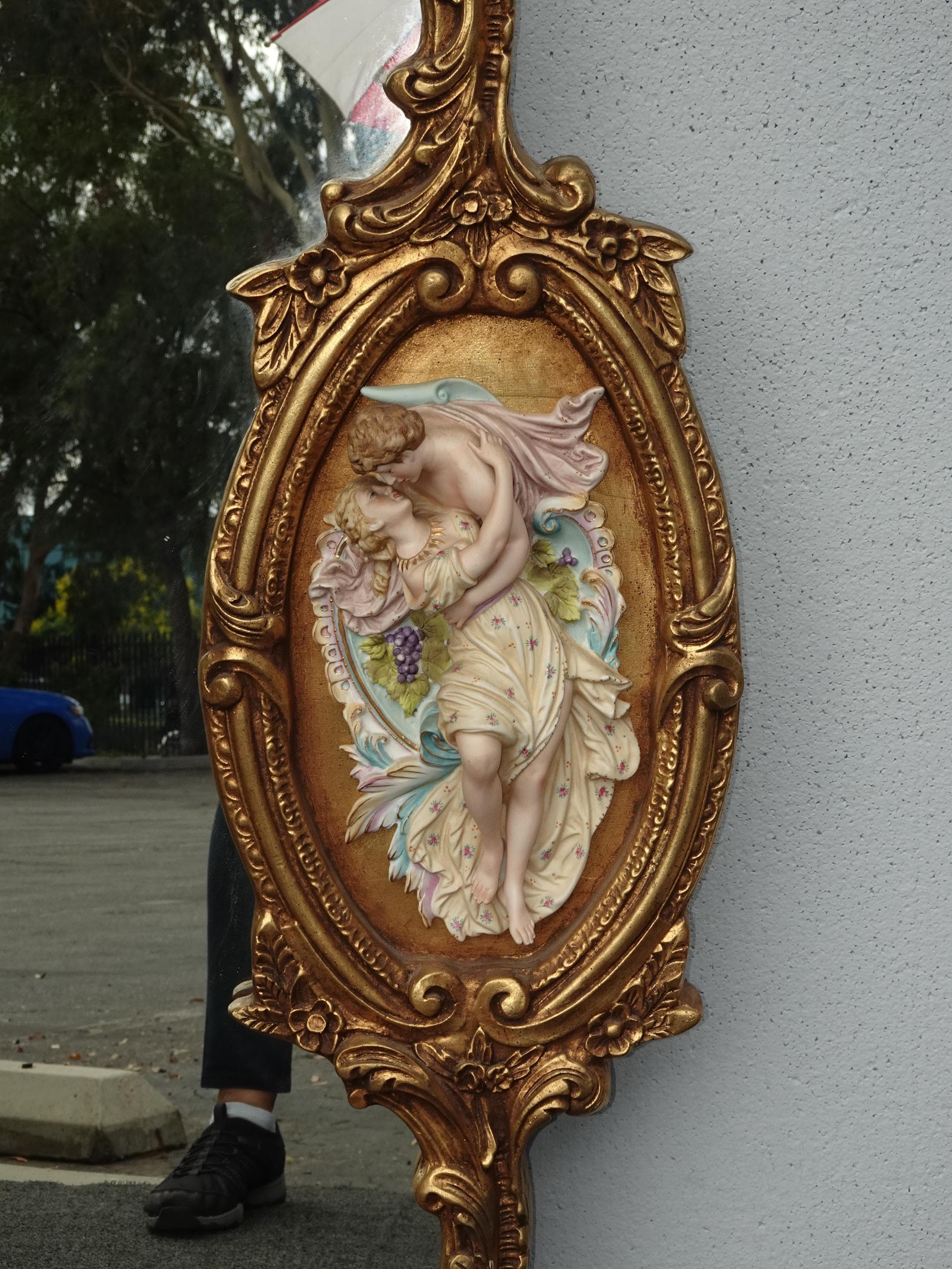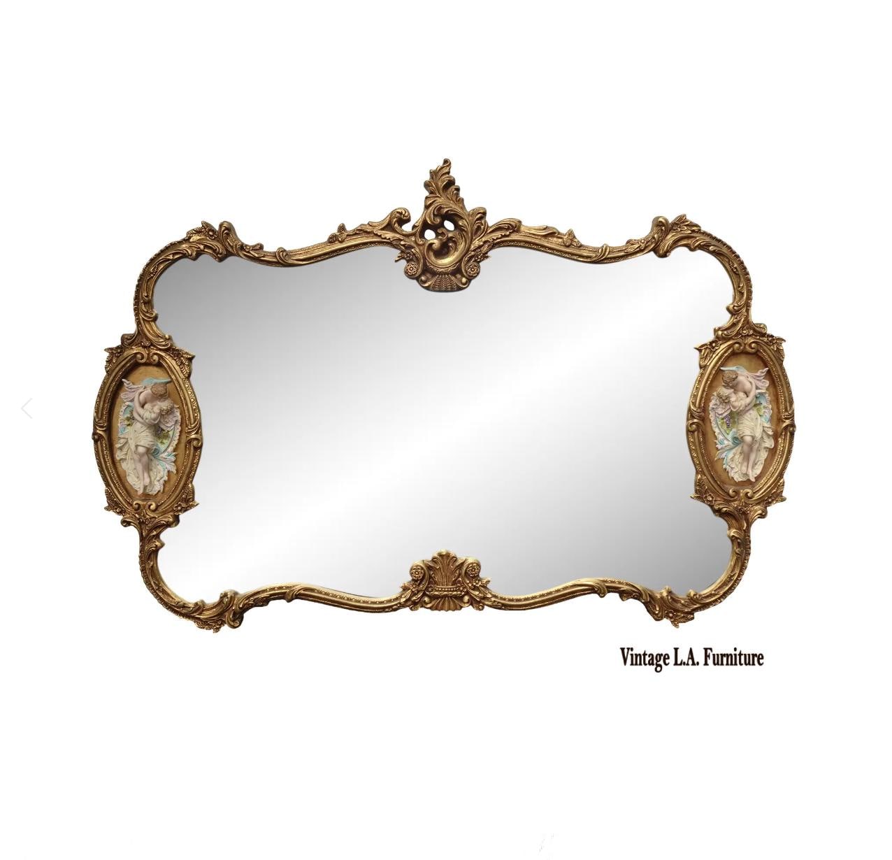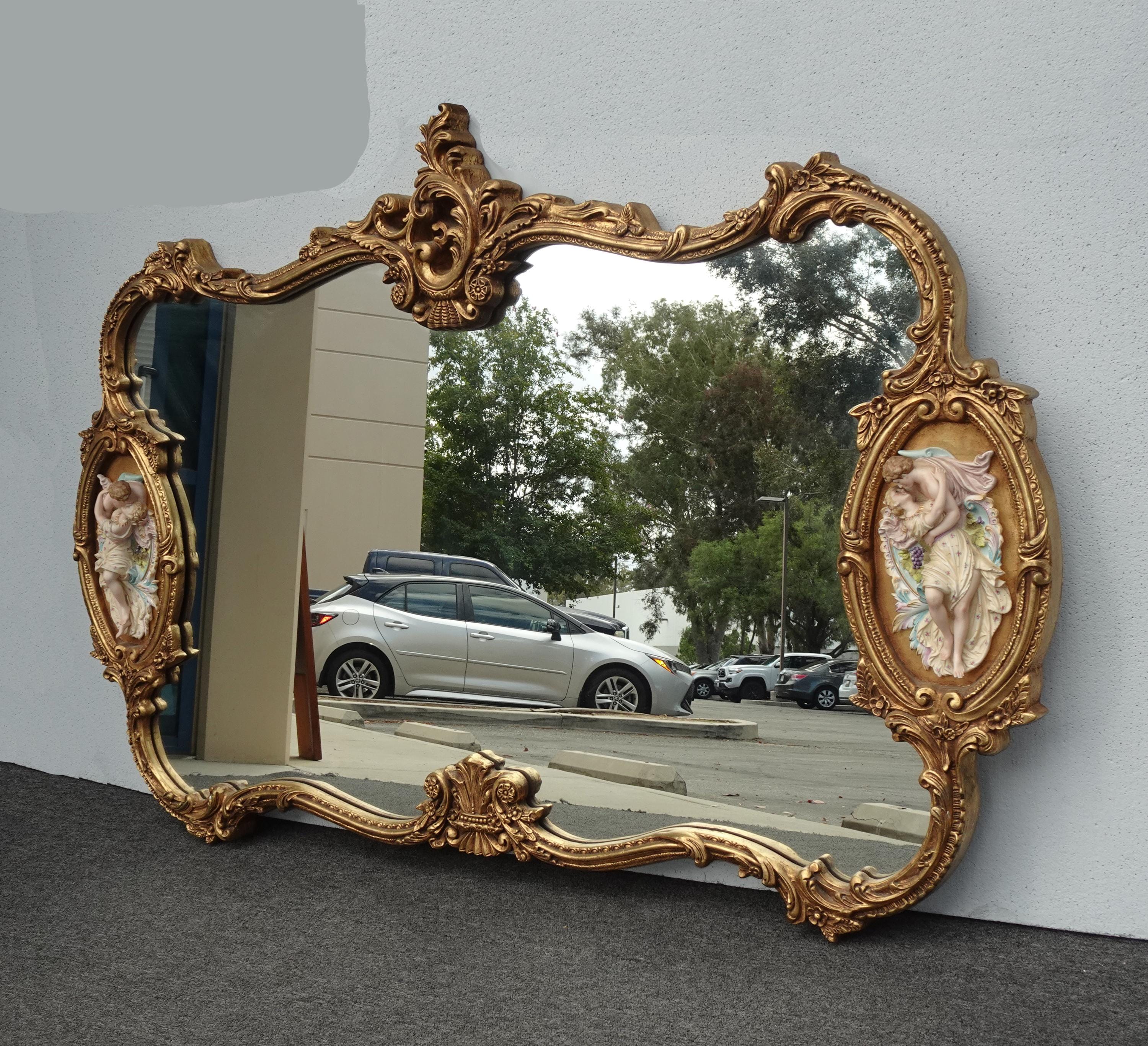 Vintage French Rococo Louis XV Gold Wall Mantle Mirror ~ Bisque Figural Lovers