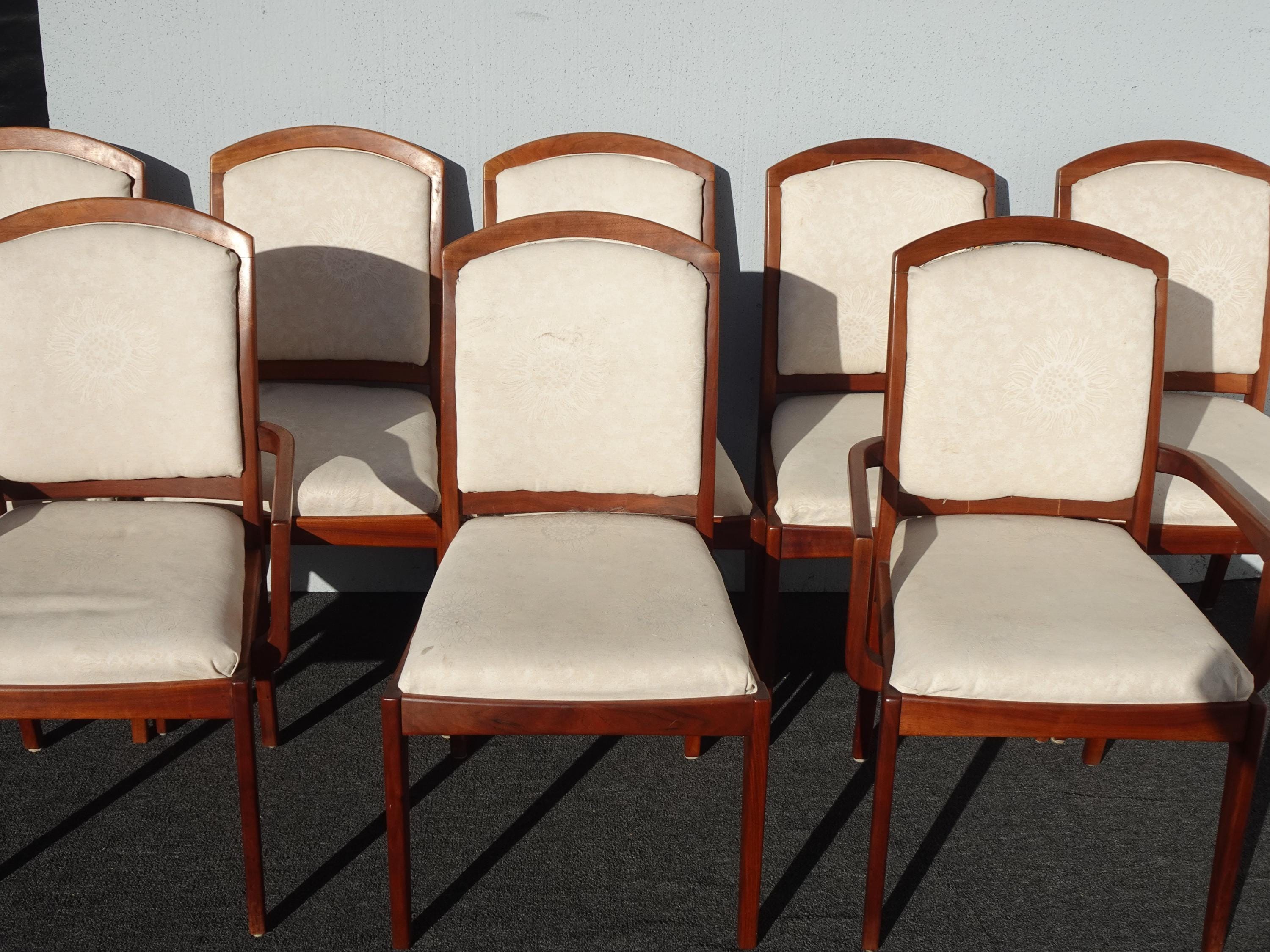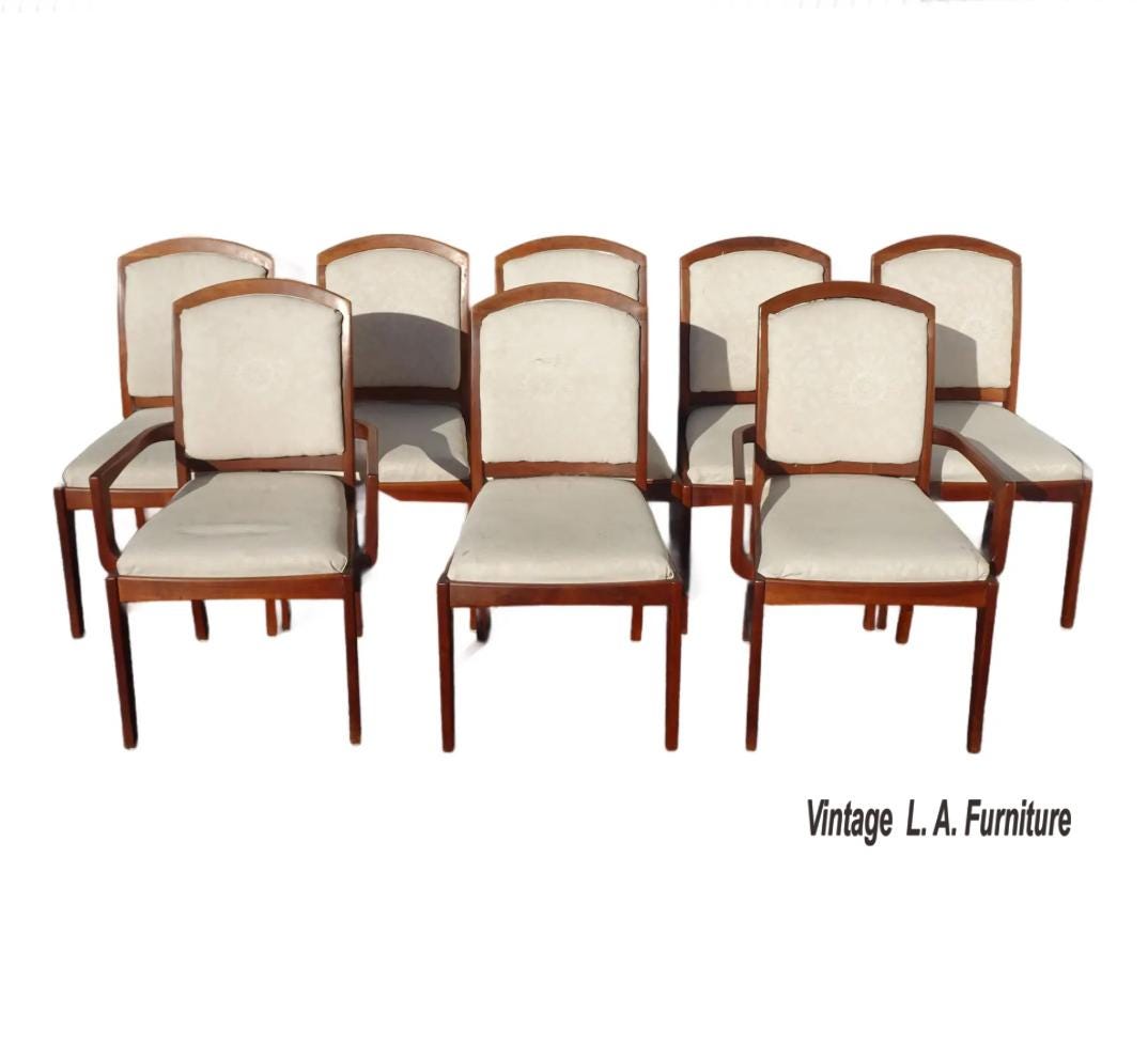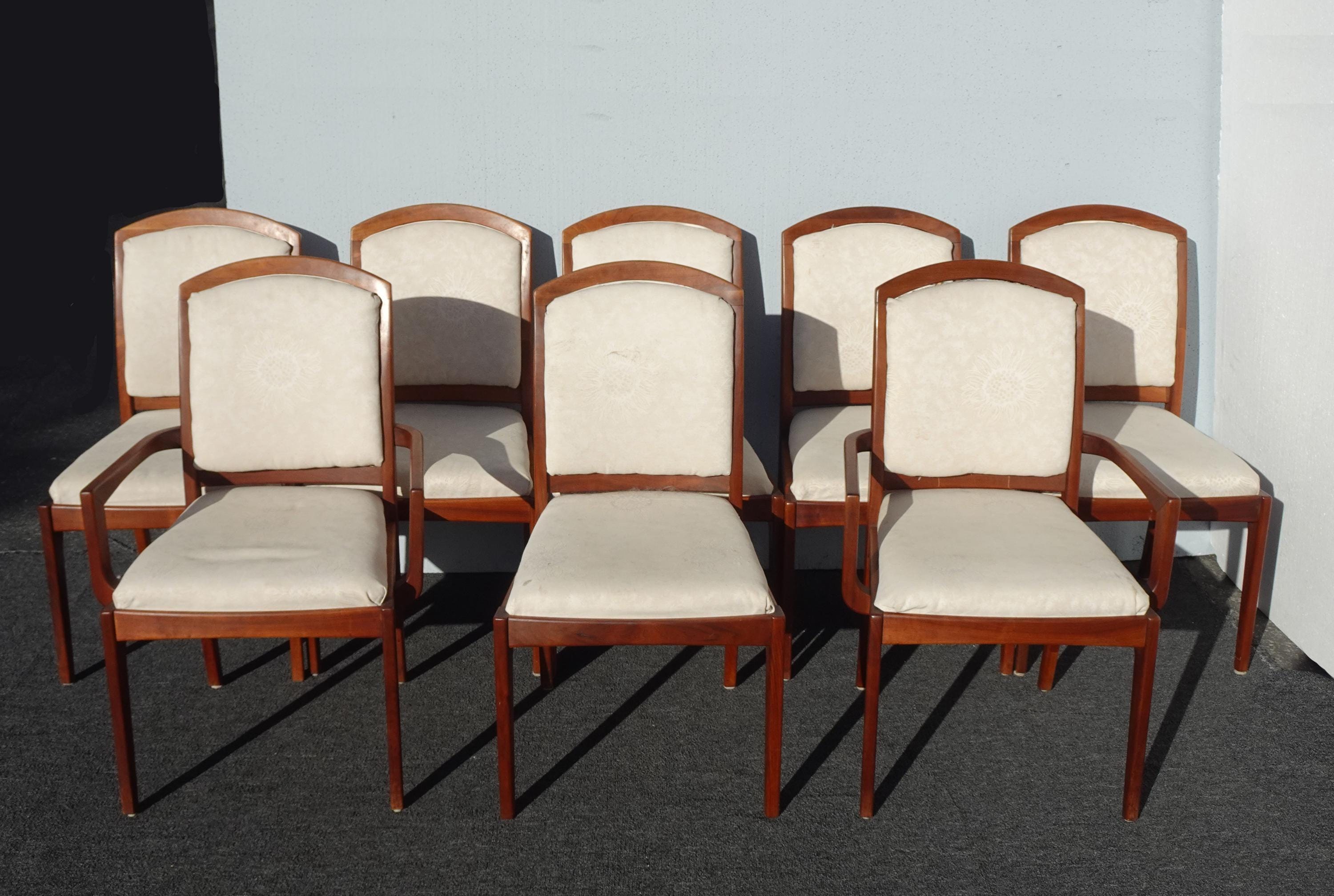 Set of Eight Vintage Mid Century Modern Brown Saltman Walnut Dining Room Chairs