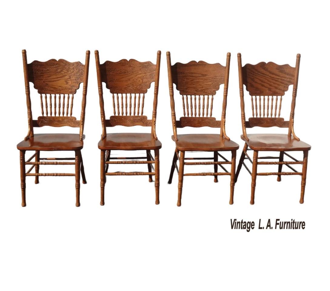 Set of Four Vintage Oak Pressback Dining Room Chairs ~ French Country