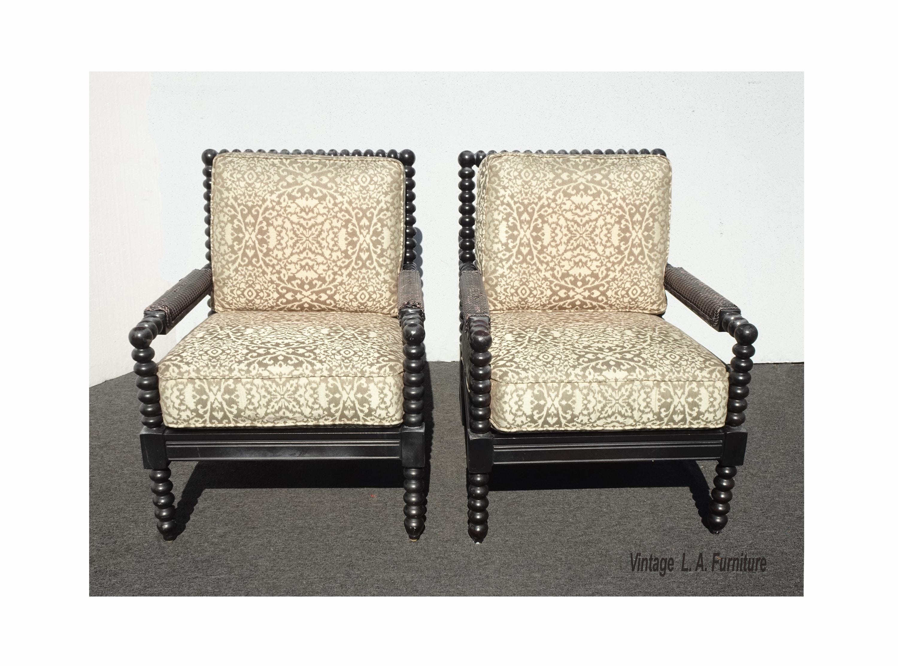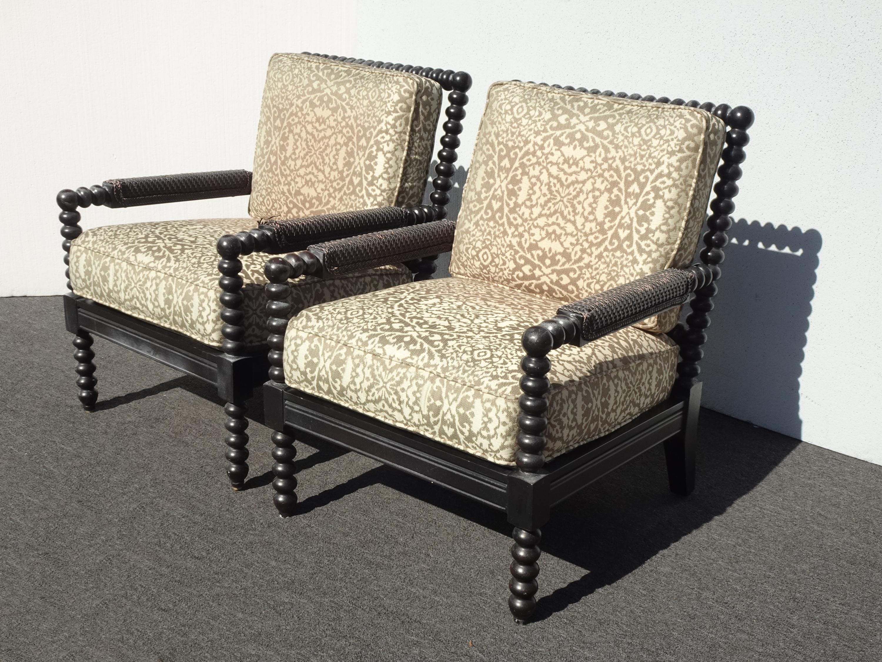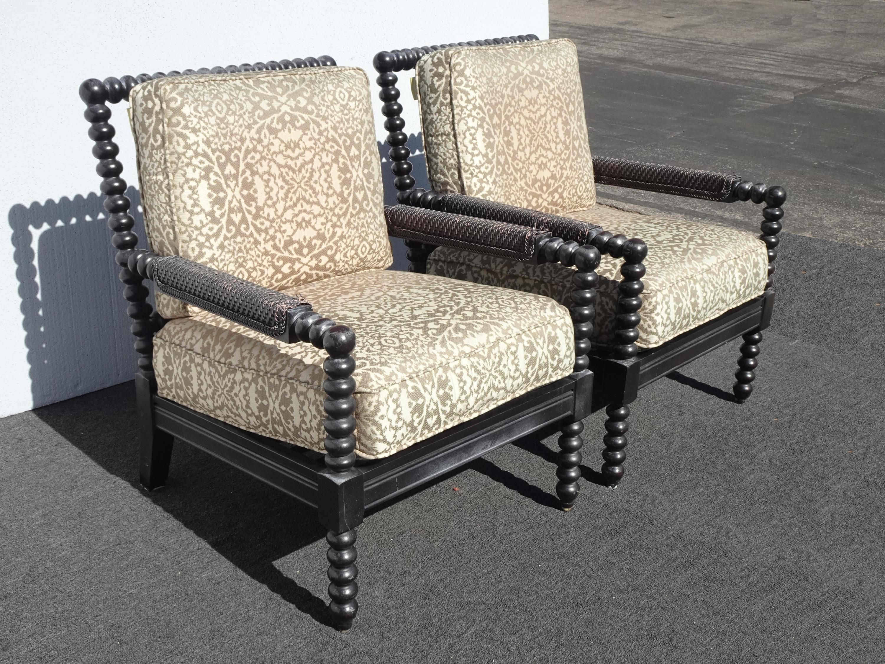 Pair of Tommy Bahama Metal Barley Twist Chairs w Leather Armrests ~ Bobbin Spool