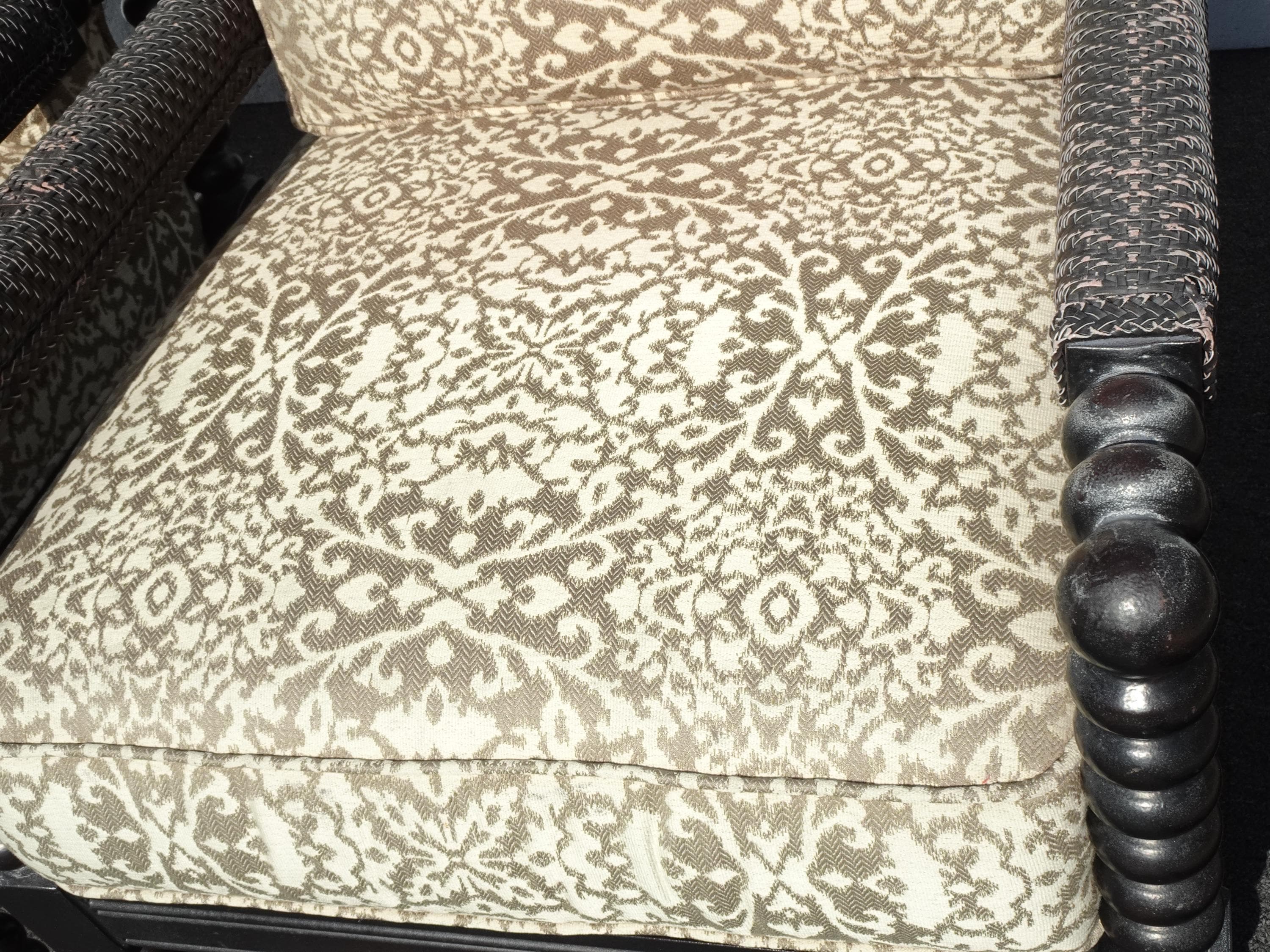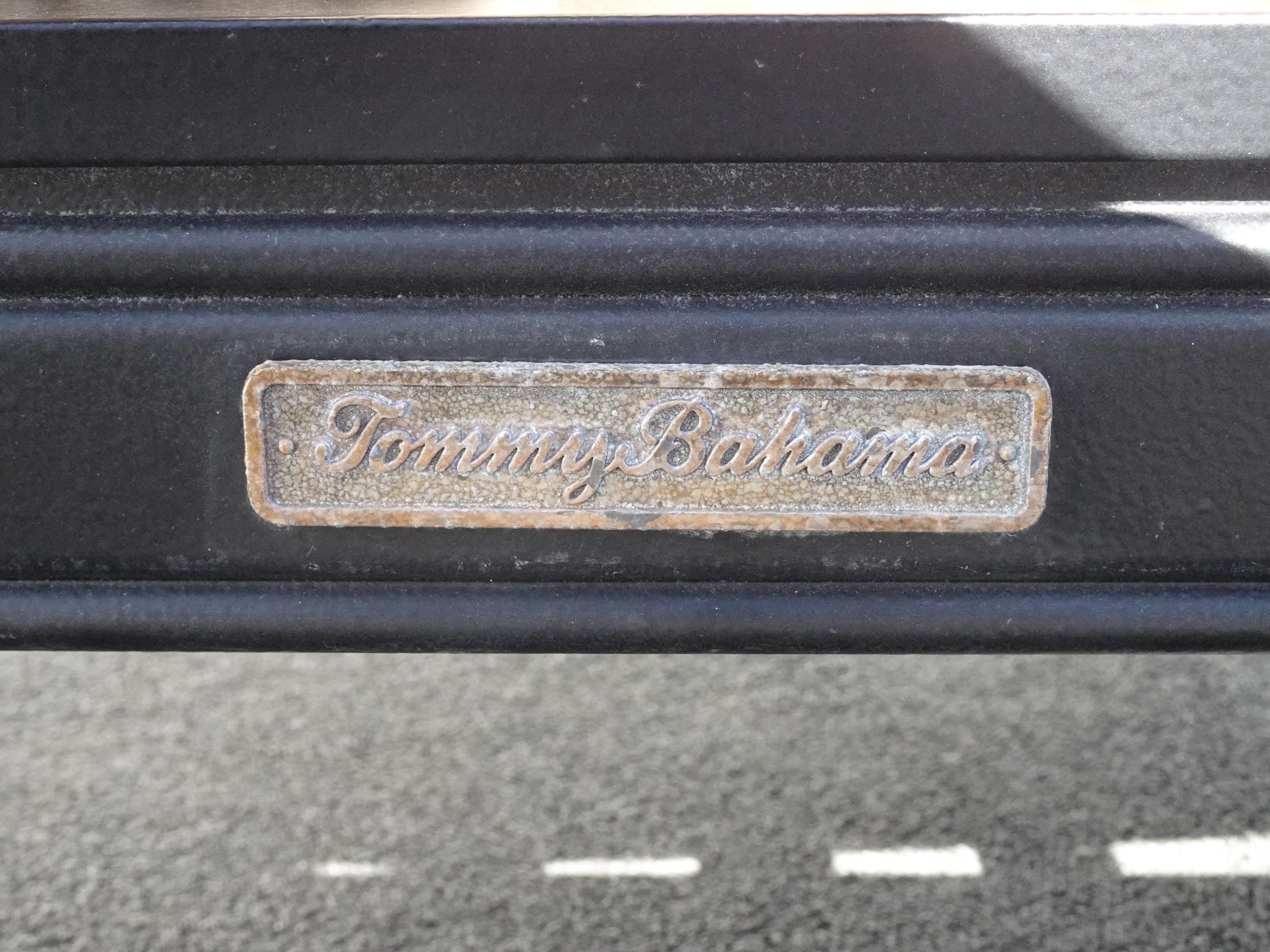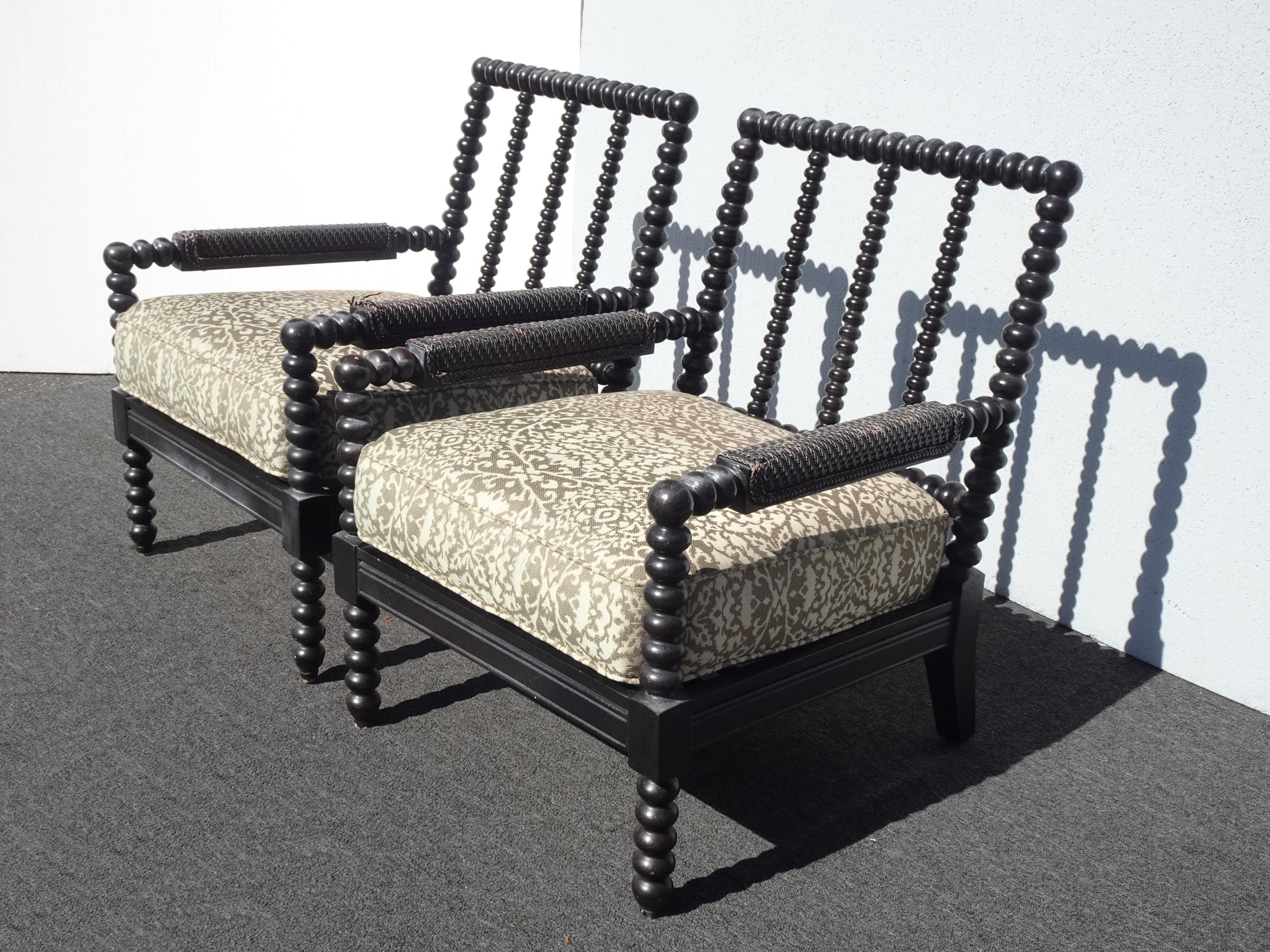 Pair of Tommy Bahama Metal Barley Twist Chairs w Leather Armrests ~ Bobbin Spool