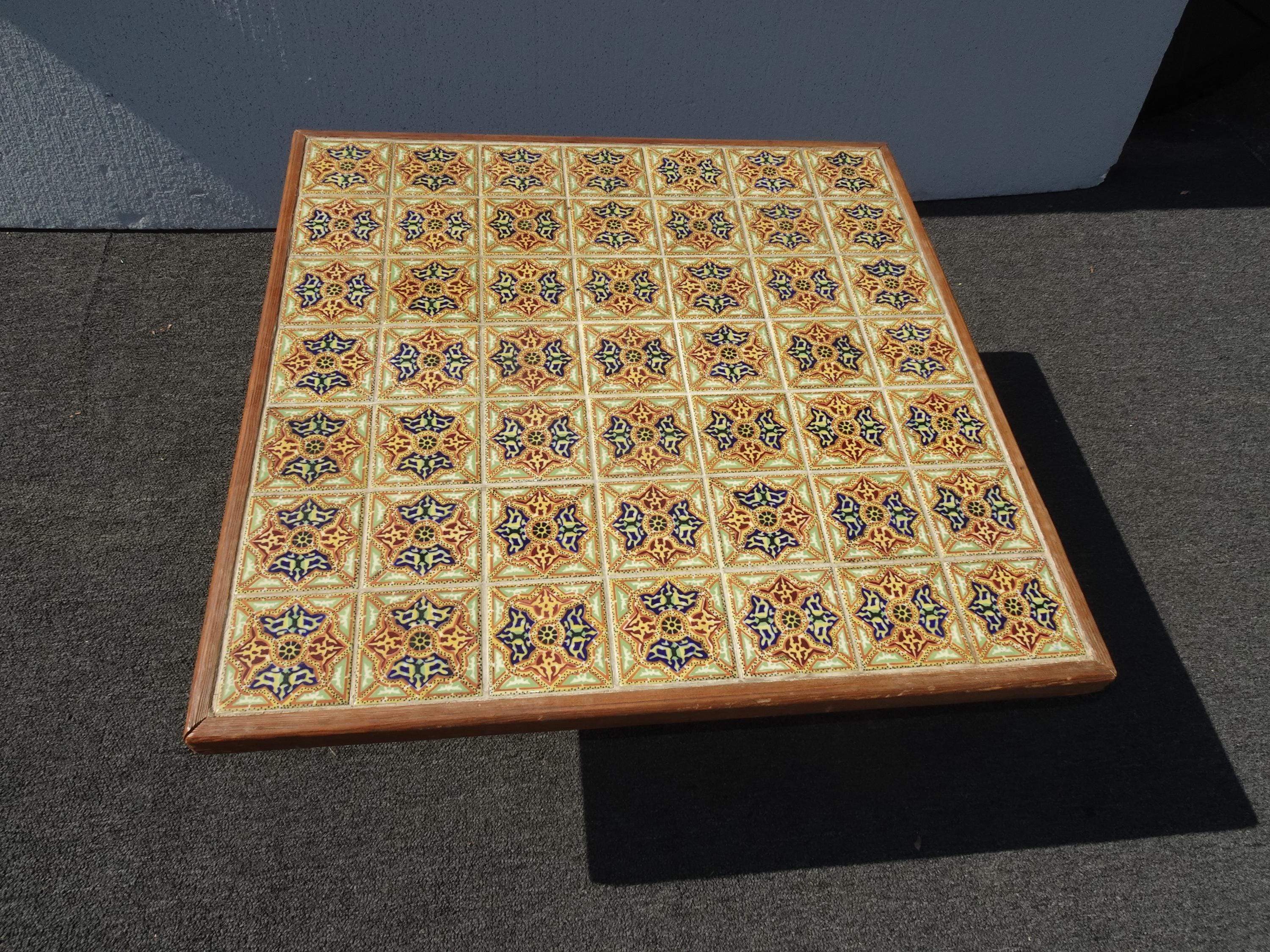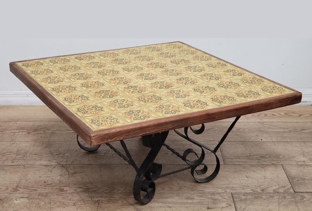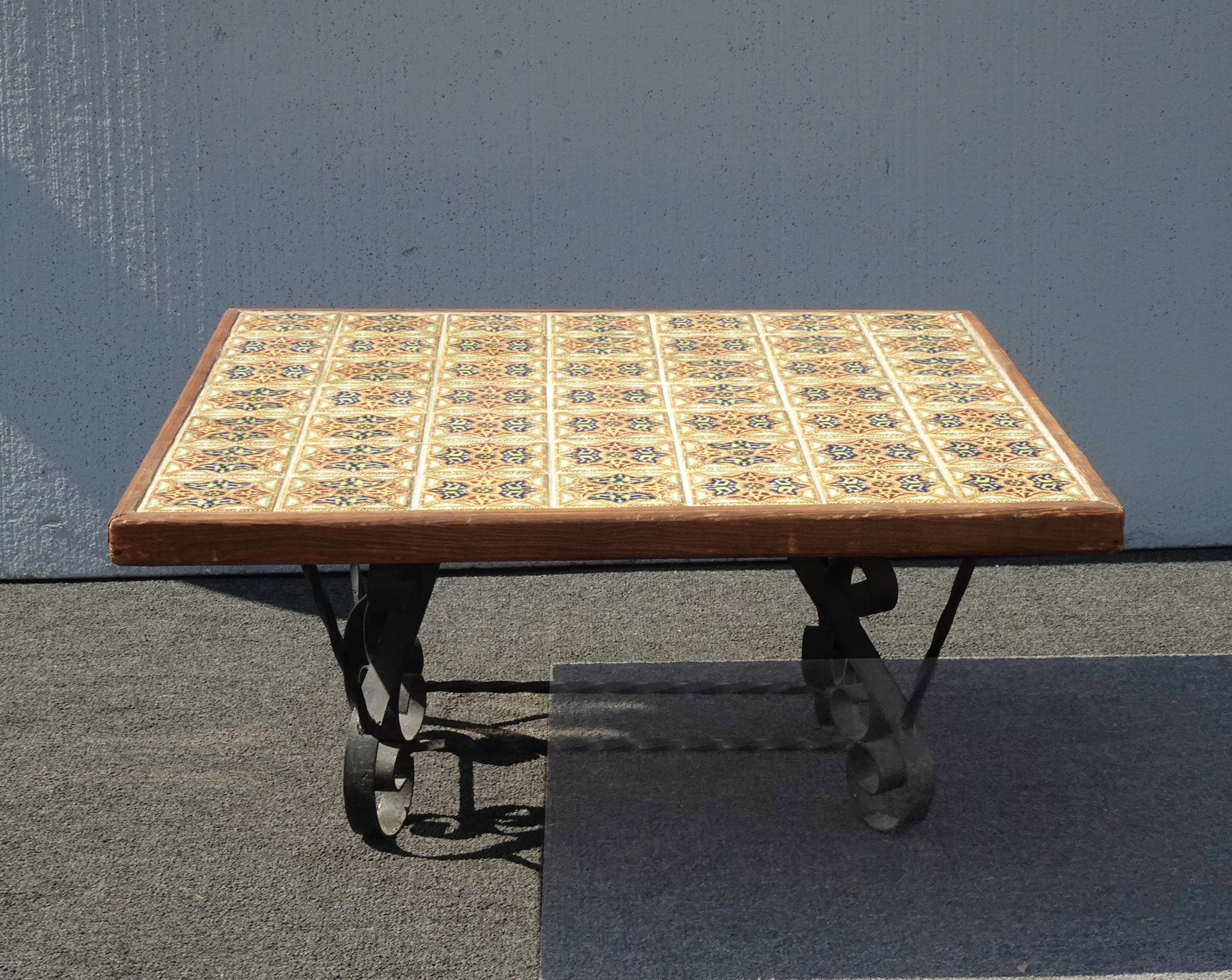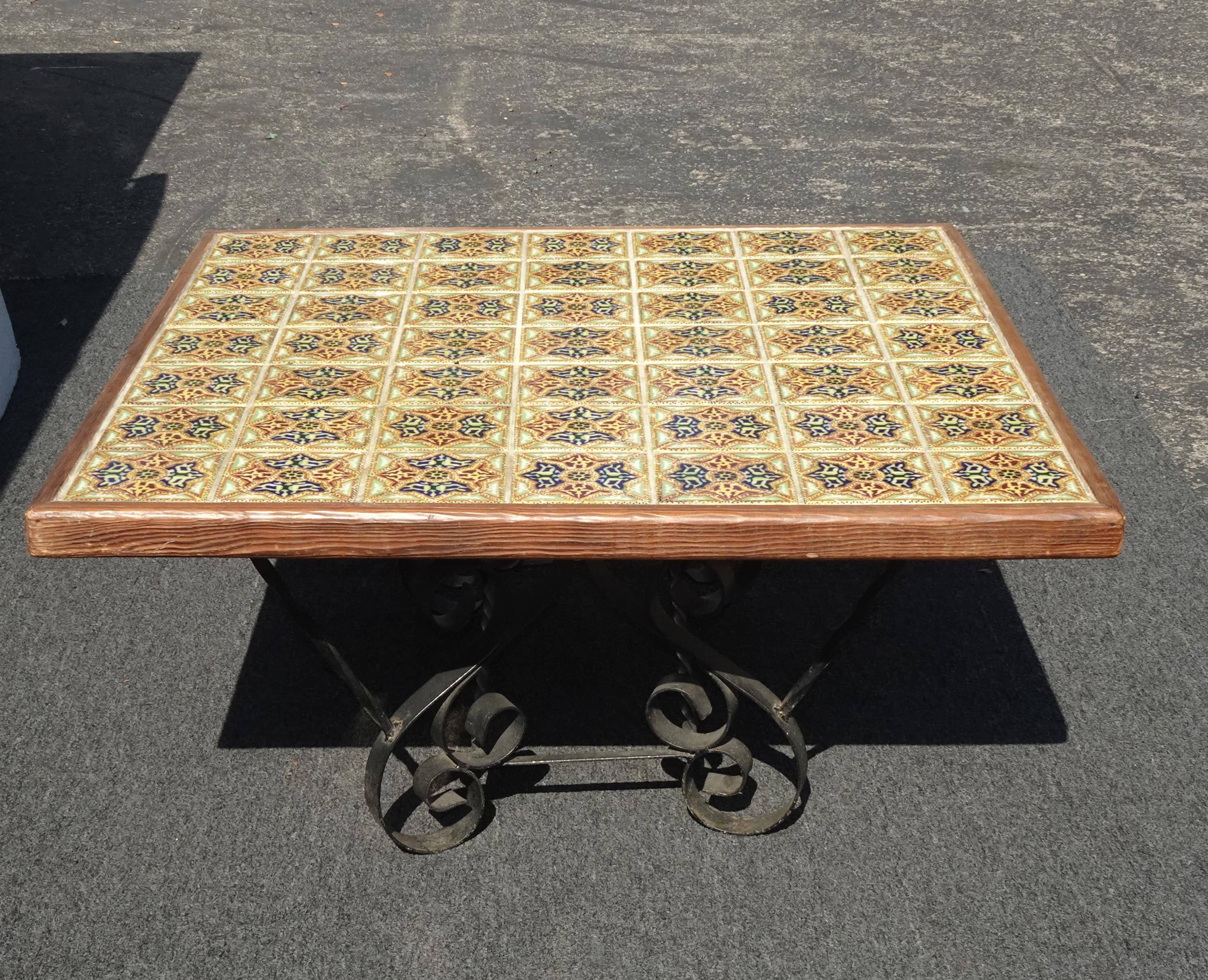 Vintage Montery Style Tiled Coffee Table w Wrought Iron Base ~ Spanish Style