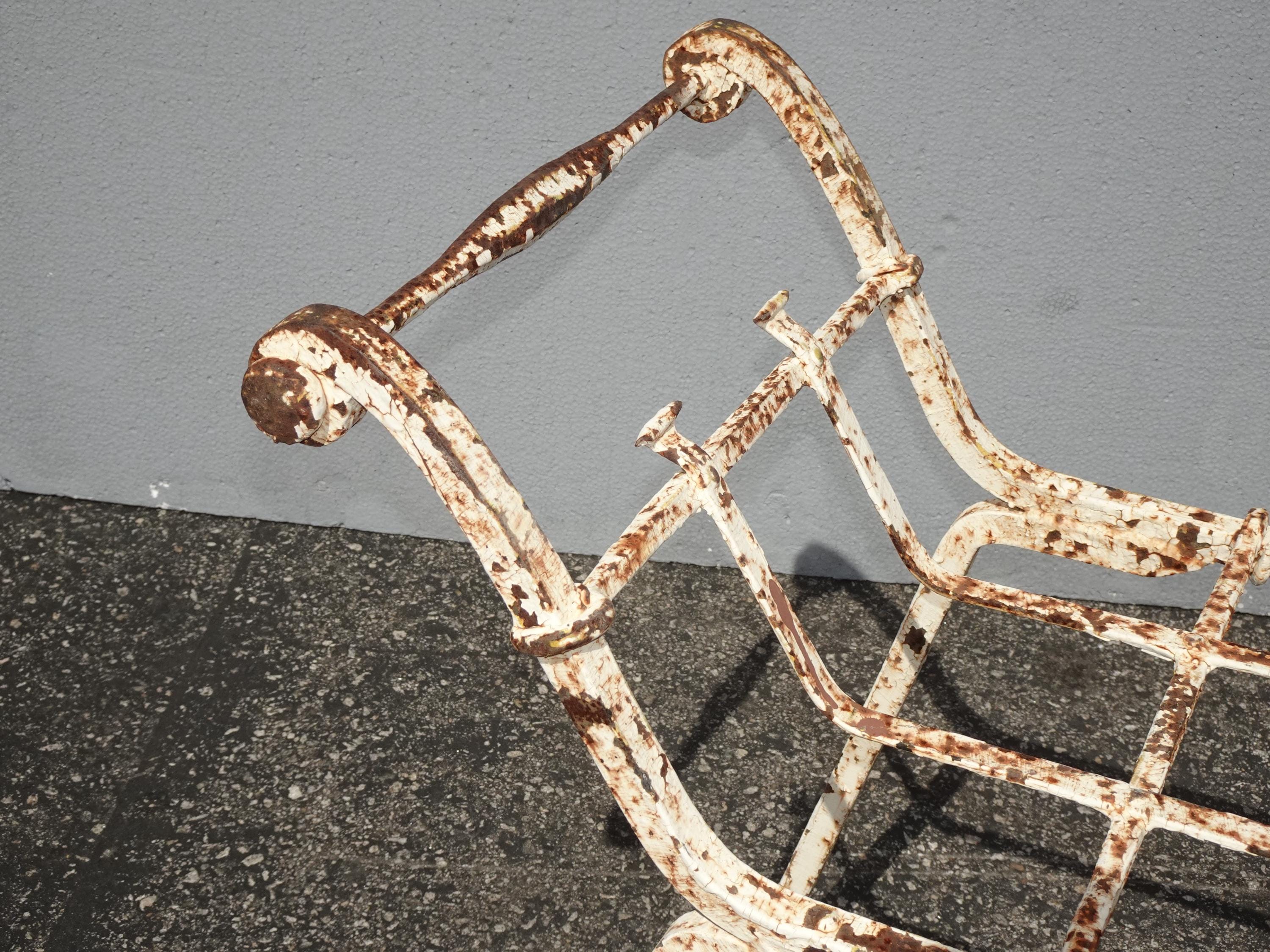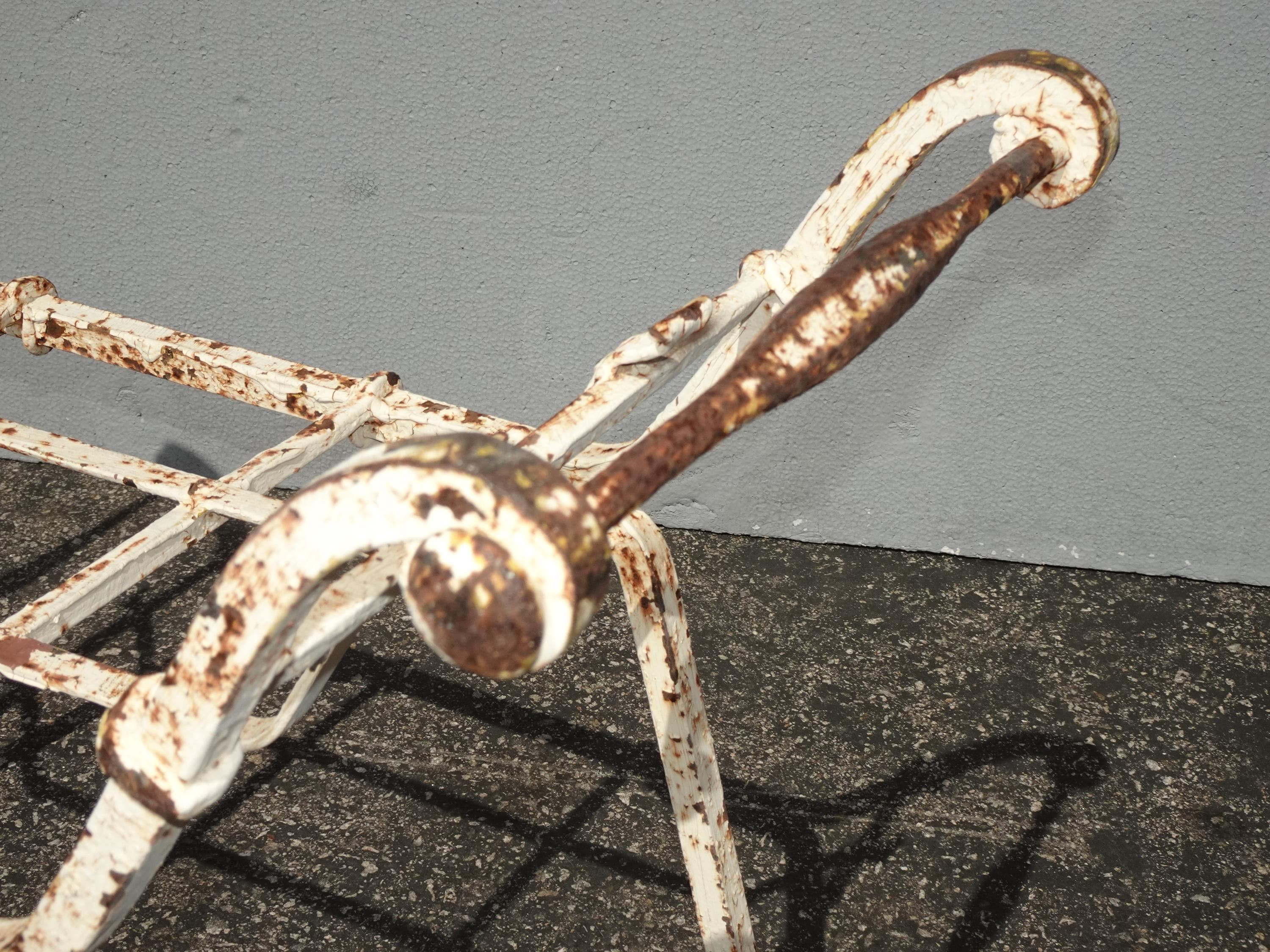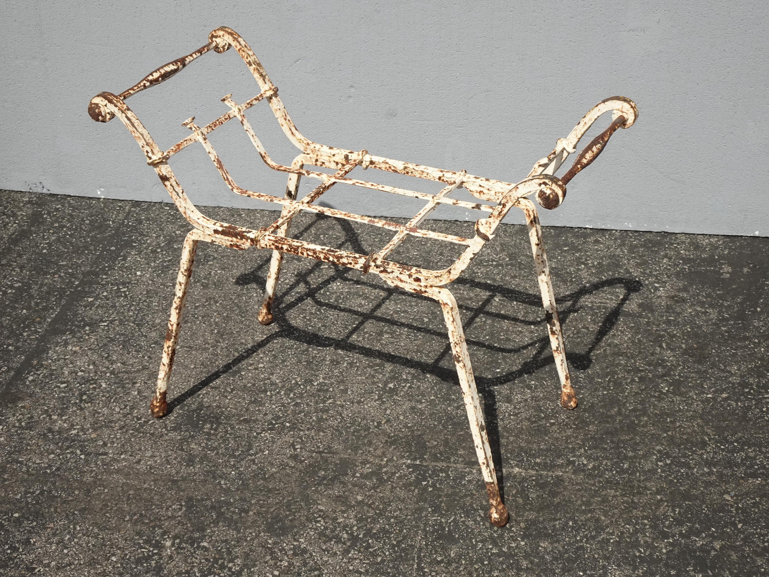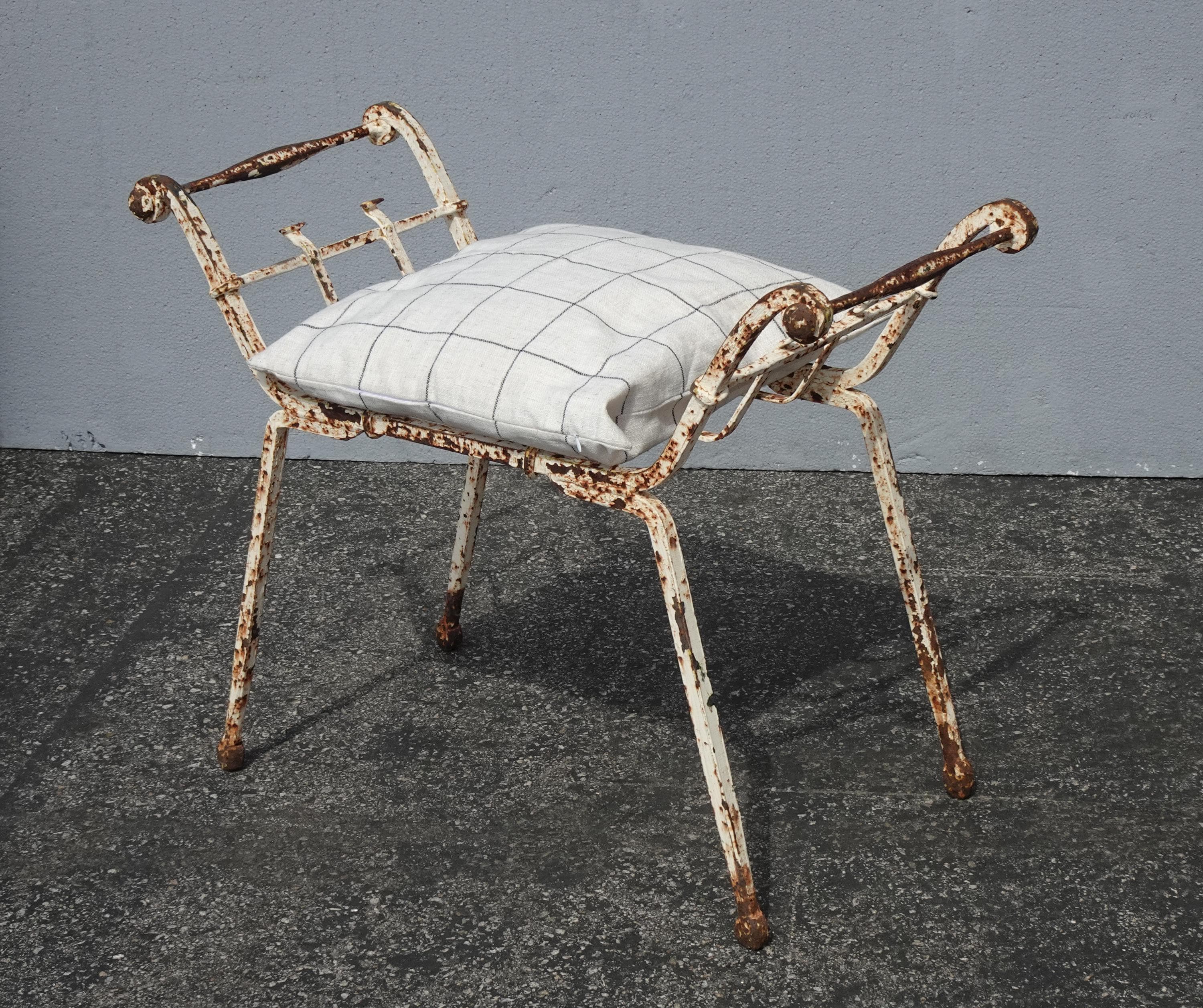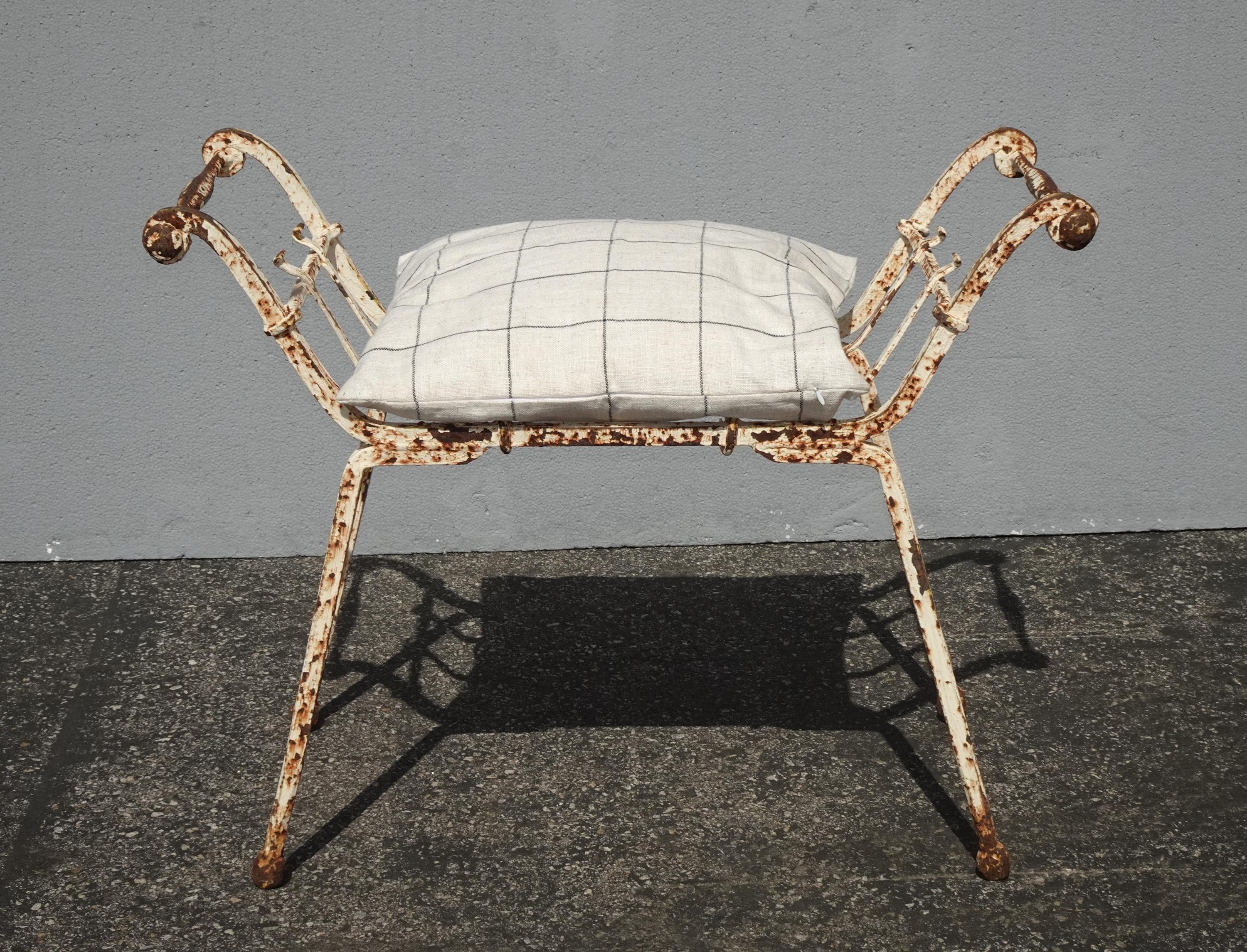Vintage Rustic Solid Wrought Iron Bench White Cushion French Country Style