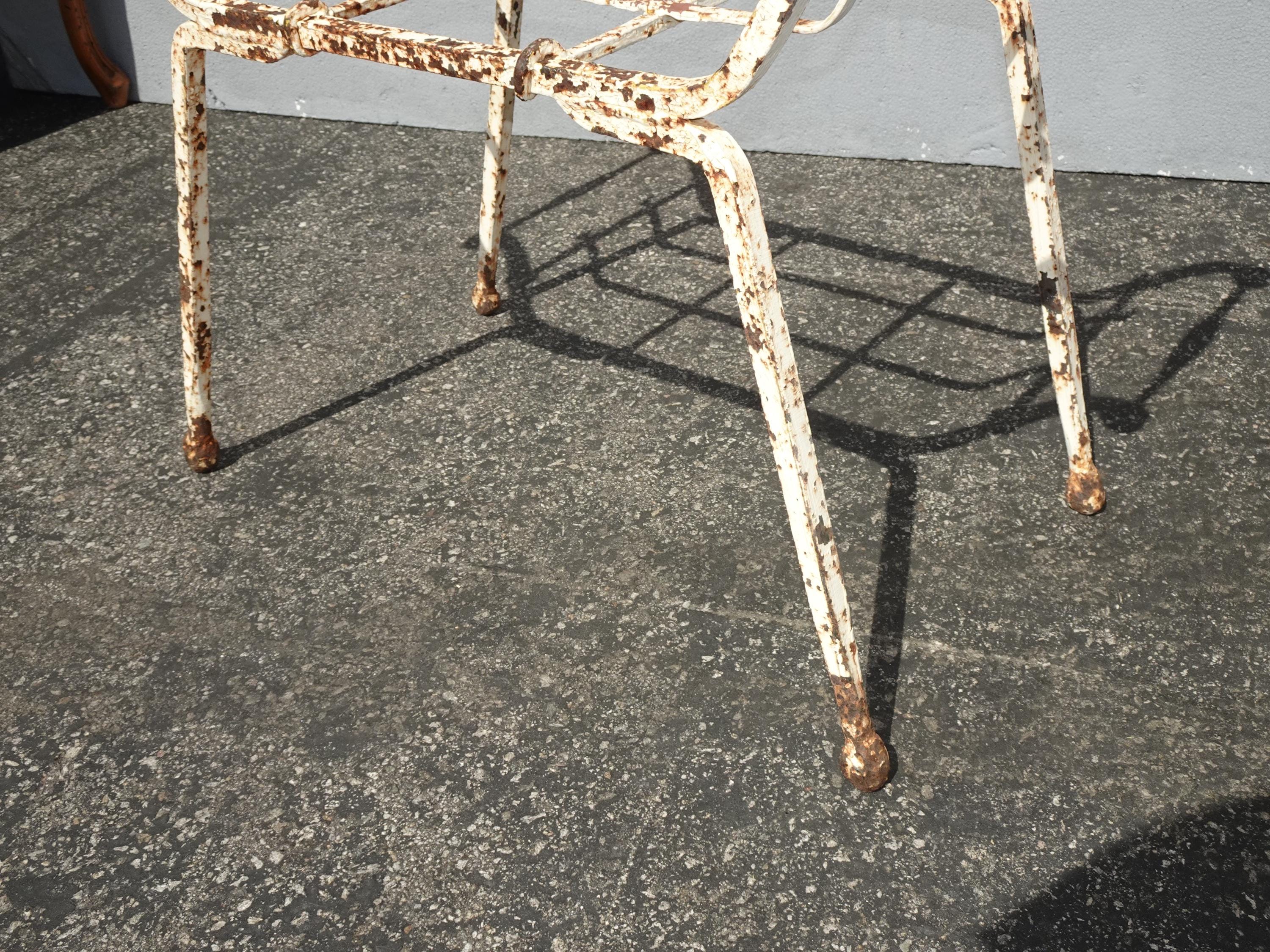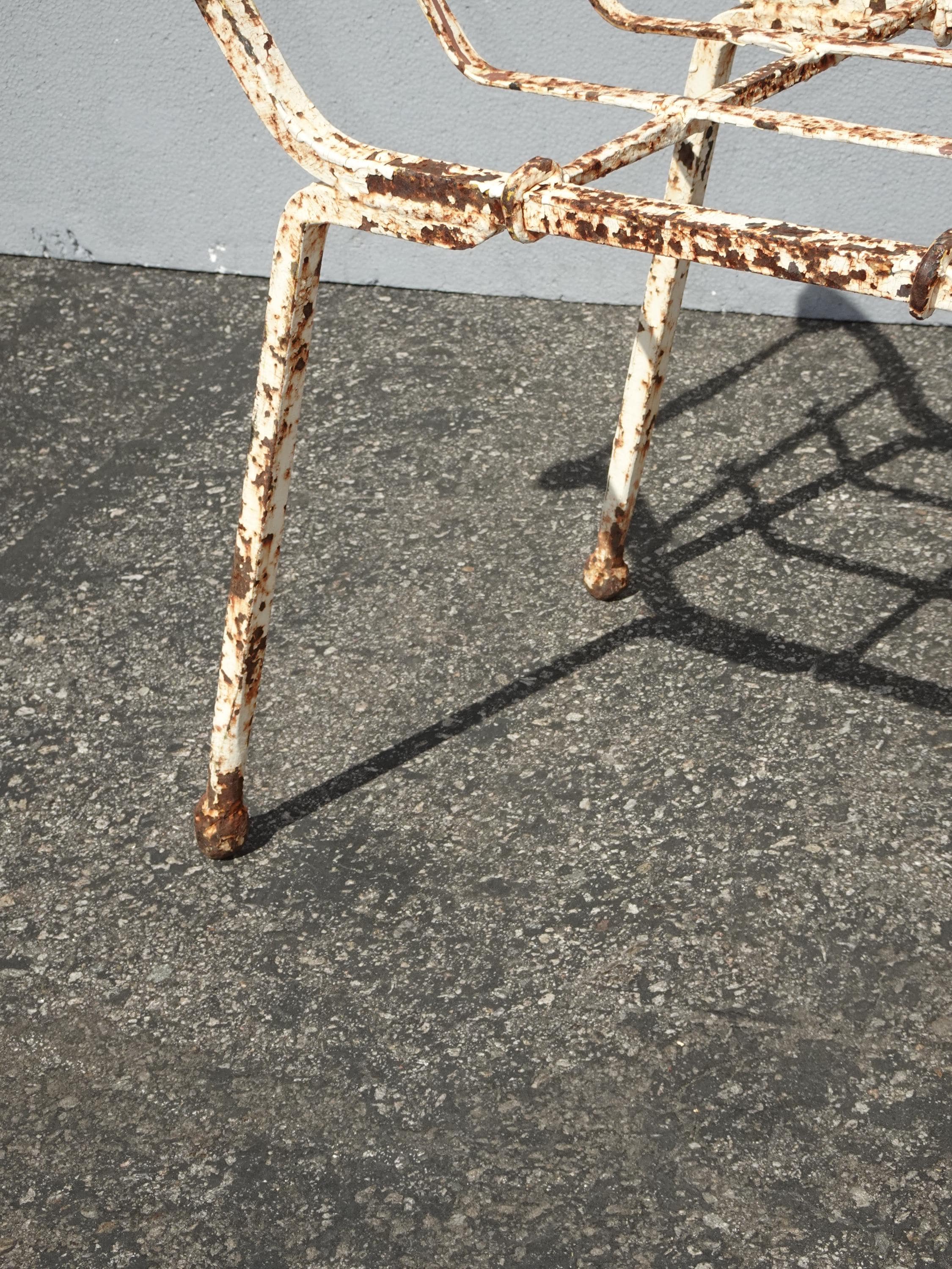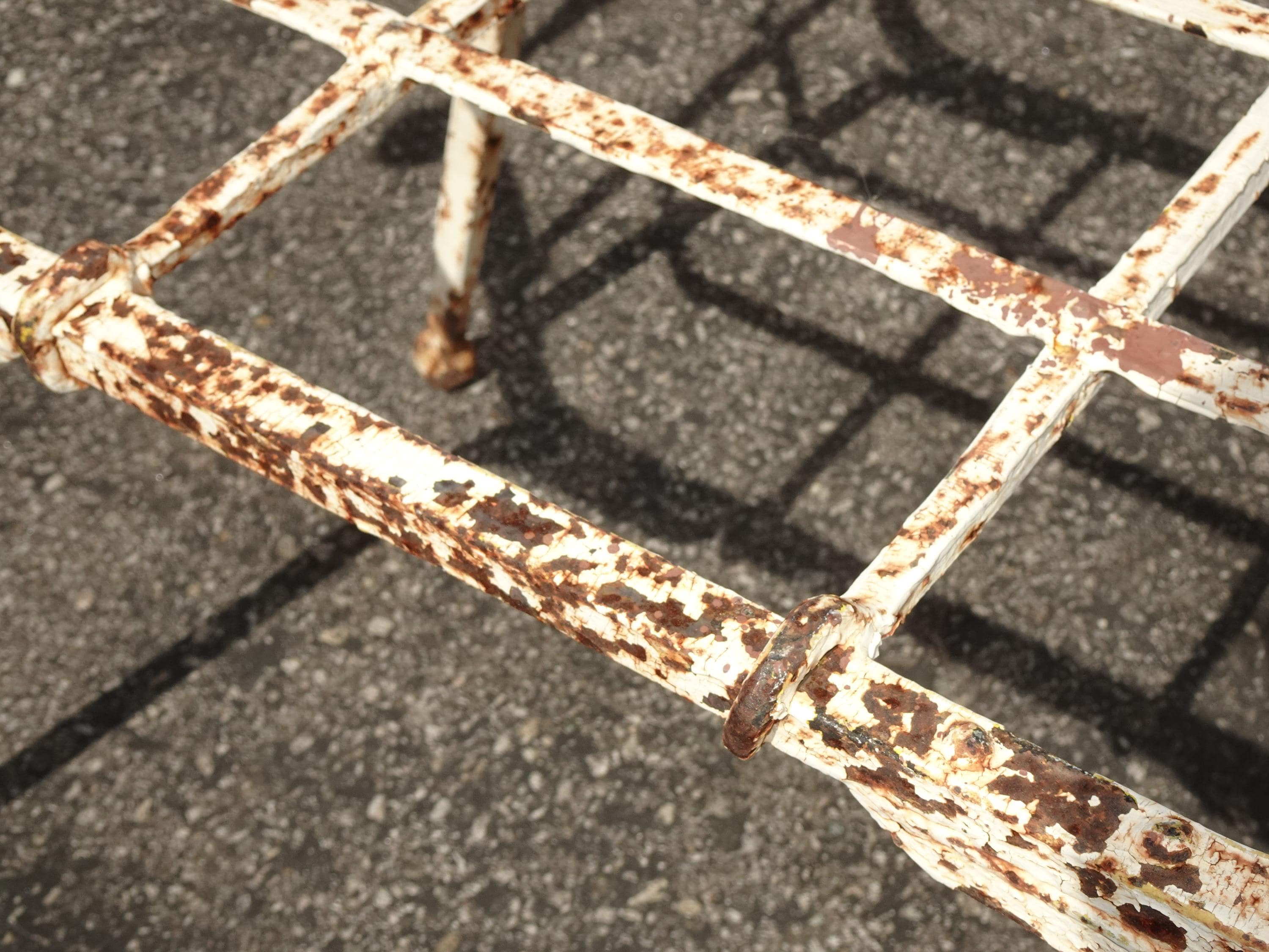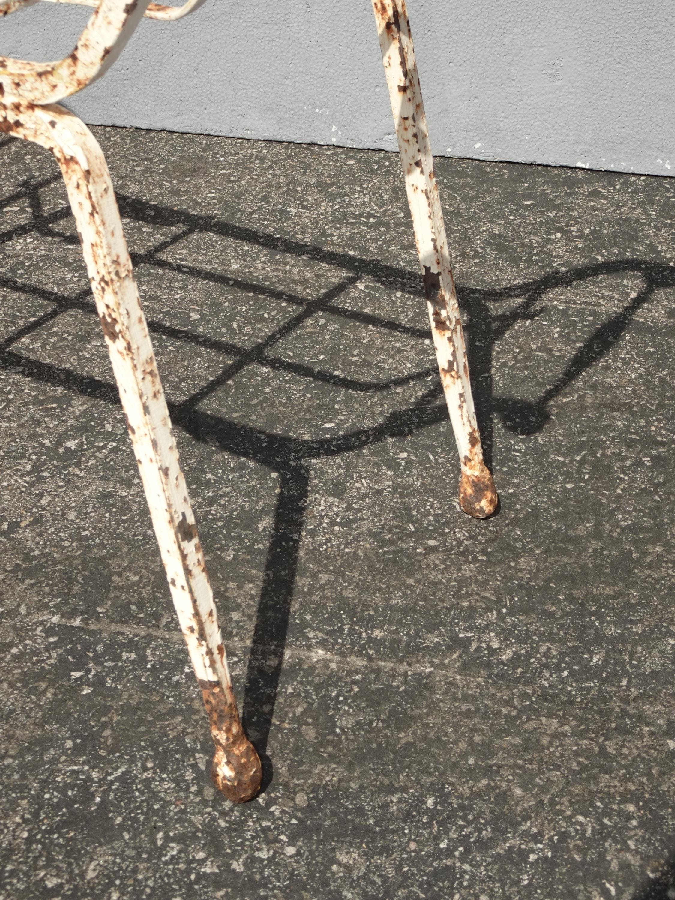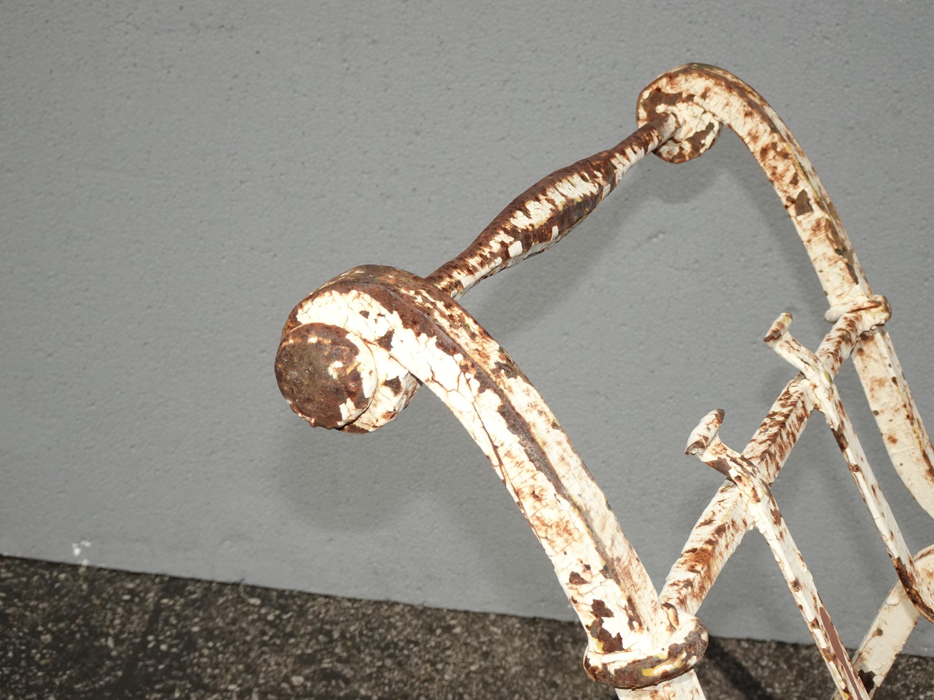 Vintage Rustic Solid Wrought Iron Bench White Cushion French Country Style