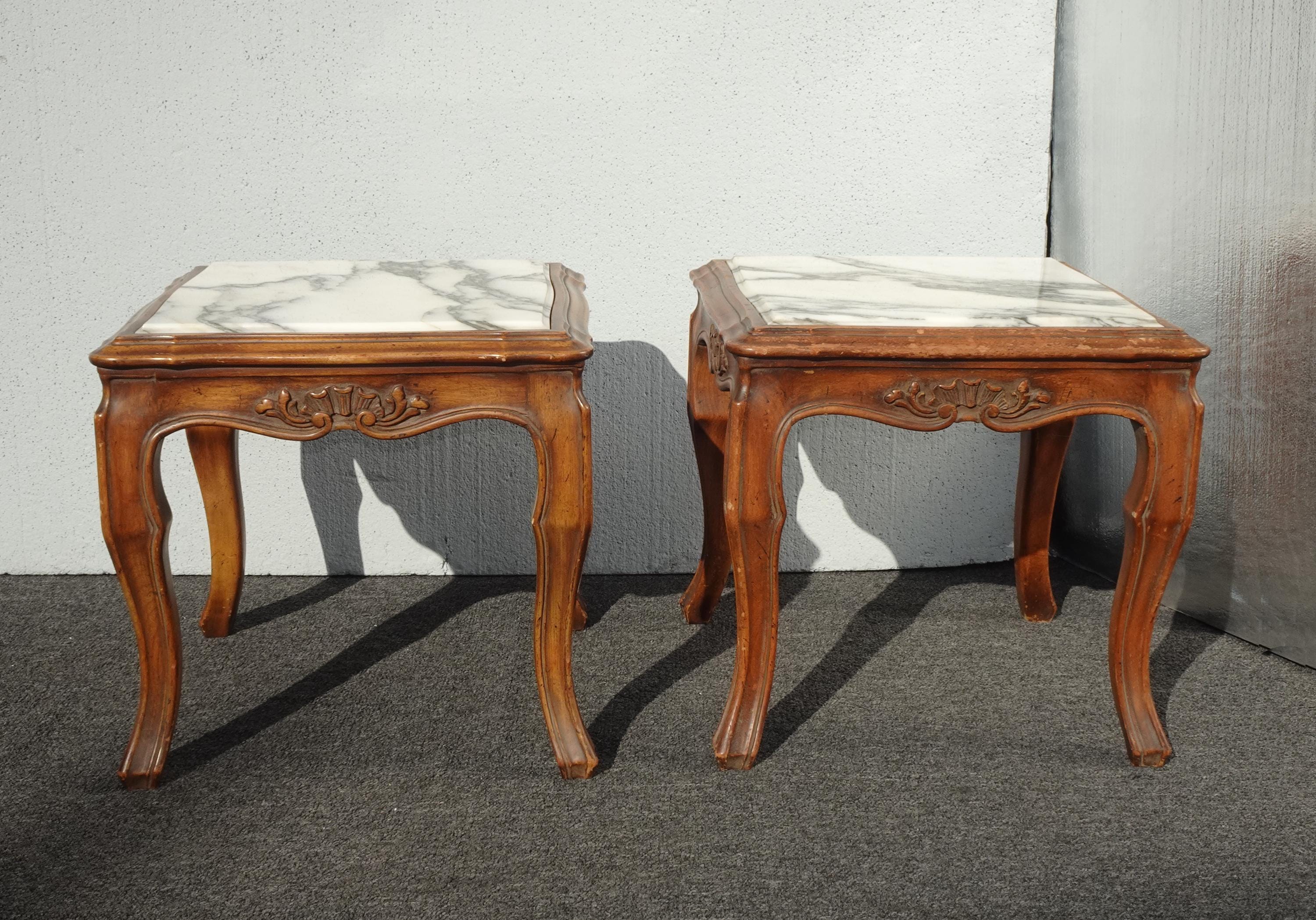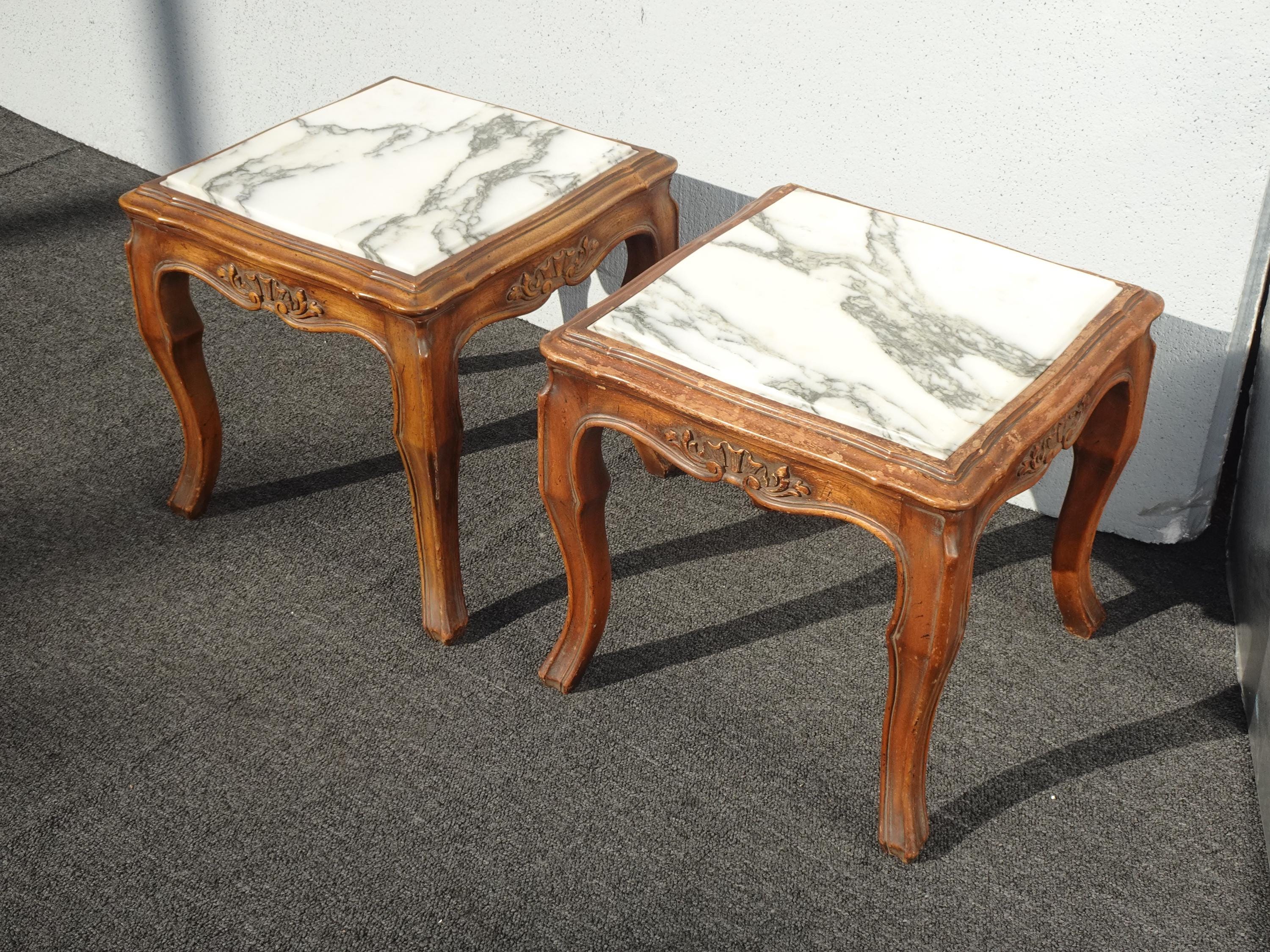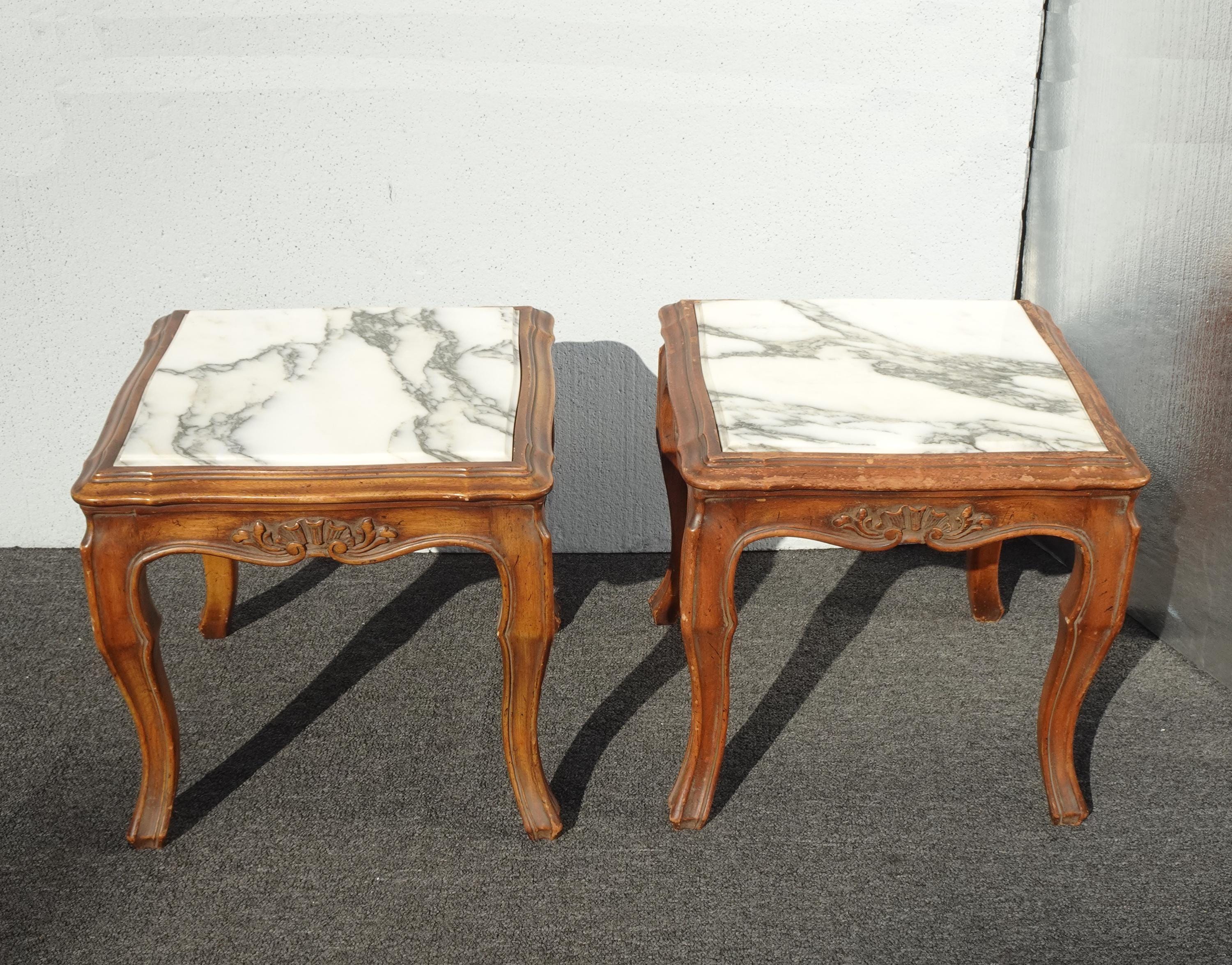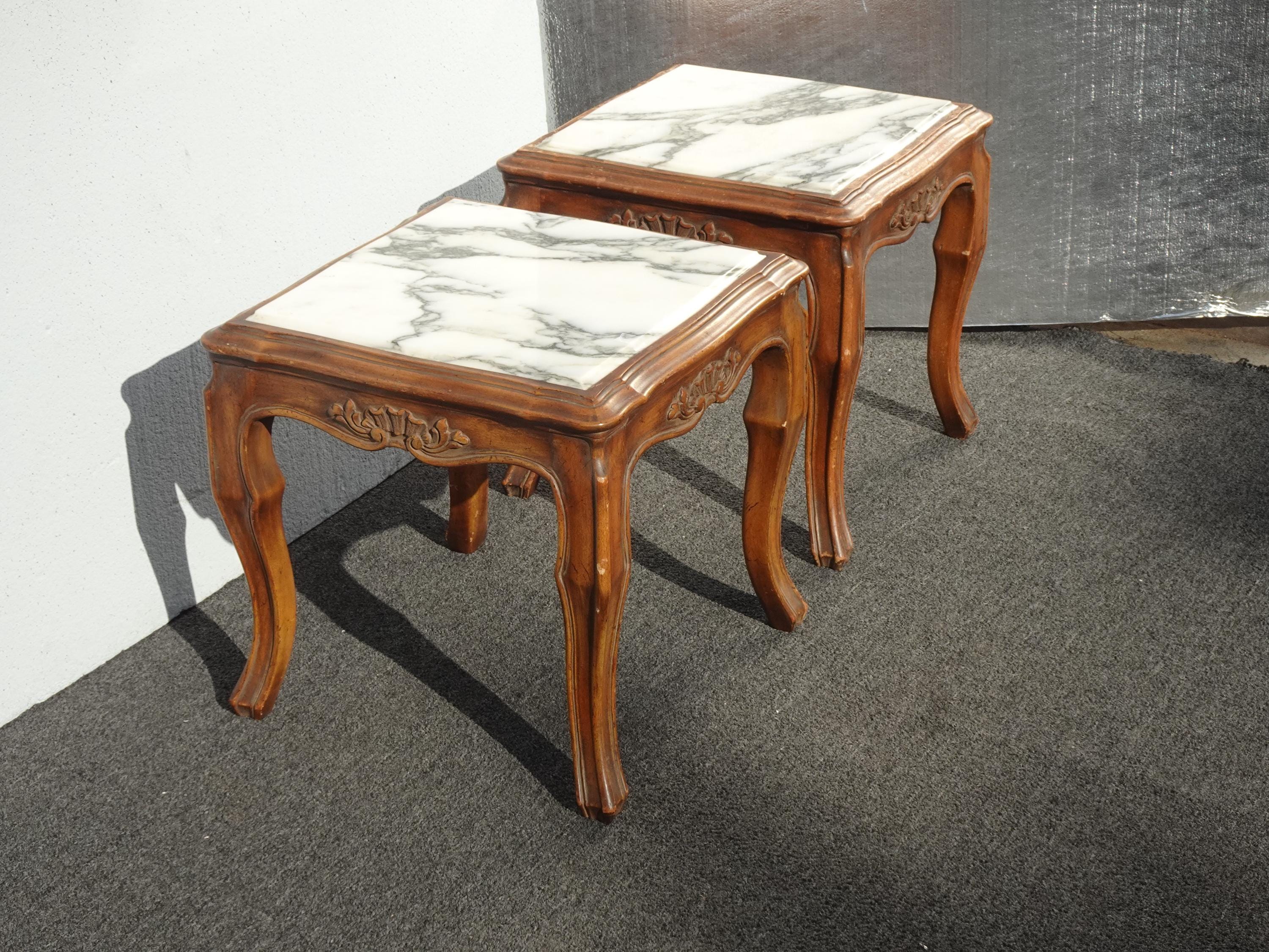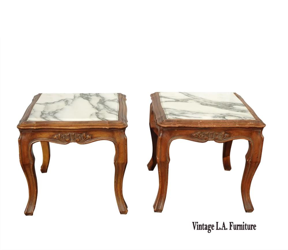 Pair of Vintage French Provincial White Marble Top End Tables ~ Nightstands