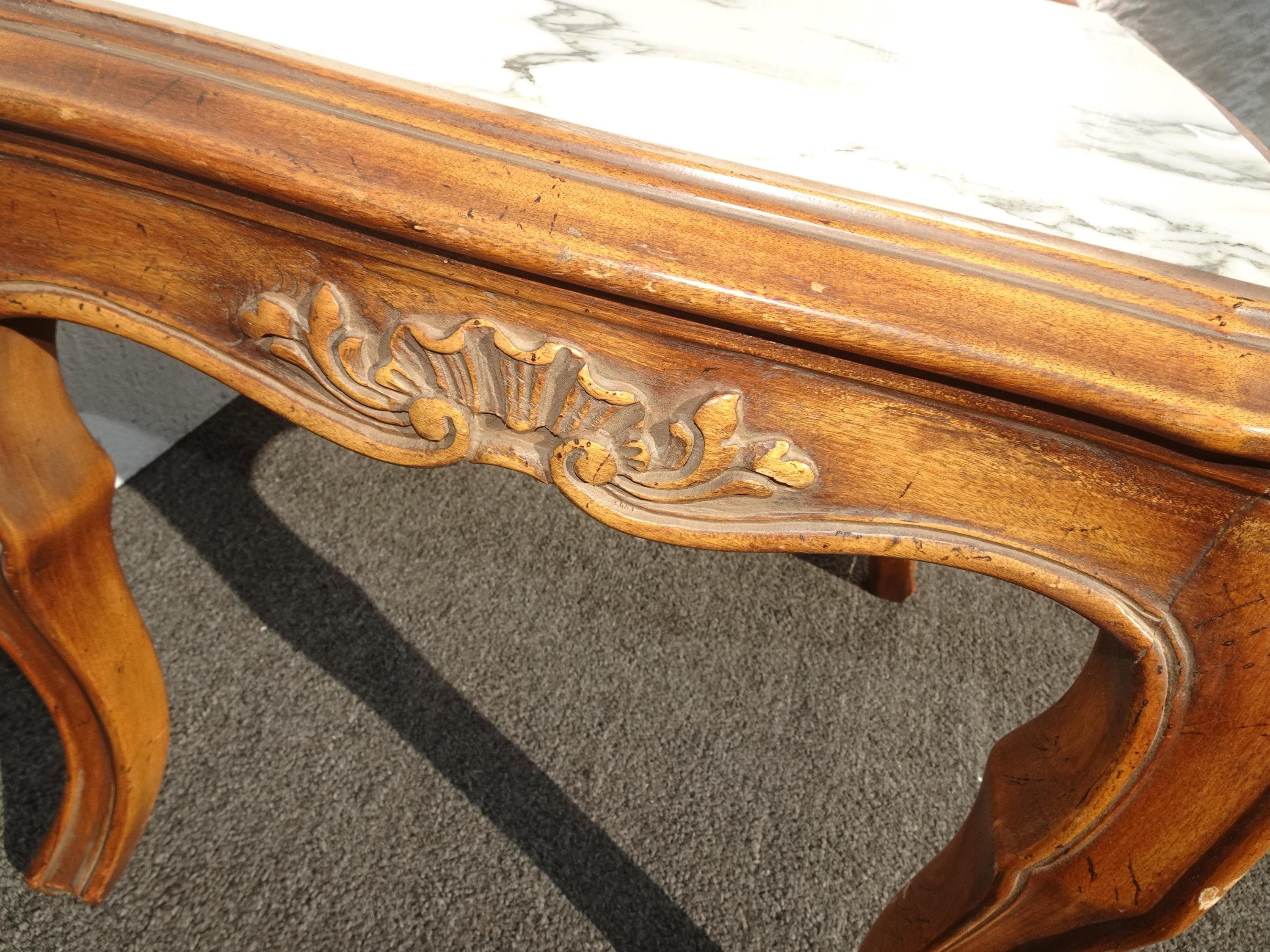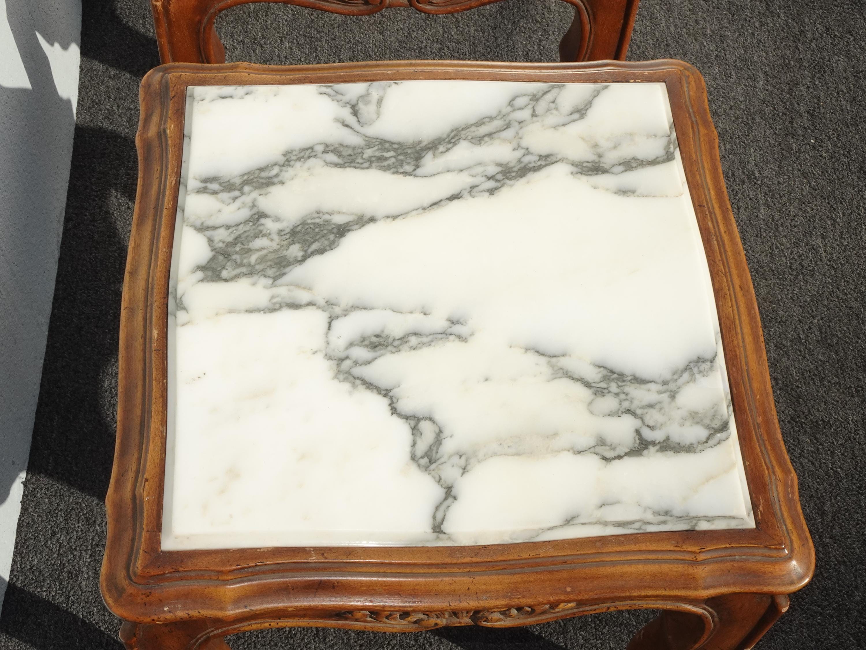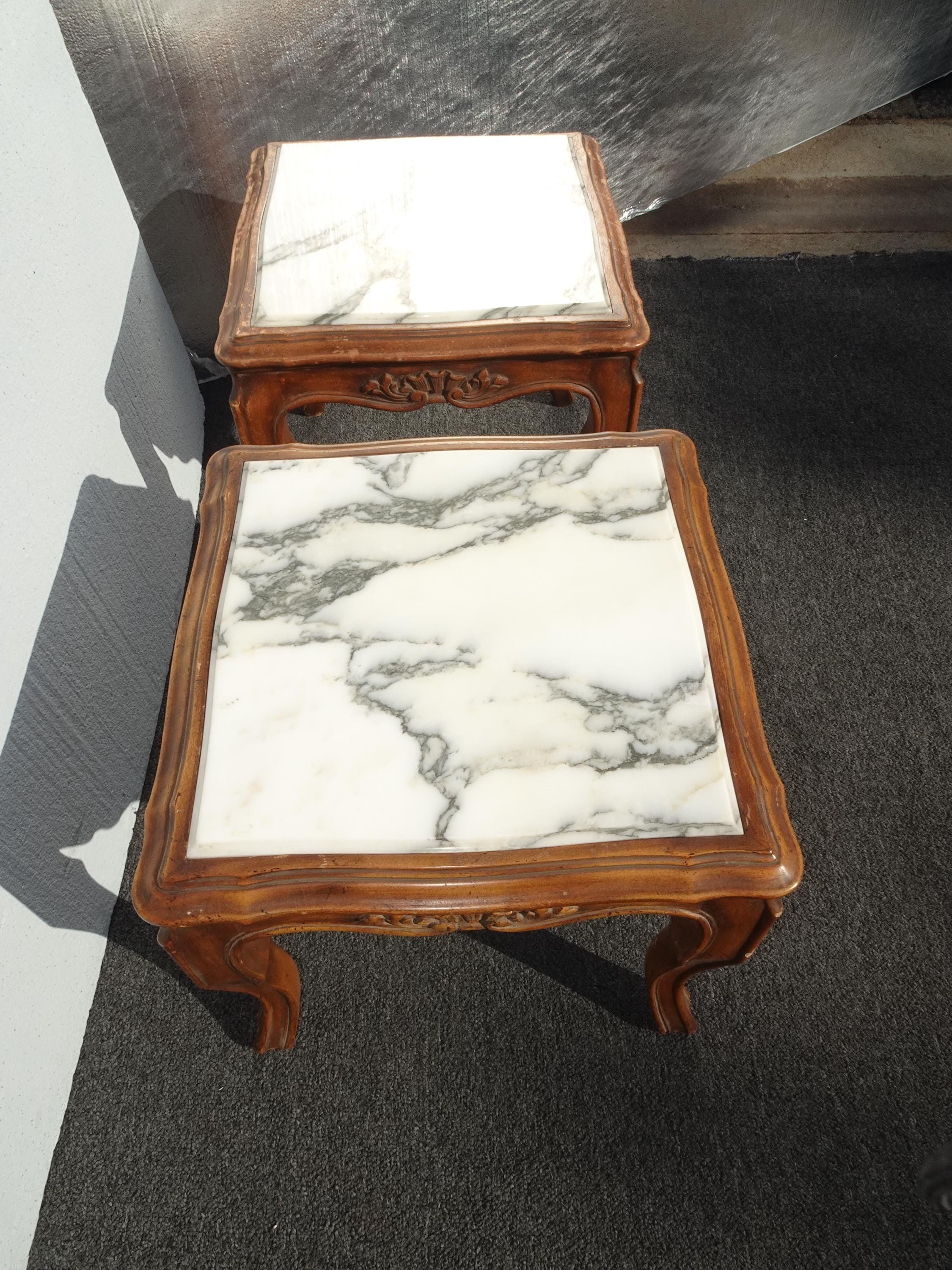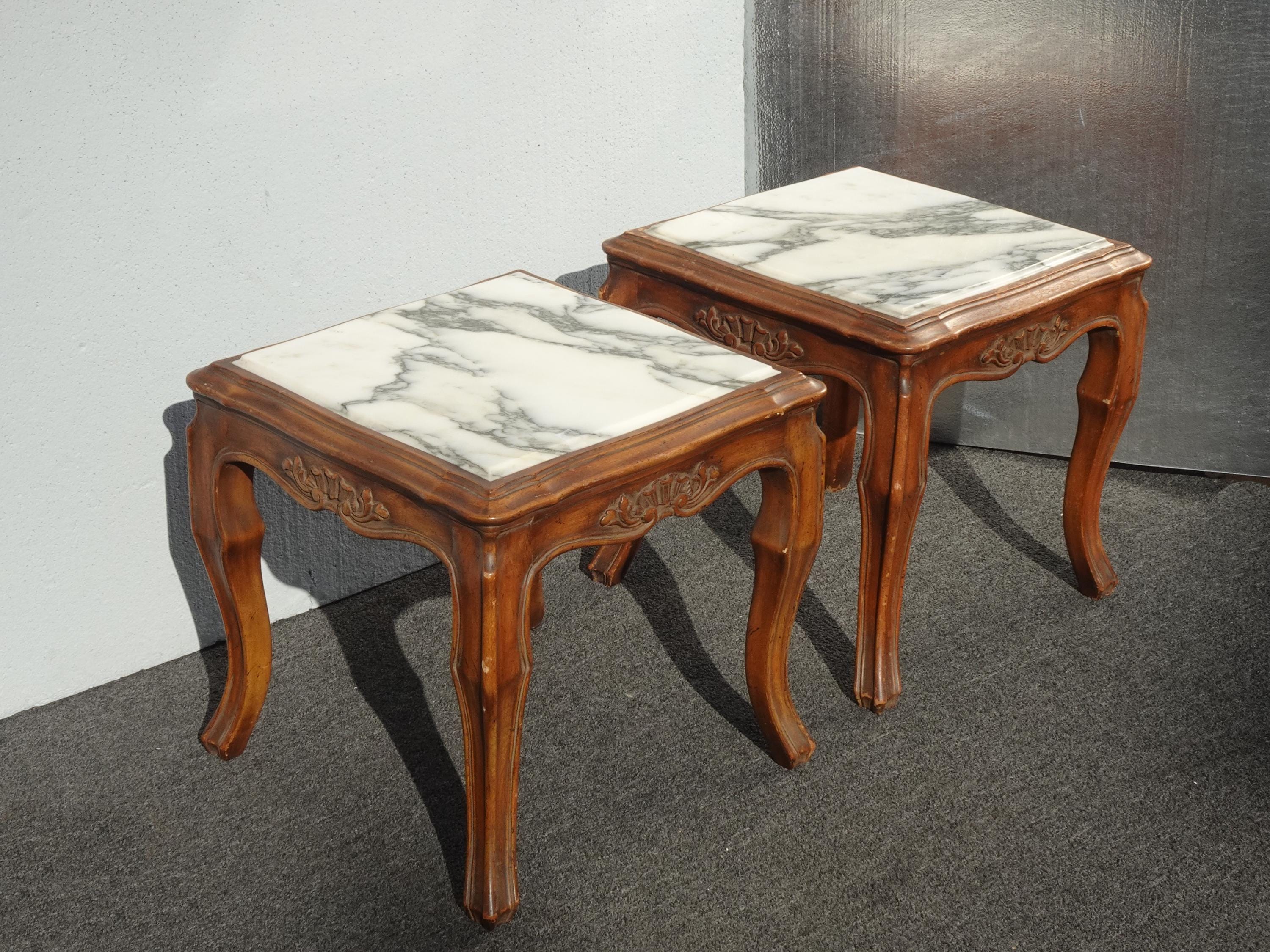 Pair of Vintage French Provincial White Marble Top End Tables ~ Nightstands