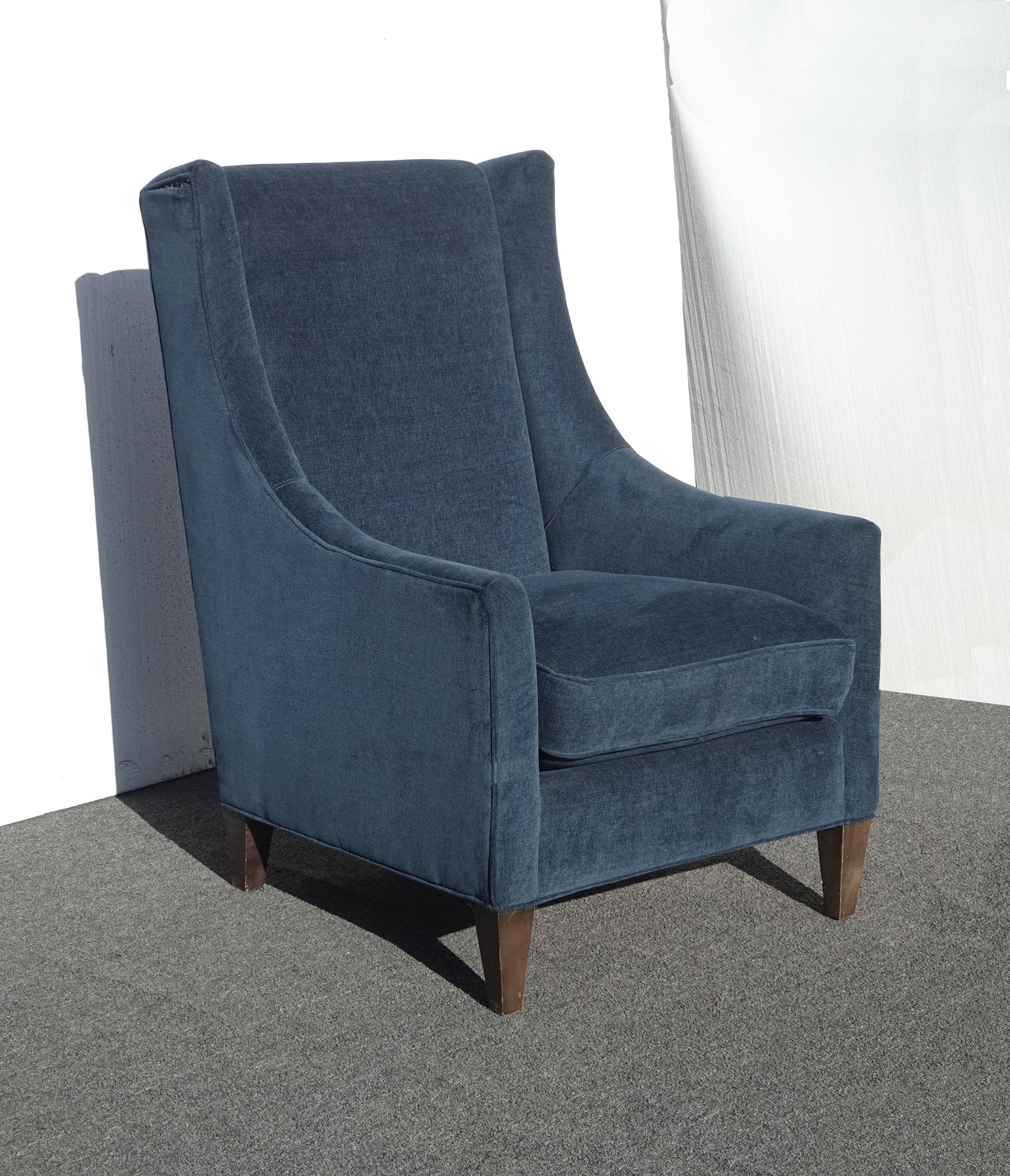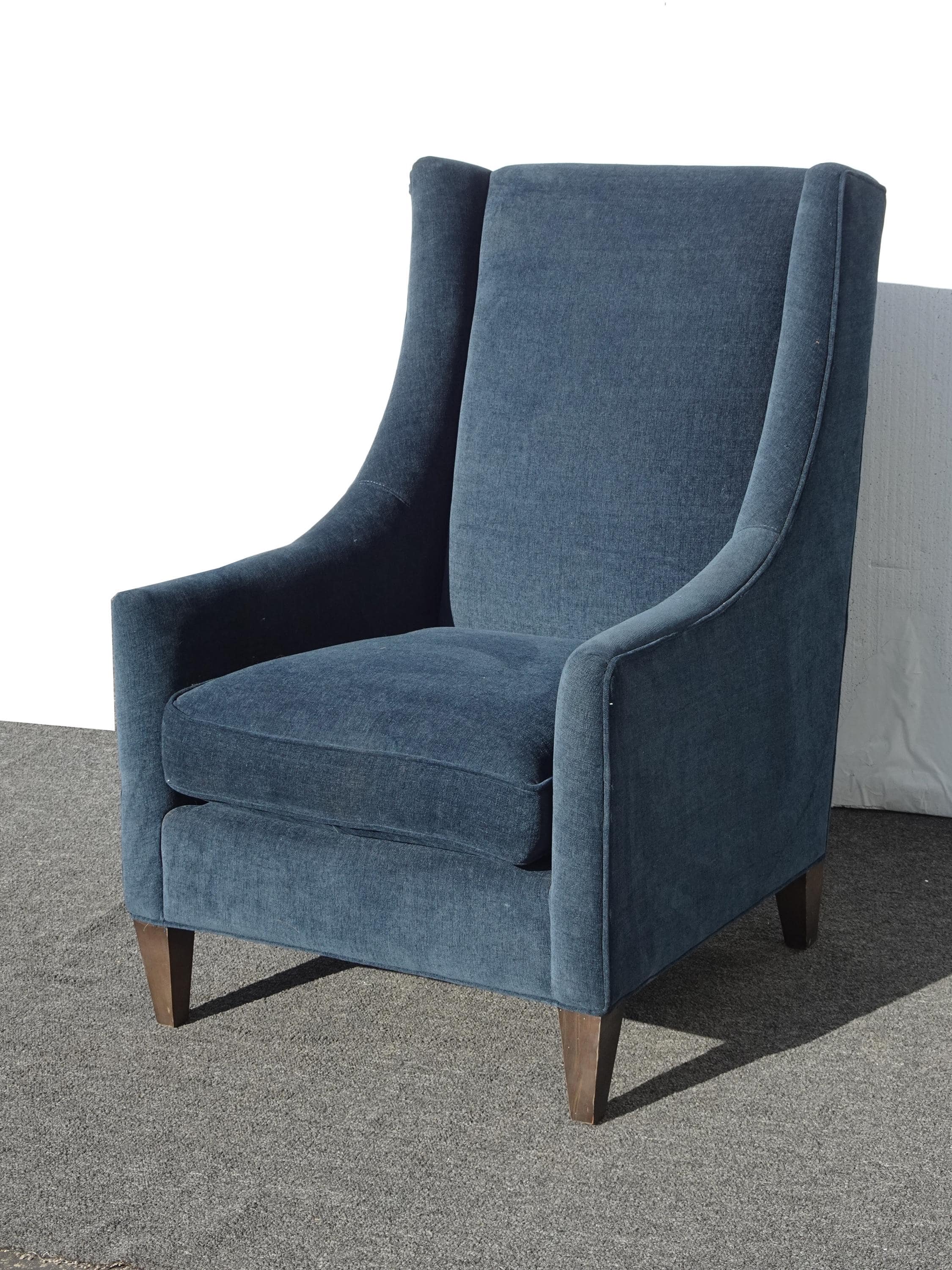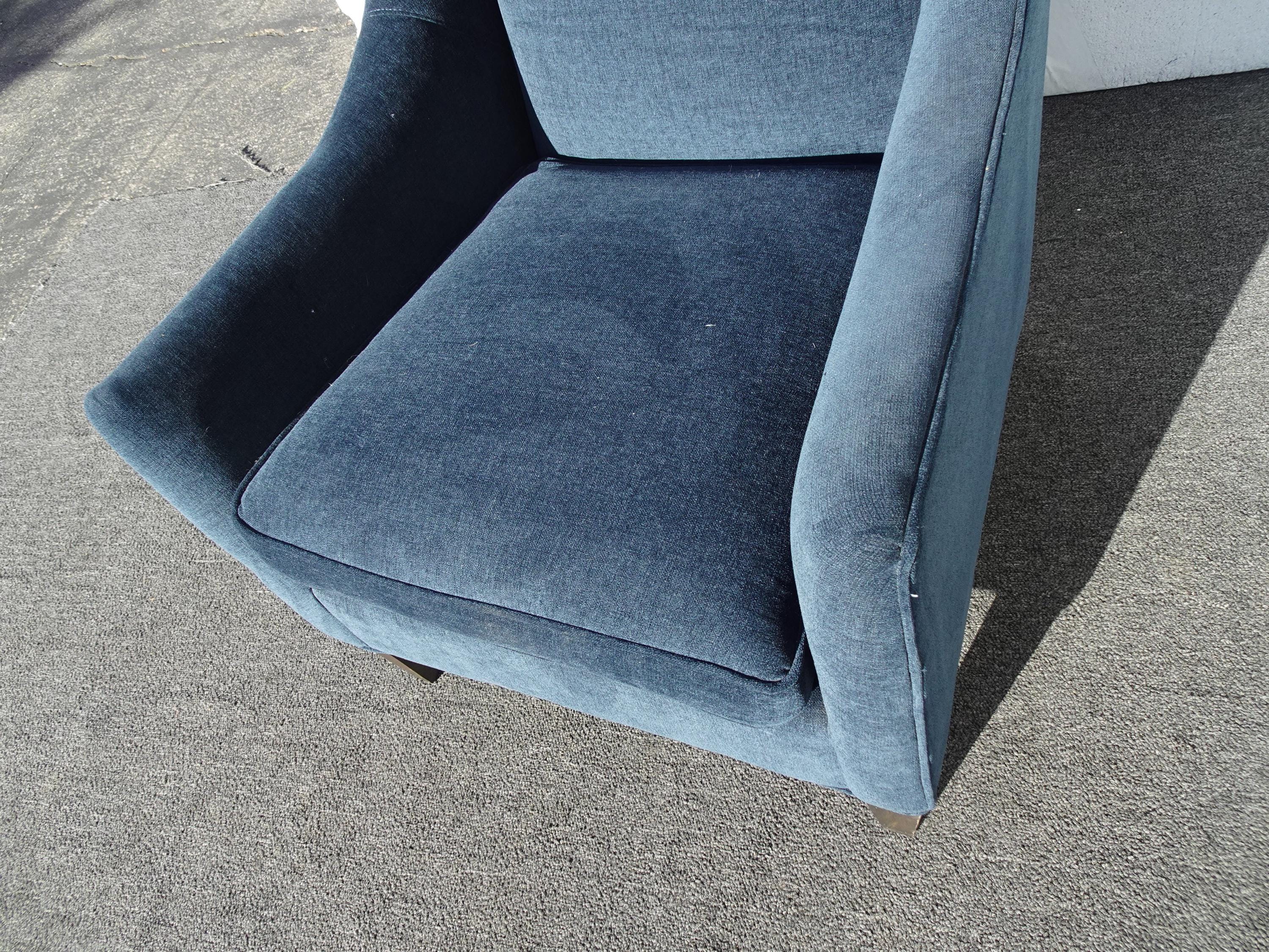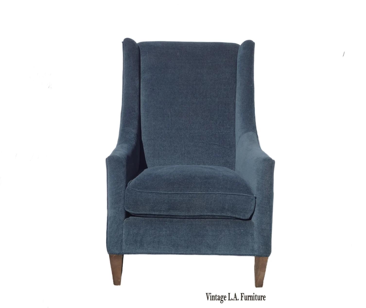 Vintage H D Buttercup Blue Velvet Wingback Lounge Chair