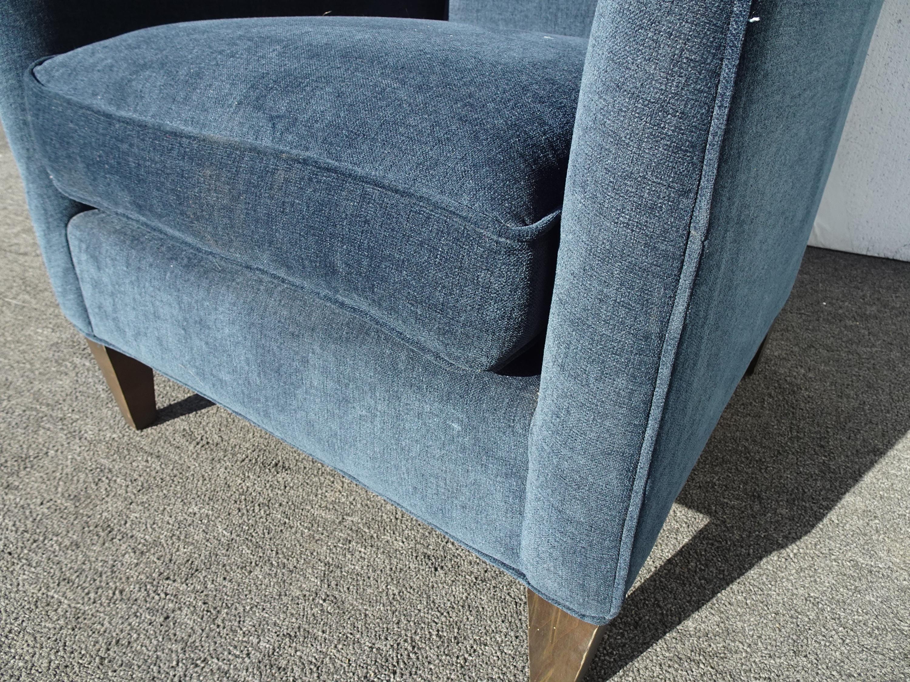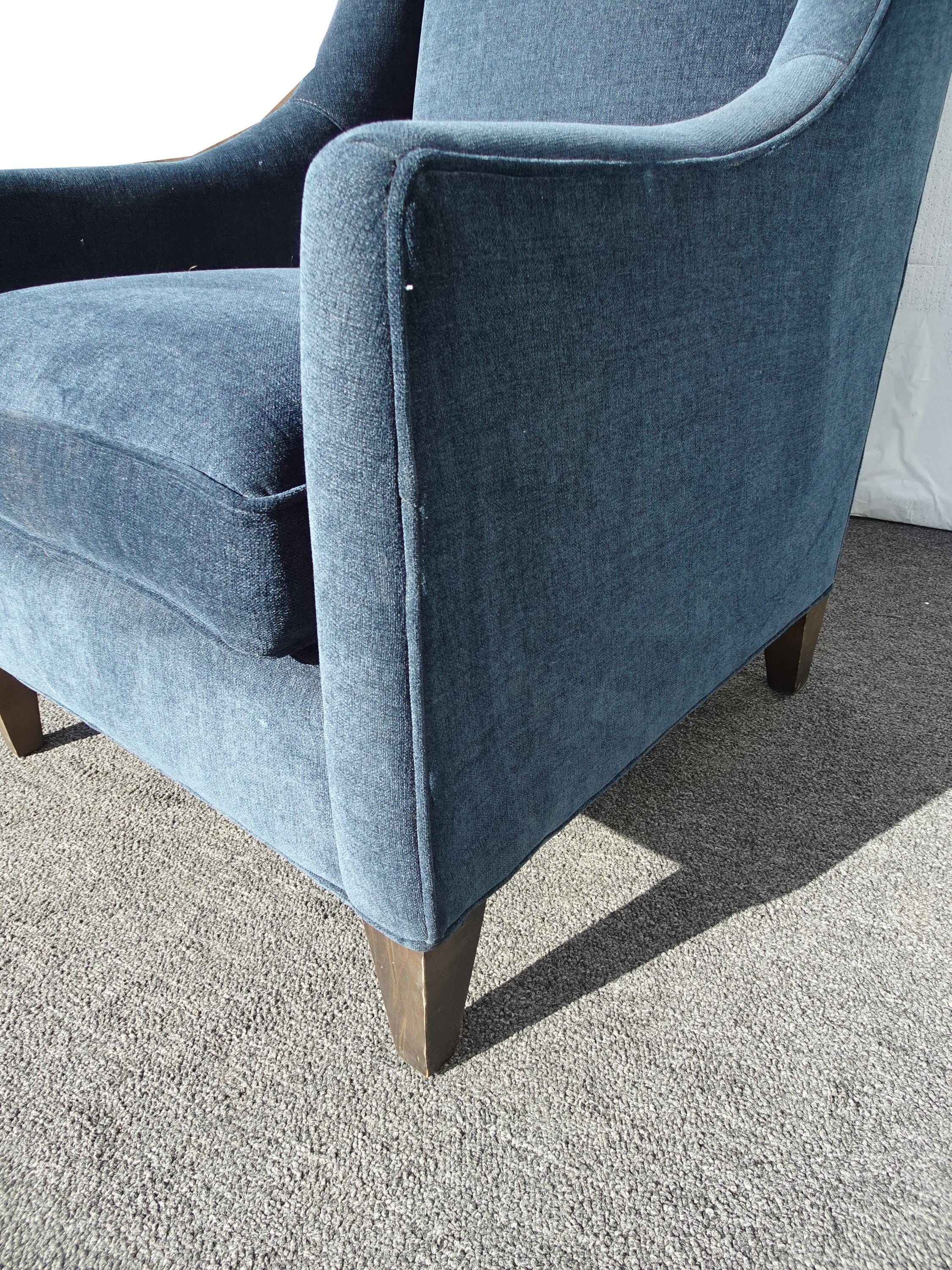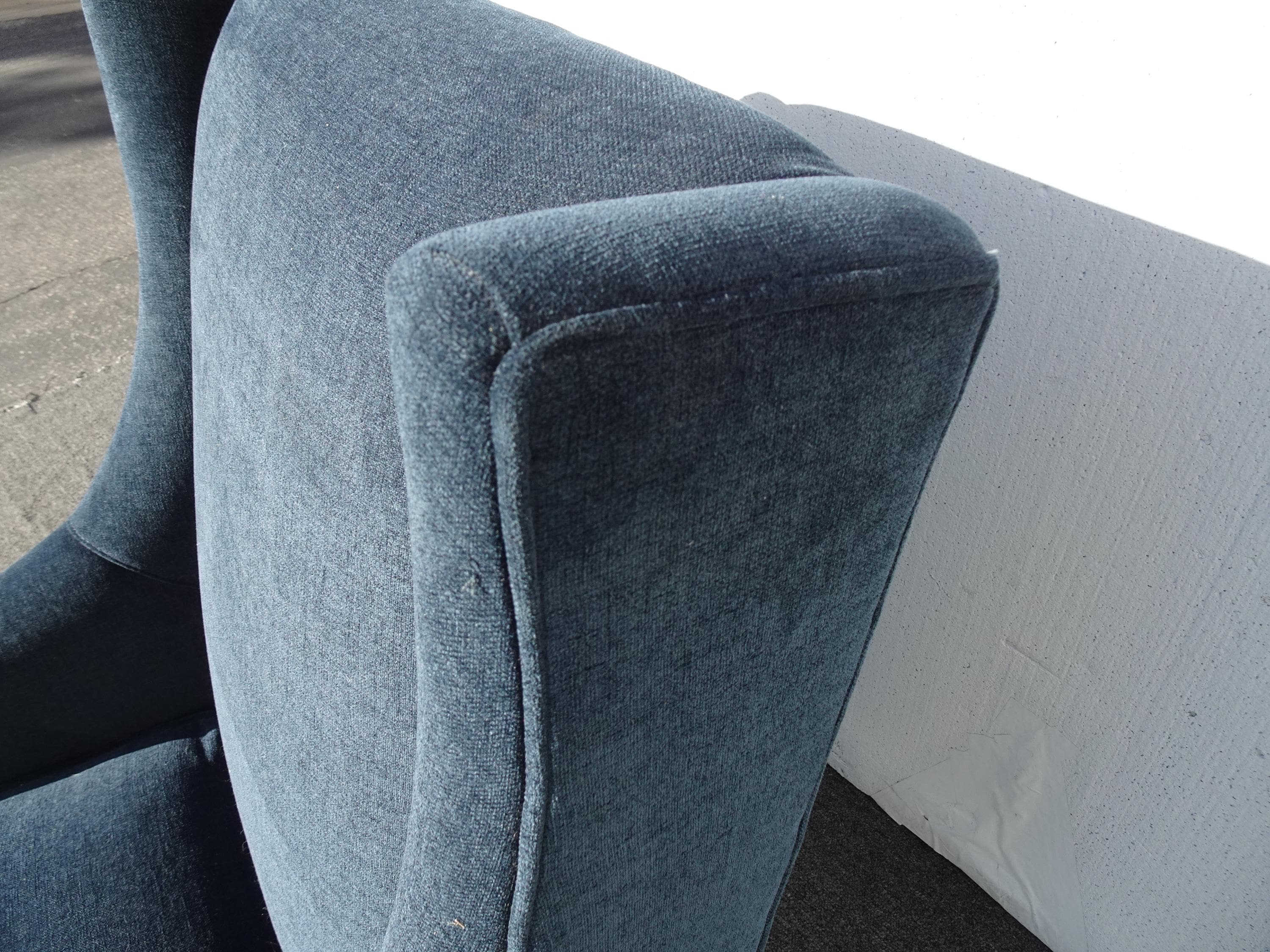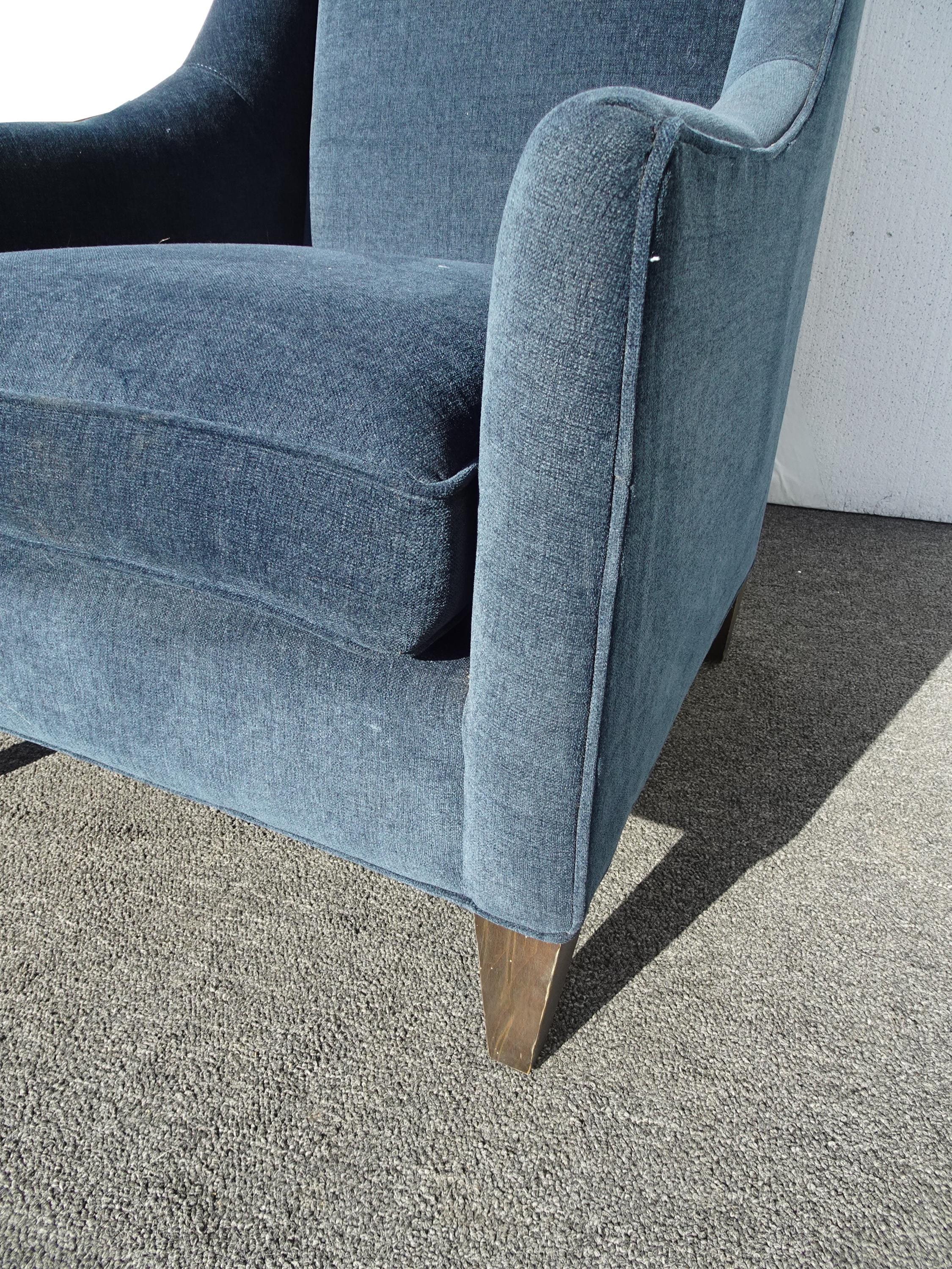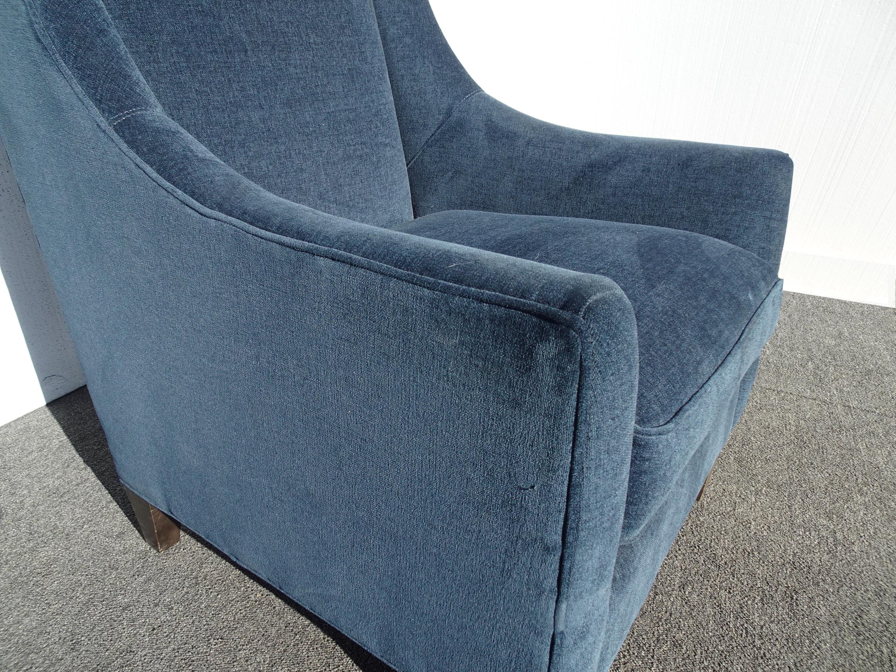 Vintage H D Buttercup Blue Velvet Wingback Lounge Chair