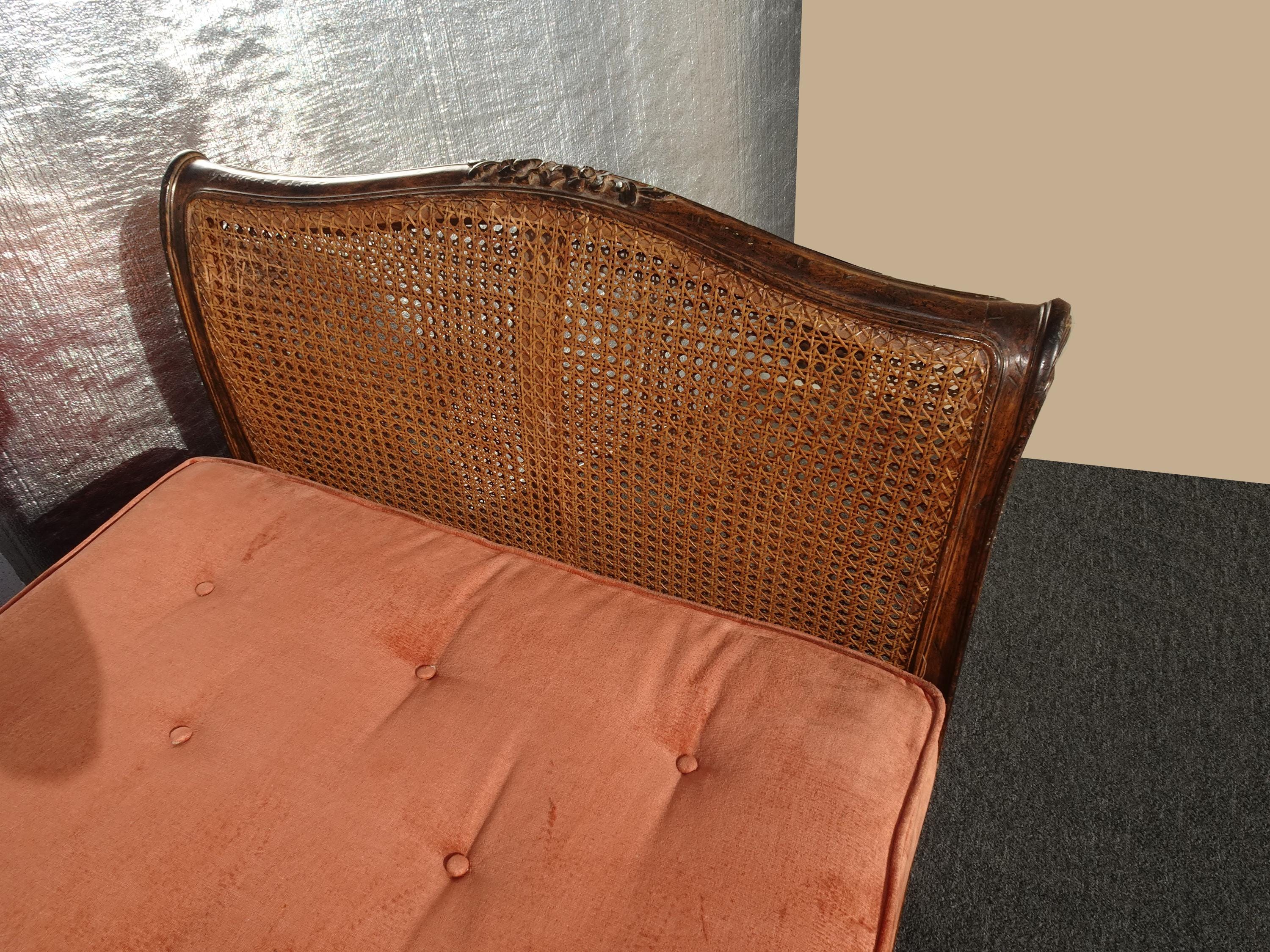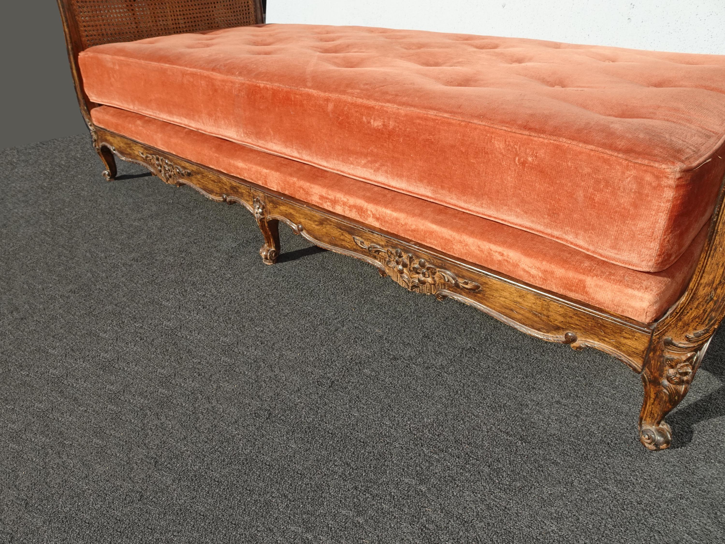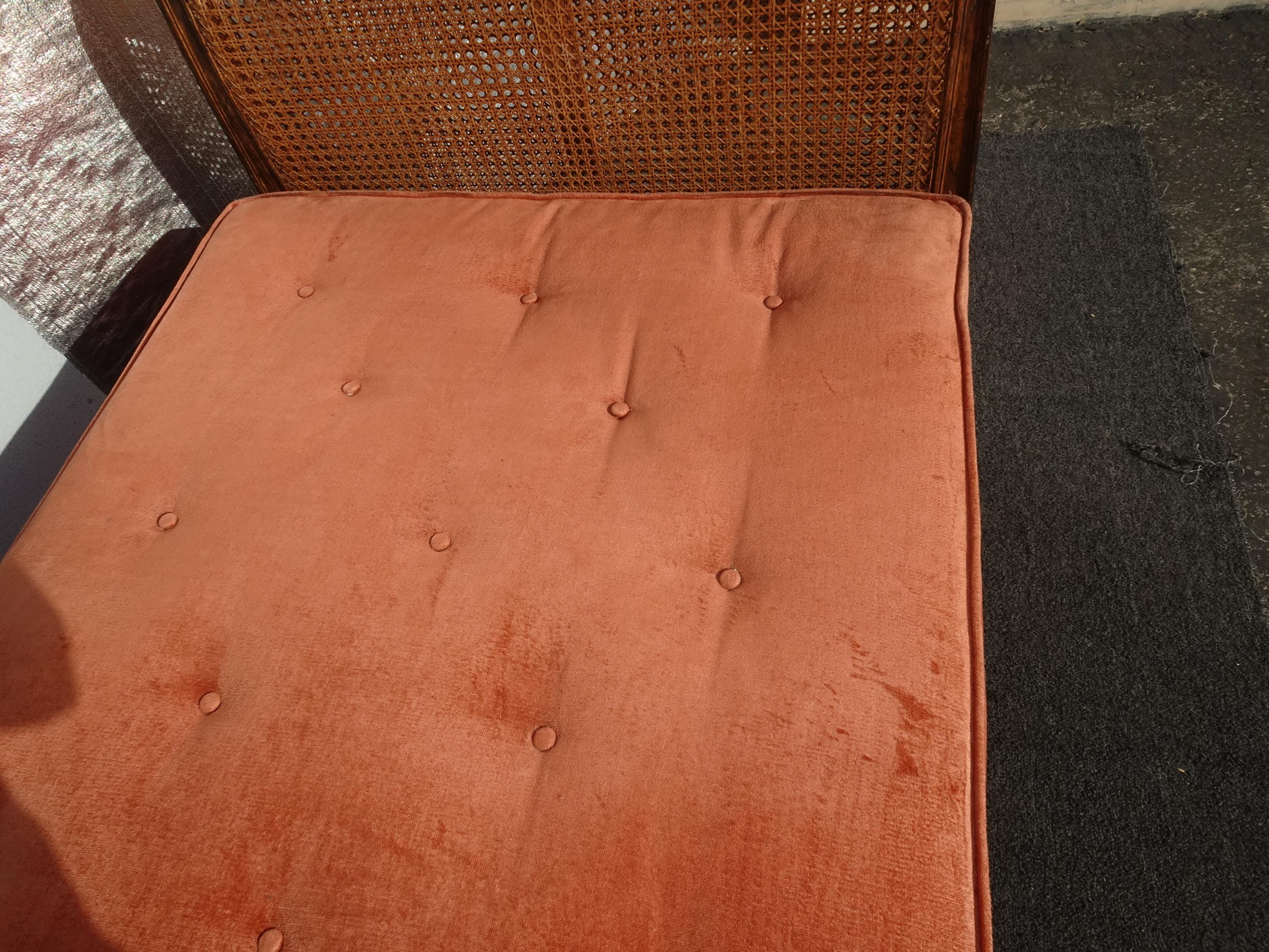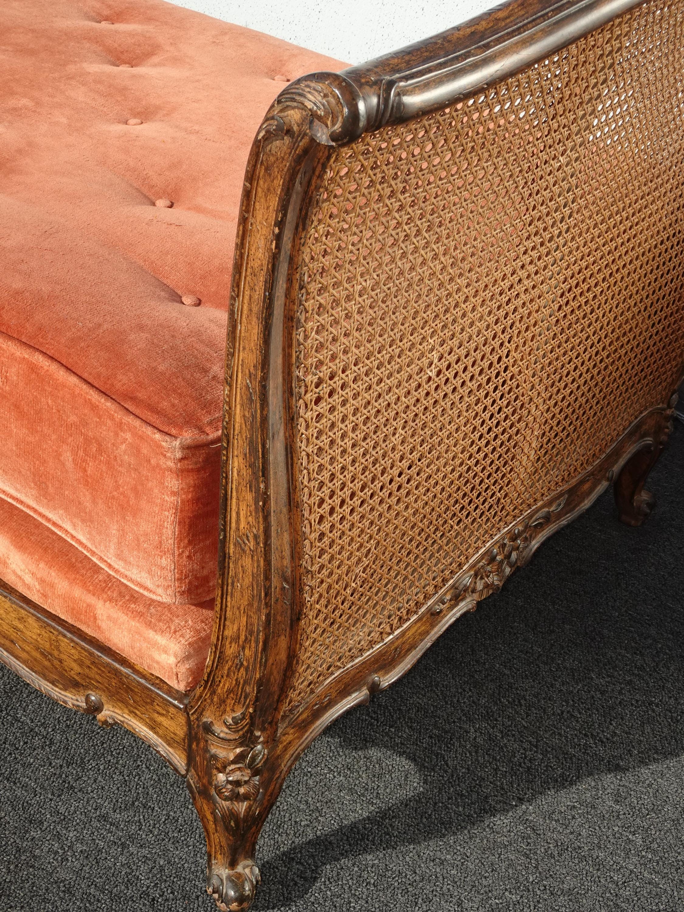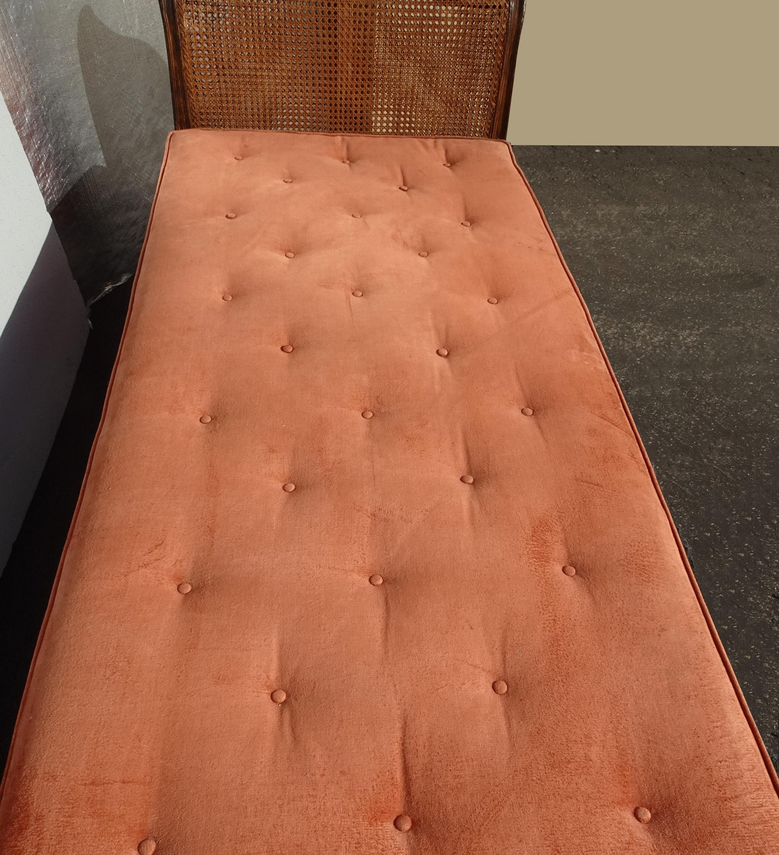 Vintage French Louis XVI Daybed ~ Cane Bed w Orange Velvet ~ Chaise Lounge
