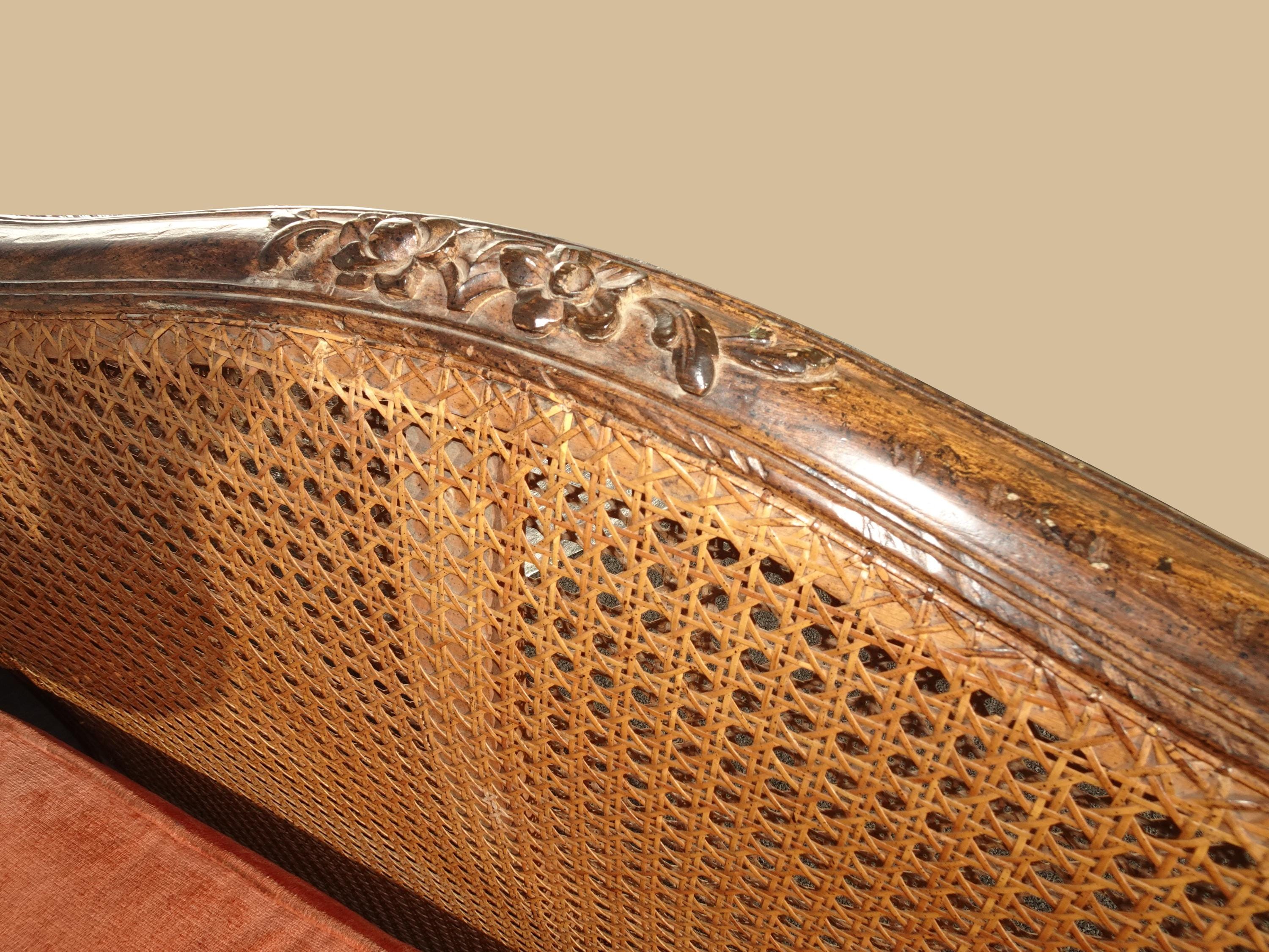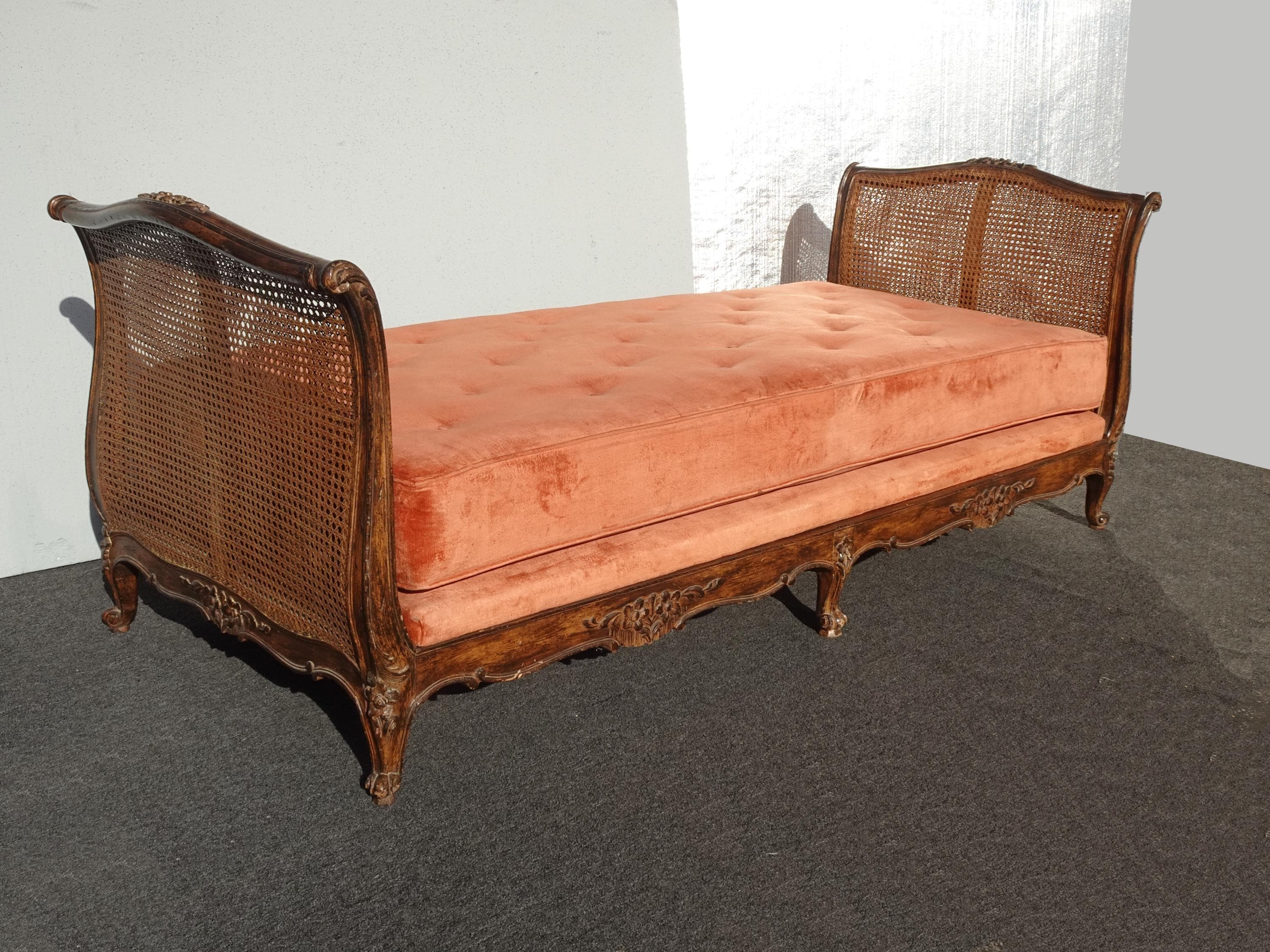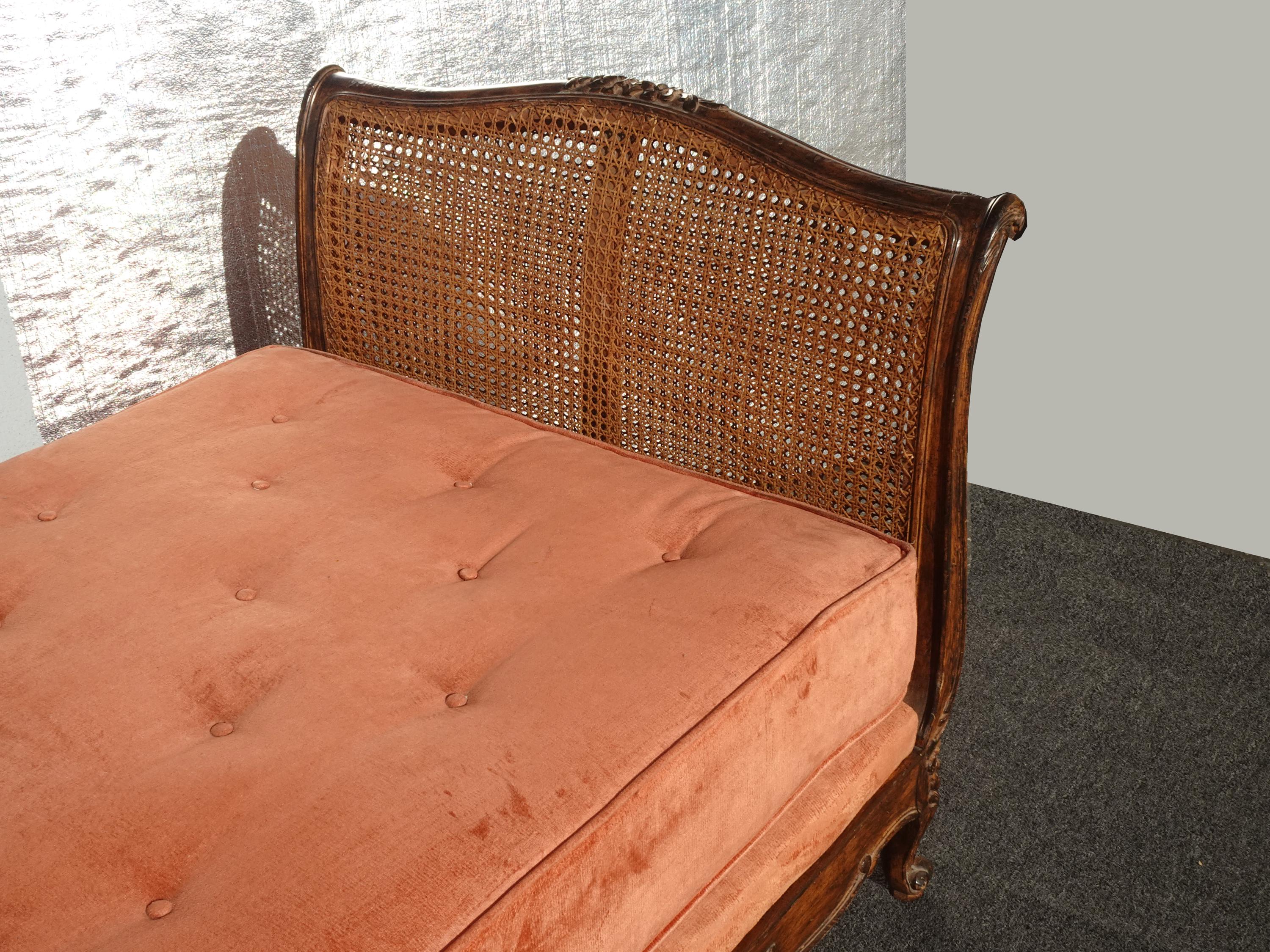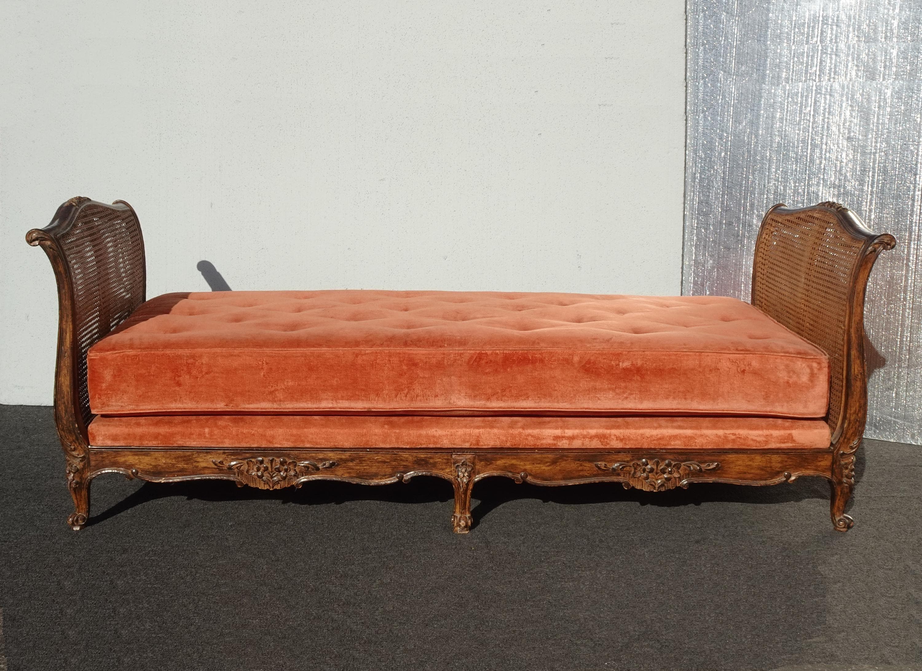 Vintage French Louis XVI Daybed ~ Cane Bed w Orange Velvet ~ Chaise Lounge
