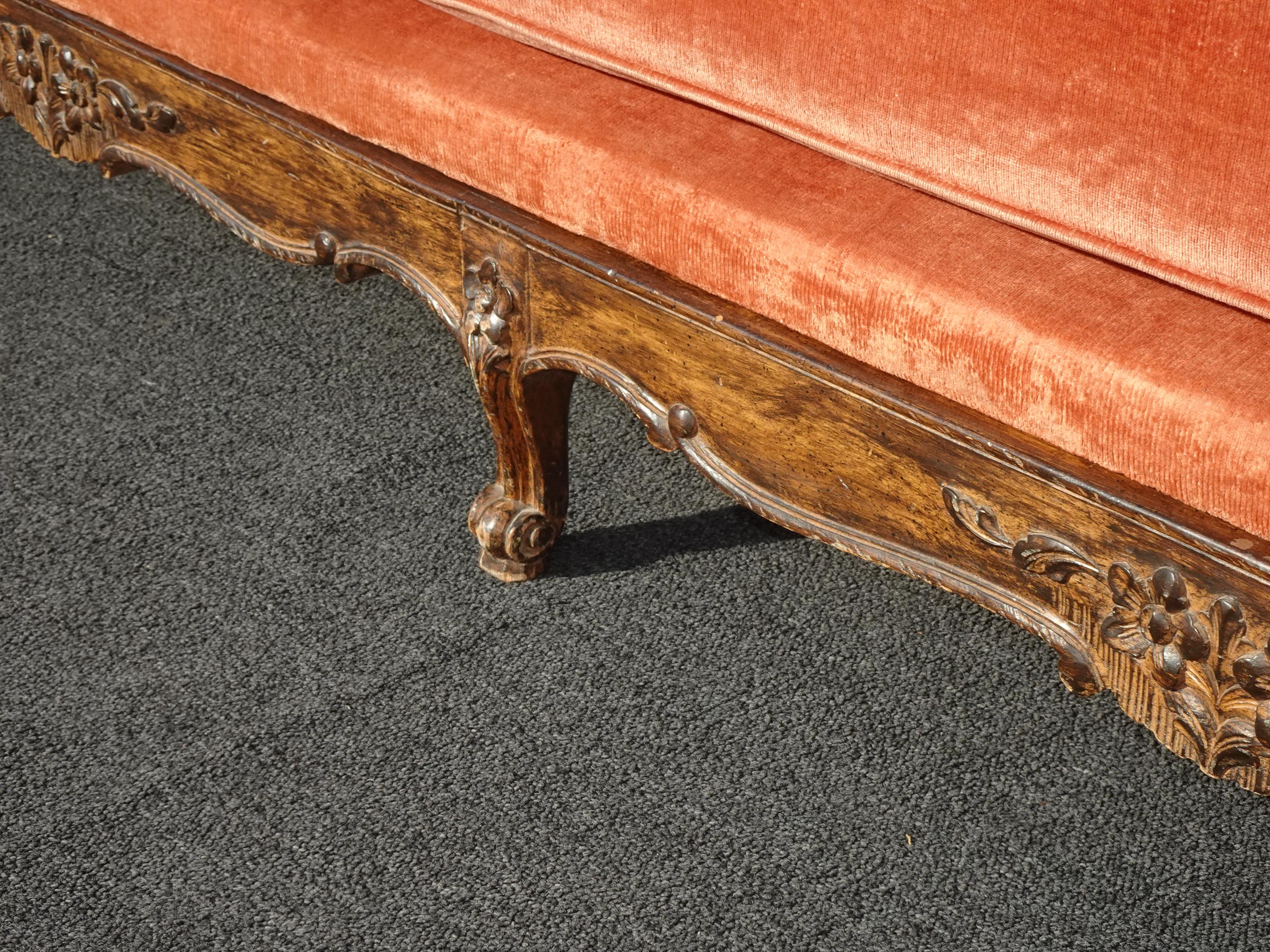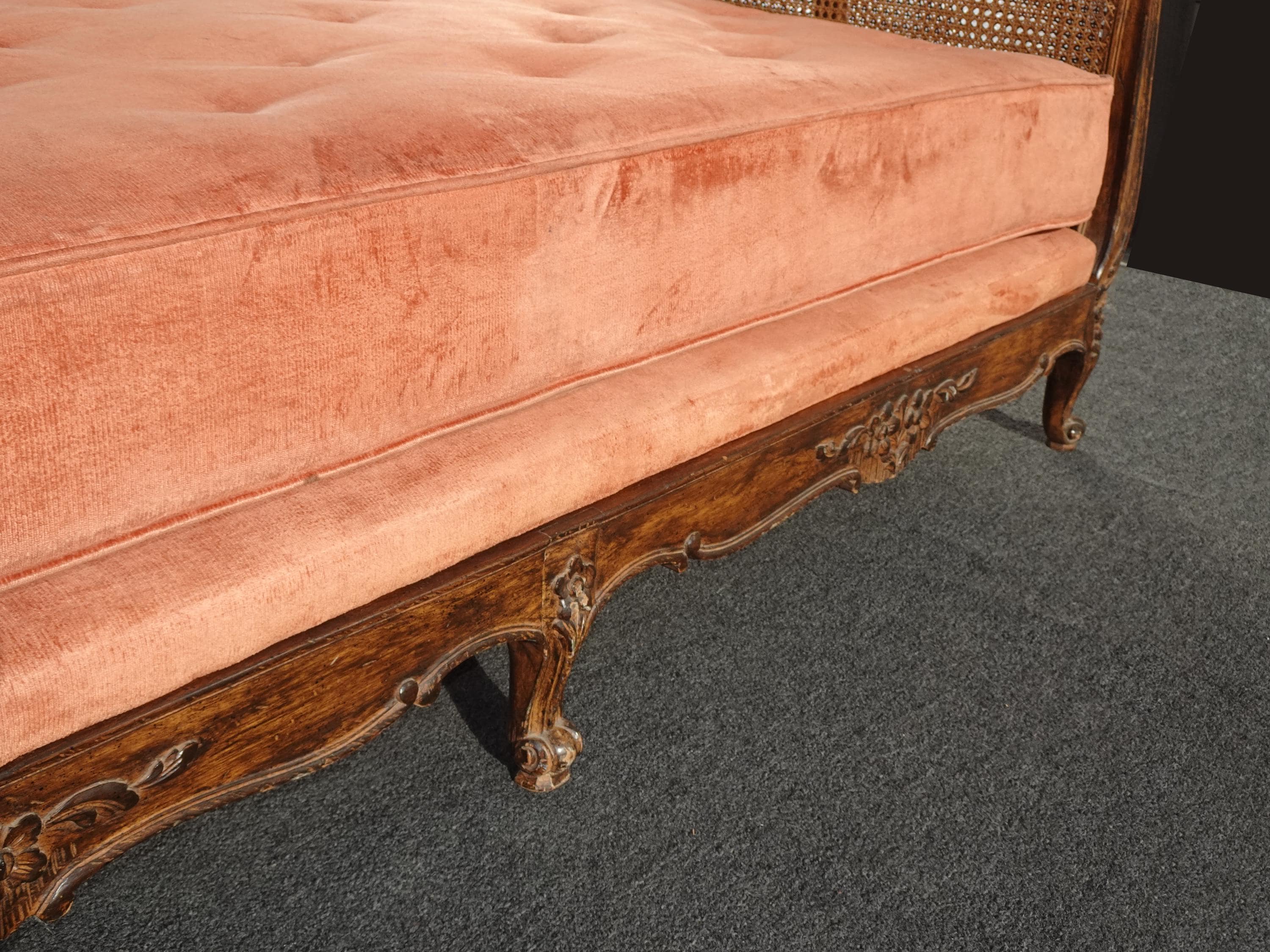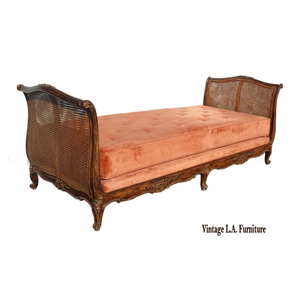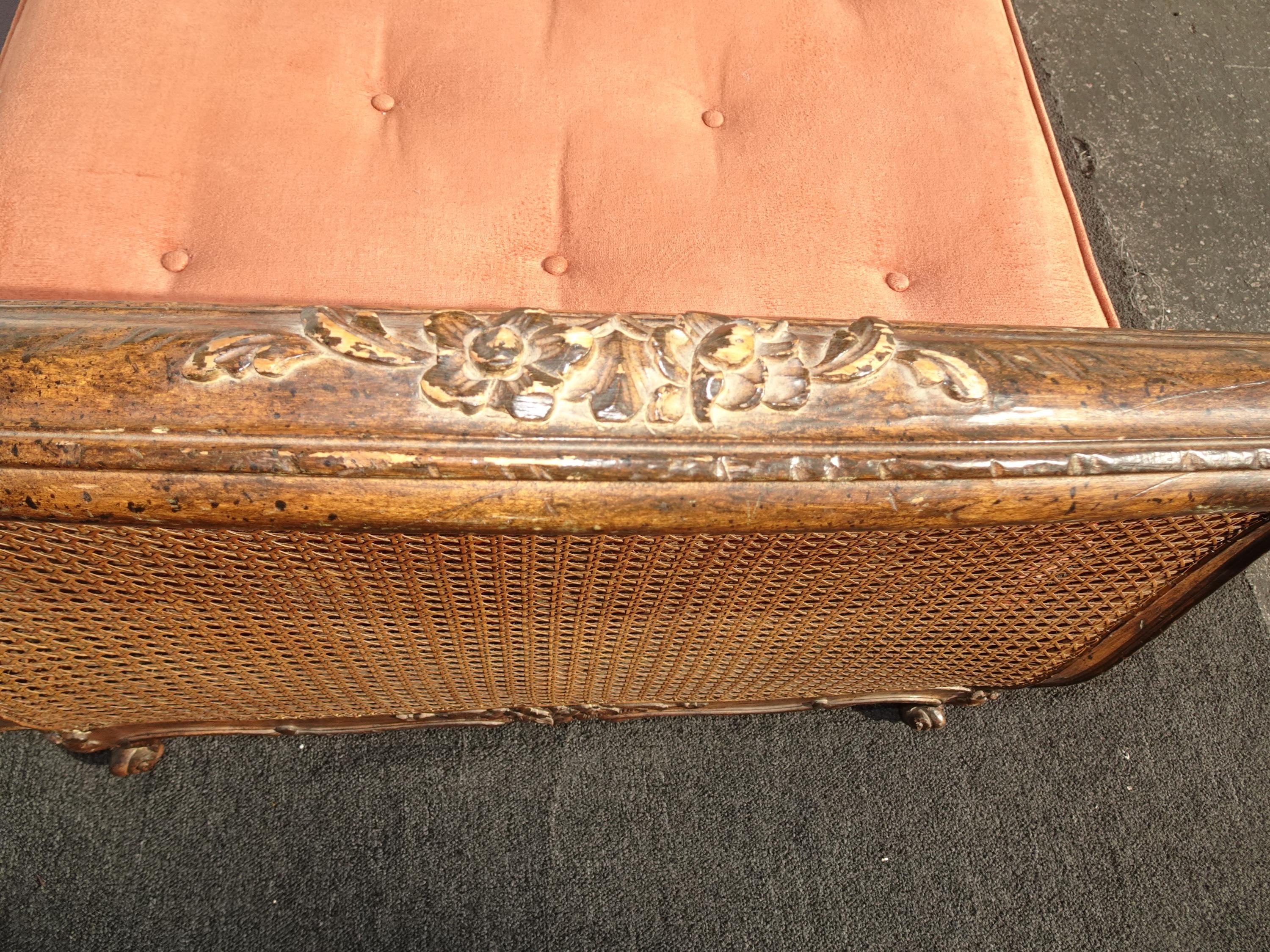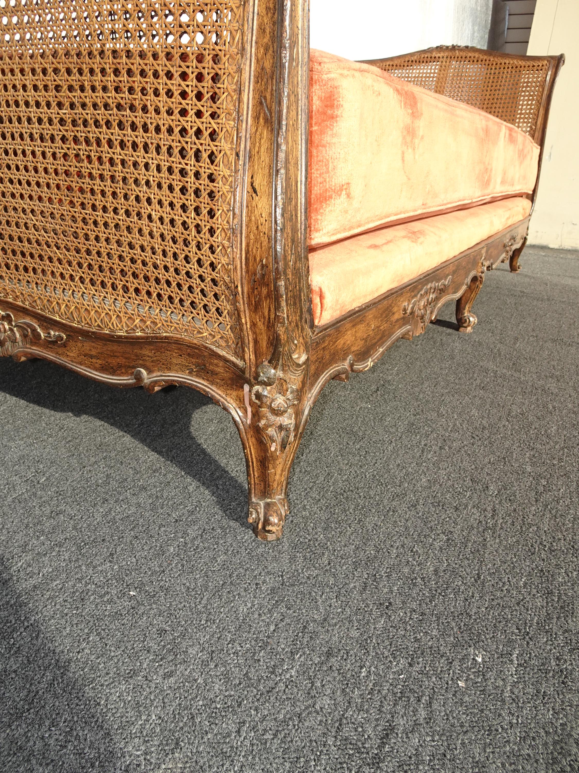 Vintage French Louis XVI Daybed ~ Cane Bed w Orange Velvet ~ Chaise Lounge