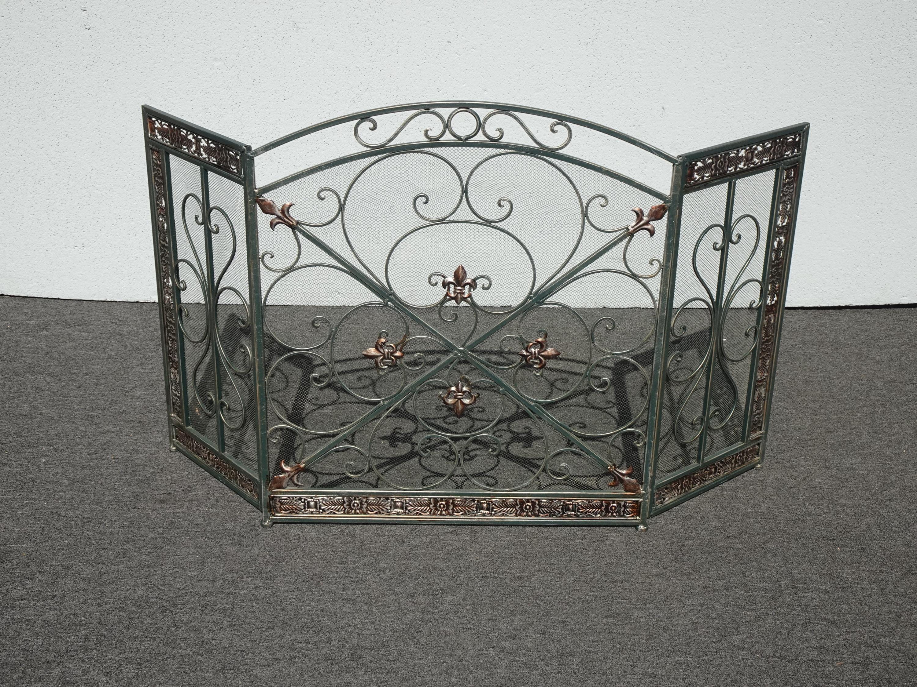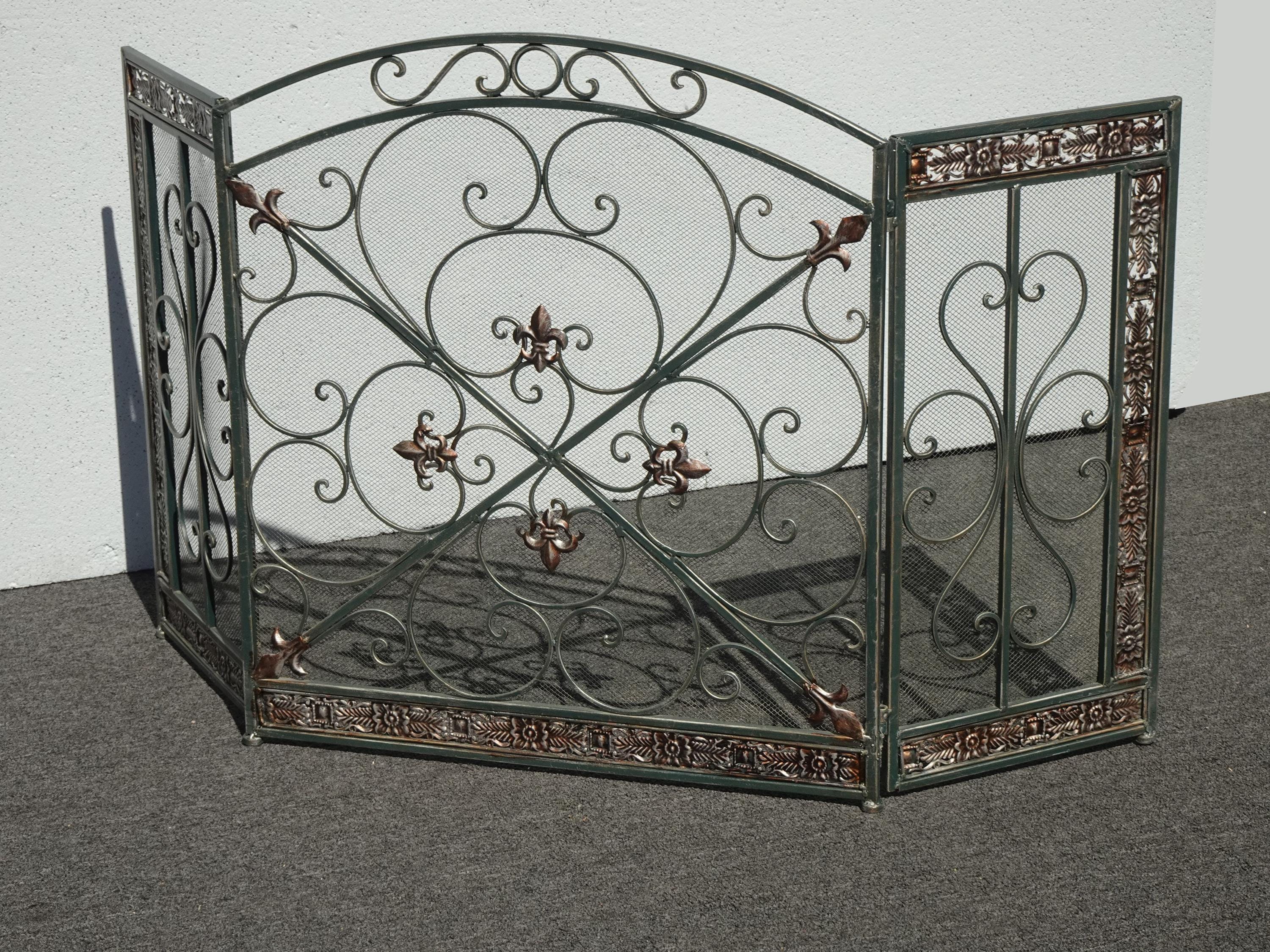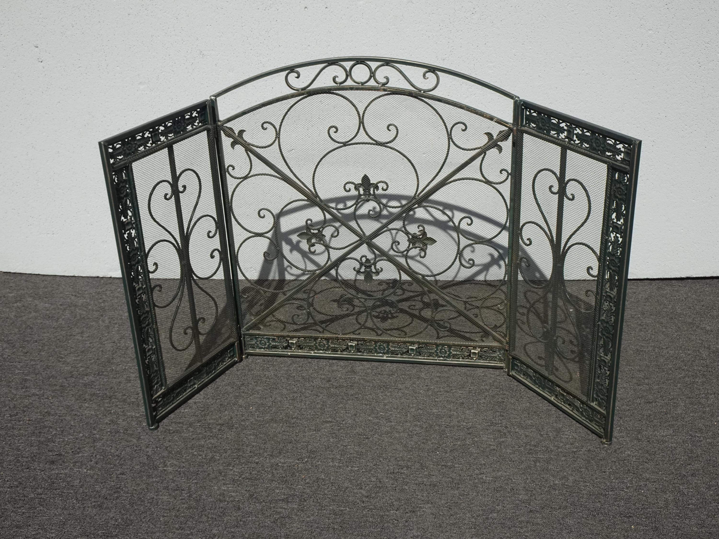 Vintage French Country Three Panel Fireplace Screen ~ Ornate w Scrolls