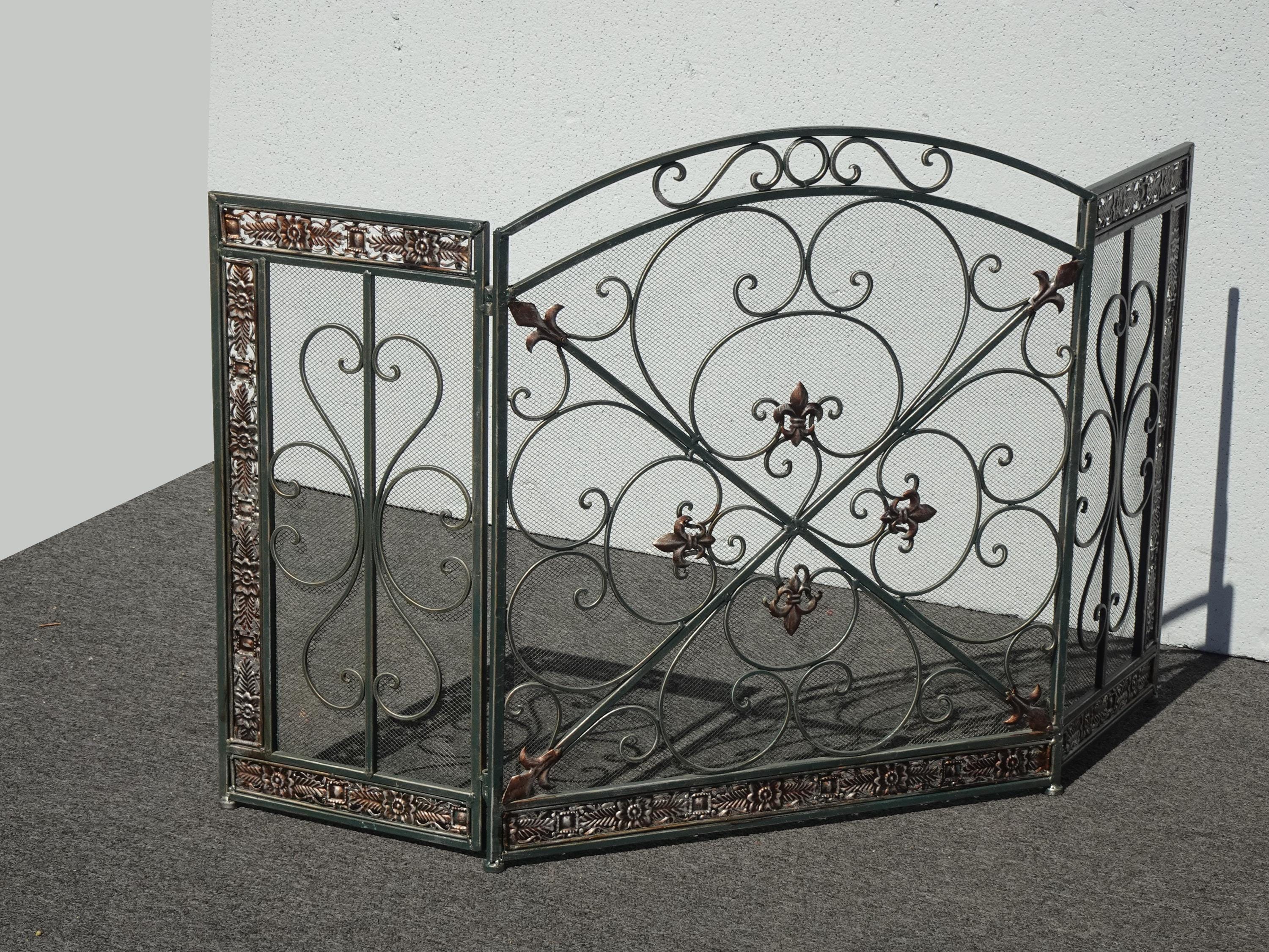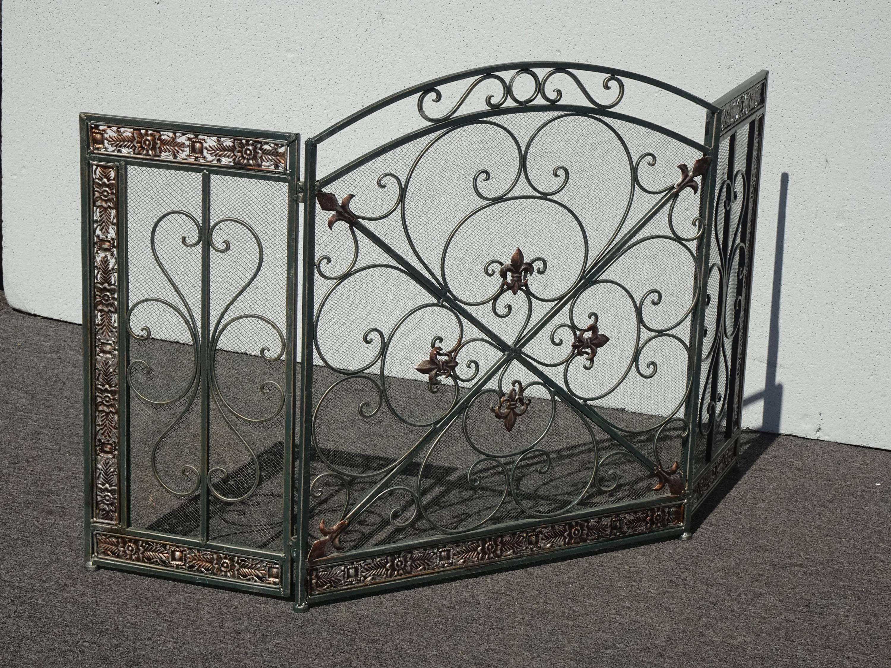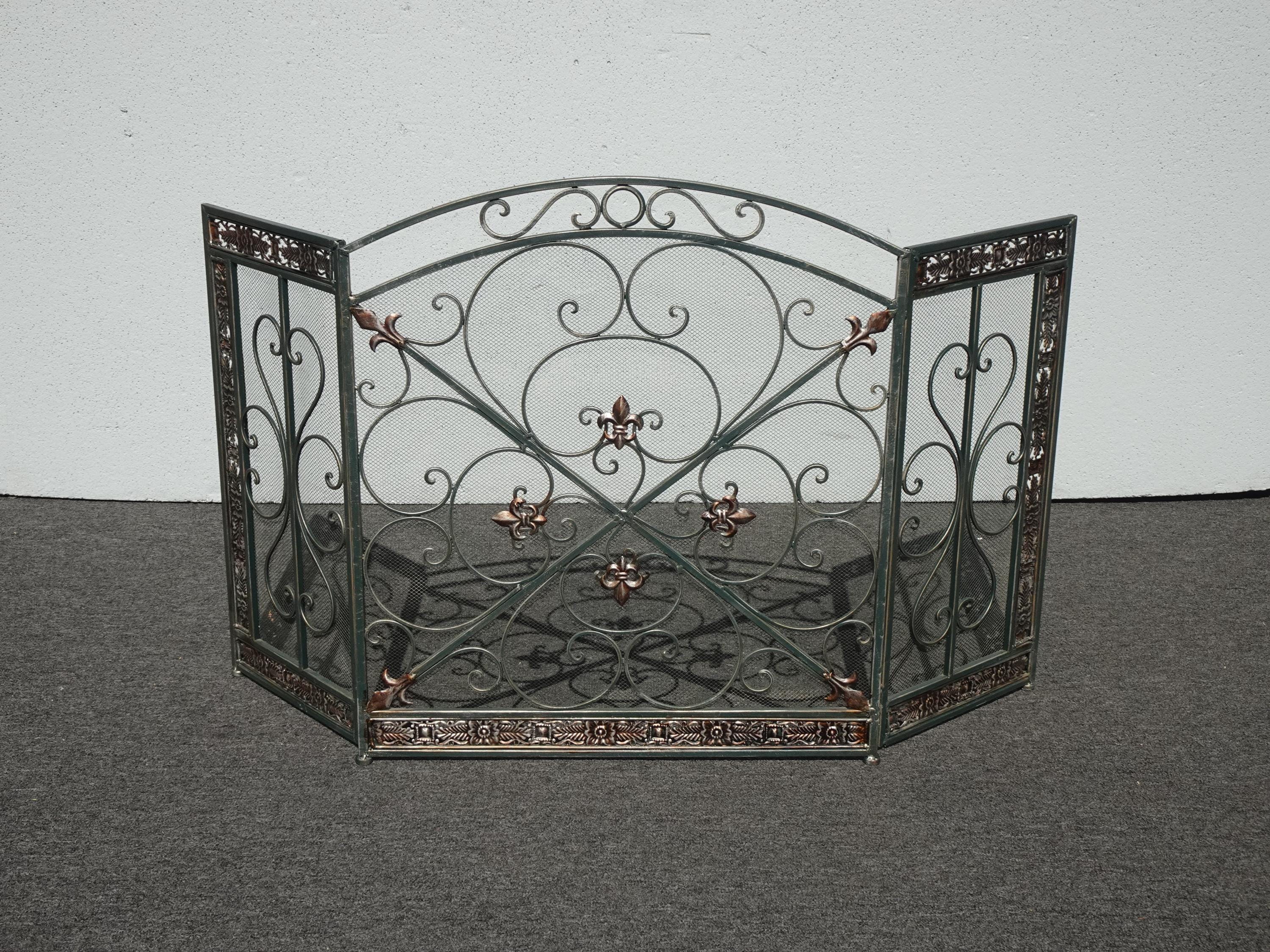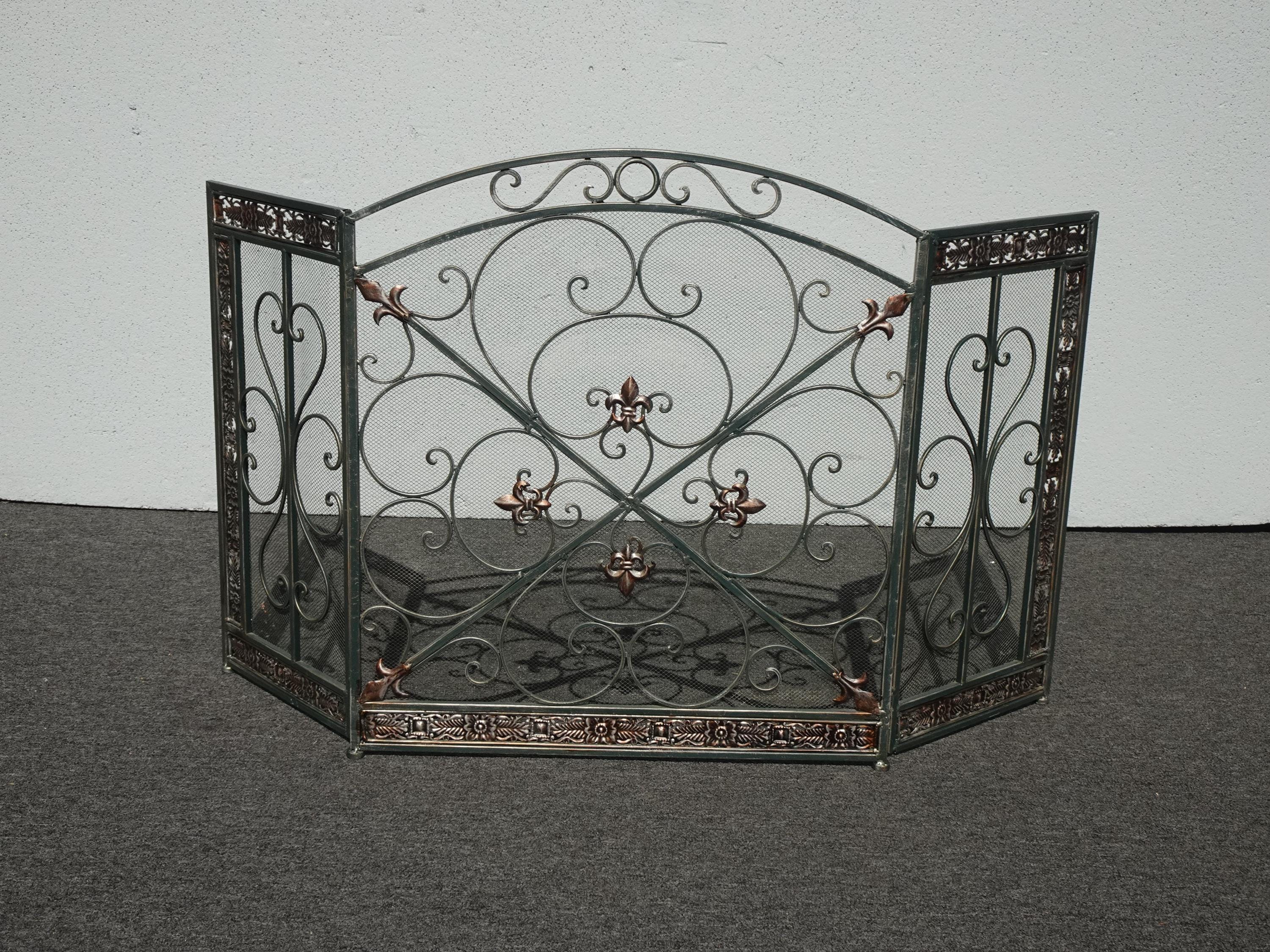 Vintage French Country Three Panel Fireplace Screen ~ Ornate w Scrolls