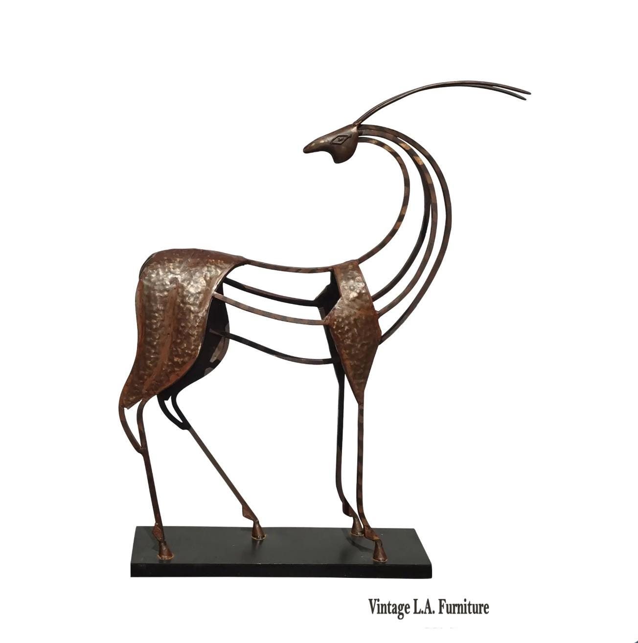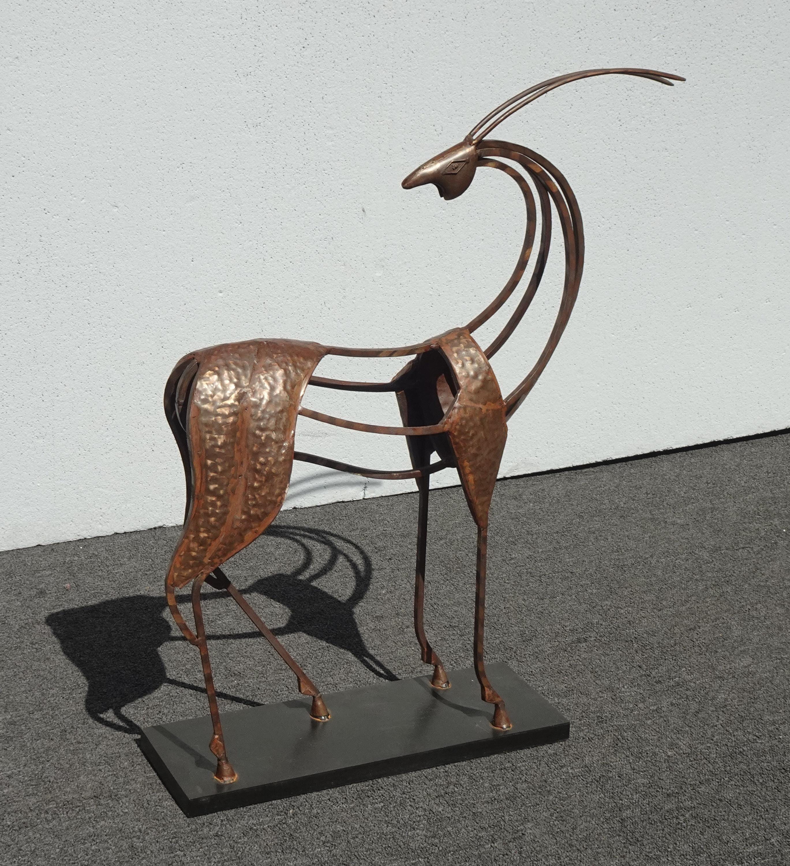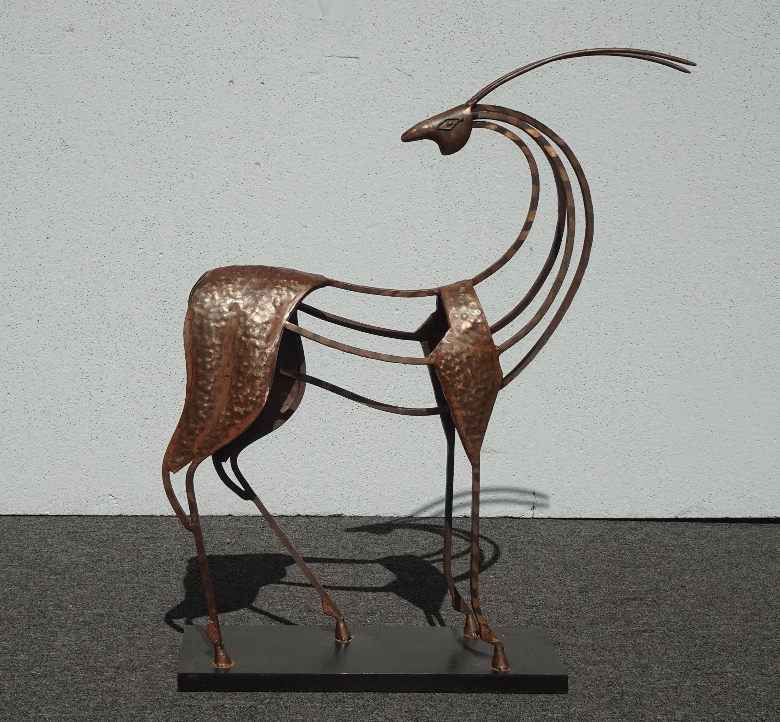 34"Tall ~ Statuesque Bronze Color Metal Gazelle Statue on Stand