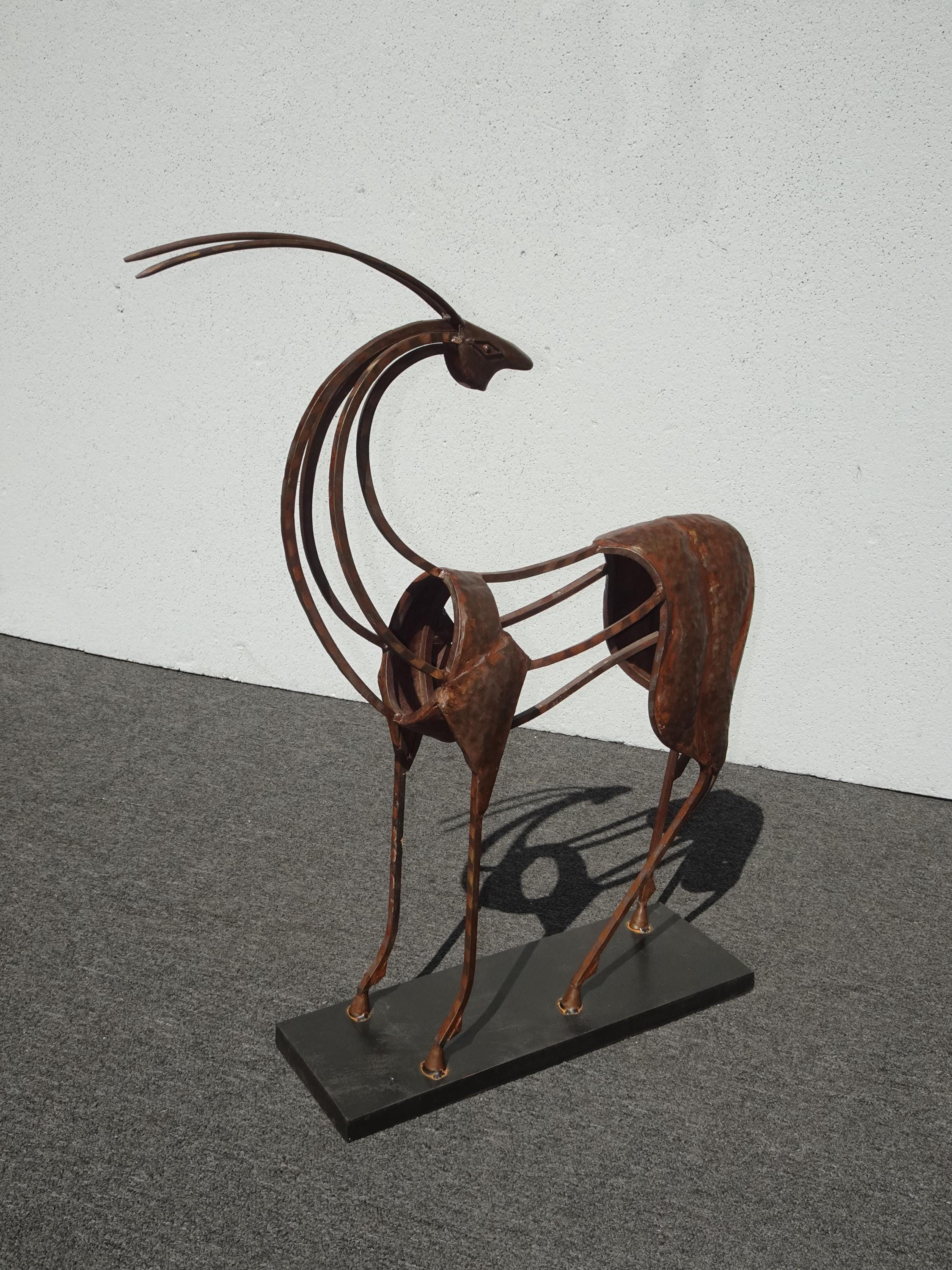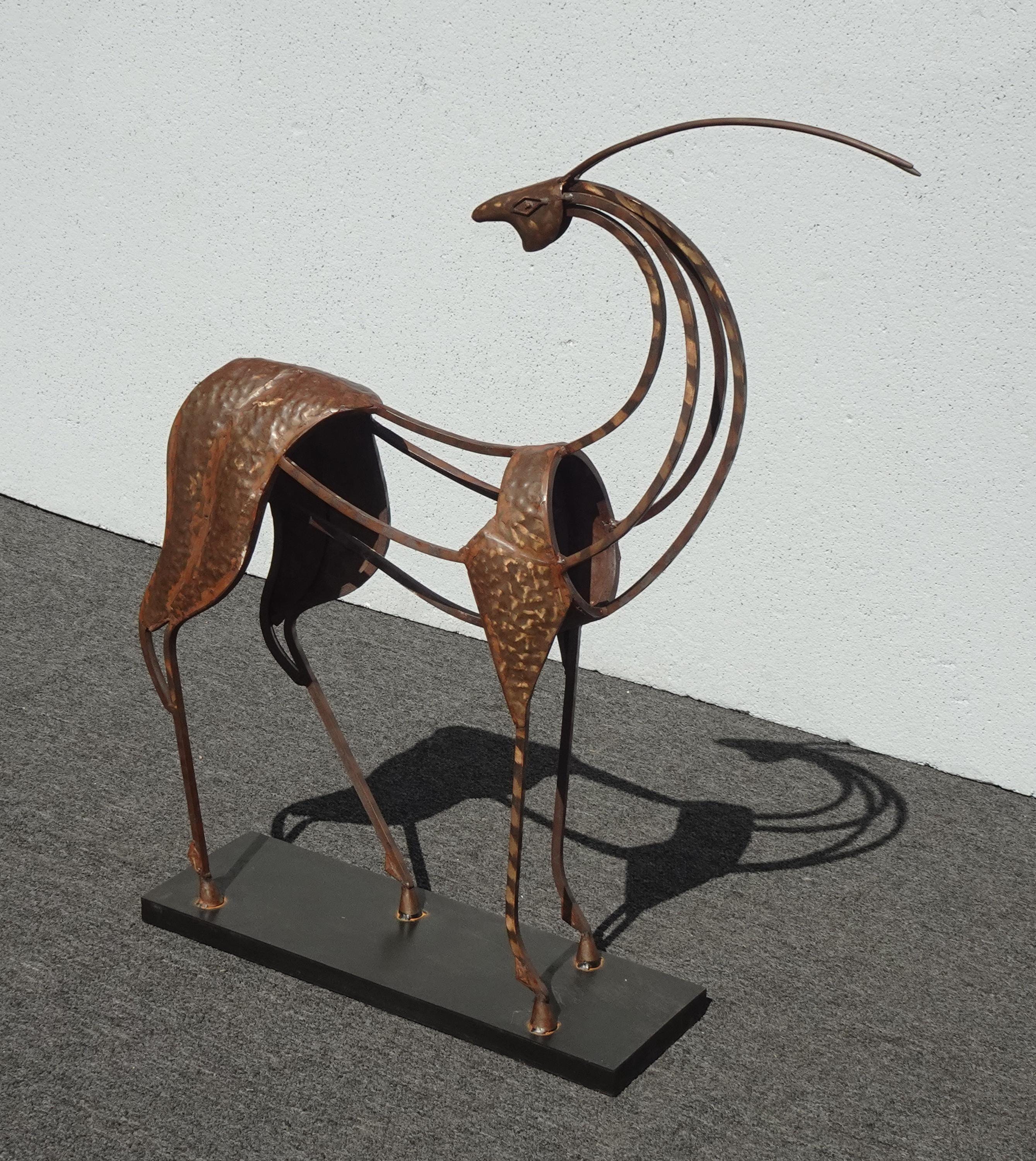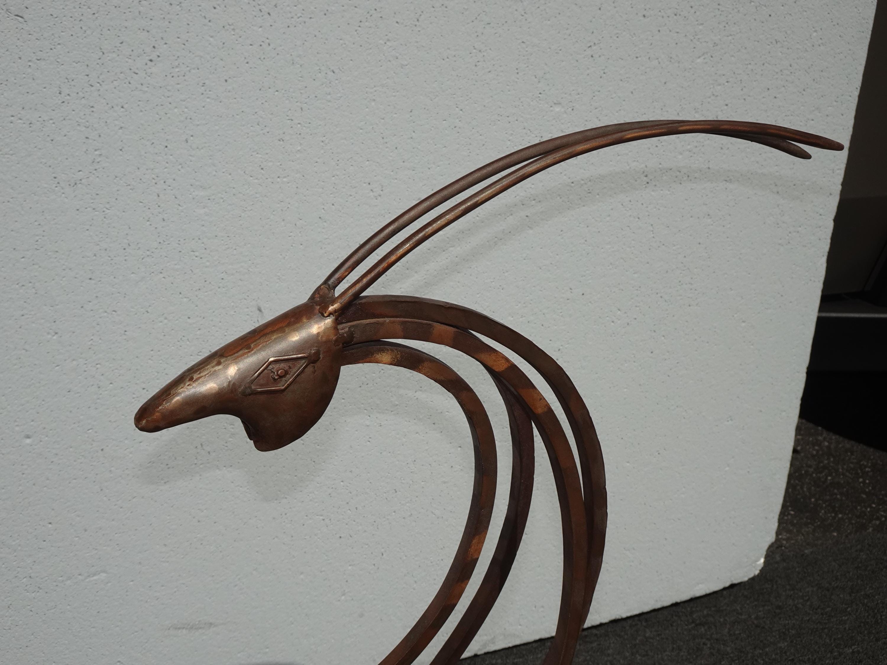 34"Tall ~ Statuesque Bronze Color Metal Gazelle Statue on Stand