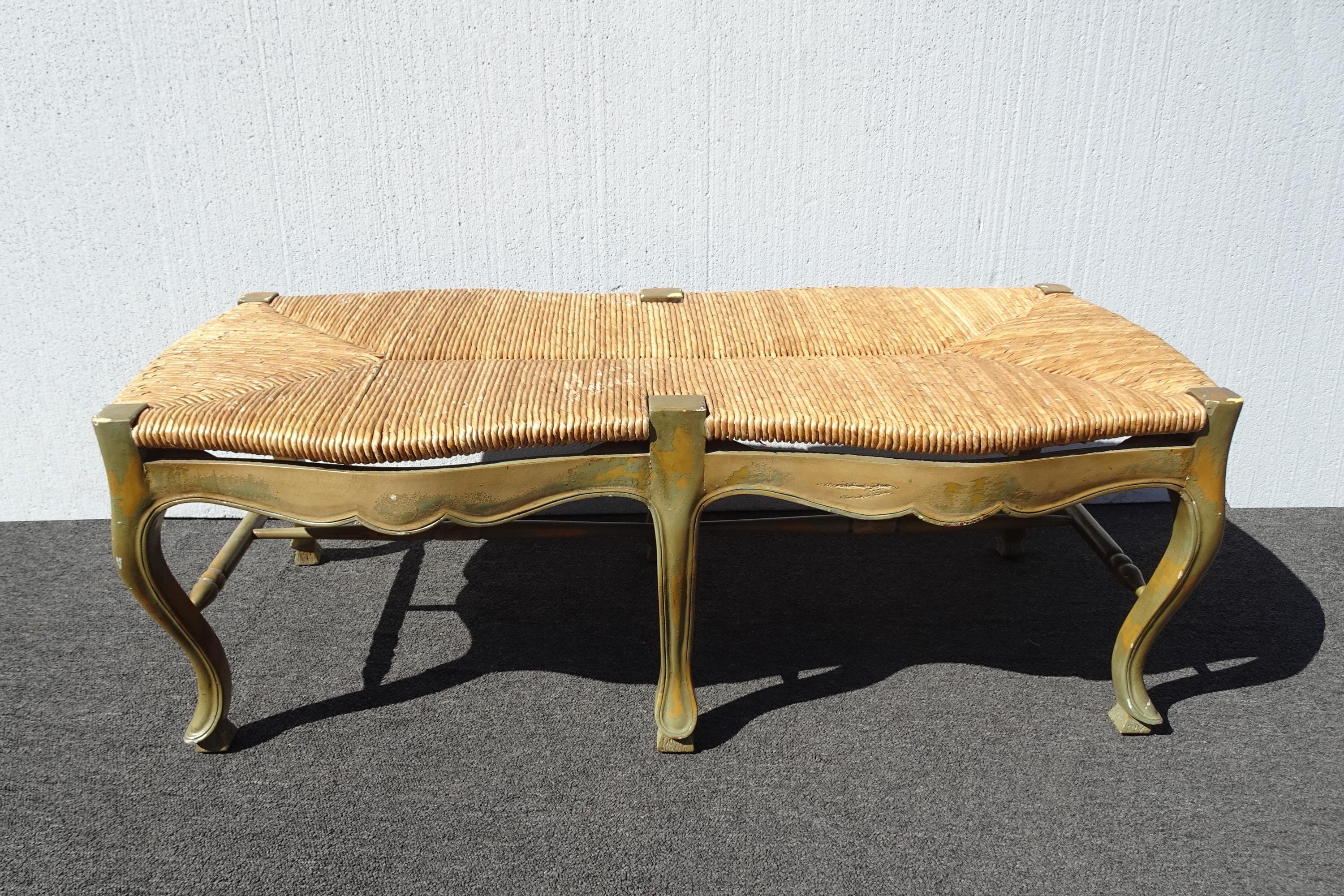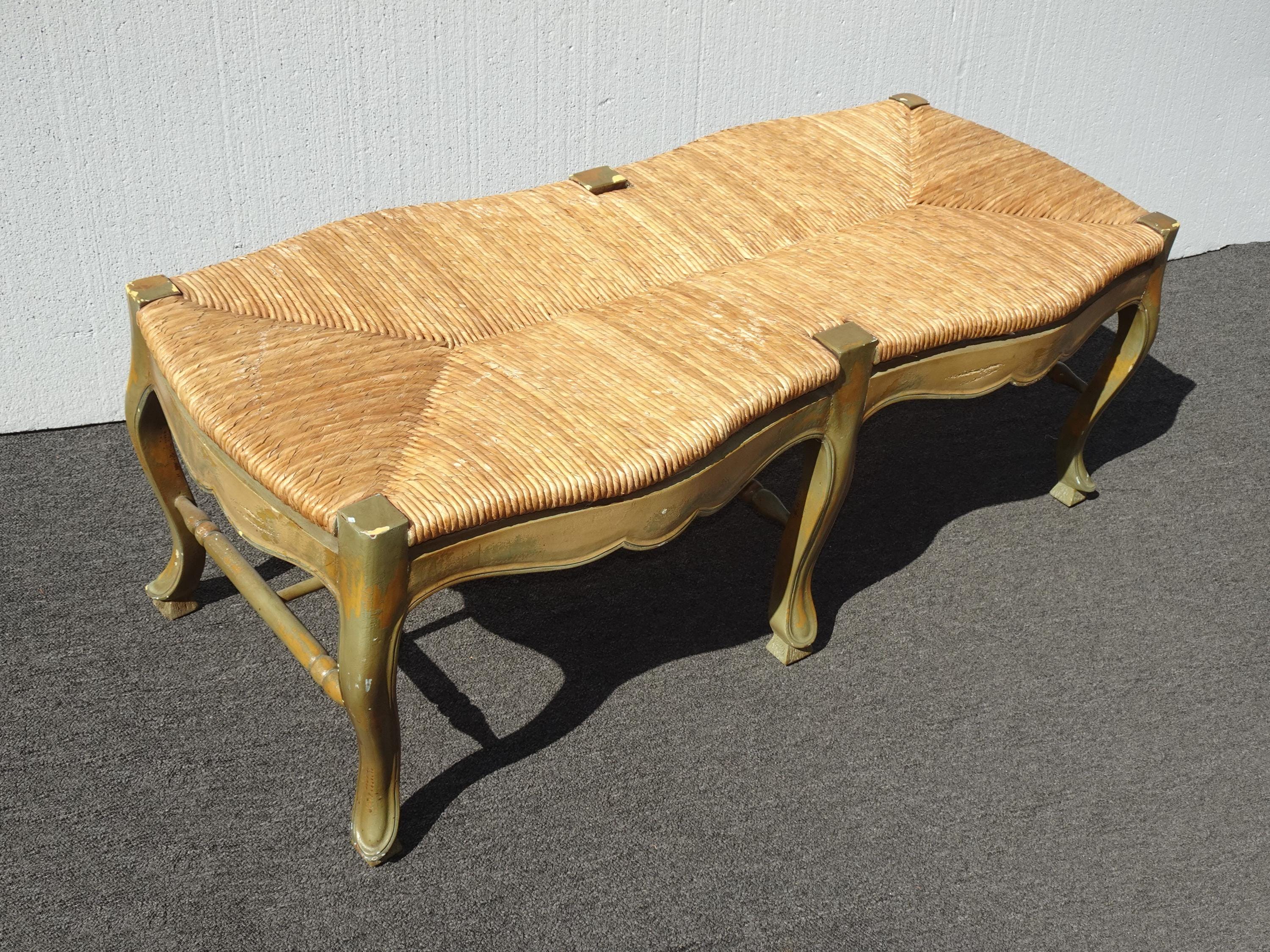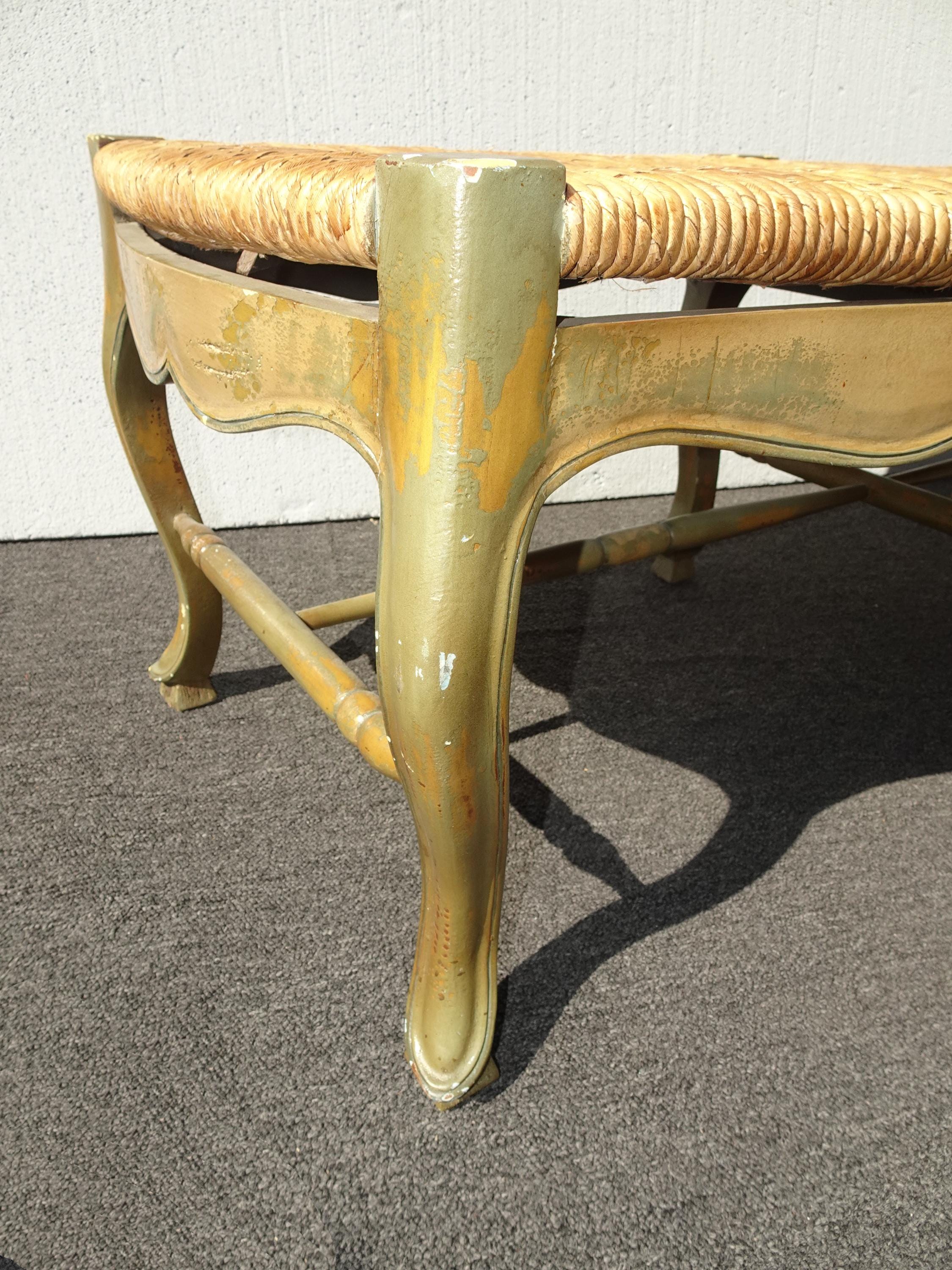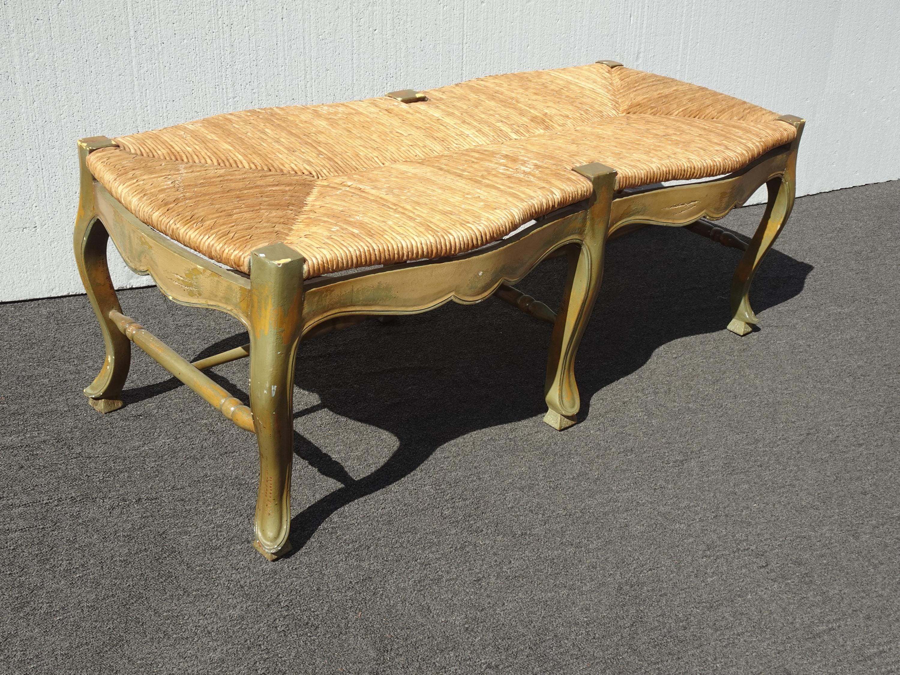 Vintage French Country Green Rush Bench