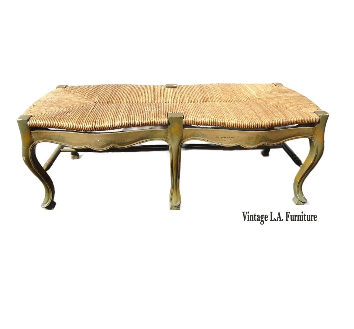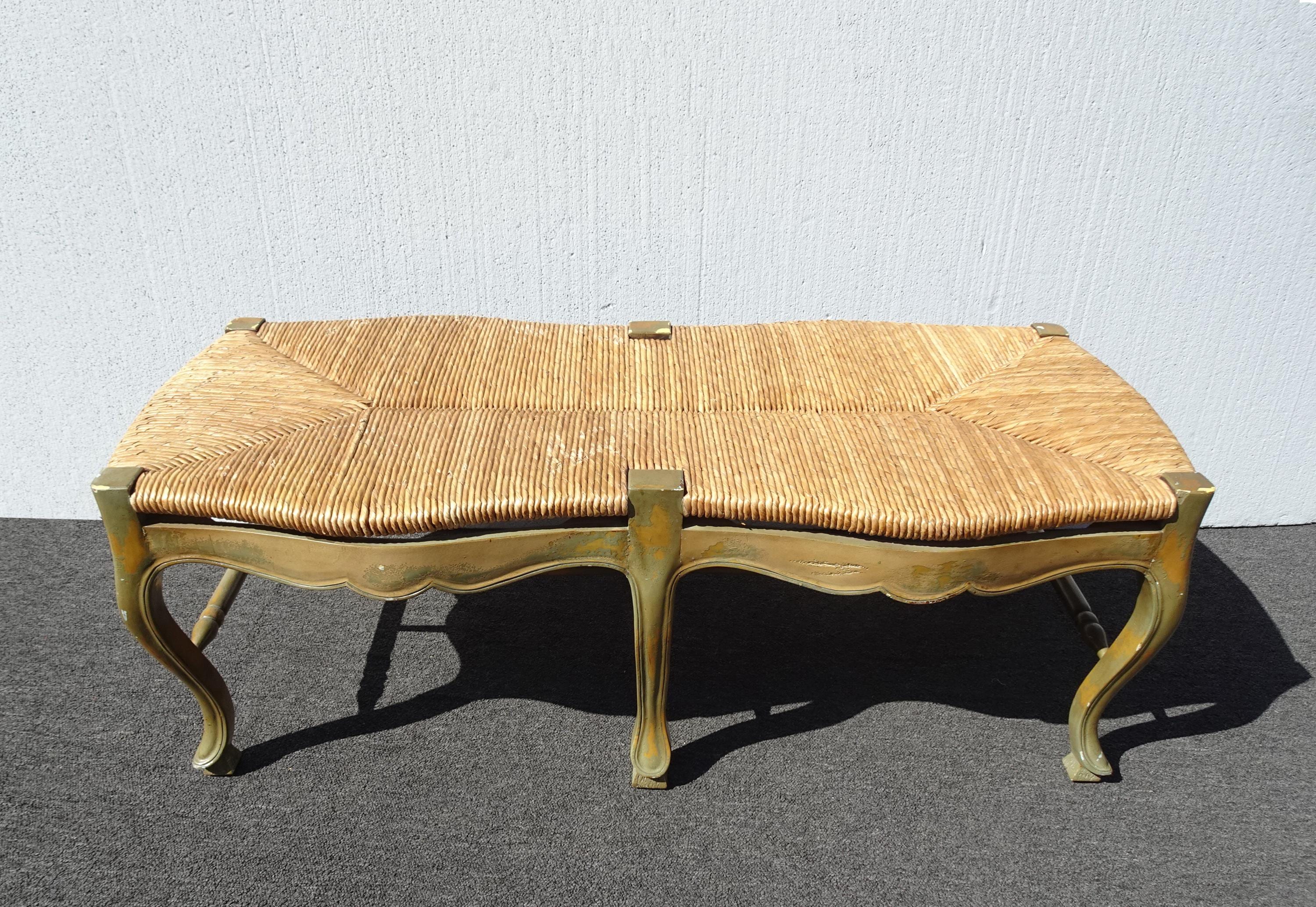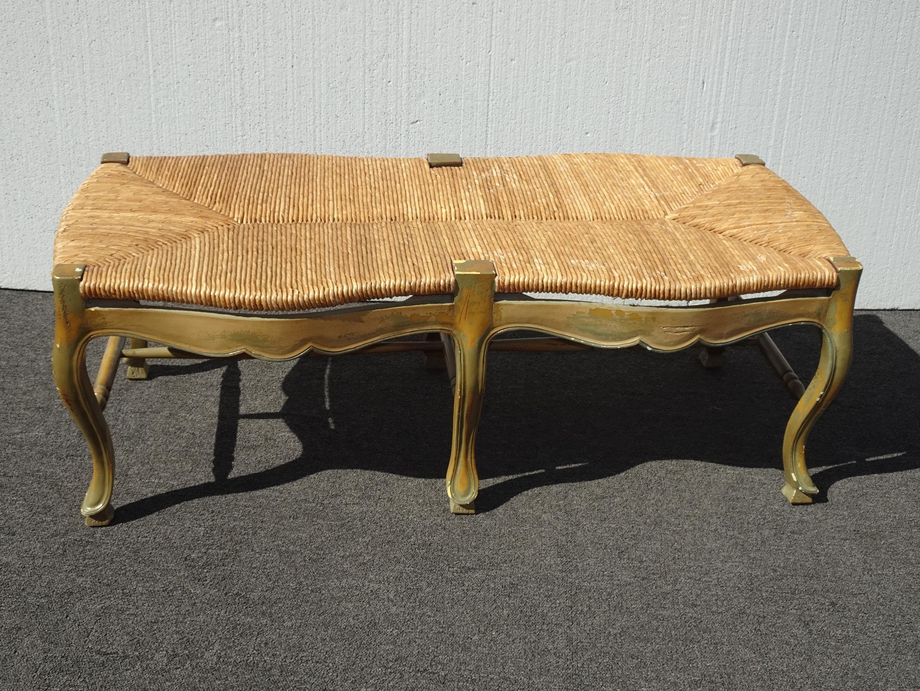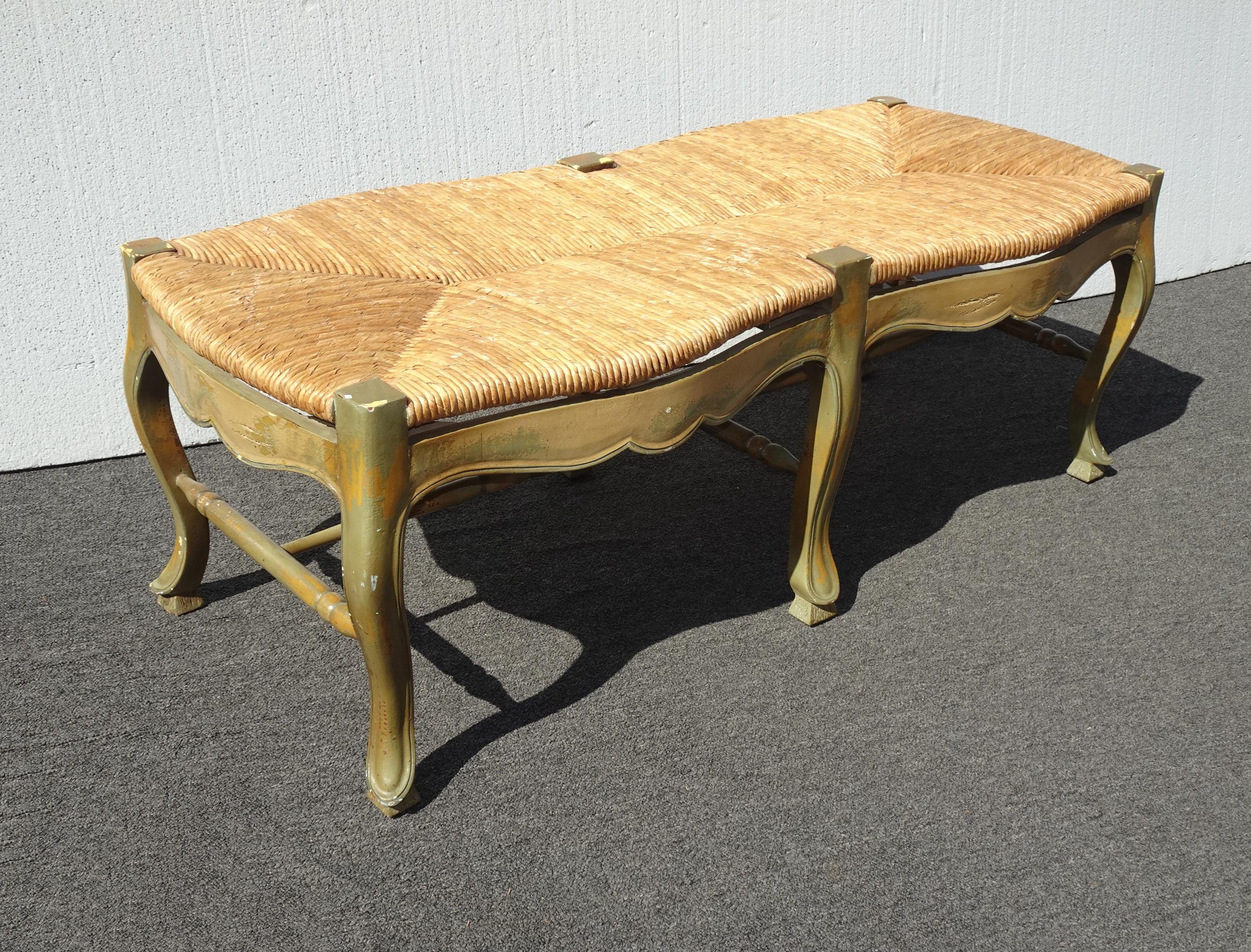 Vintage French Country Green Rush Bench