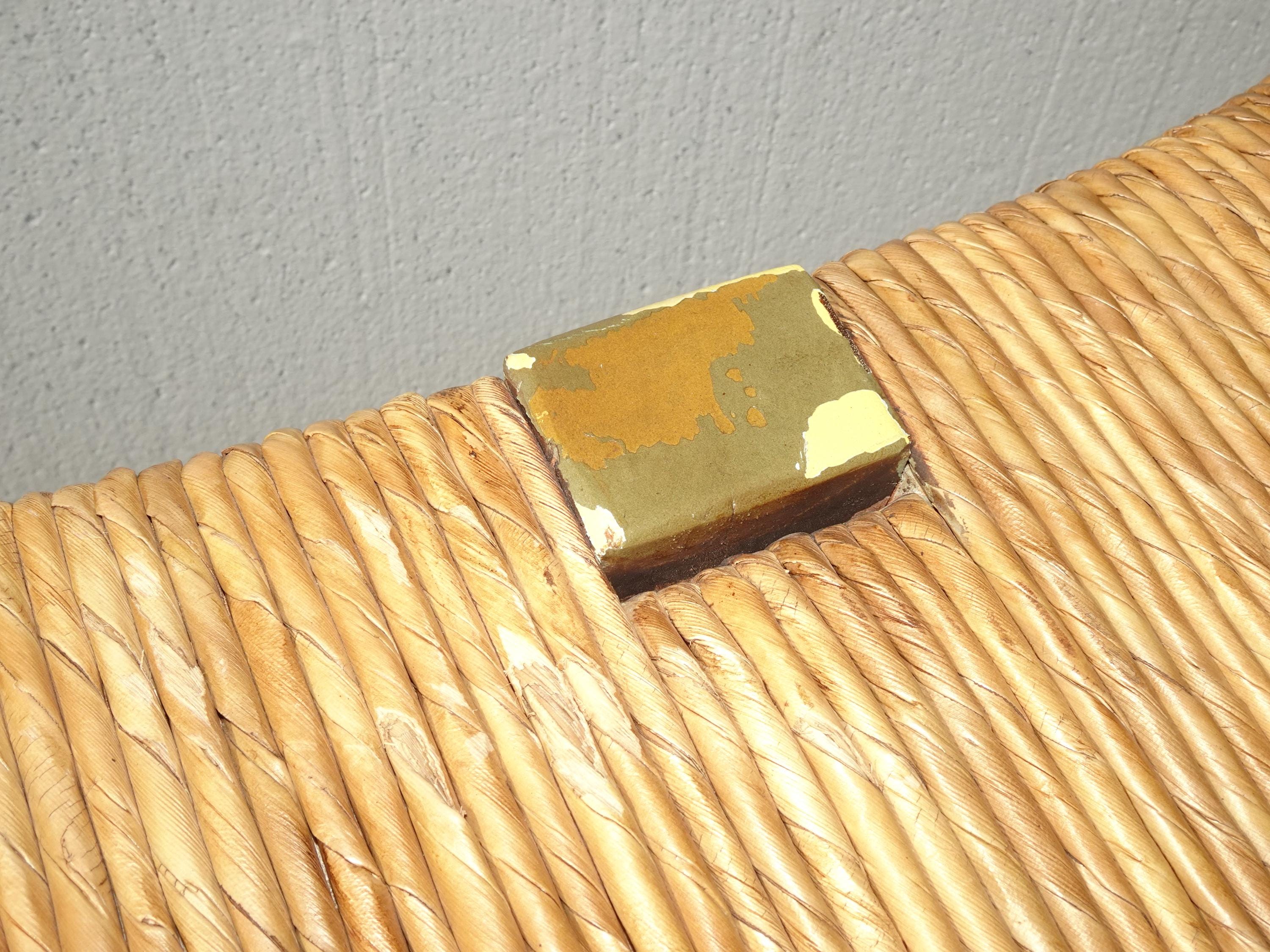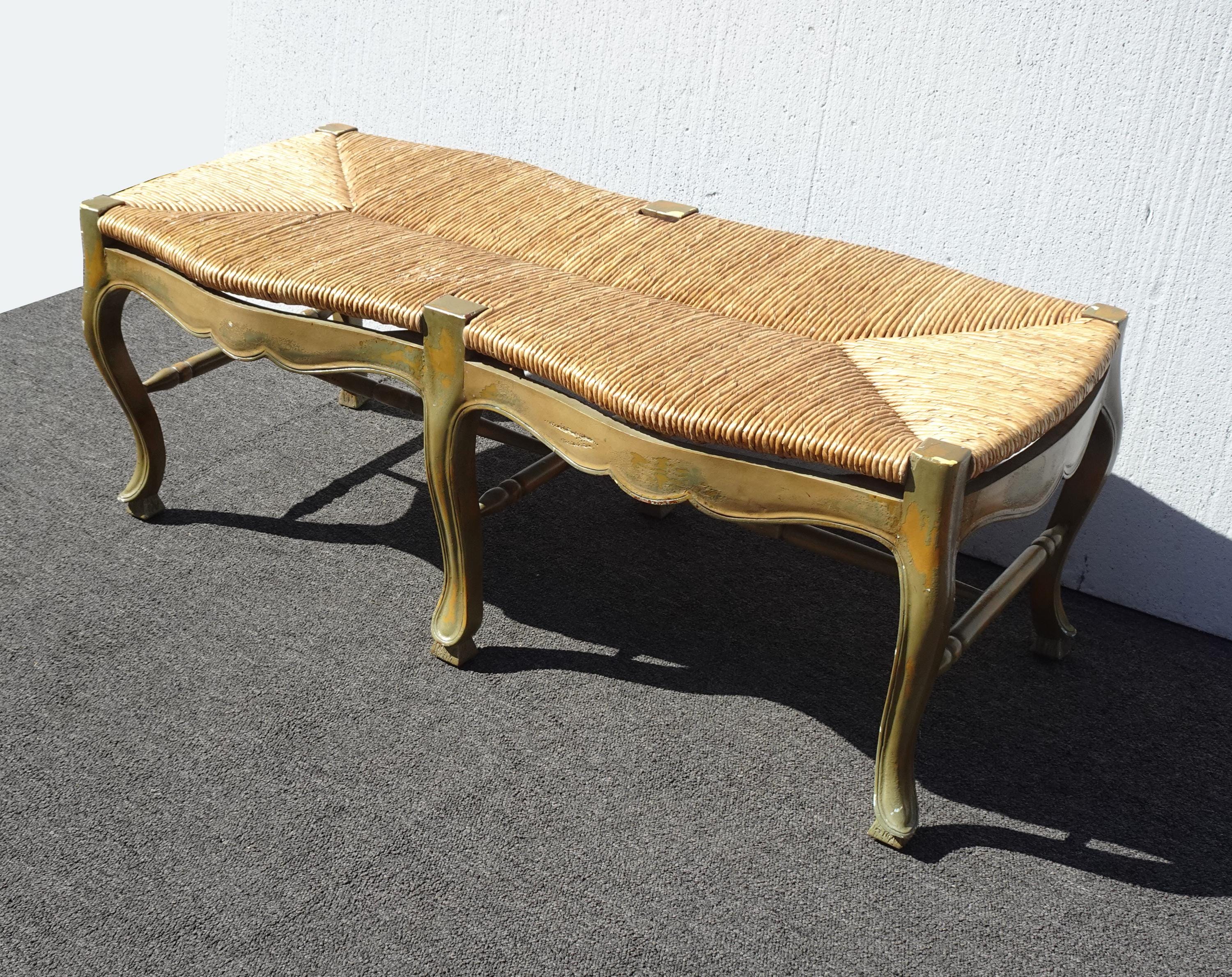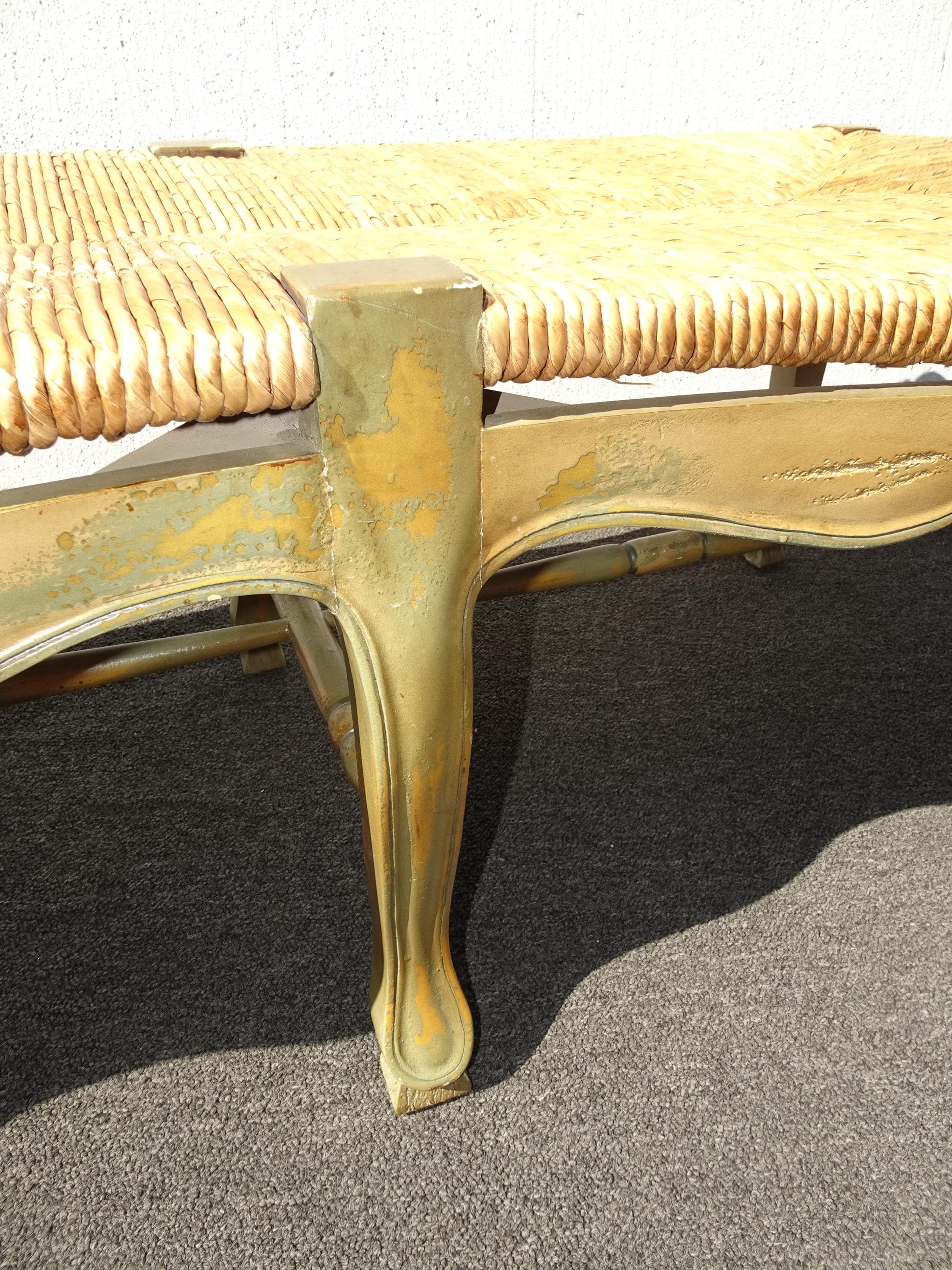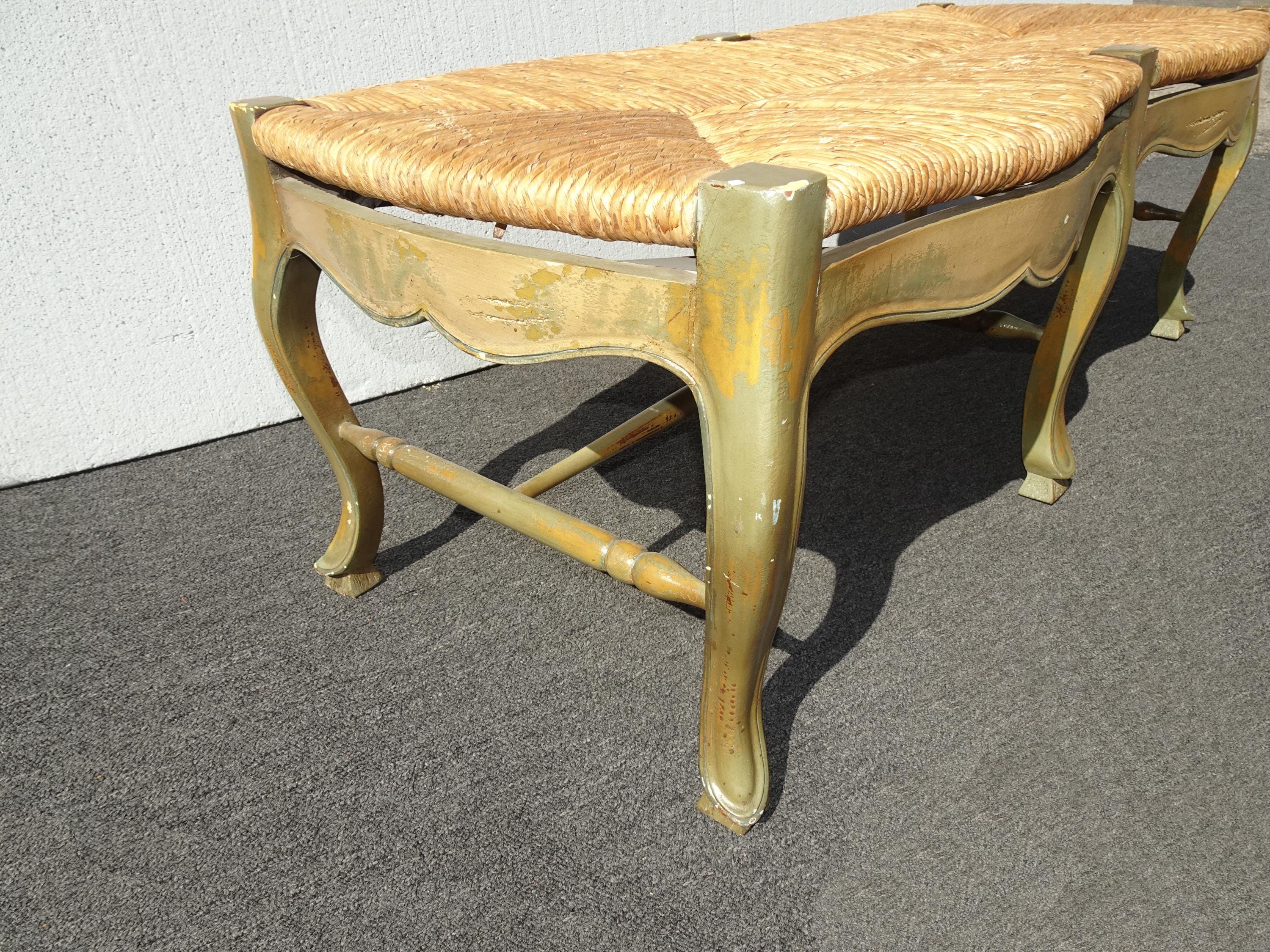 Vintage French Country Green Rush Bench