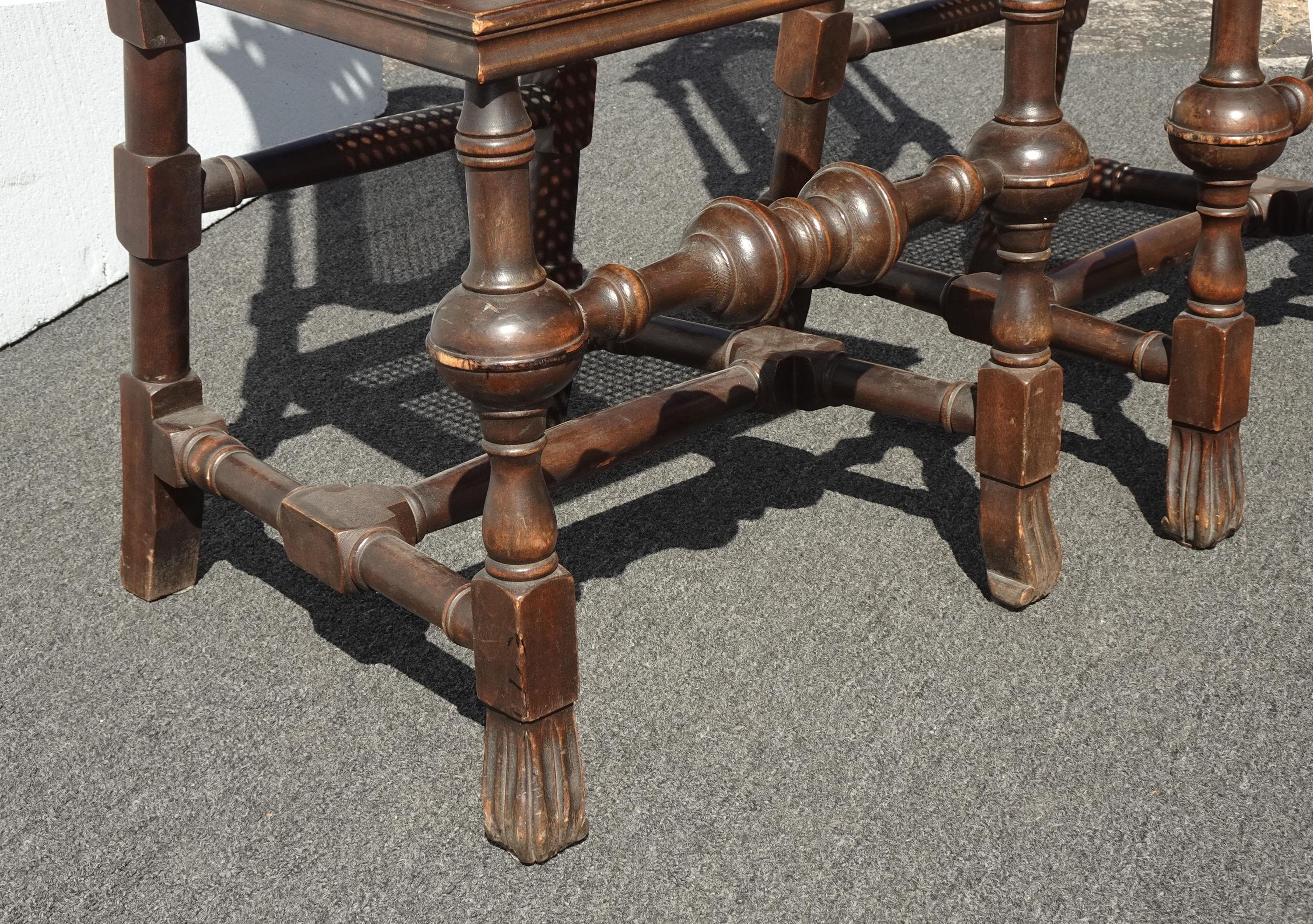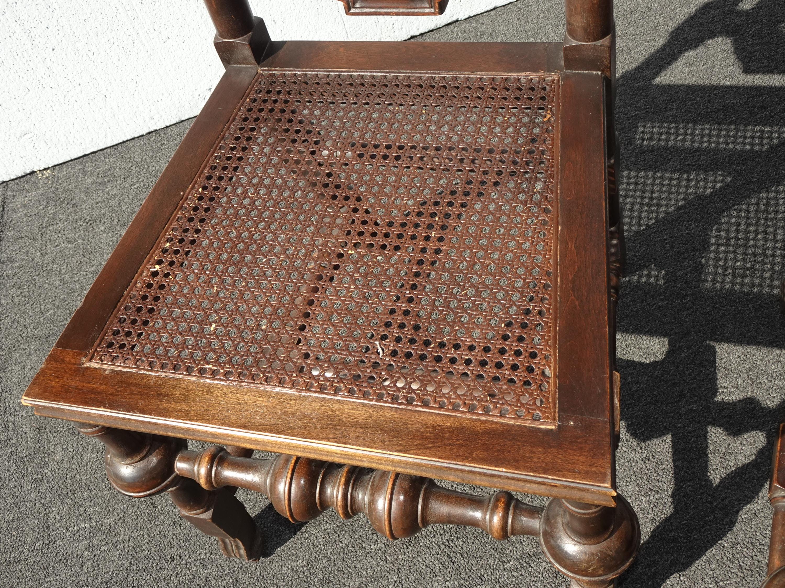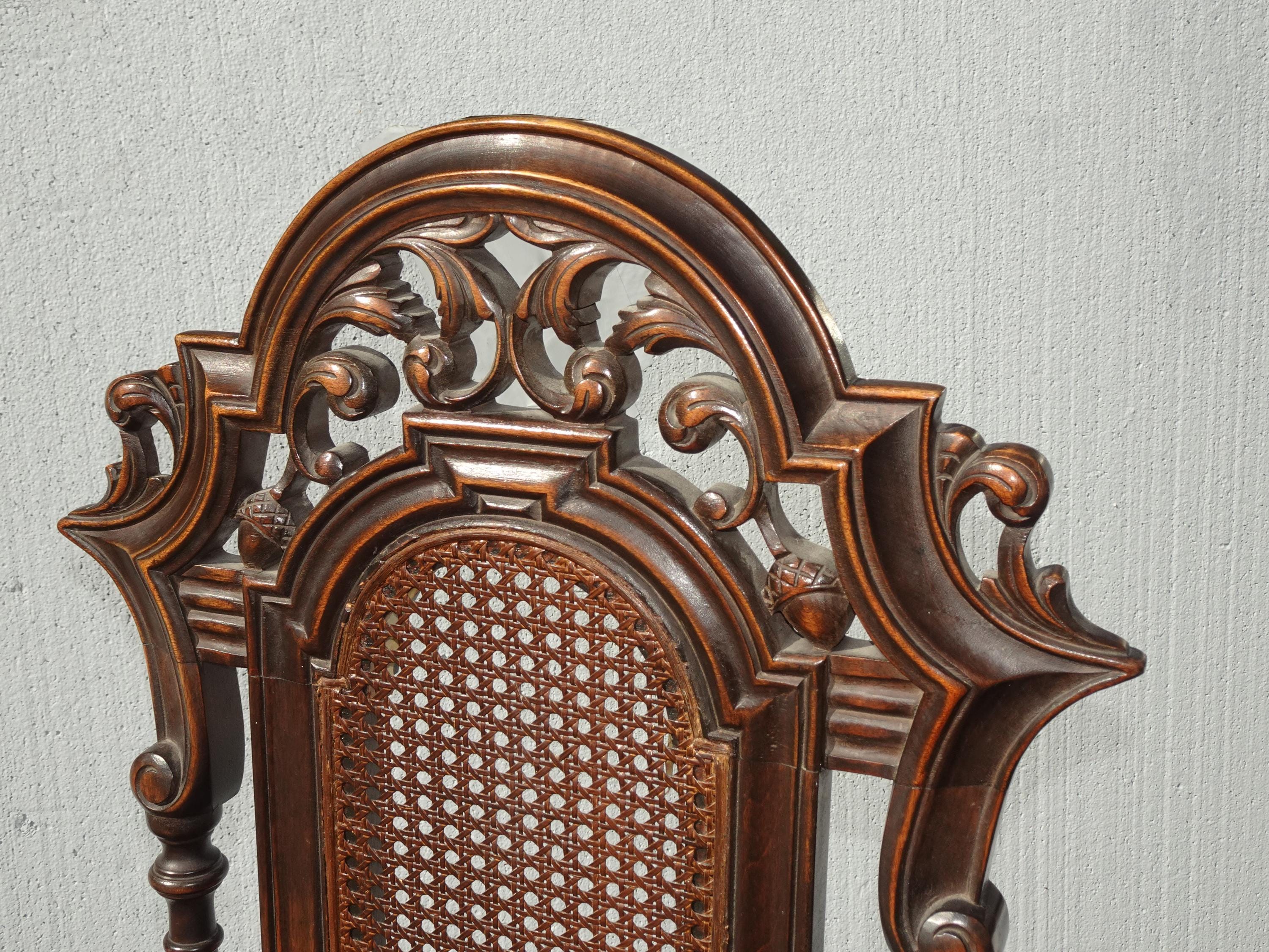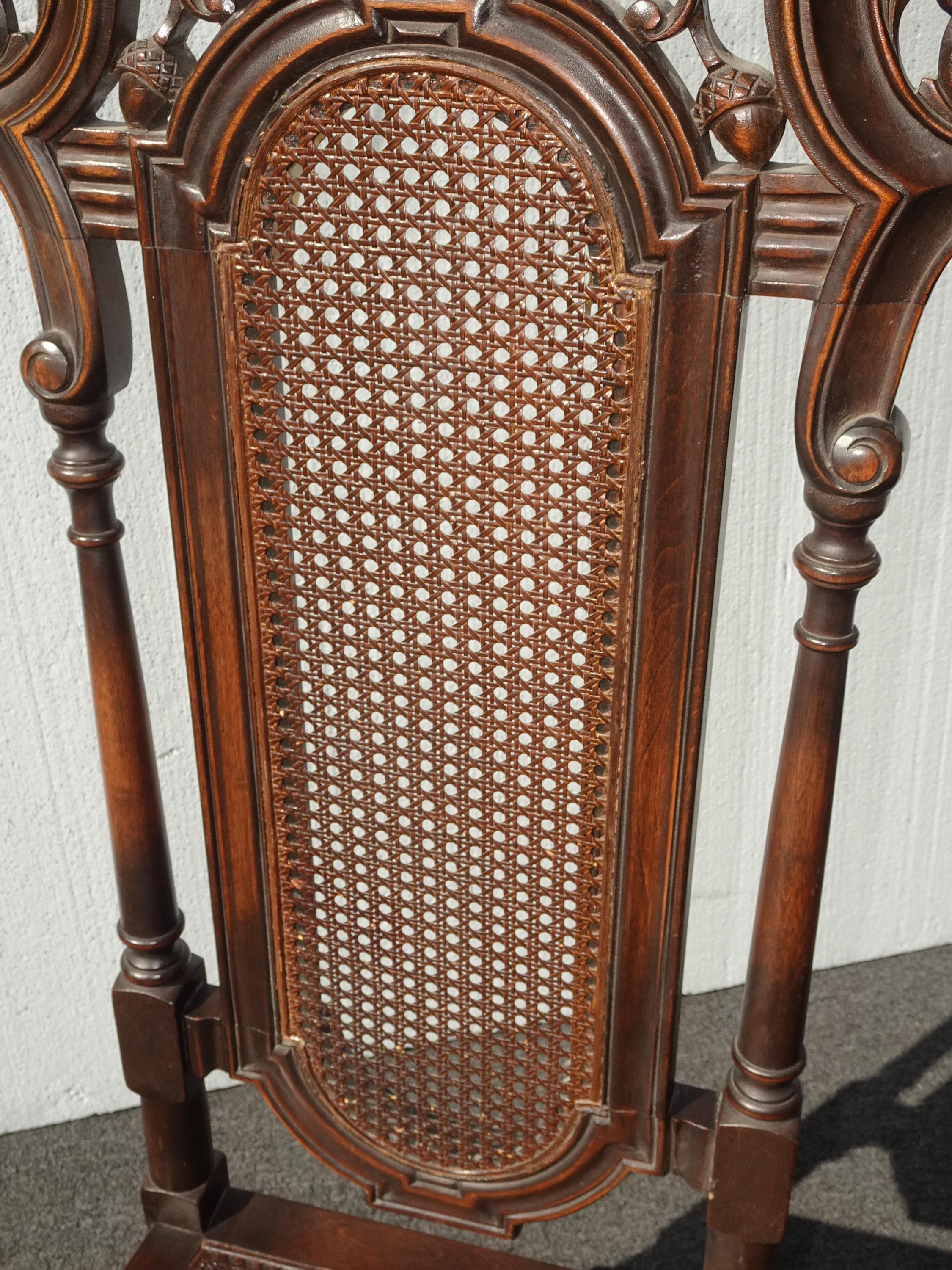 Pair Vintage Ornate Spanish Style Tallback Brown Cane Side Chairs French Style