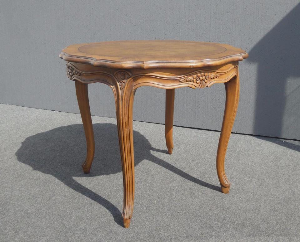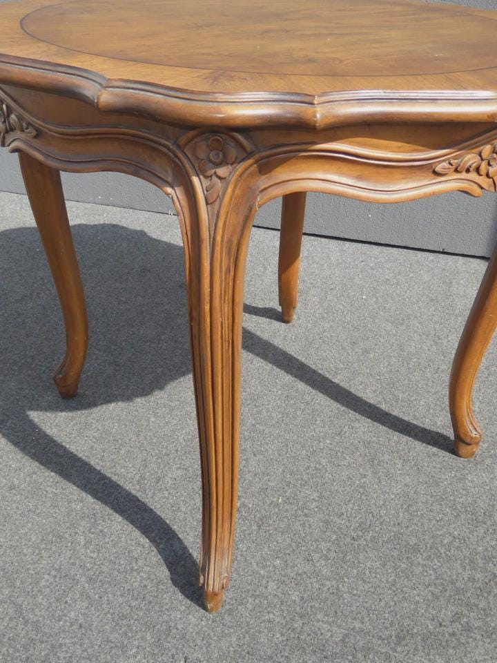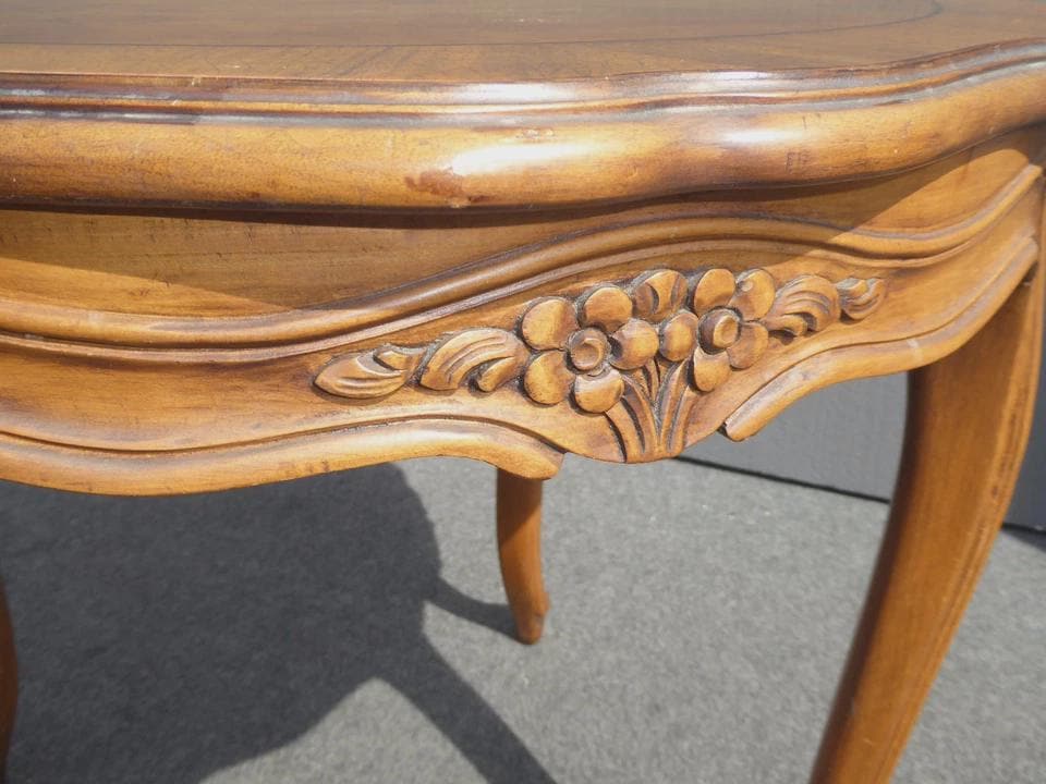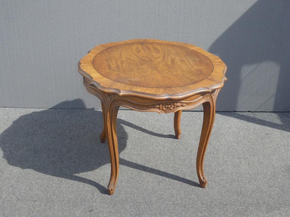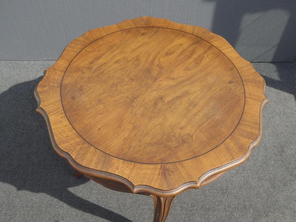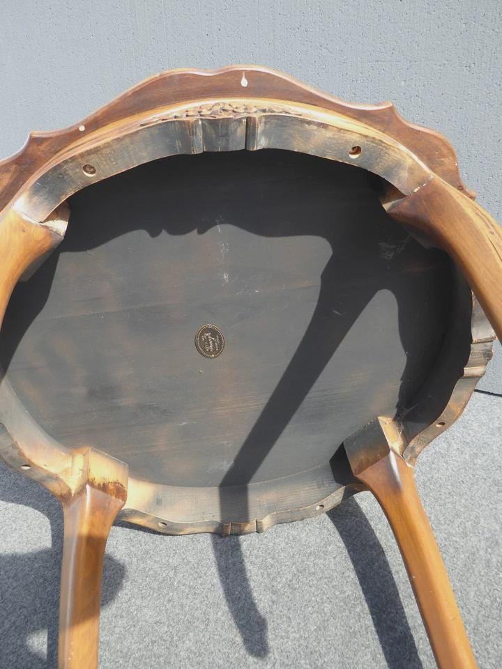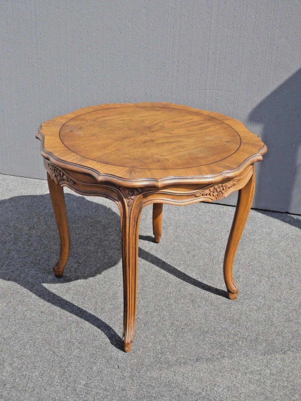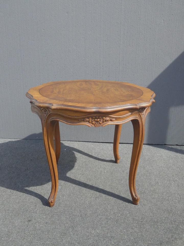 Vintage Karges Furniture French Provincial Round Carved Wood Side Table