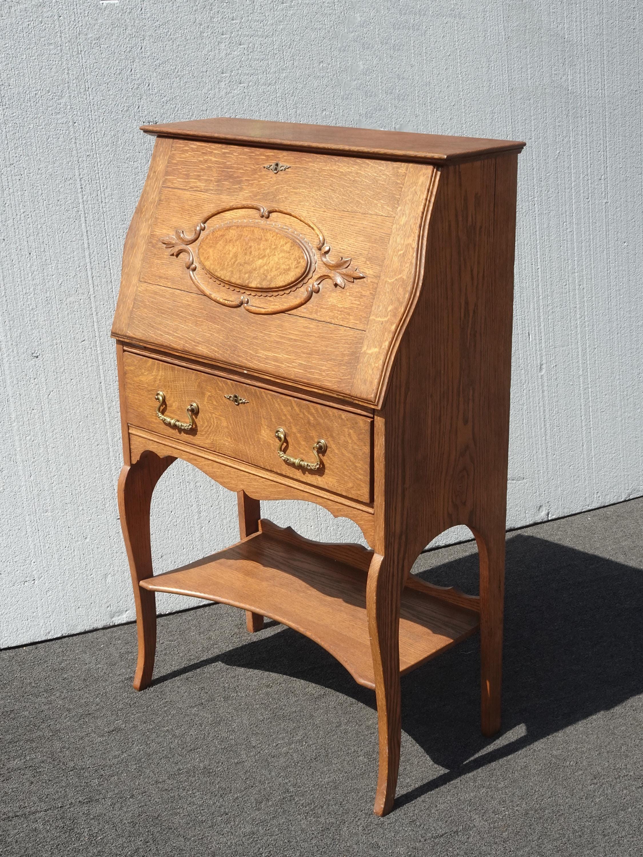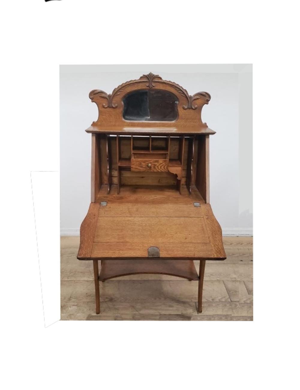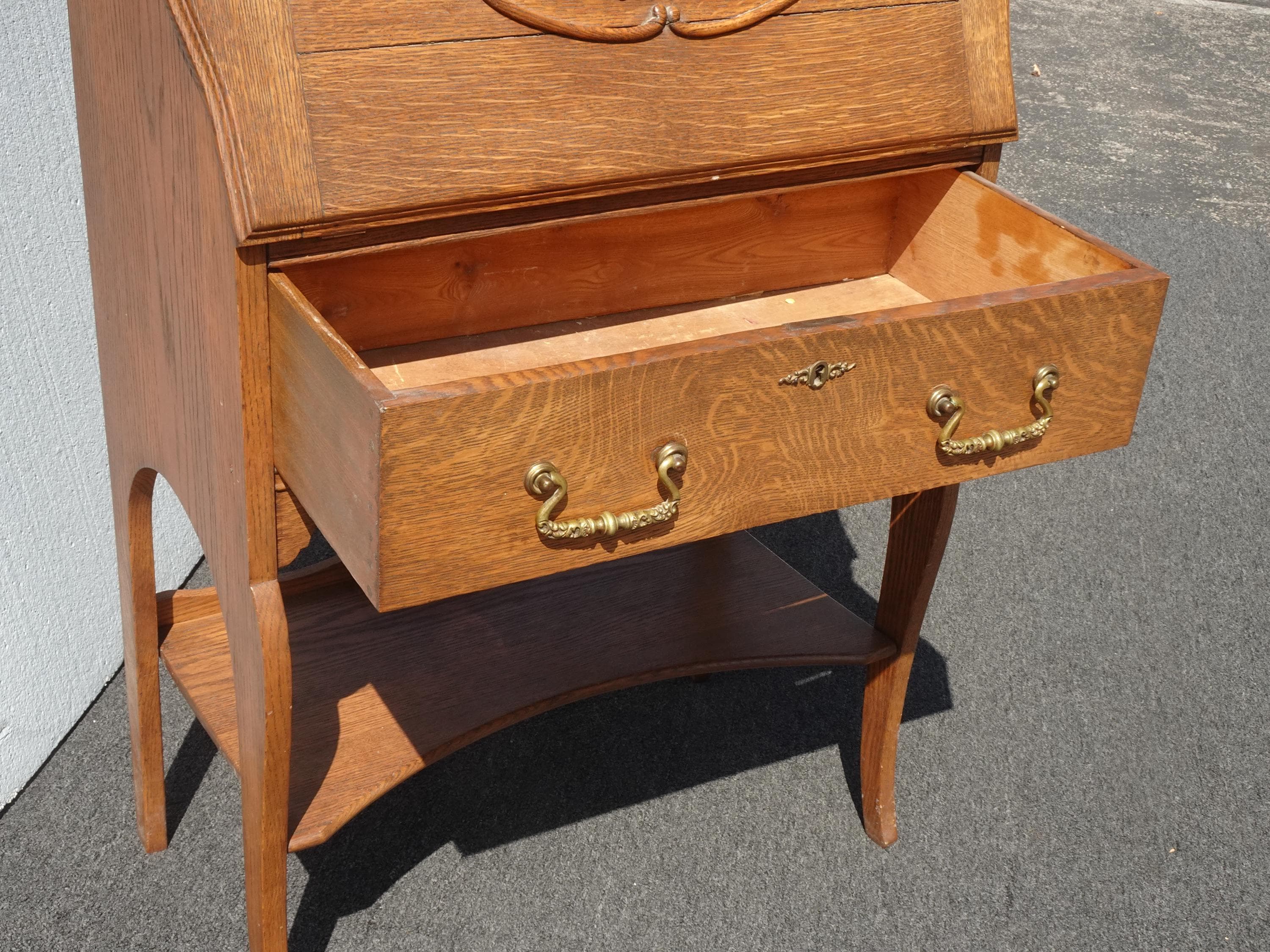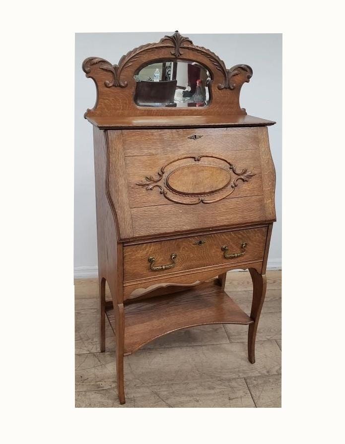 Antique Slant Front Drop Leaf Secretary Desk Quartersawn Oak with Mirror