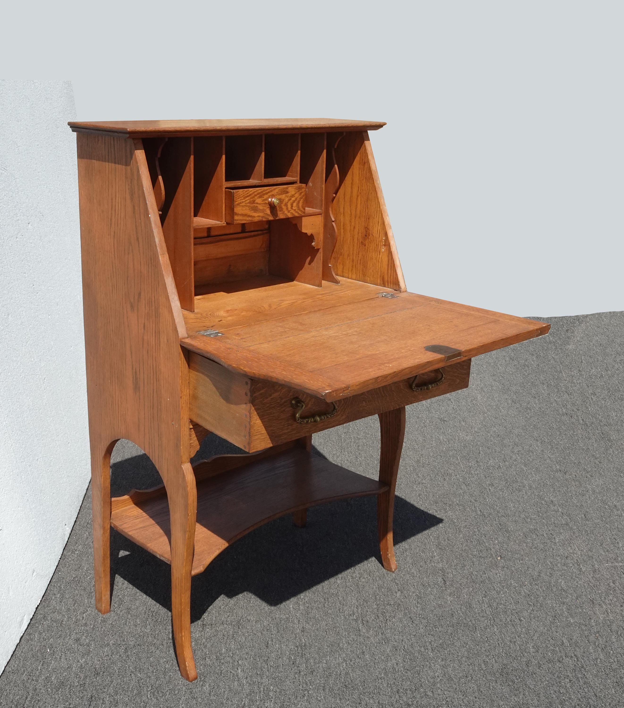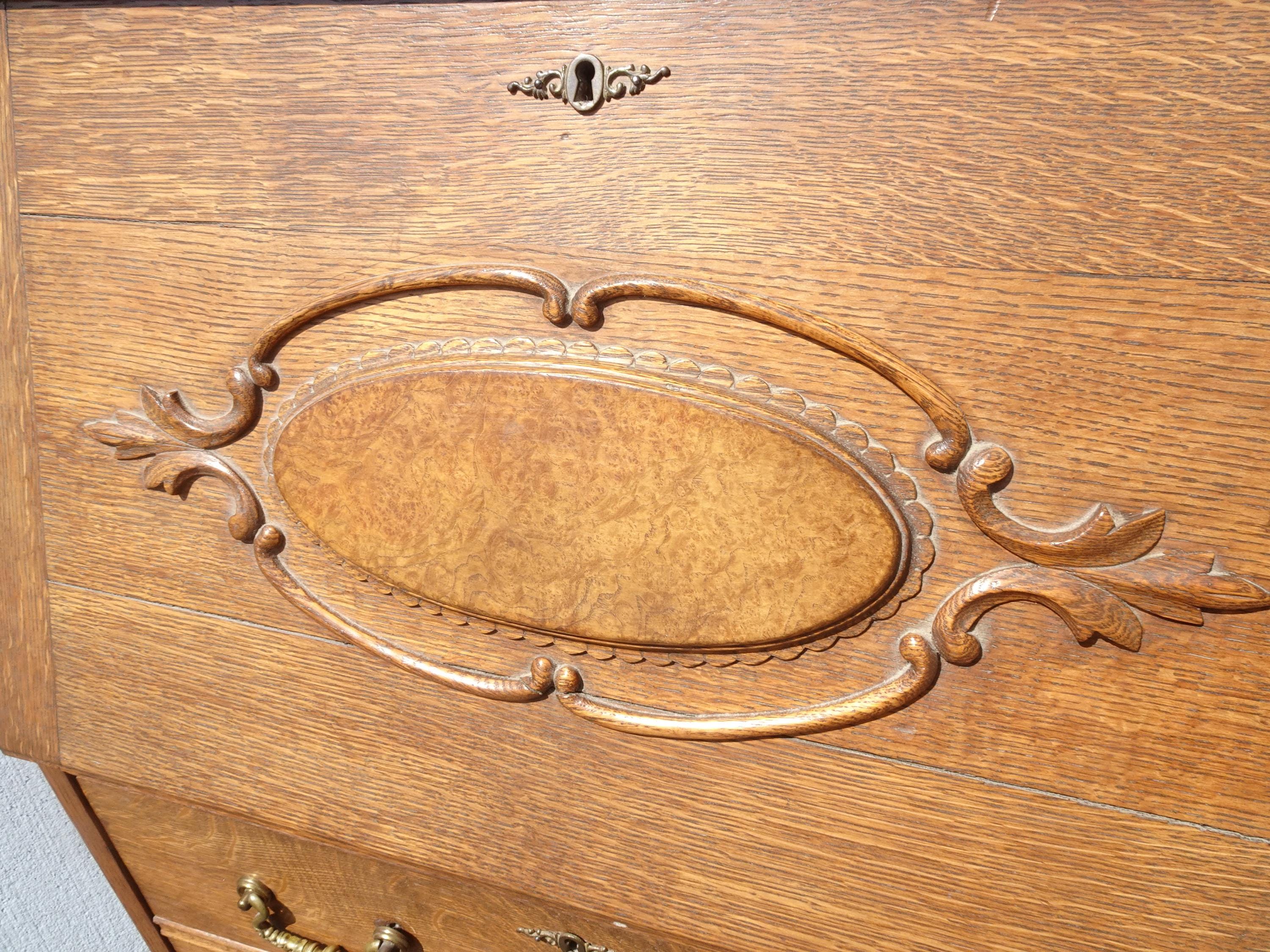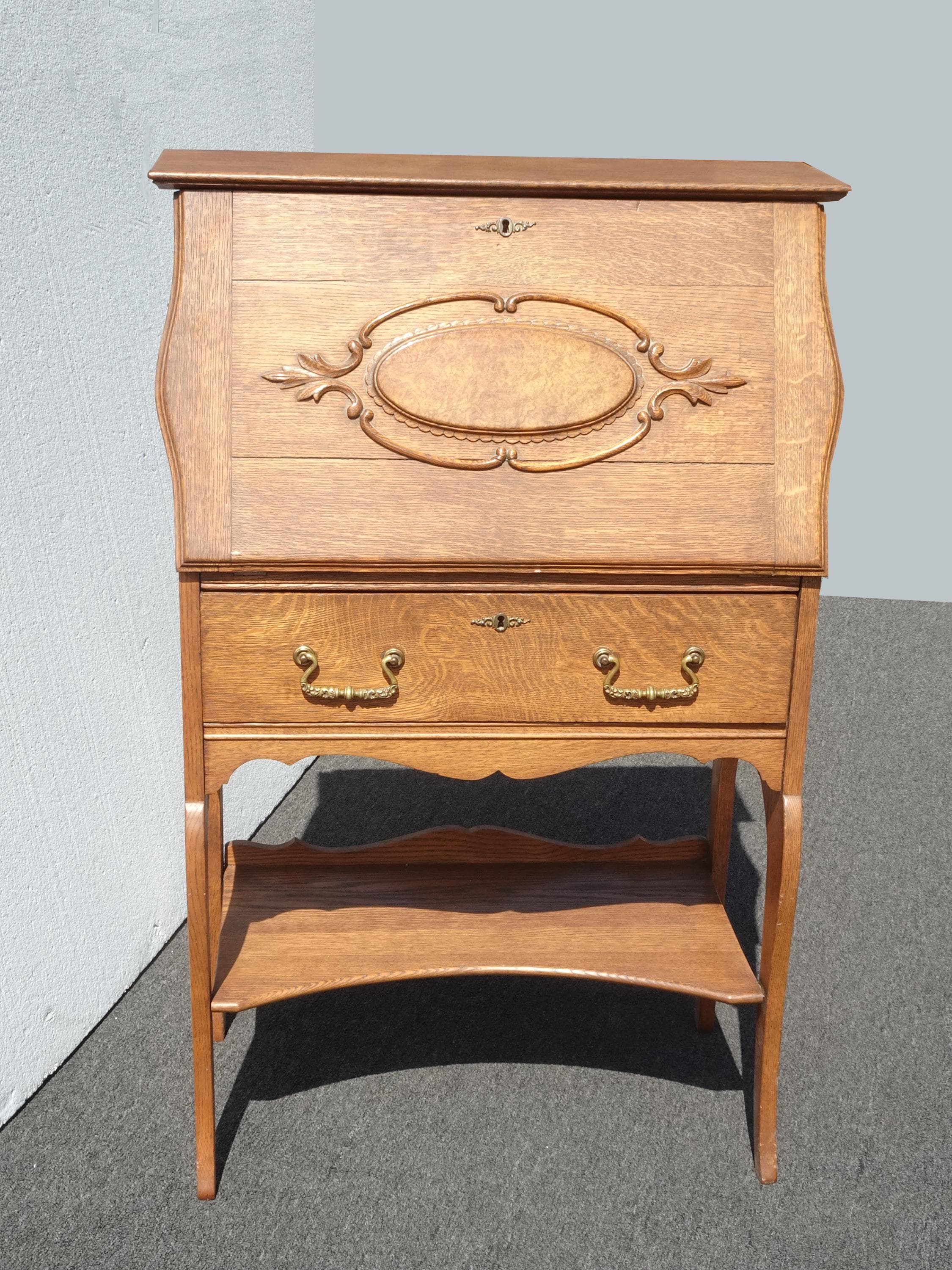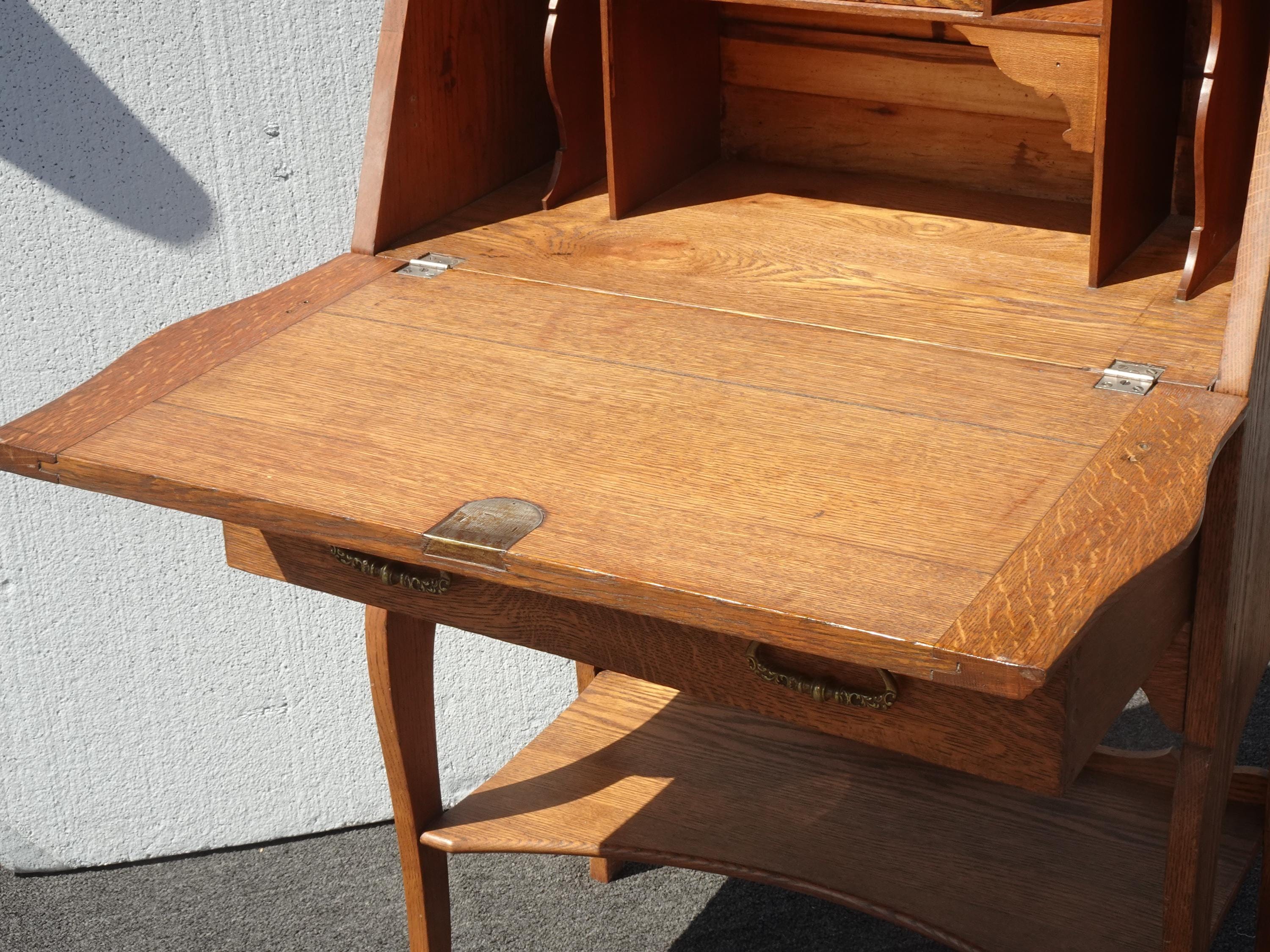Antique Slant Front Drop Leaf Secretary Desk Quartersawn Oak with Mirror