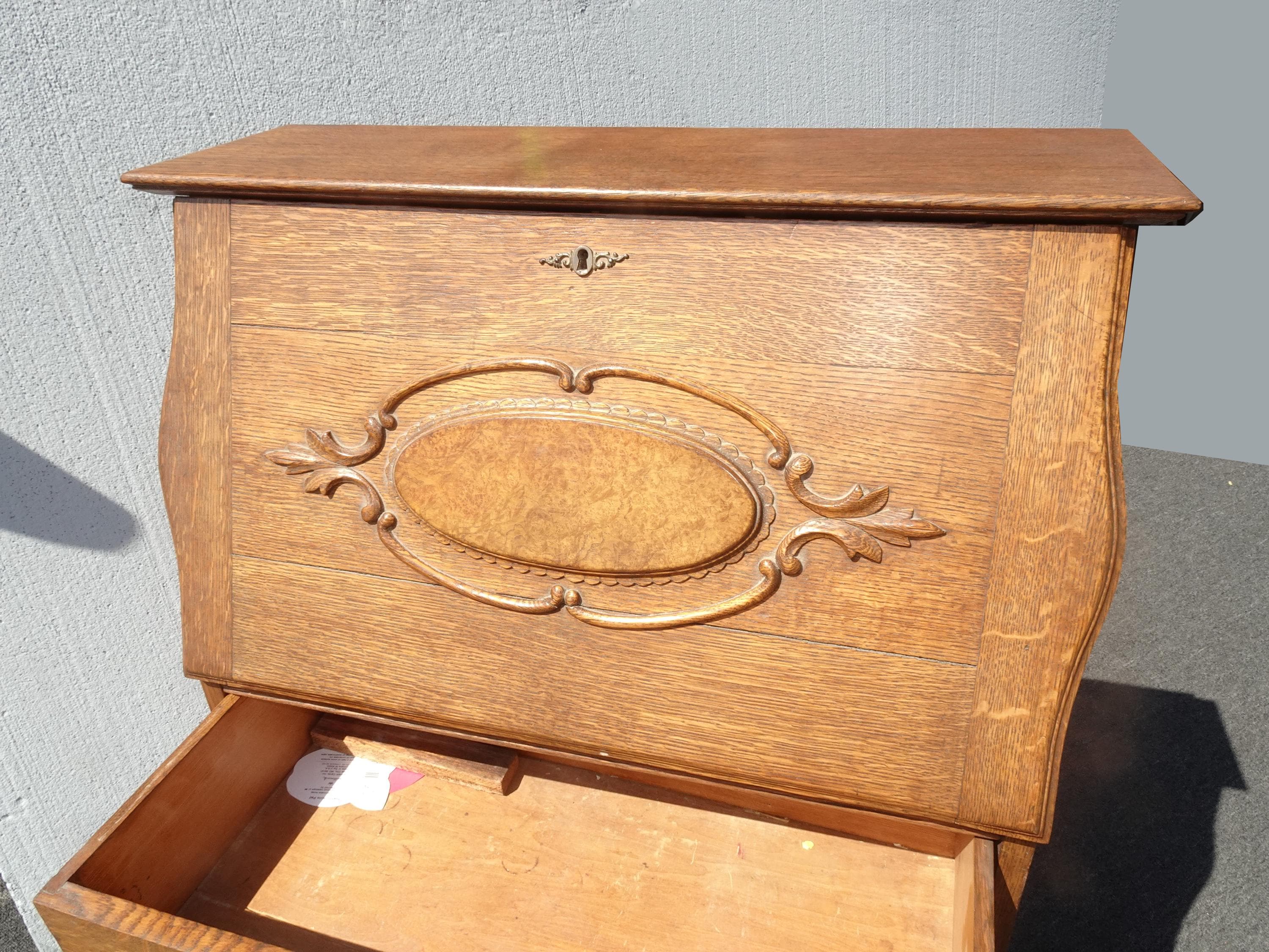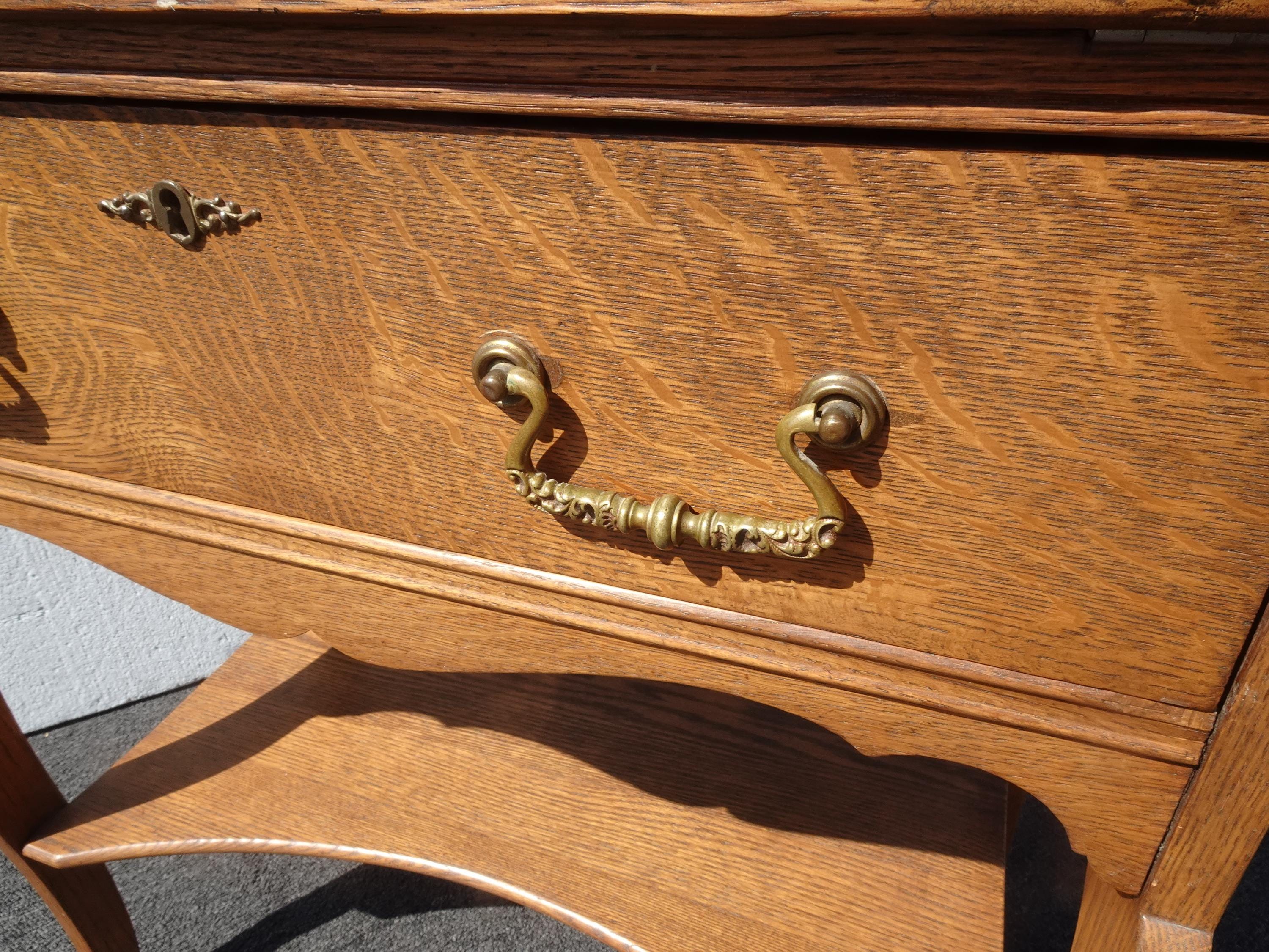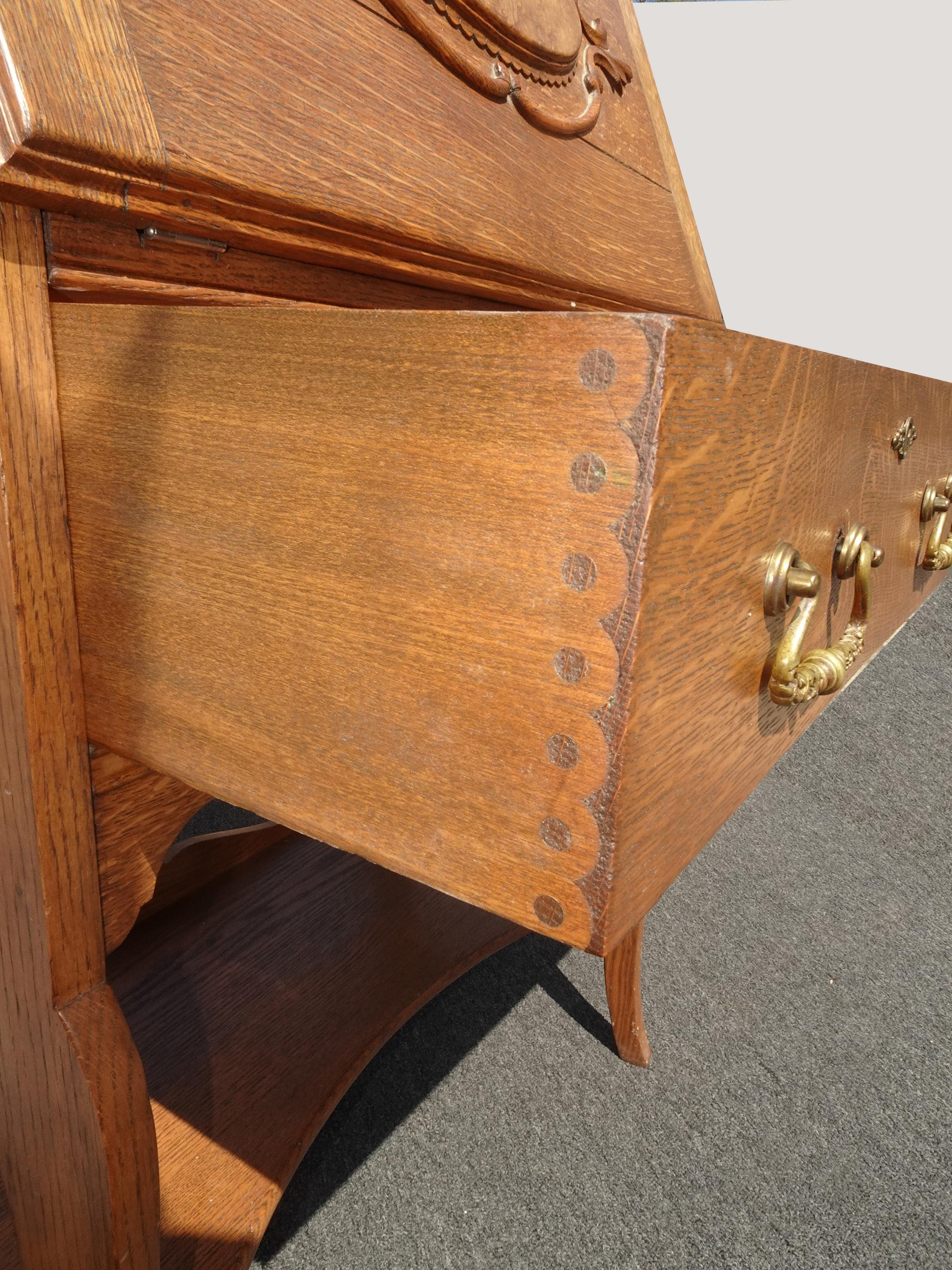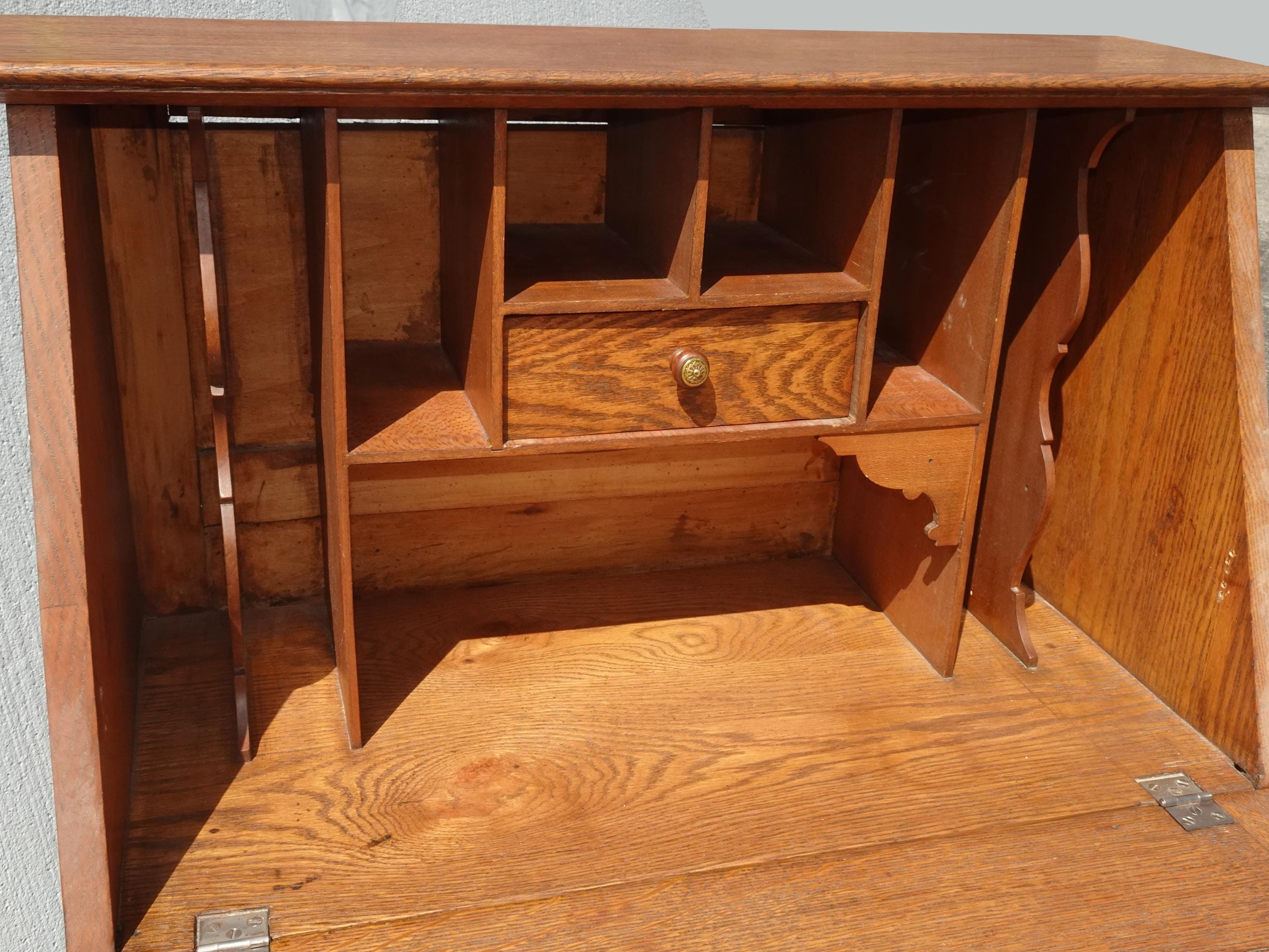 Antique Slant Front Drop Leaf Secretary Desk Quartersawn Oak with Mirror