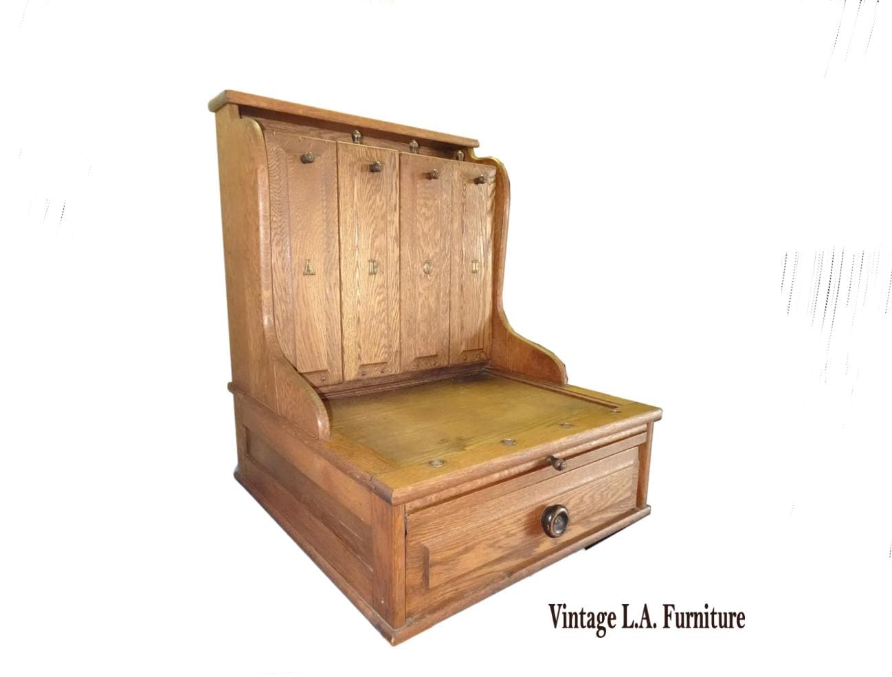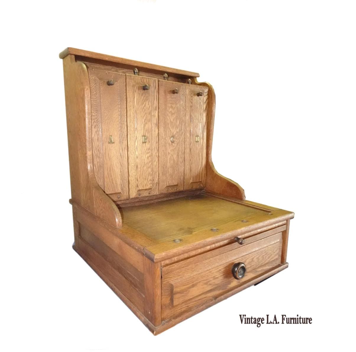 Antique McCaskey Counter Top File Cabinet Register ~ w Drop Down Drawers & Tray