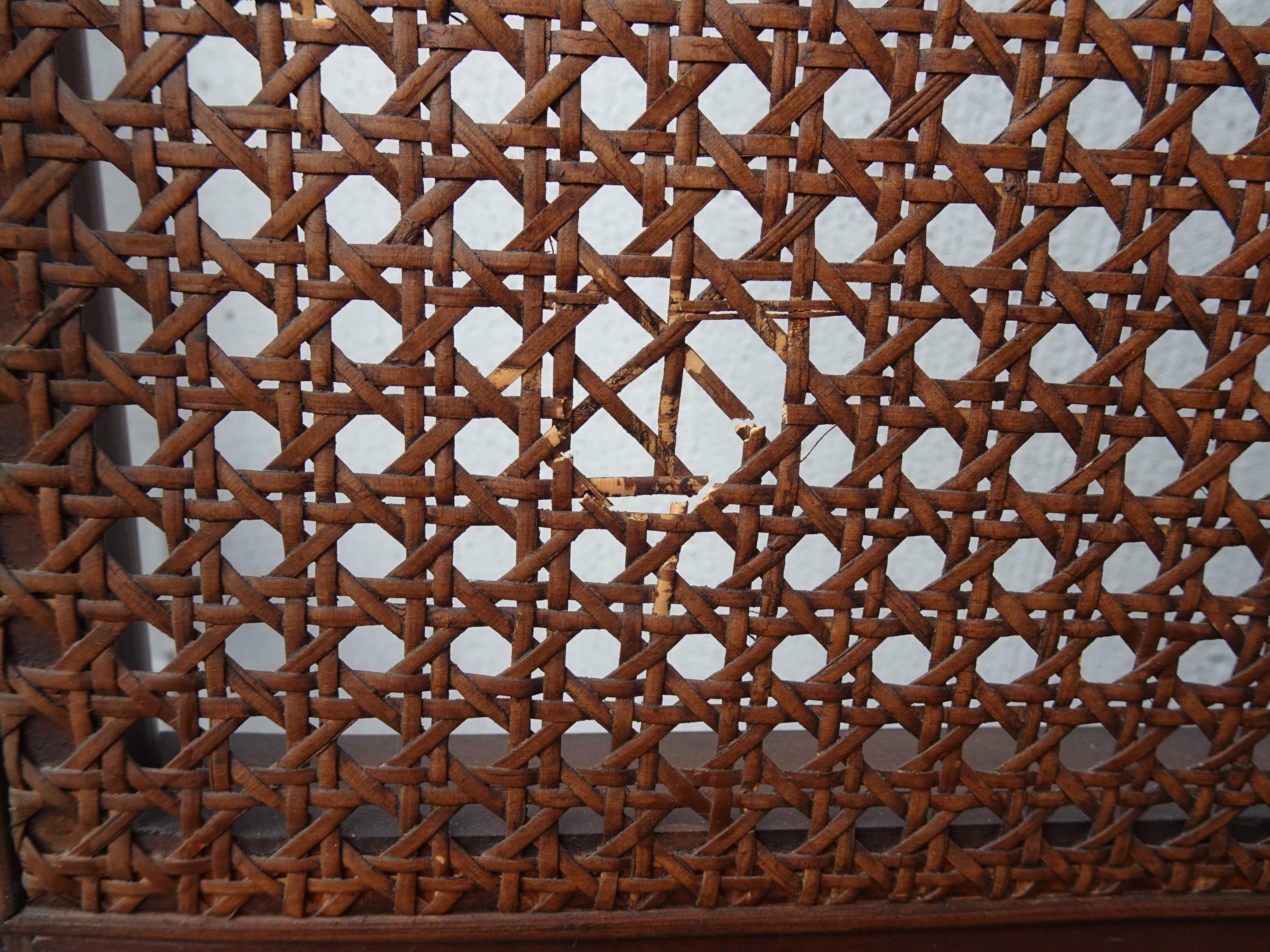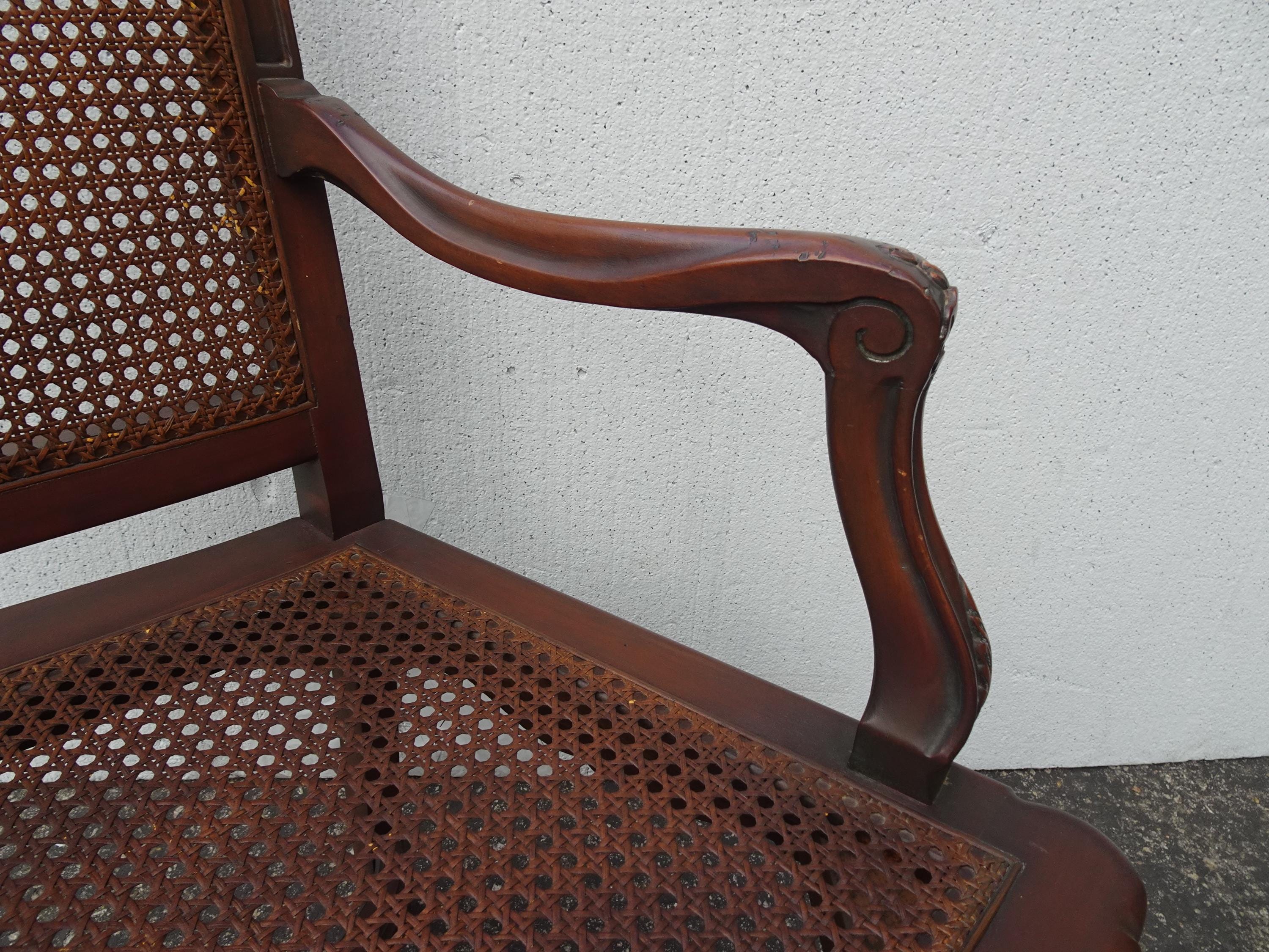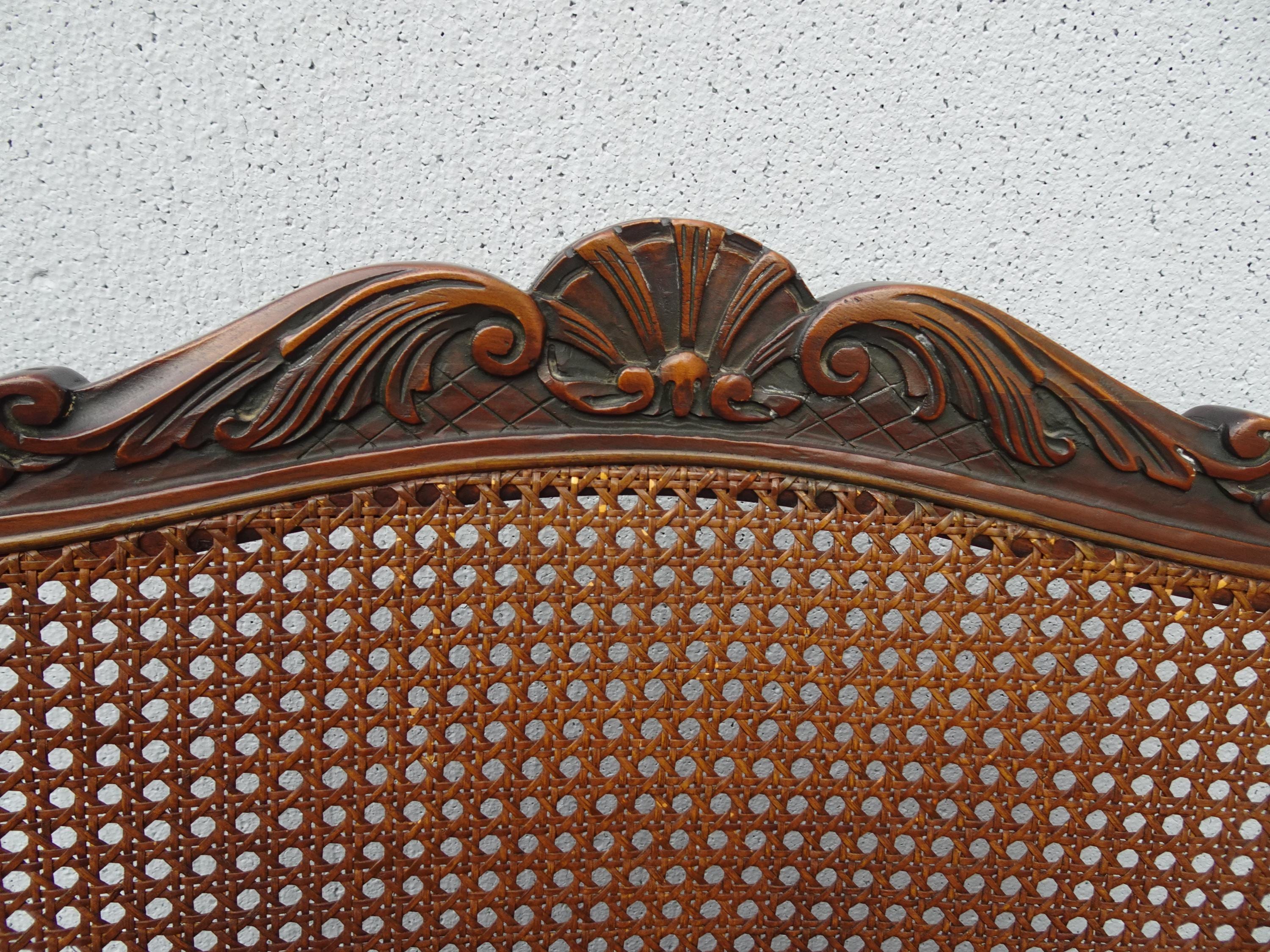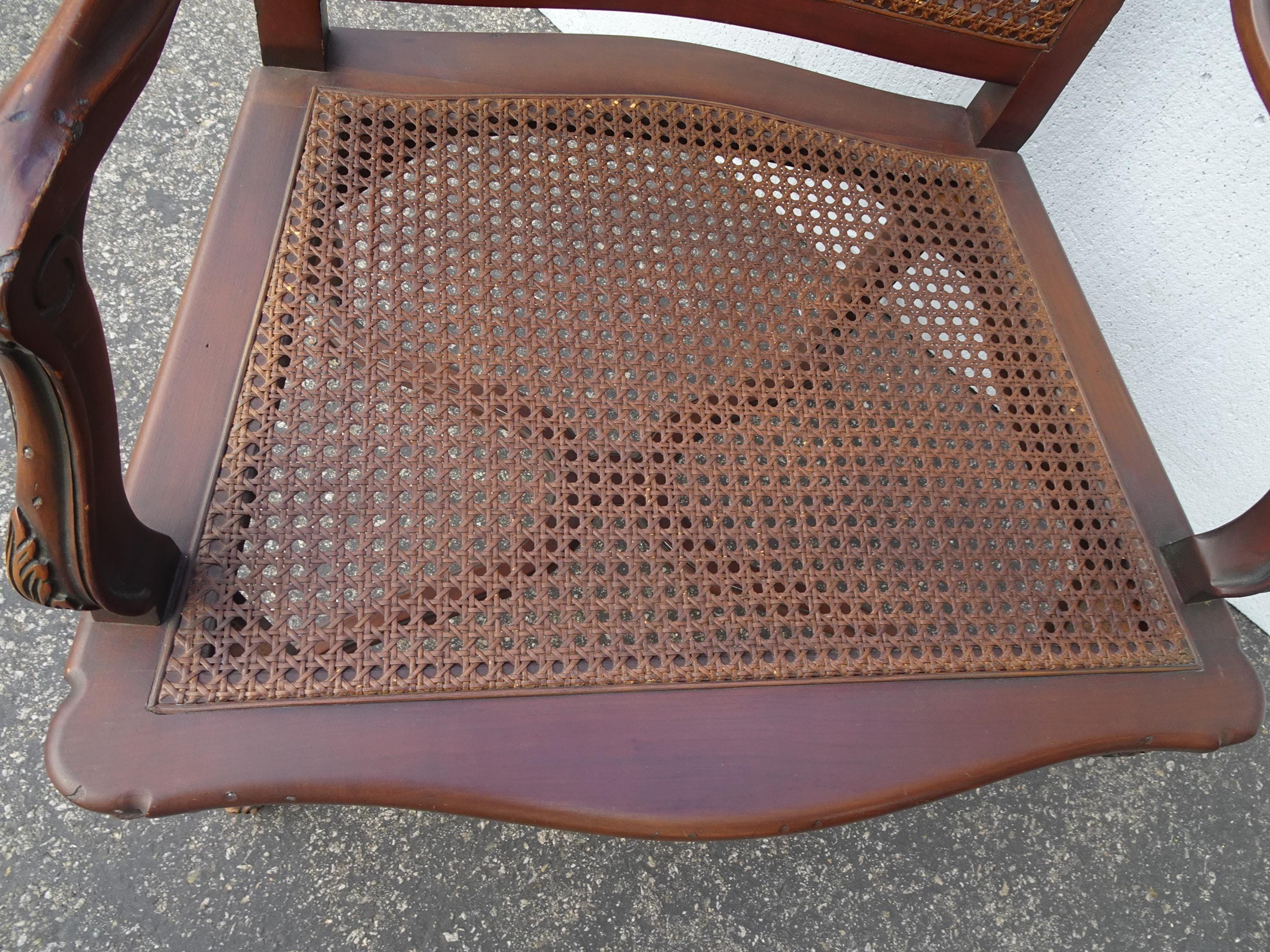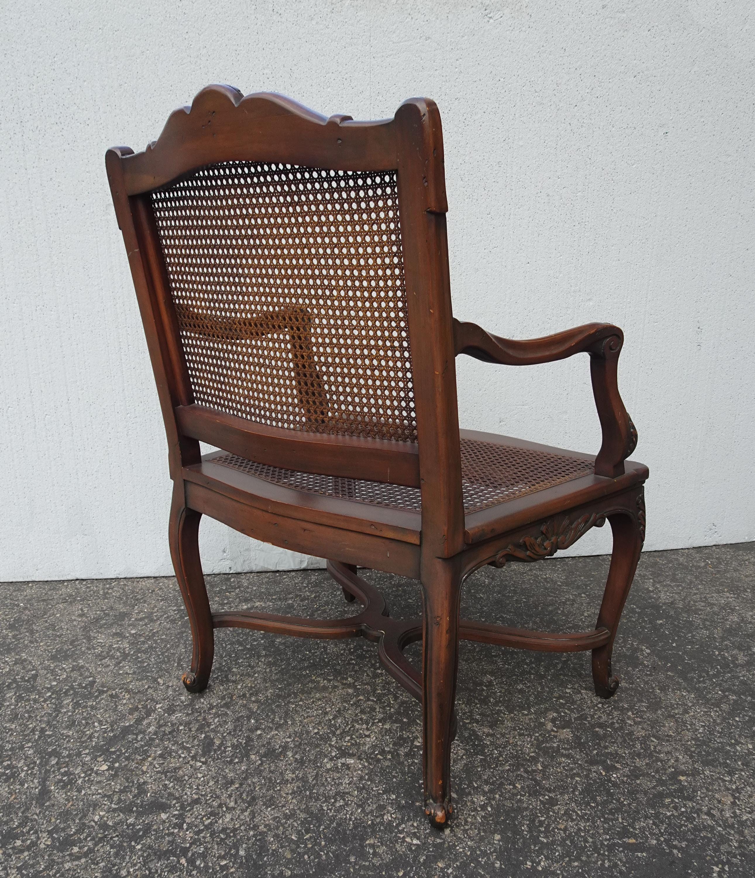 Pair French Provincial Louis XVI Style Cane Back Armchairs Chairs w Stretcher
