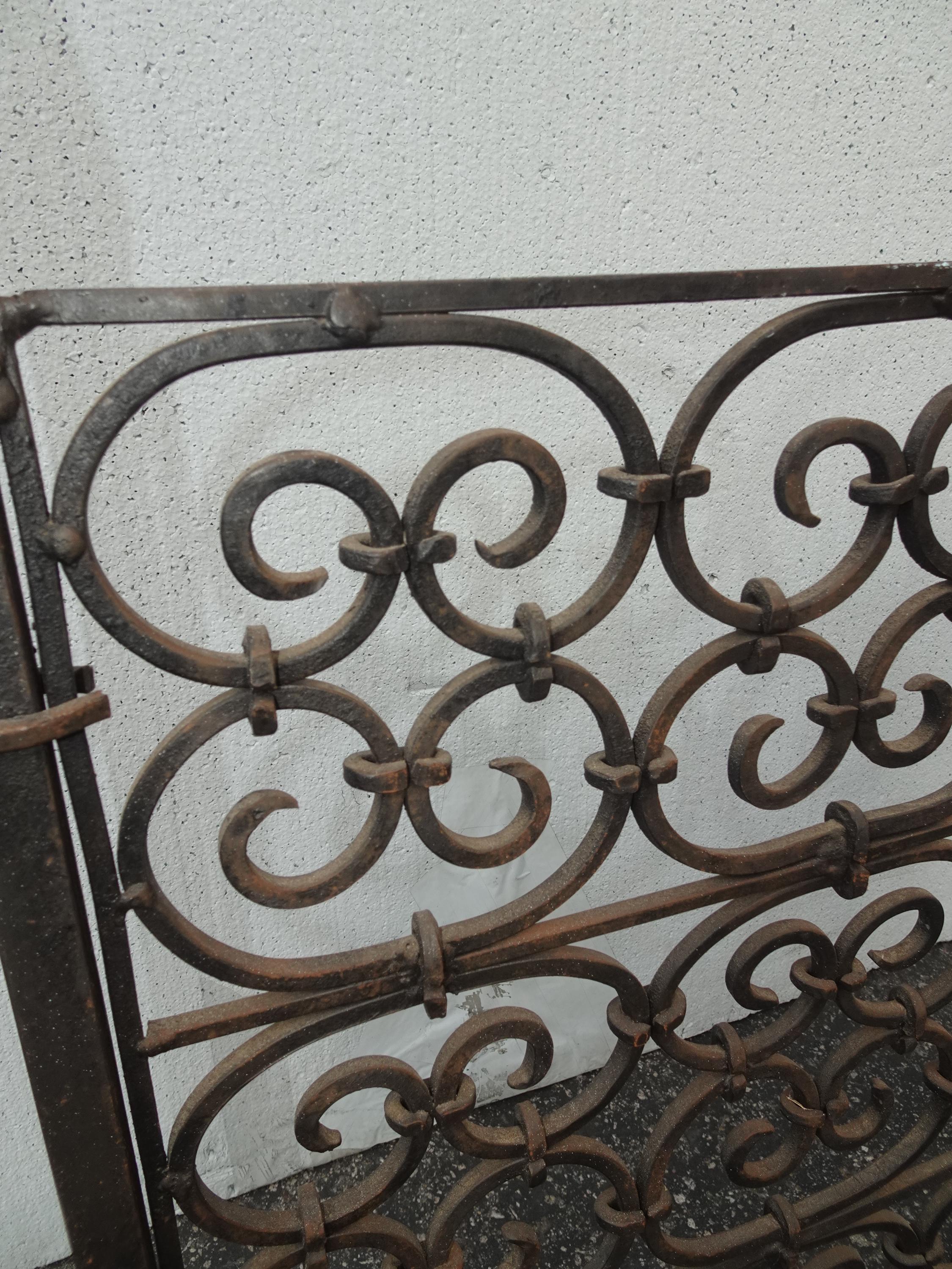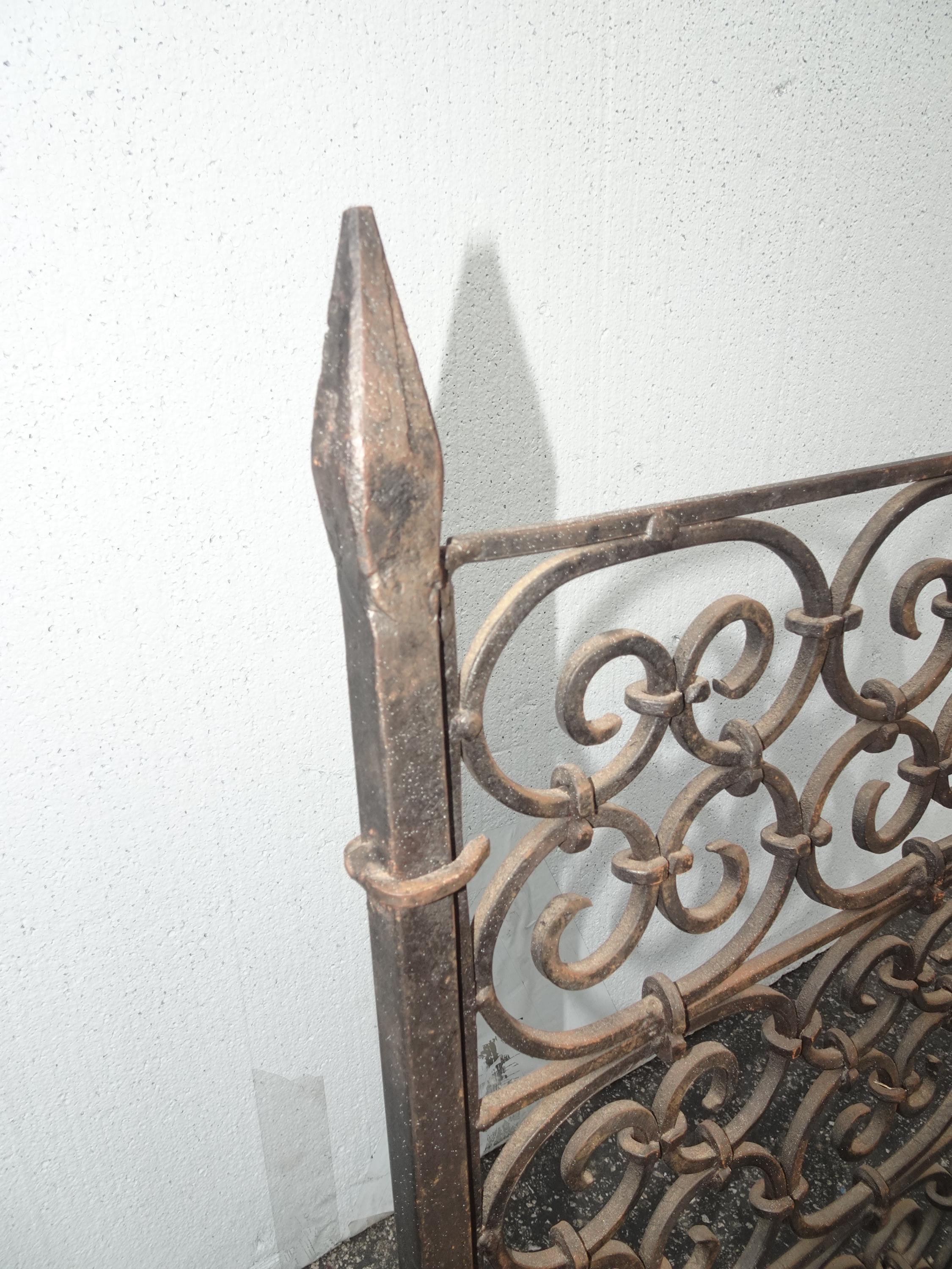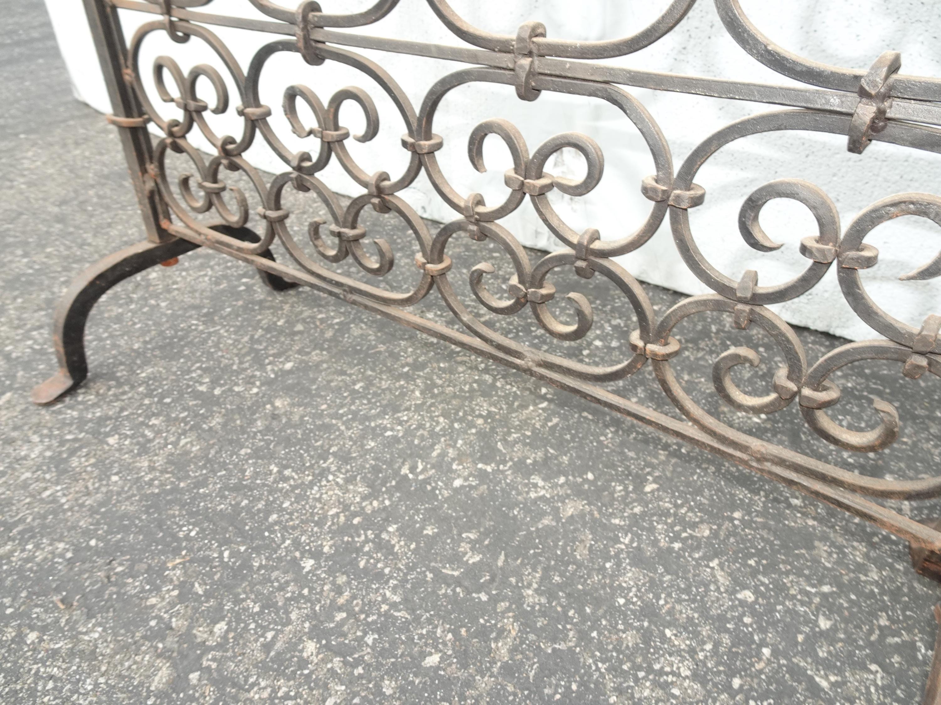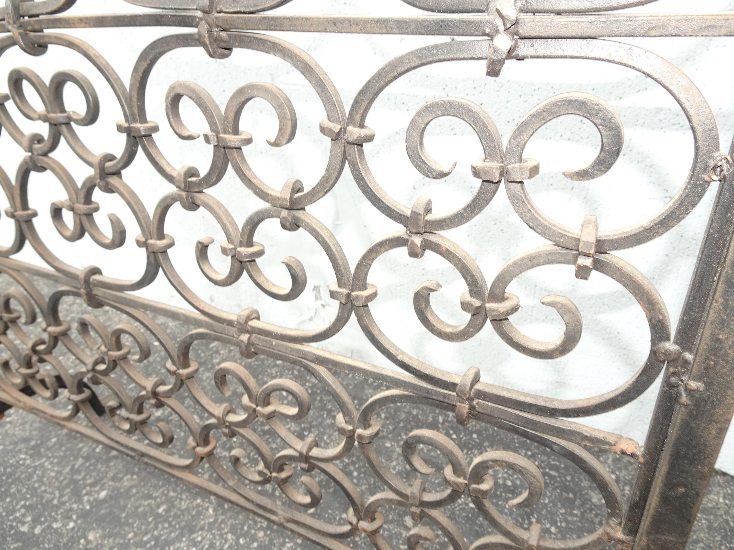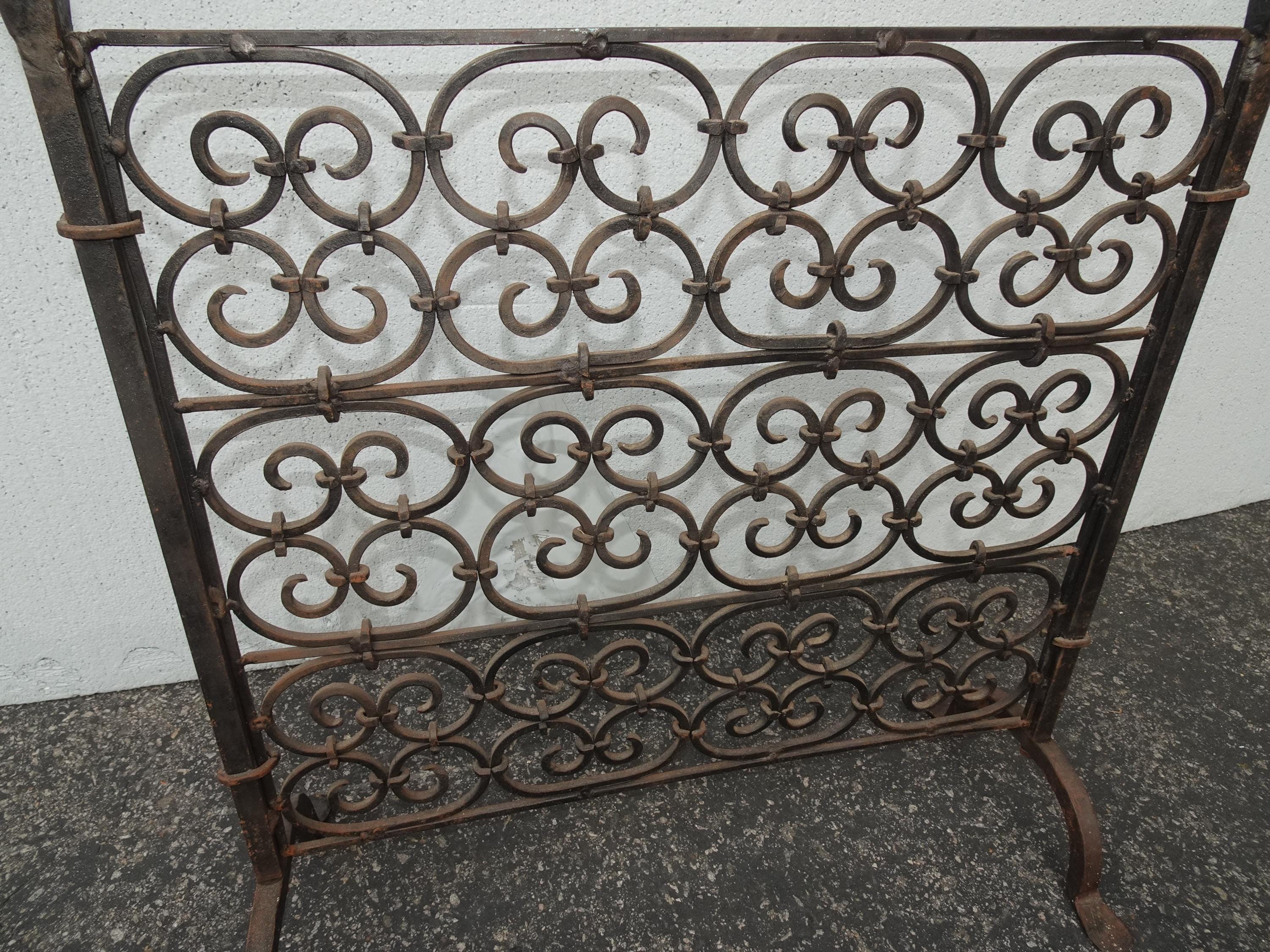 Vintage French Country Black Wrought Iron Fireplace Screen w Spear Tip Finials