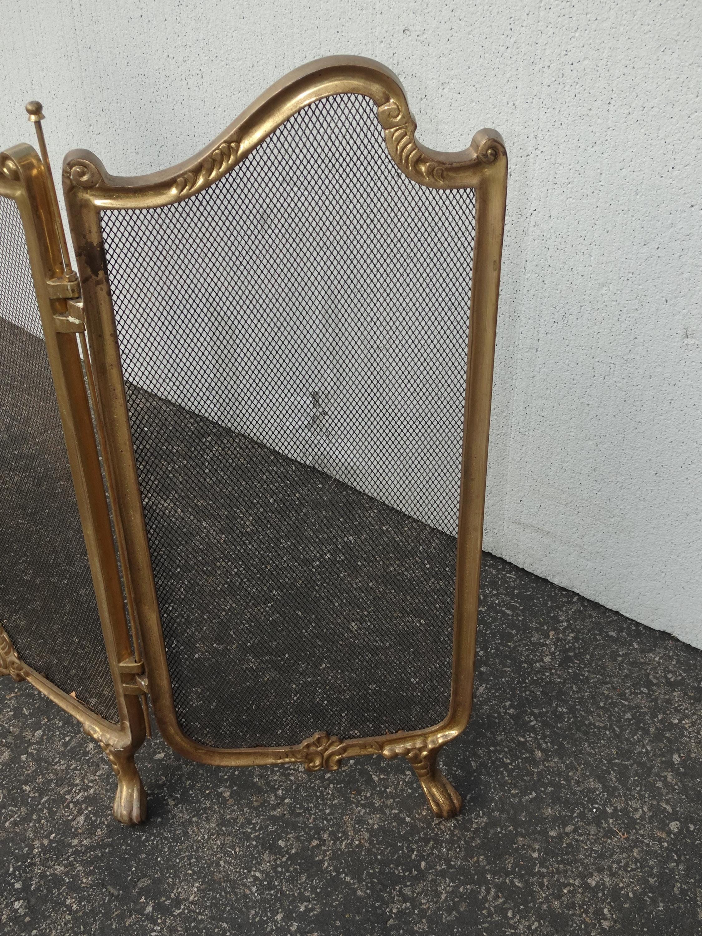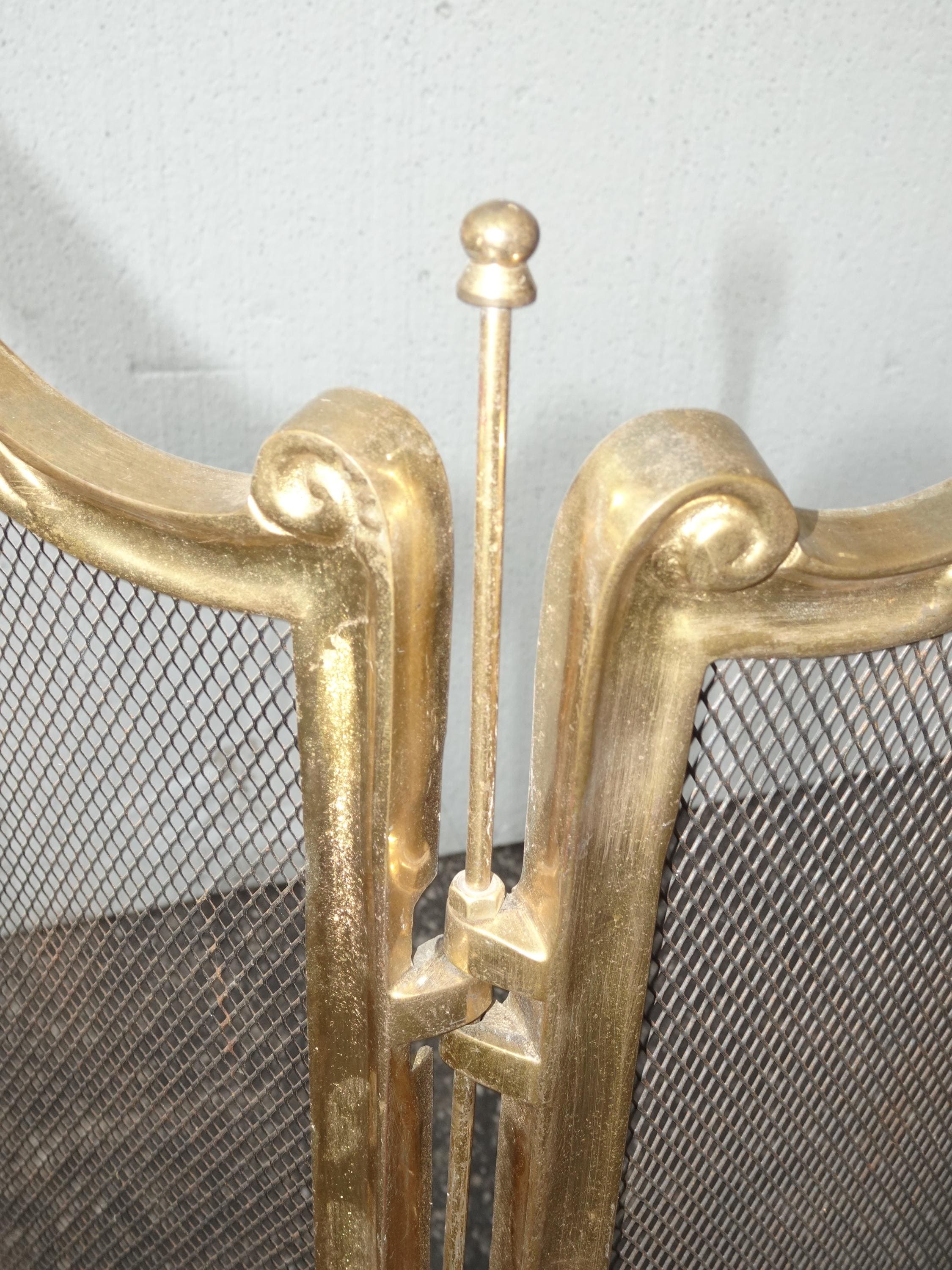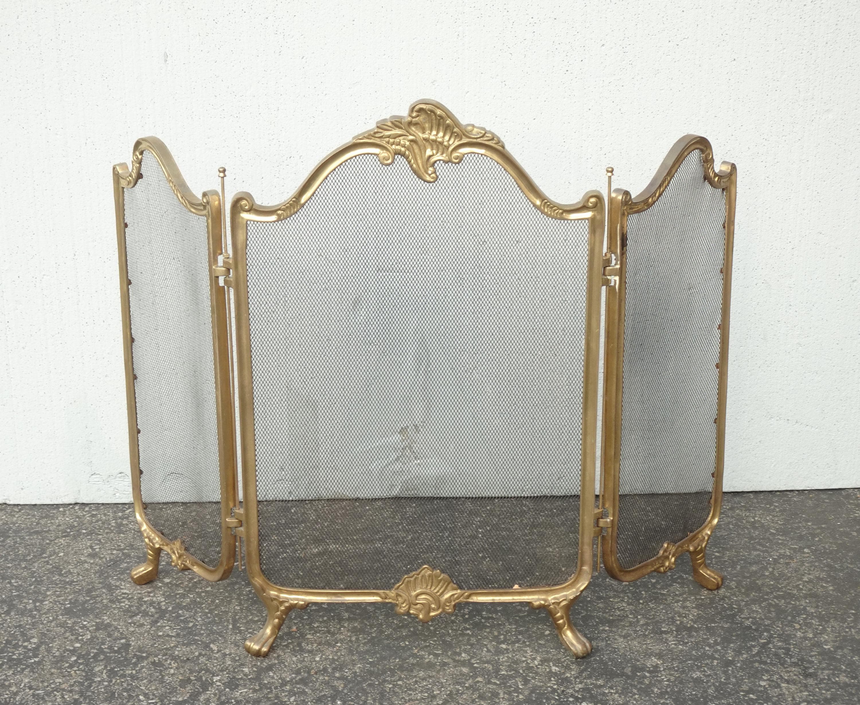Vintage French Provincial Gold Brass Three Panel Fireplace Screen
