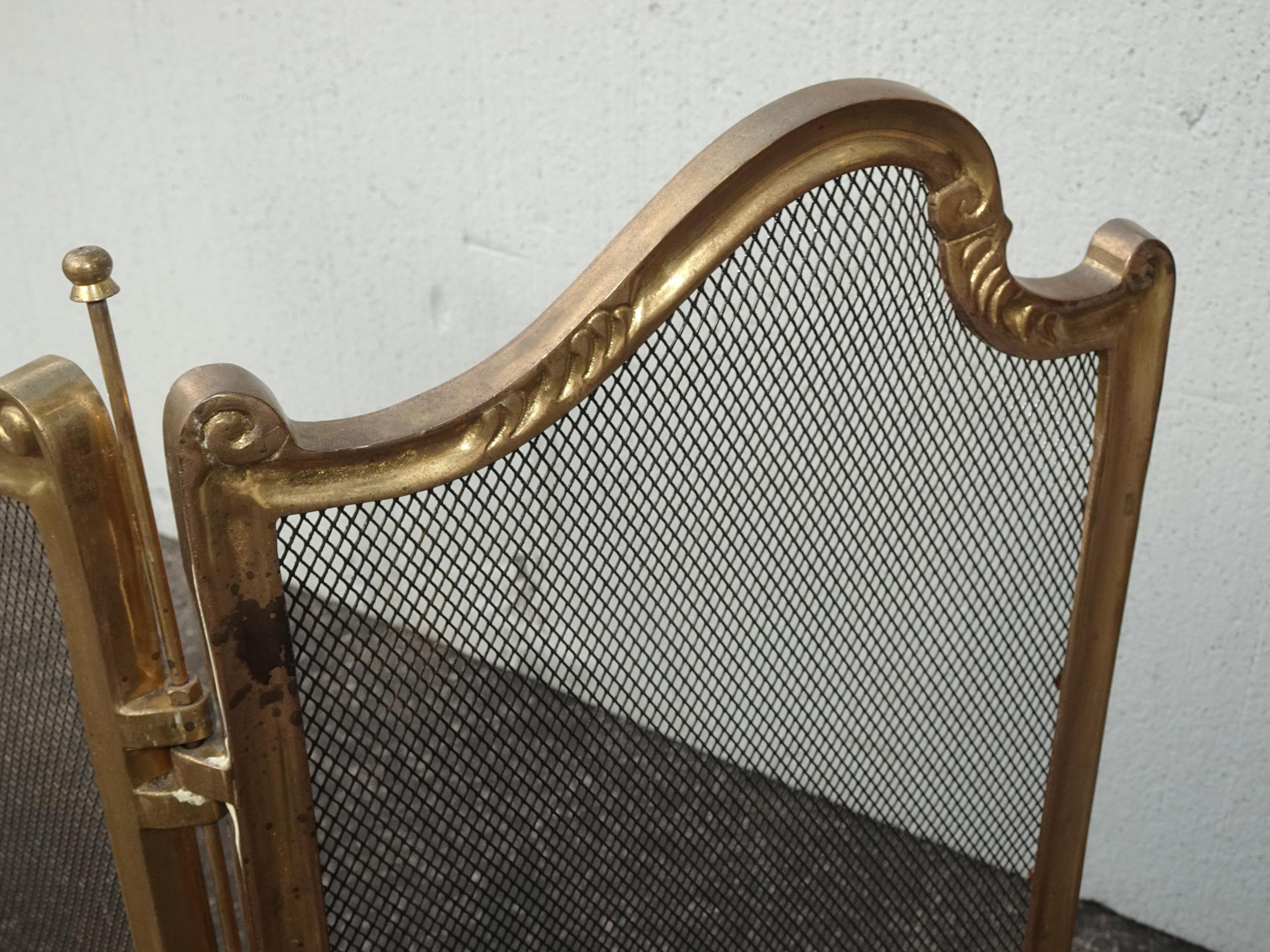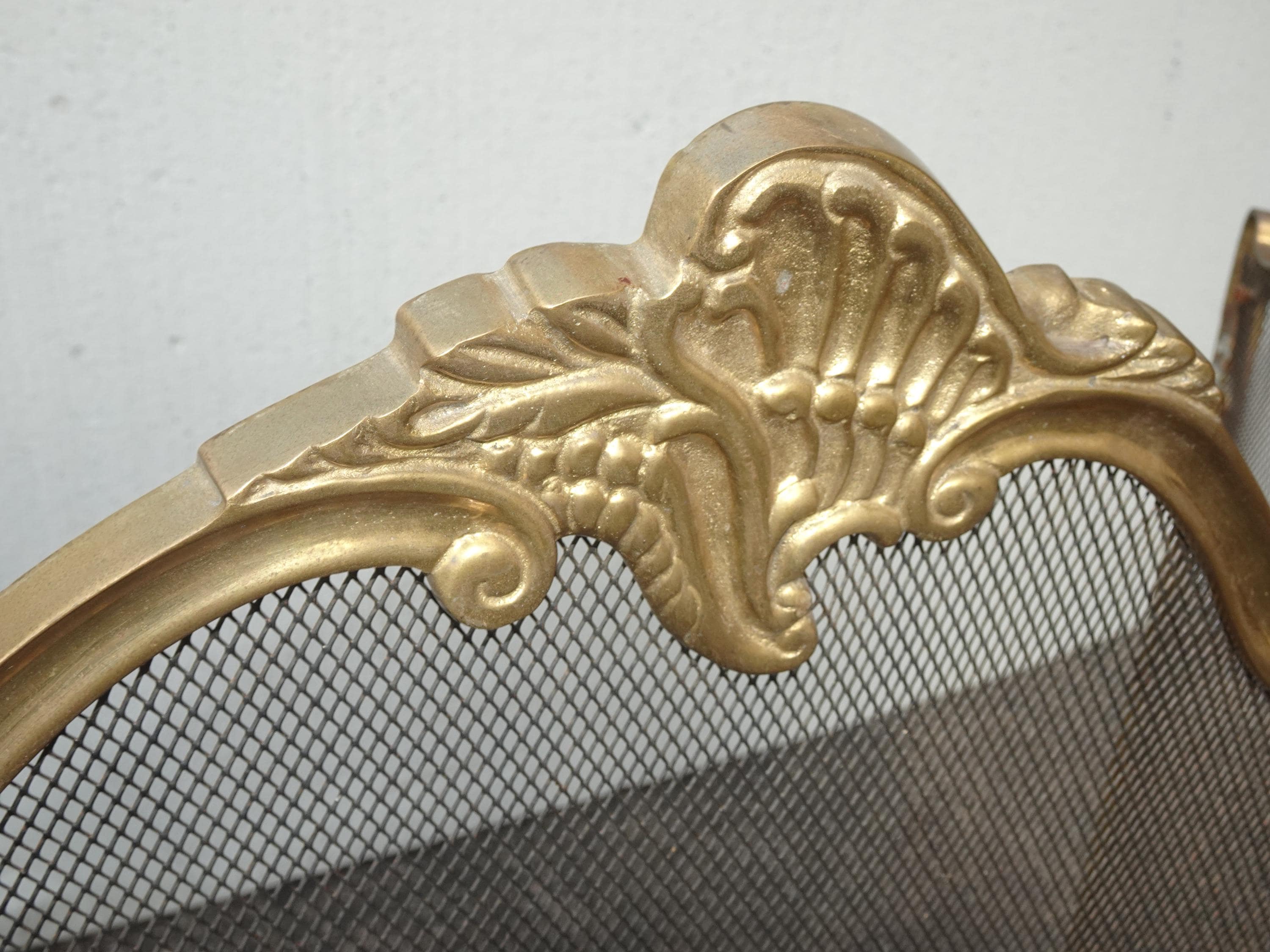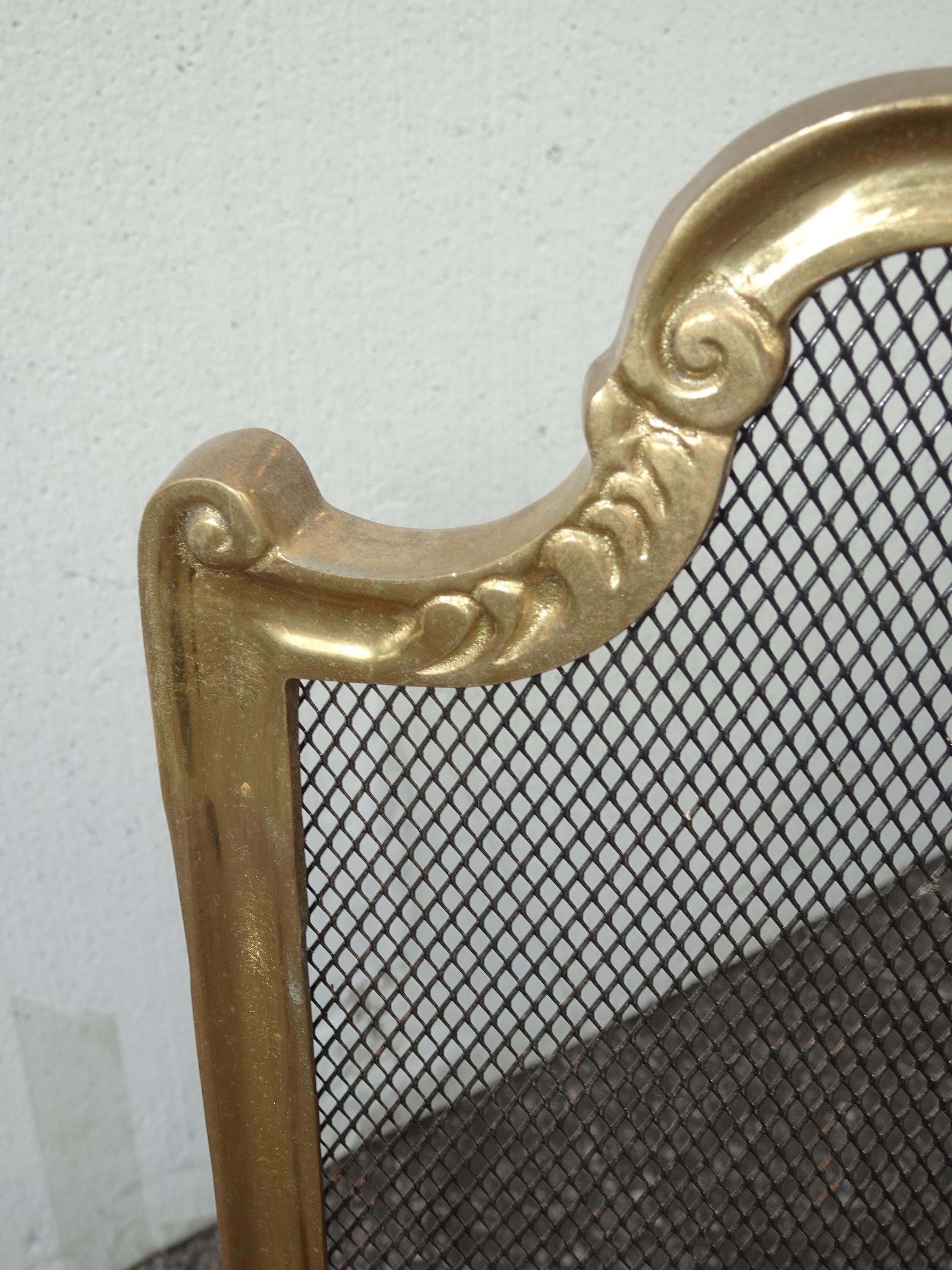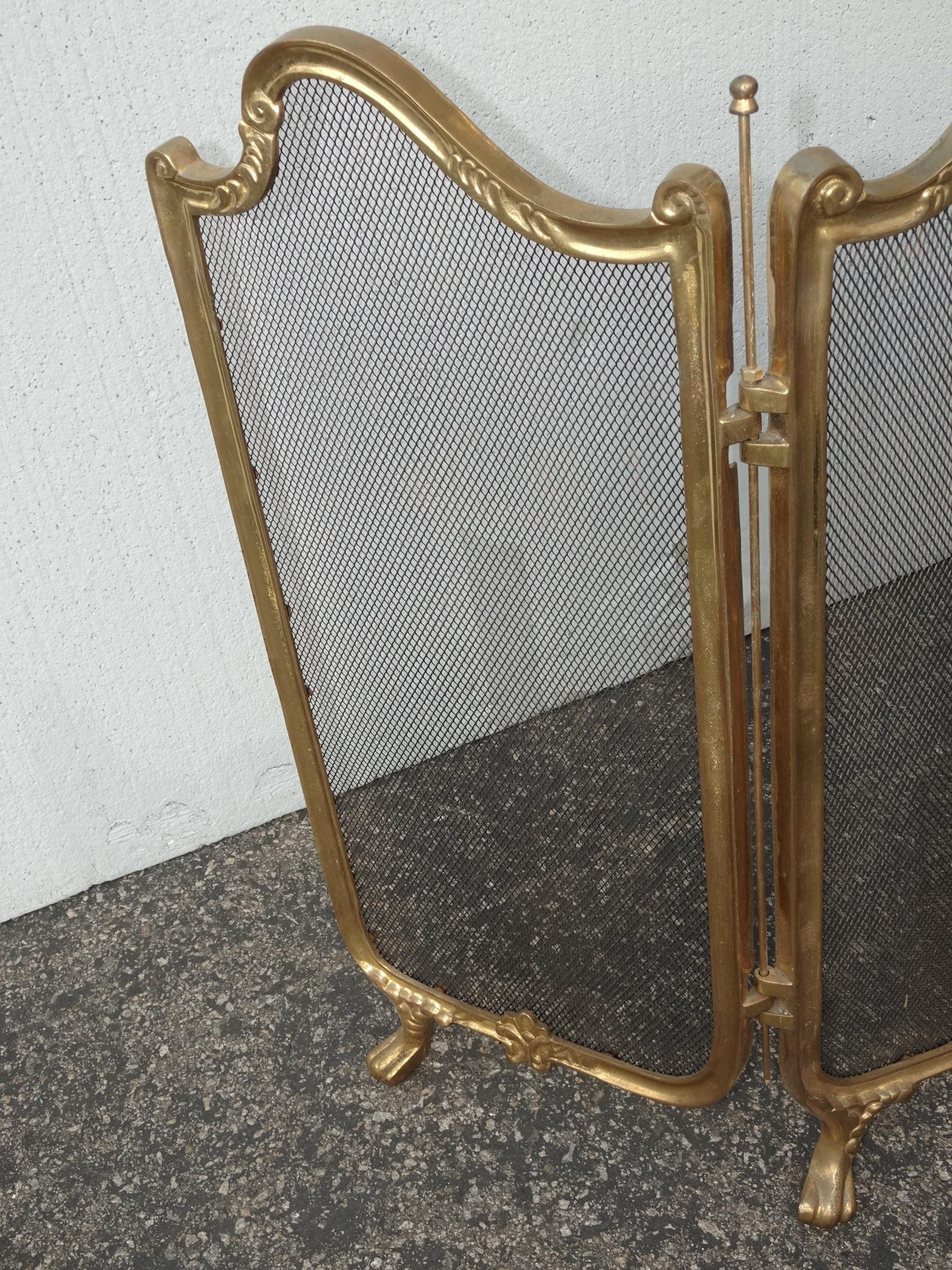 Vintage French Provincial Gold Brass Three Panel Fireplace Screen
