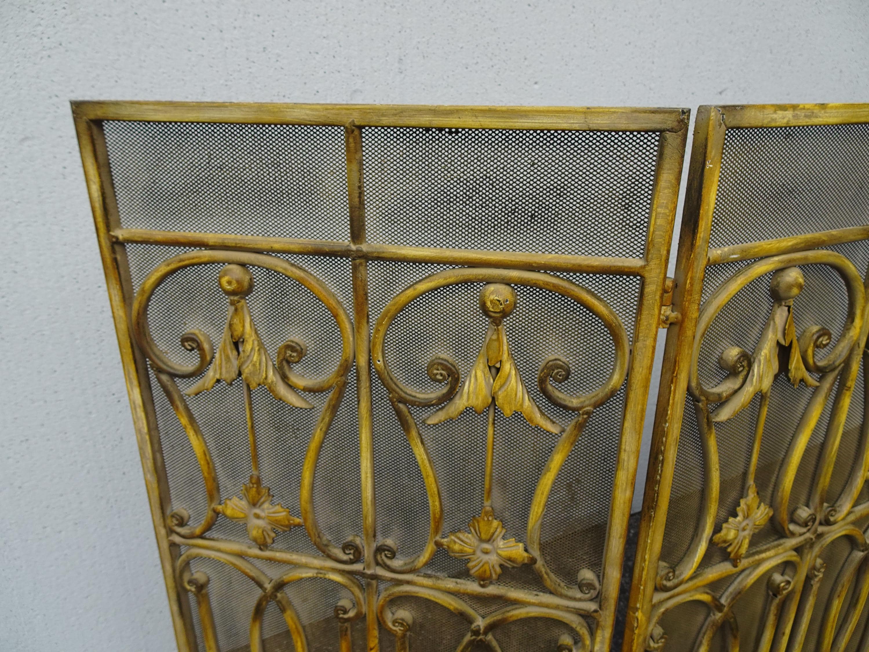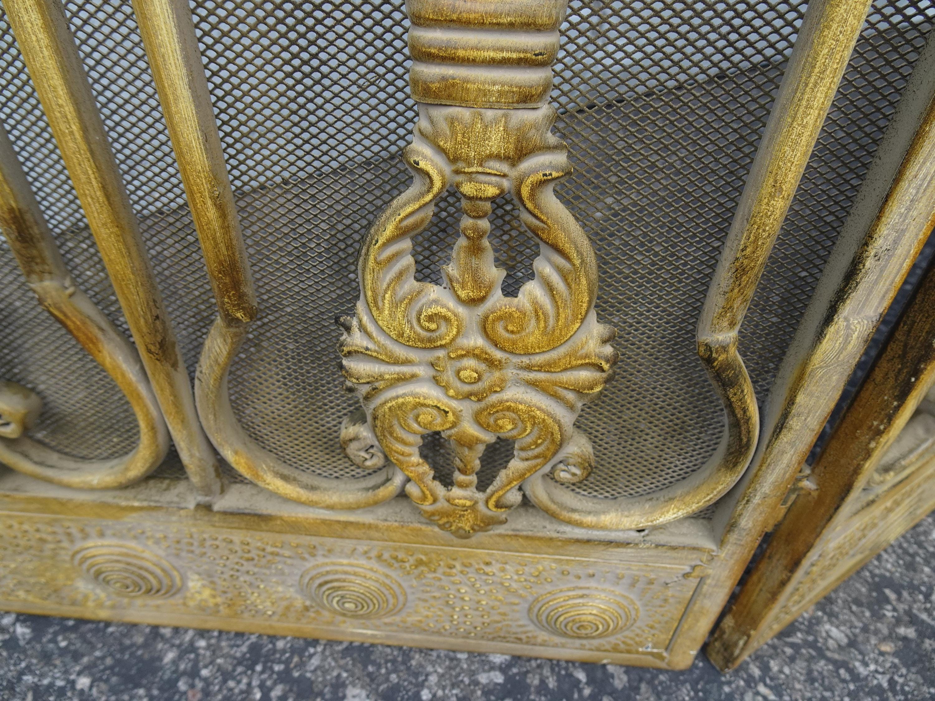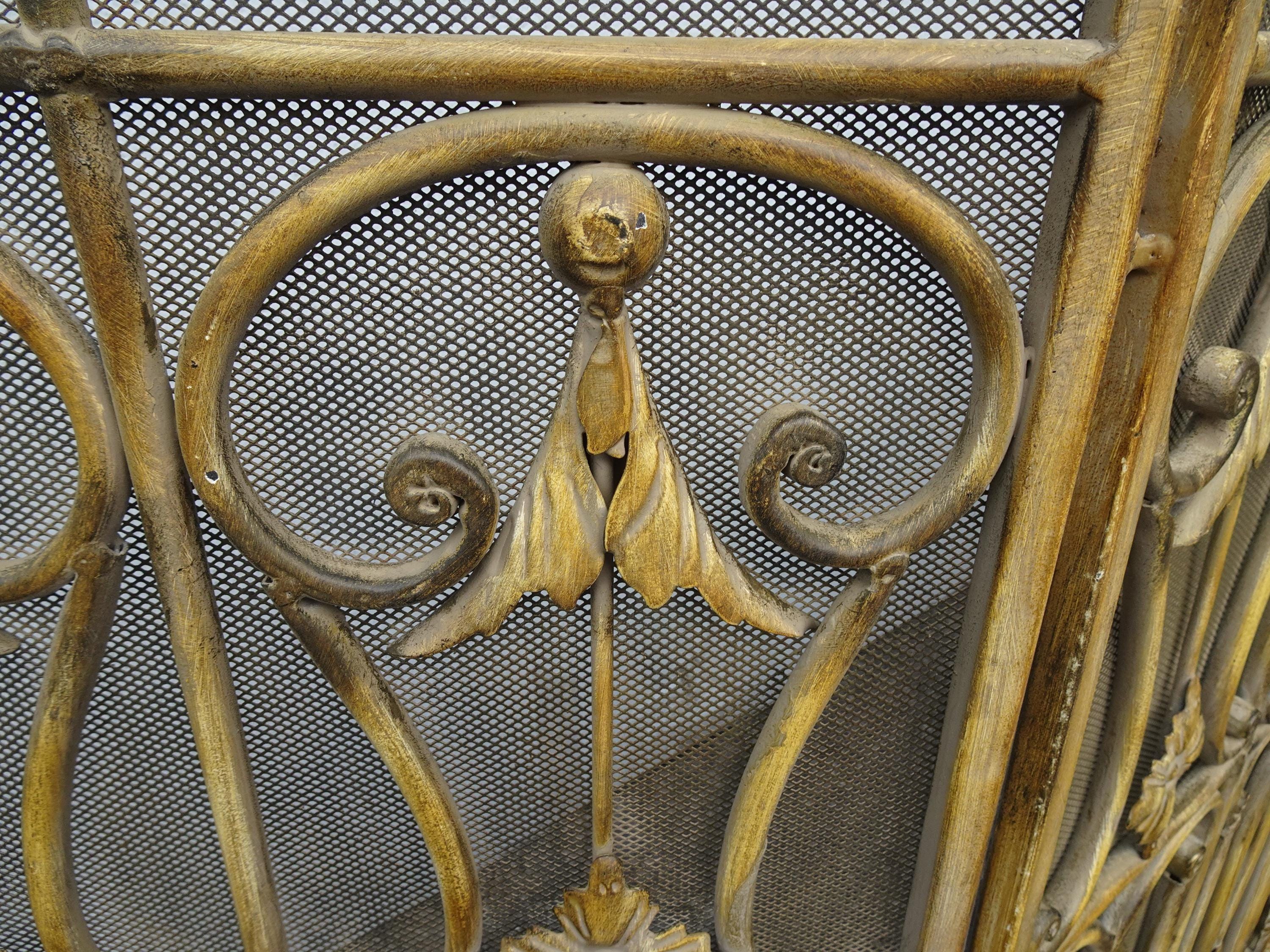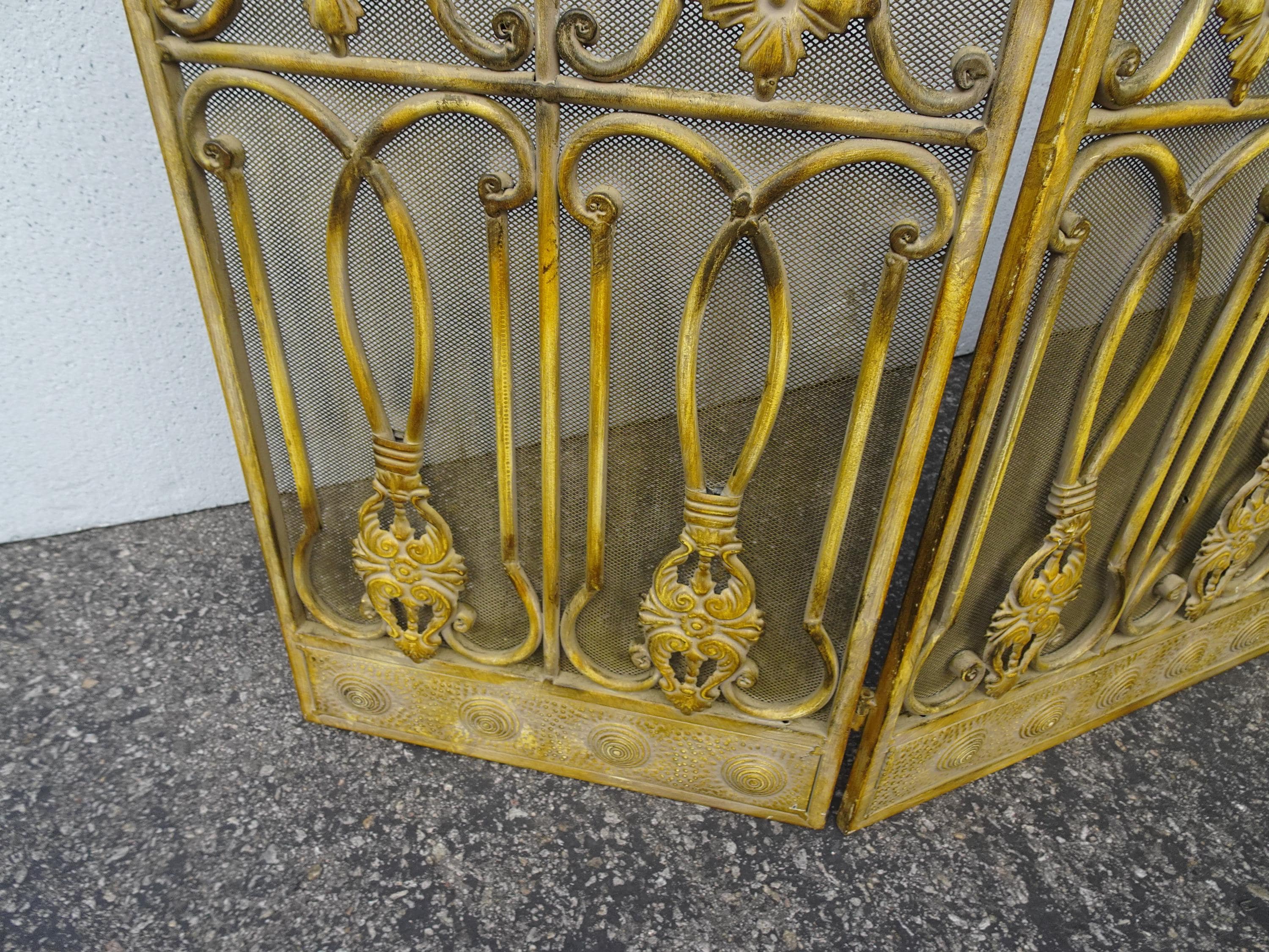Vintage French Country Yellow Ornate Three Panel Fireplace Screen