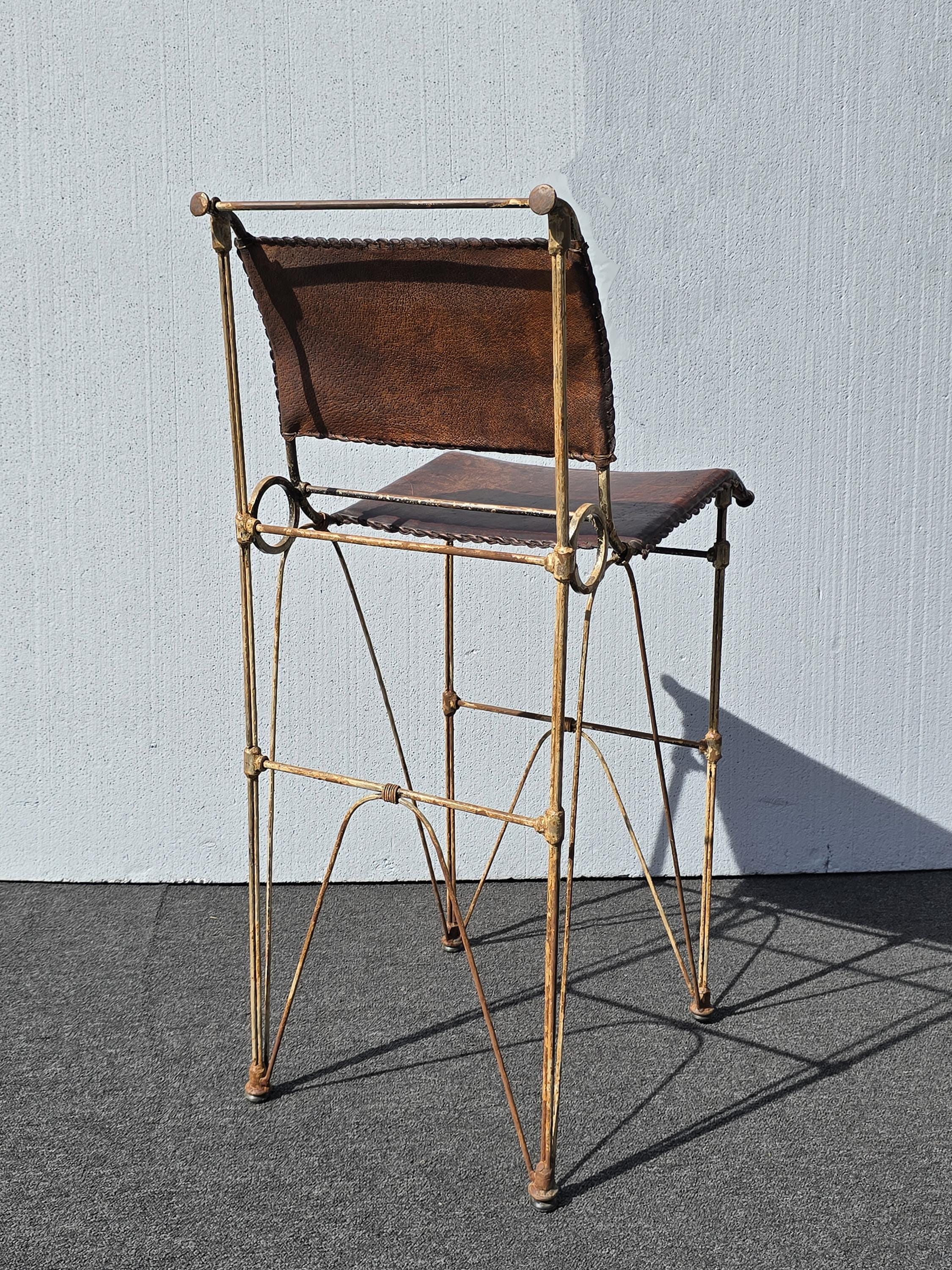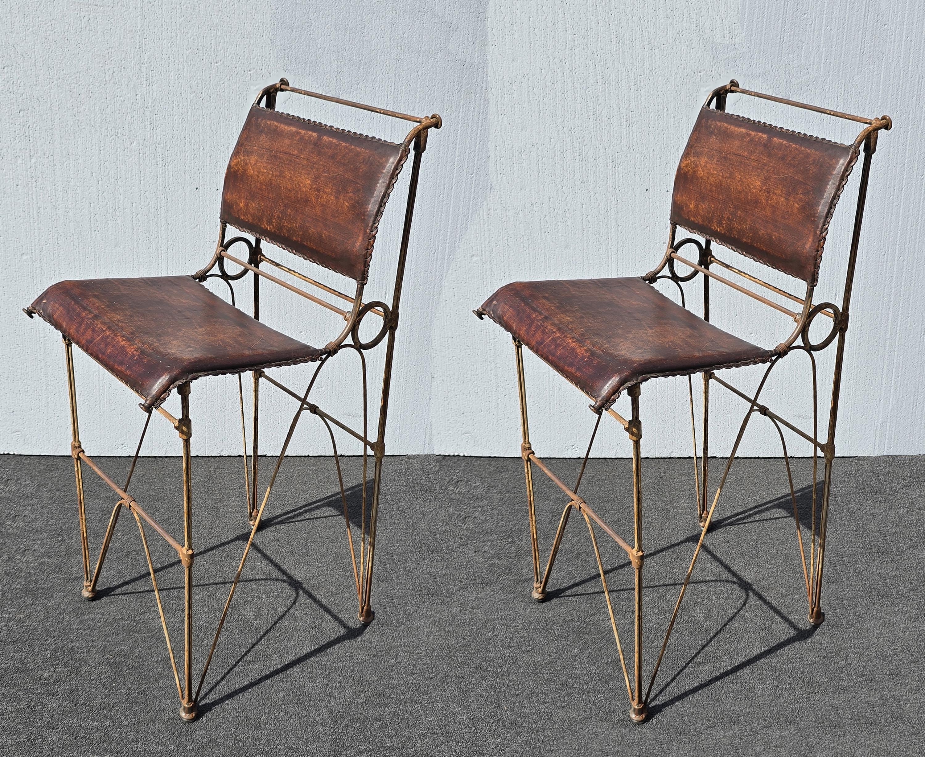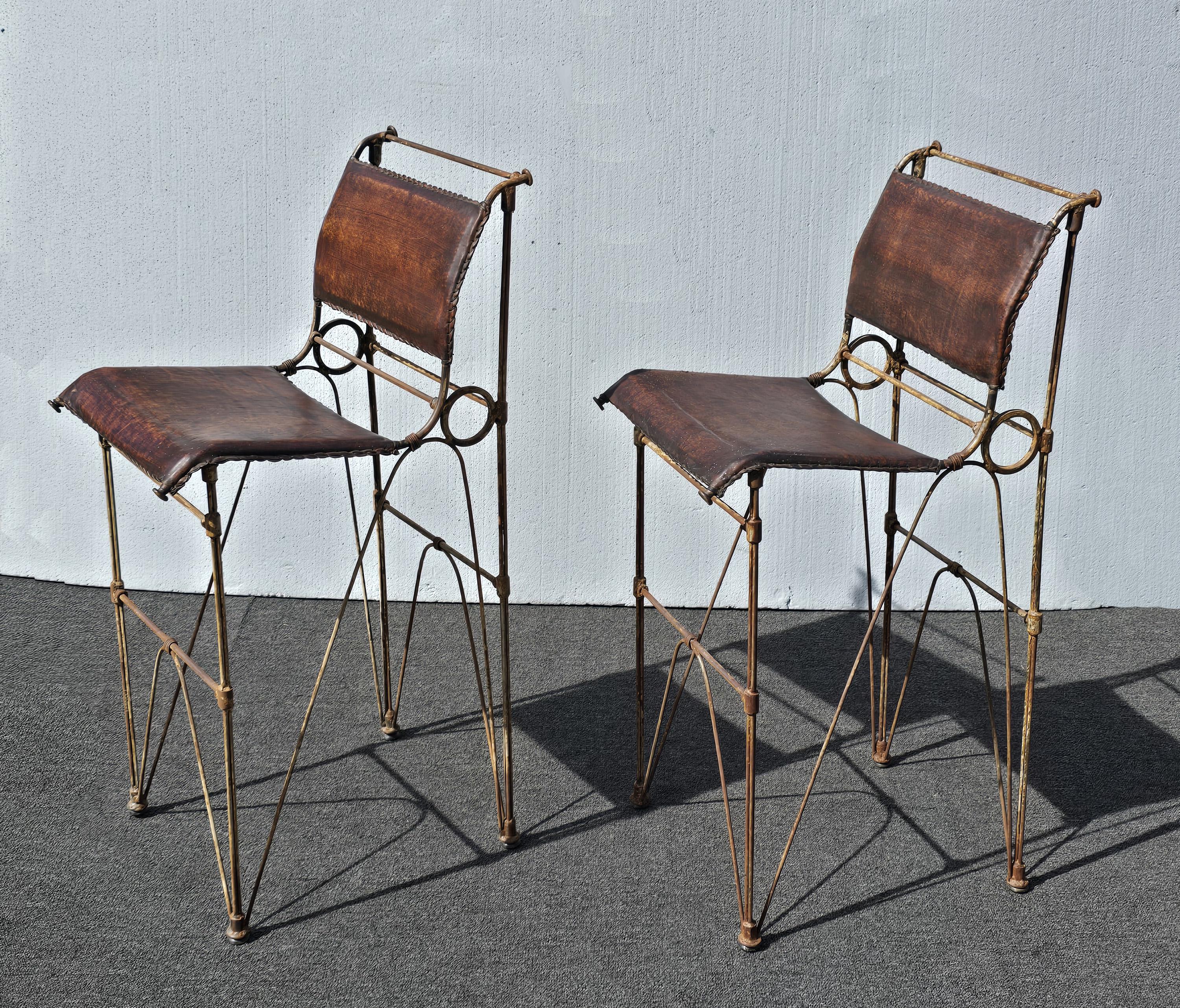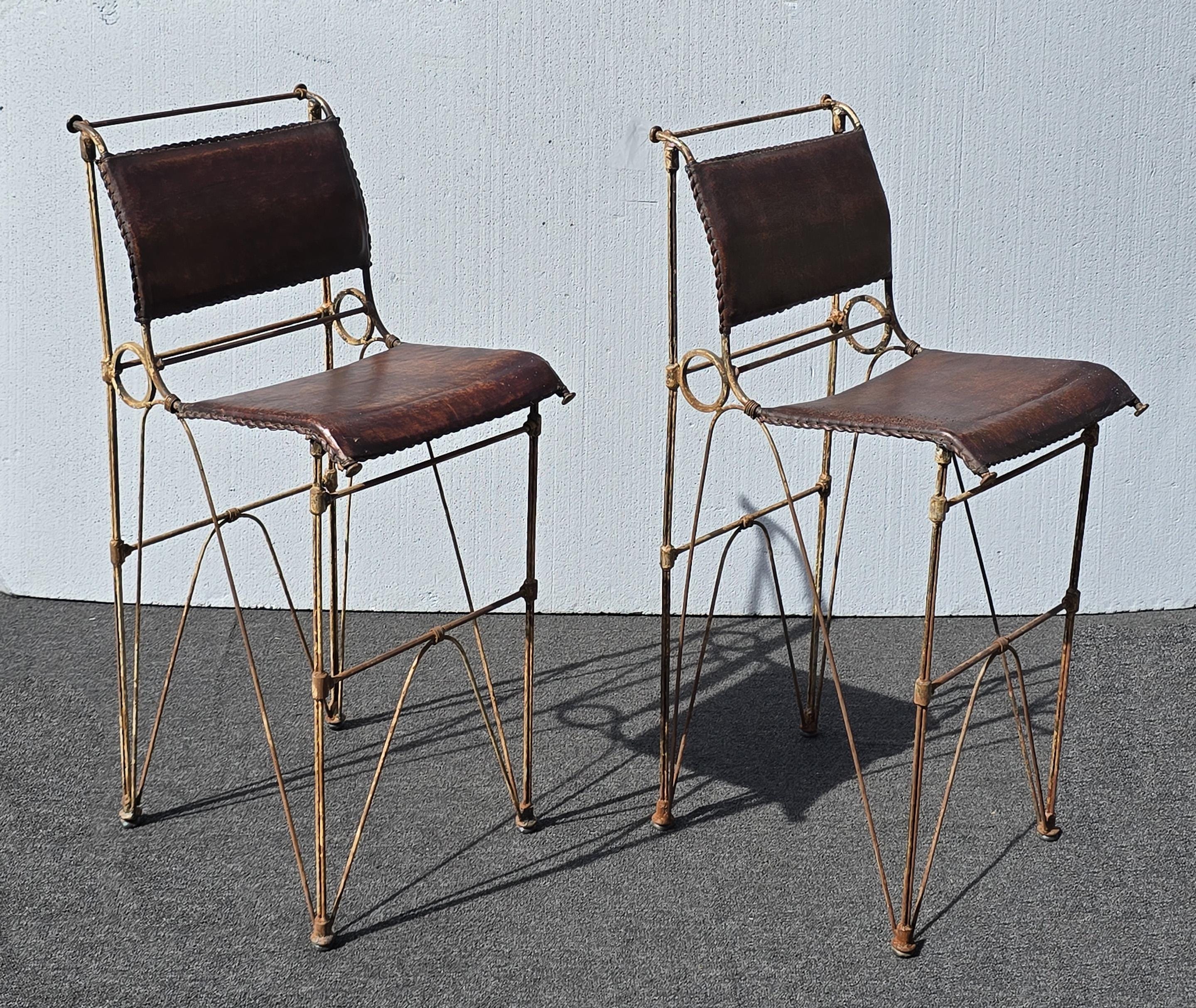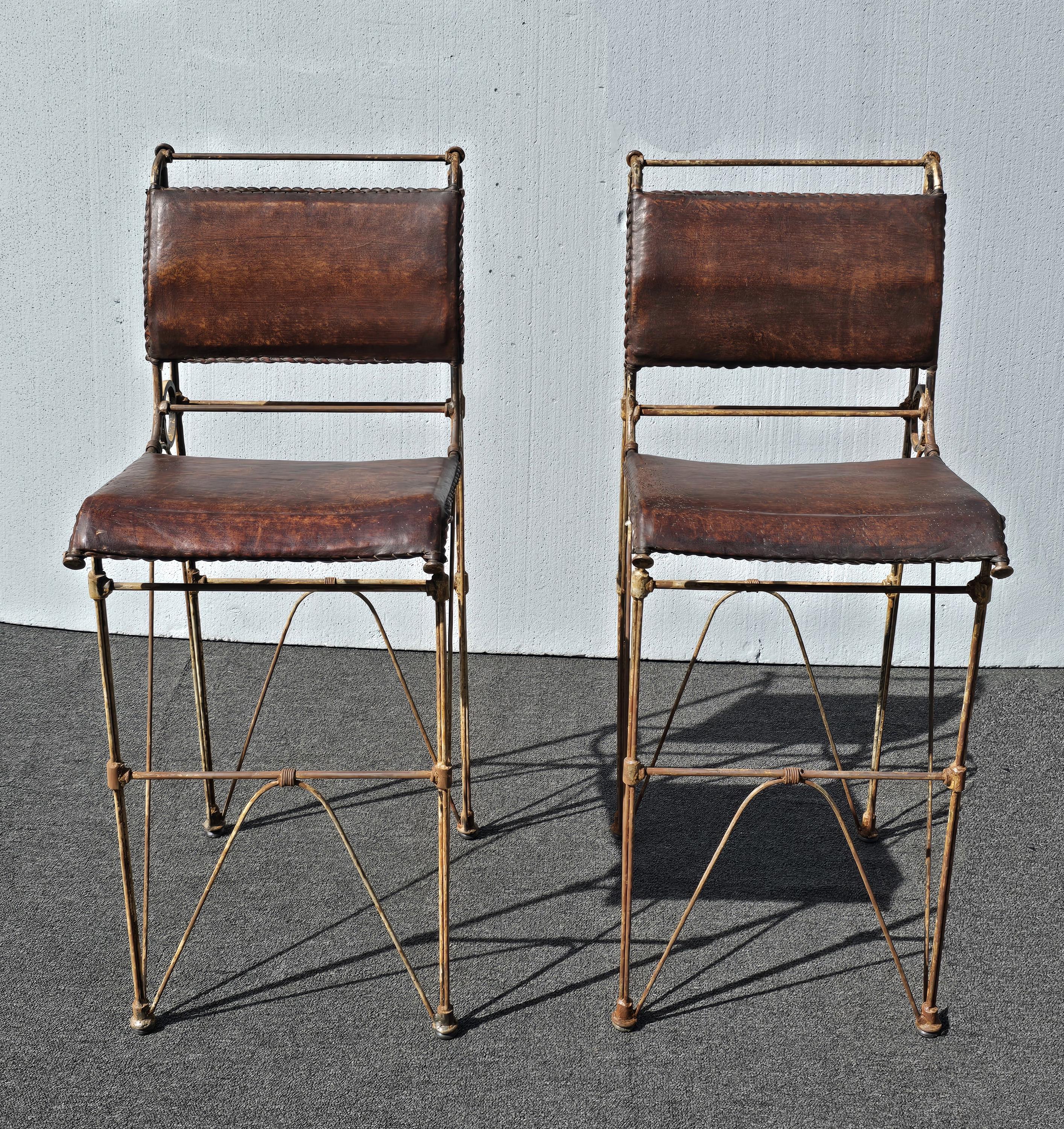 Pair of Vintage IIana Goor Brown Leather Barstools Bar Stools