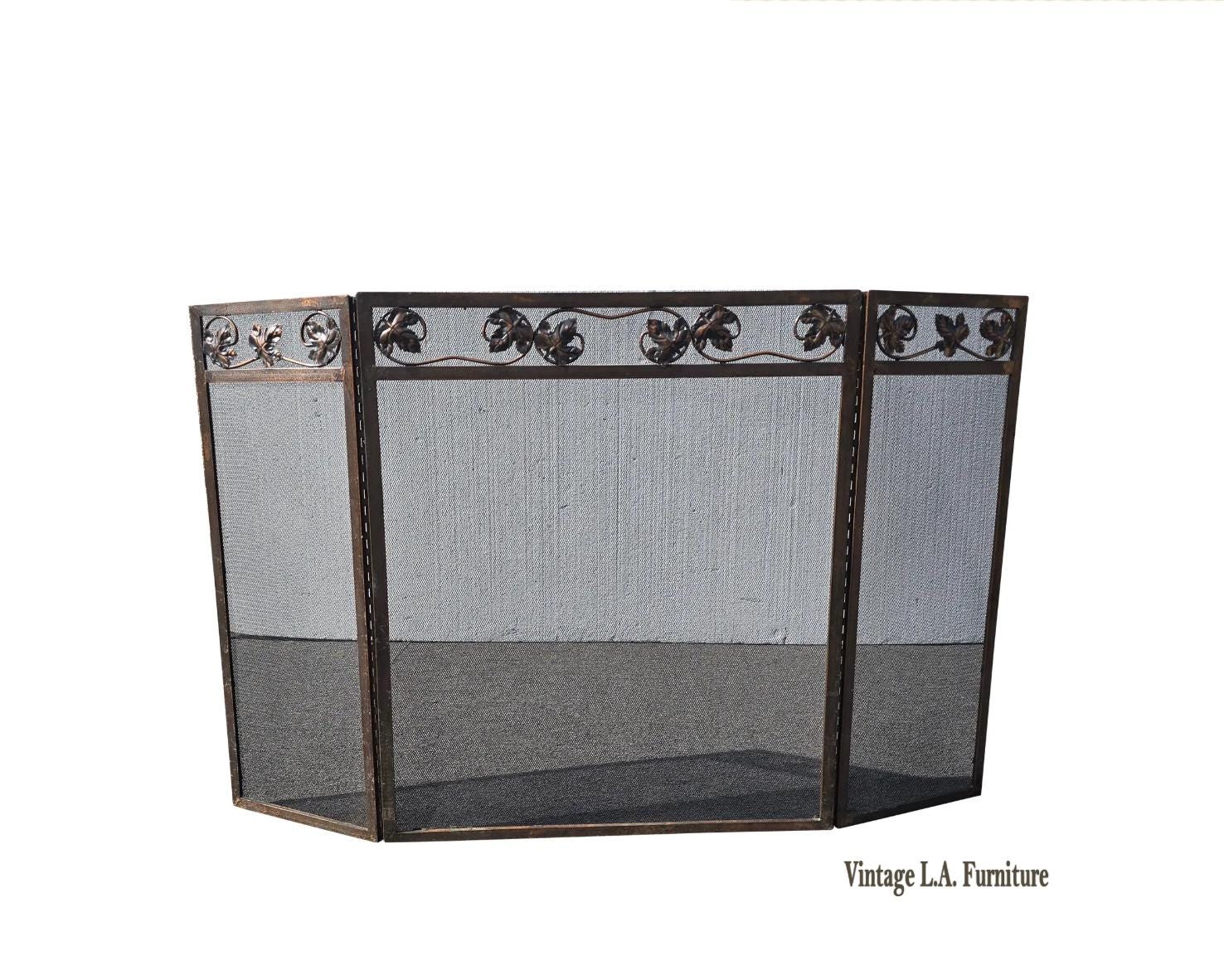Vintage French Country Brown Fireplace Screen w Mesh