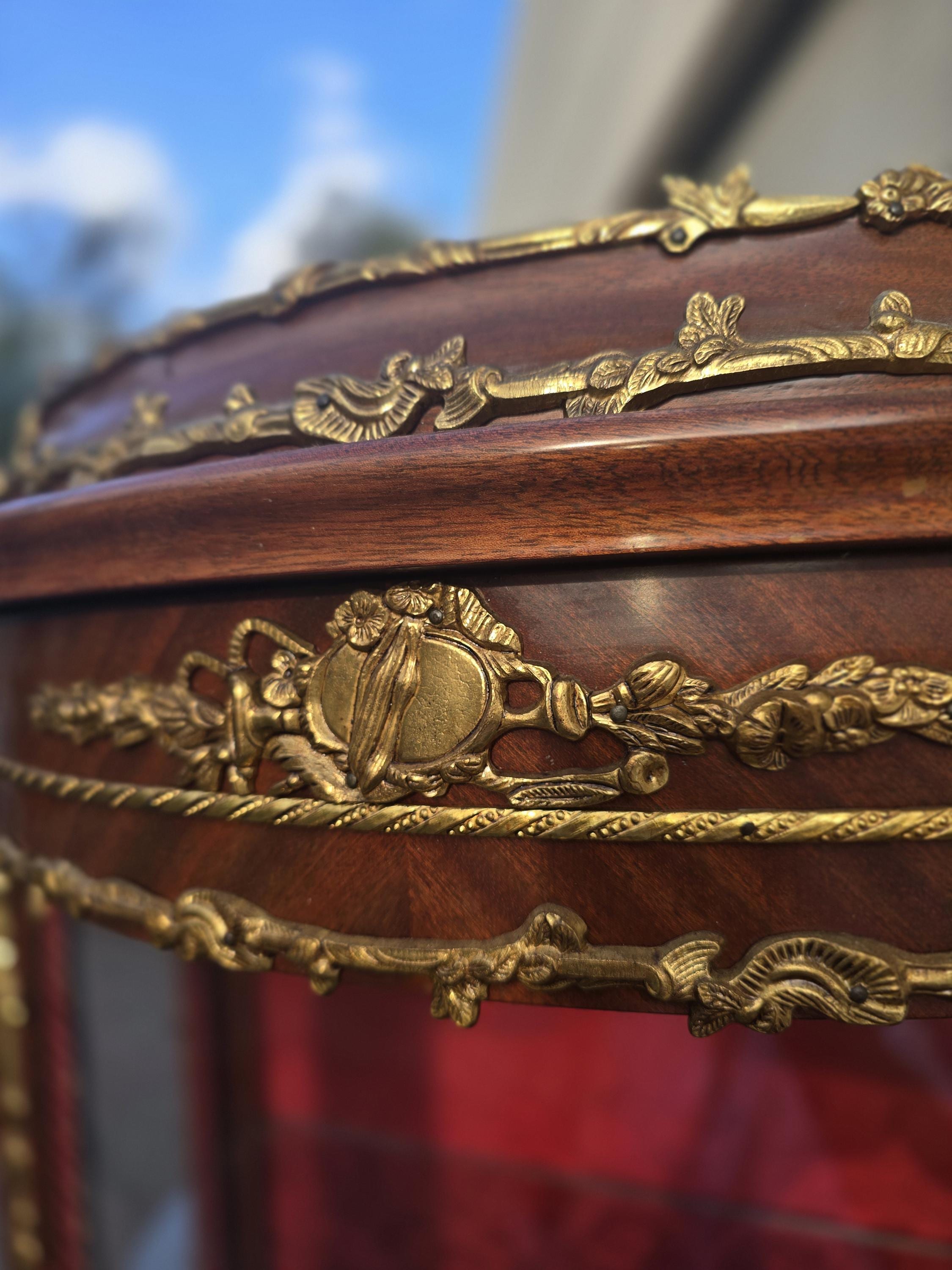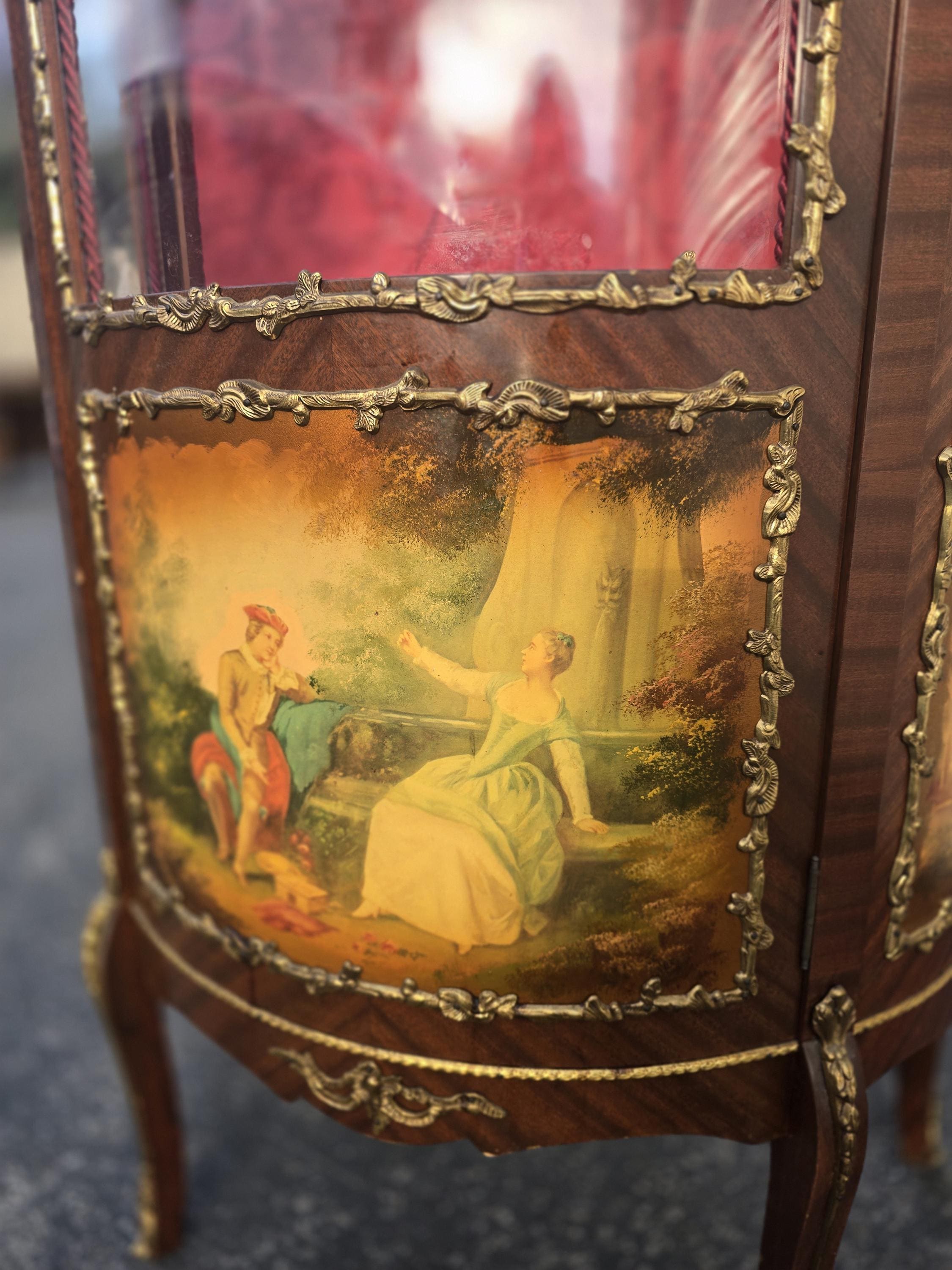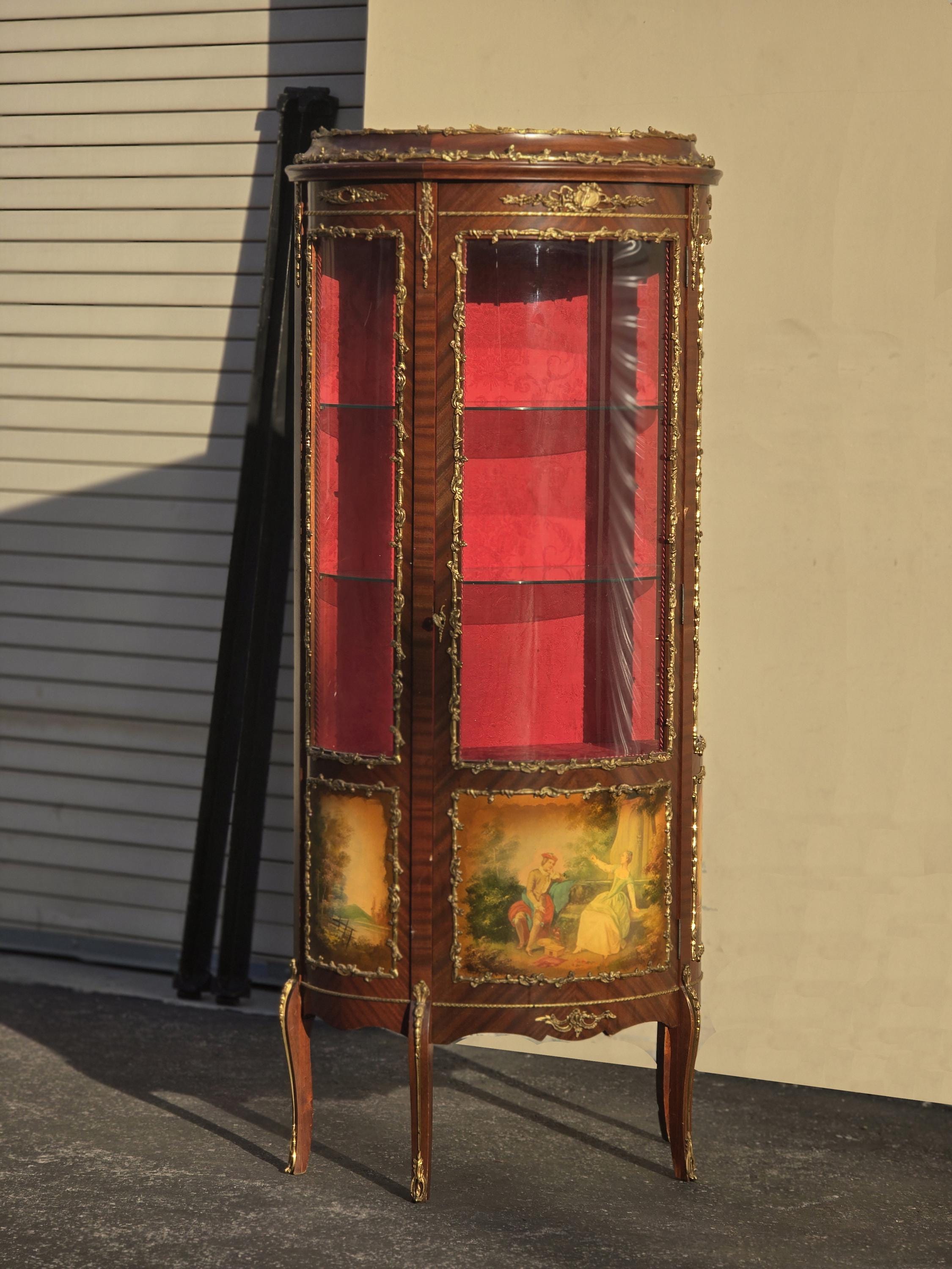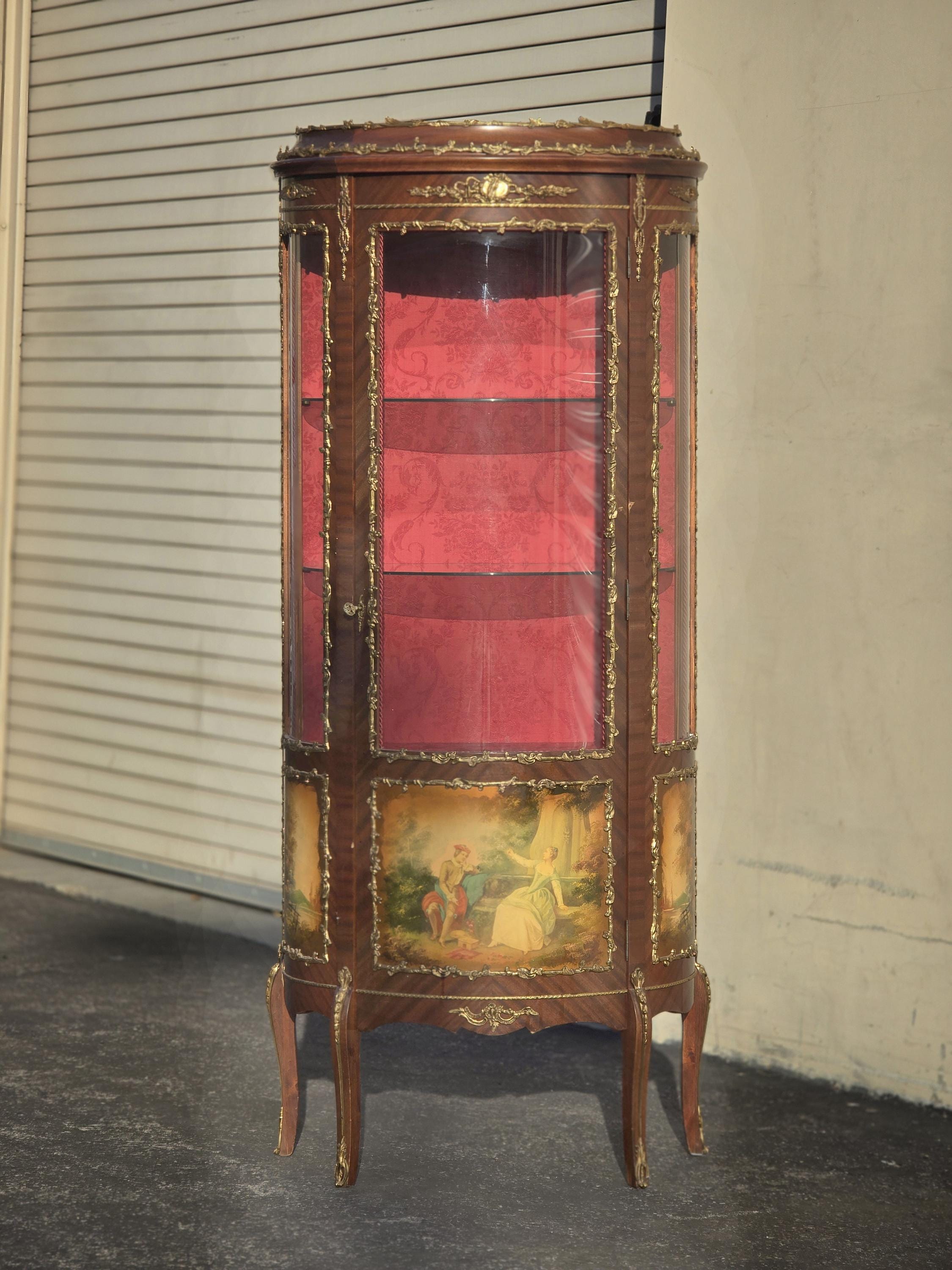 Vintage French Louis XVI Vitrine Curio Display Cabinet w Brass Ormolu