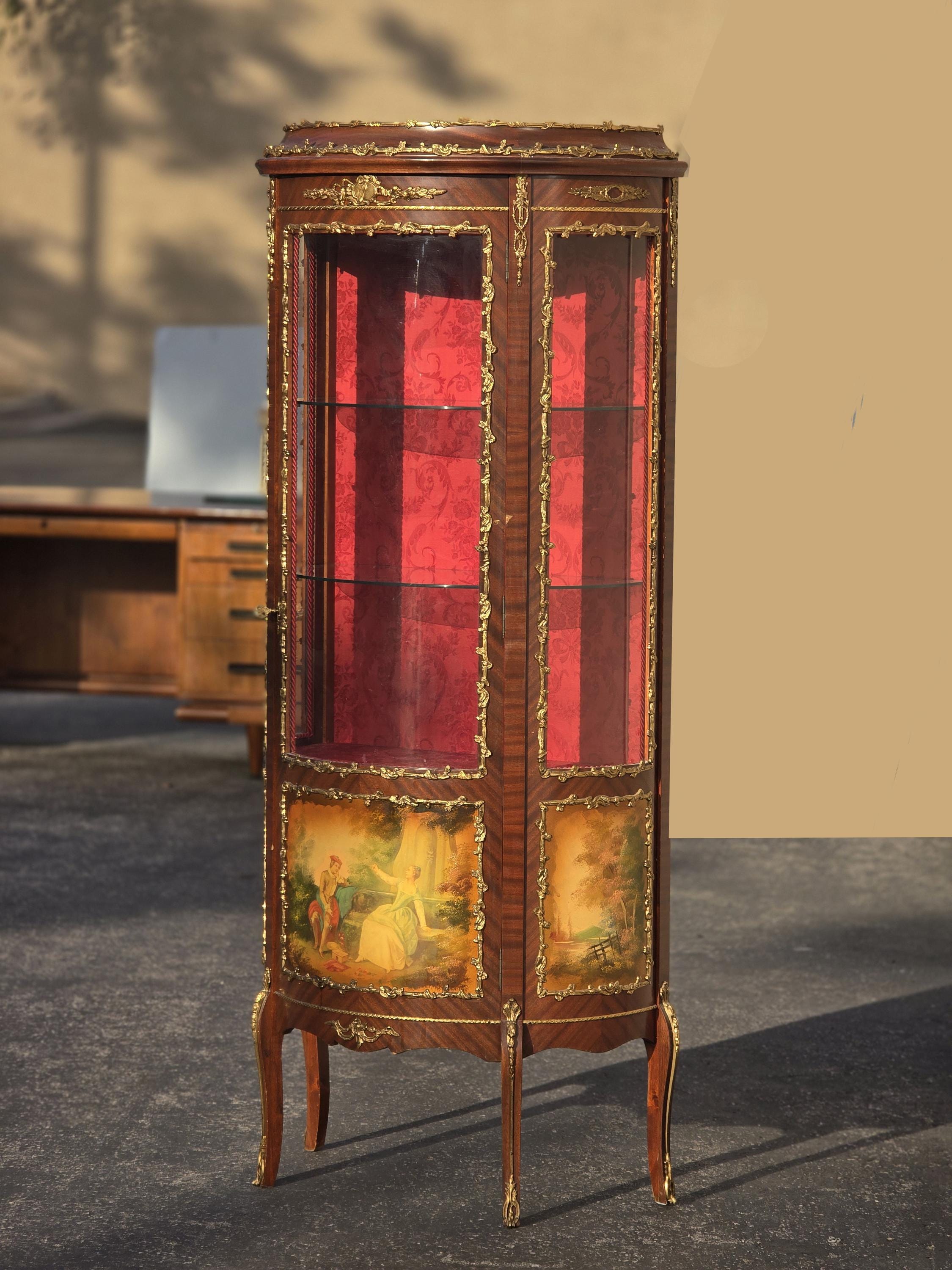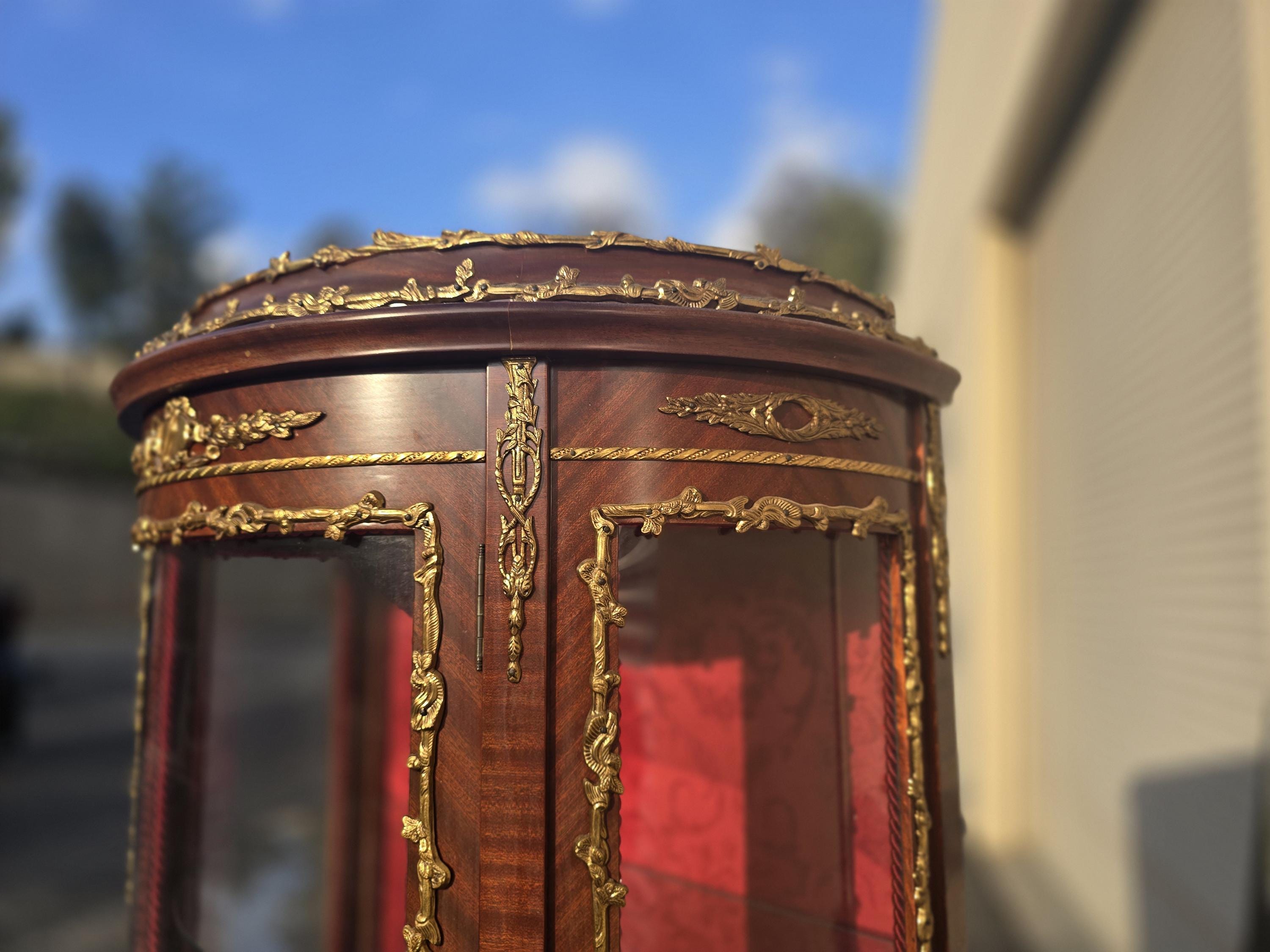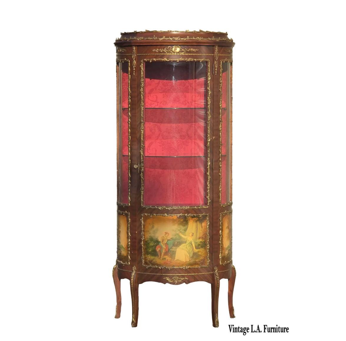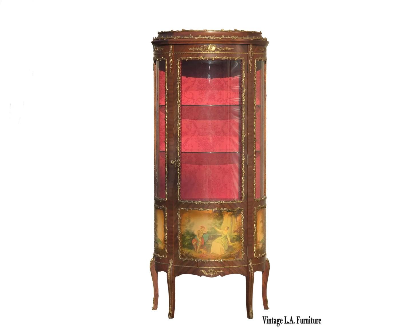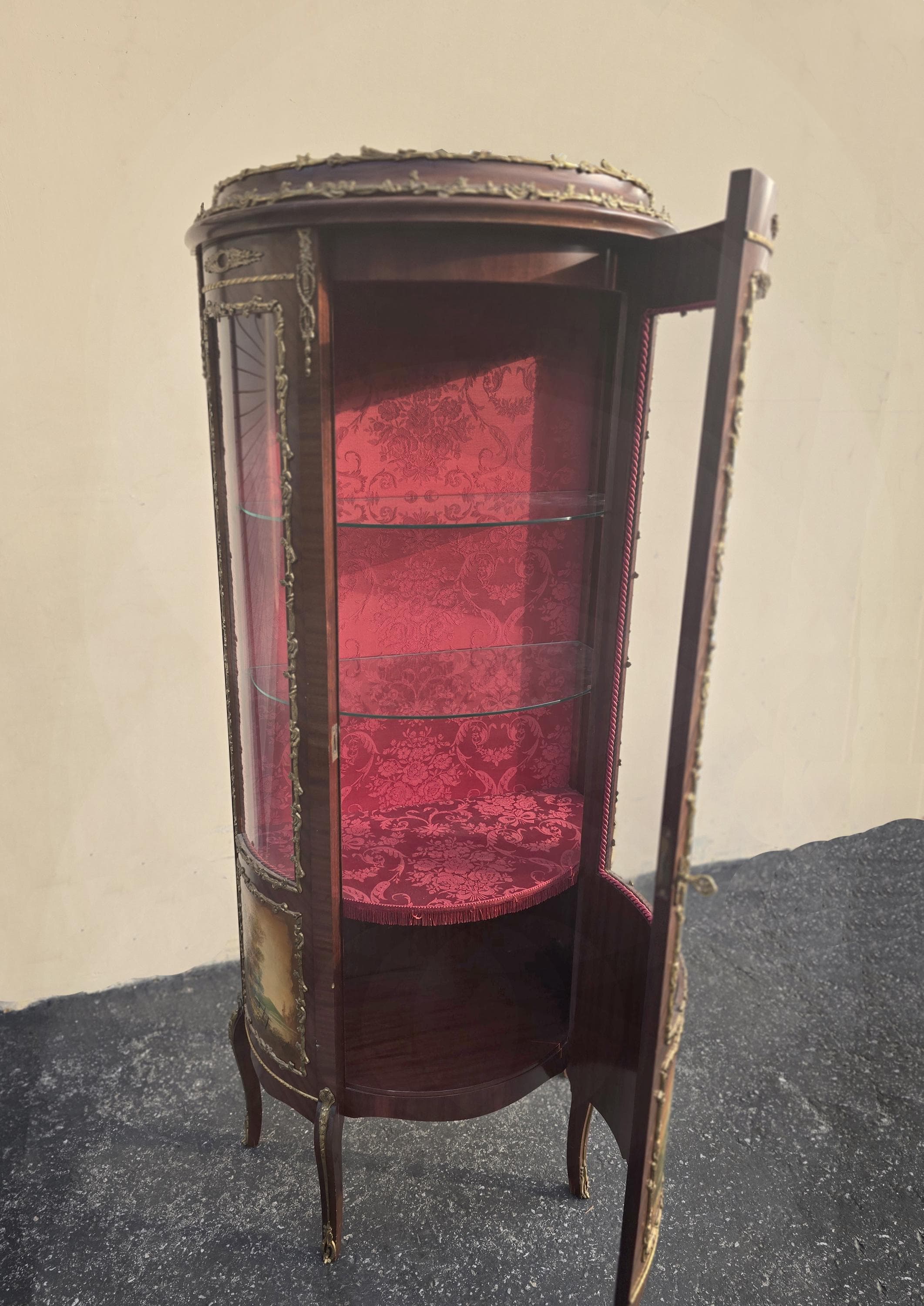 Vintage French Louis XVI Vitrine Curio Display Cabinet w Brass Ormolu