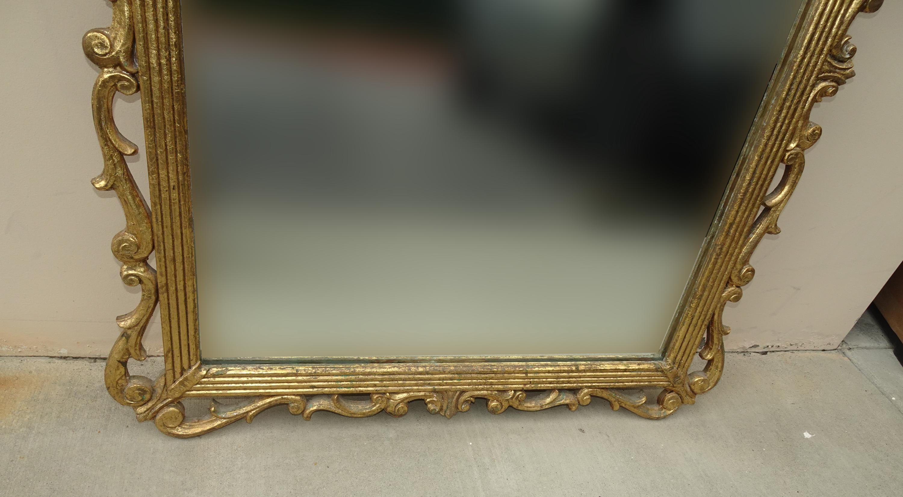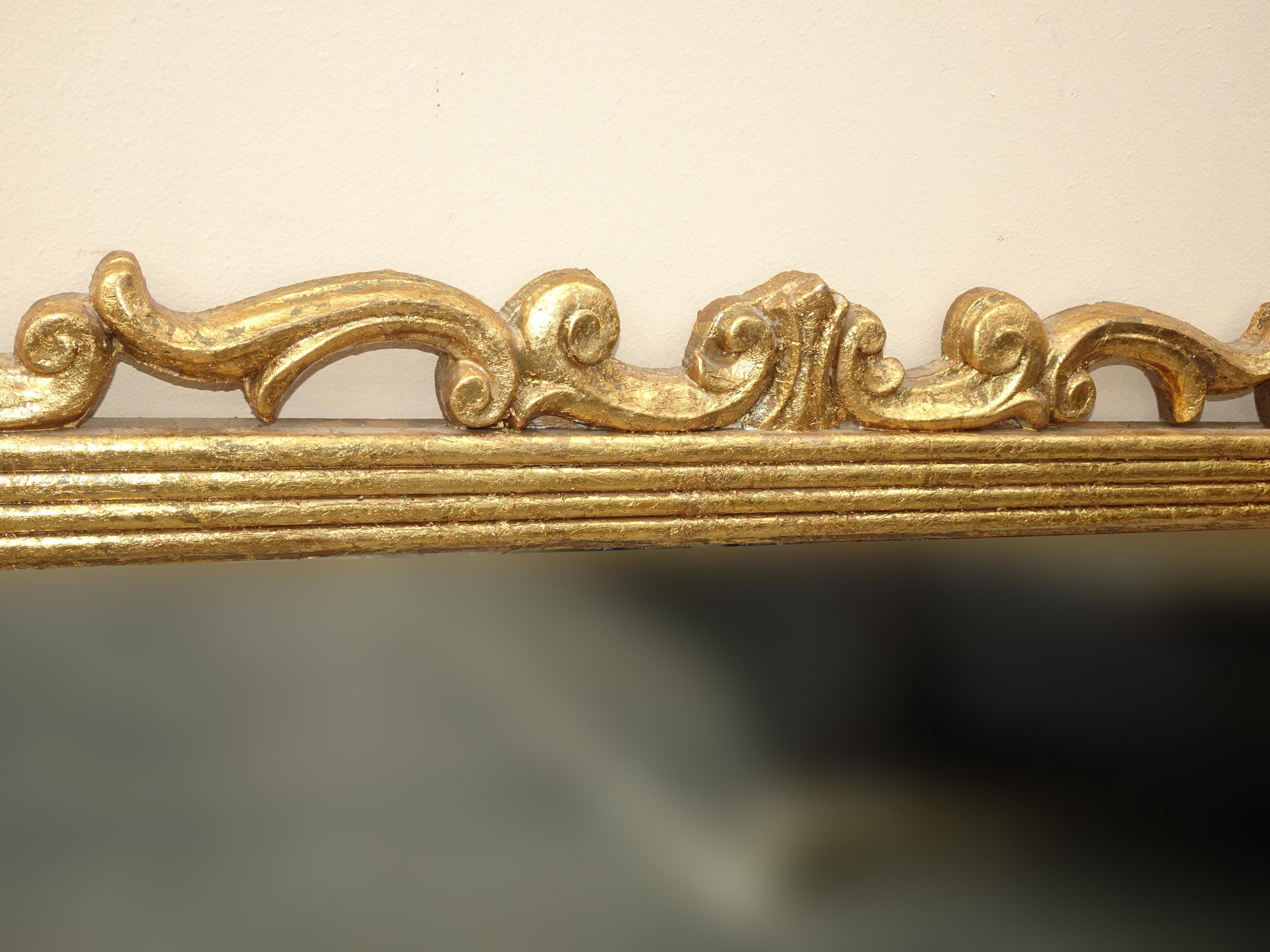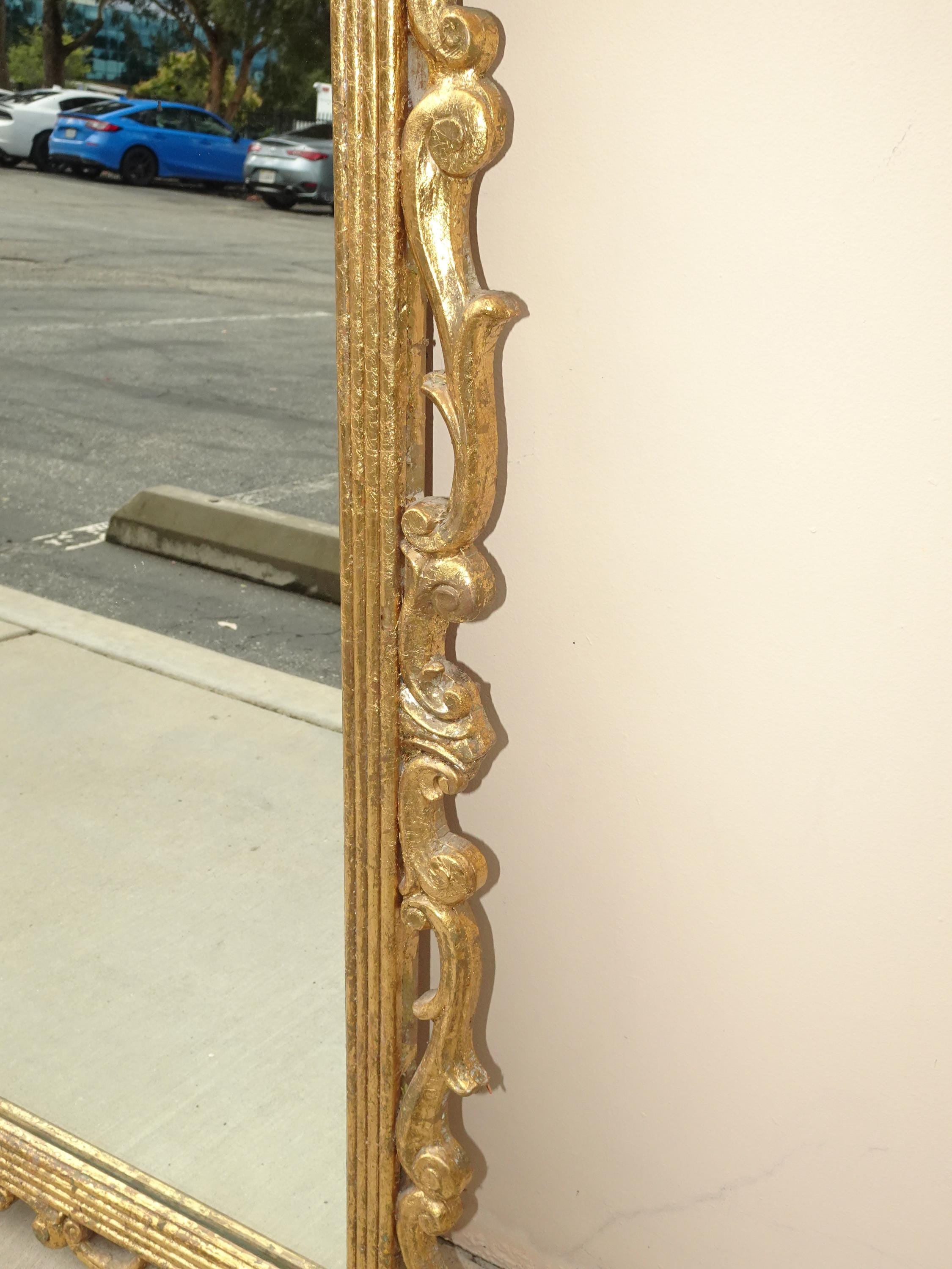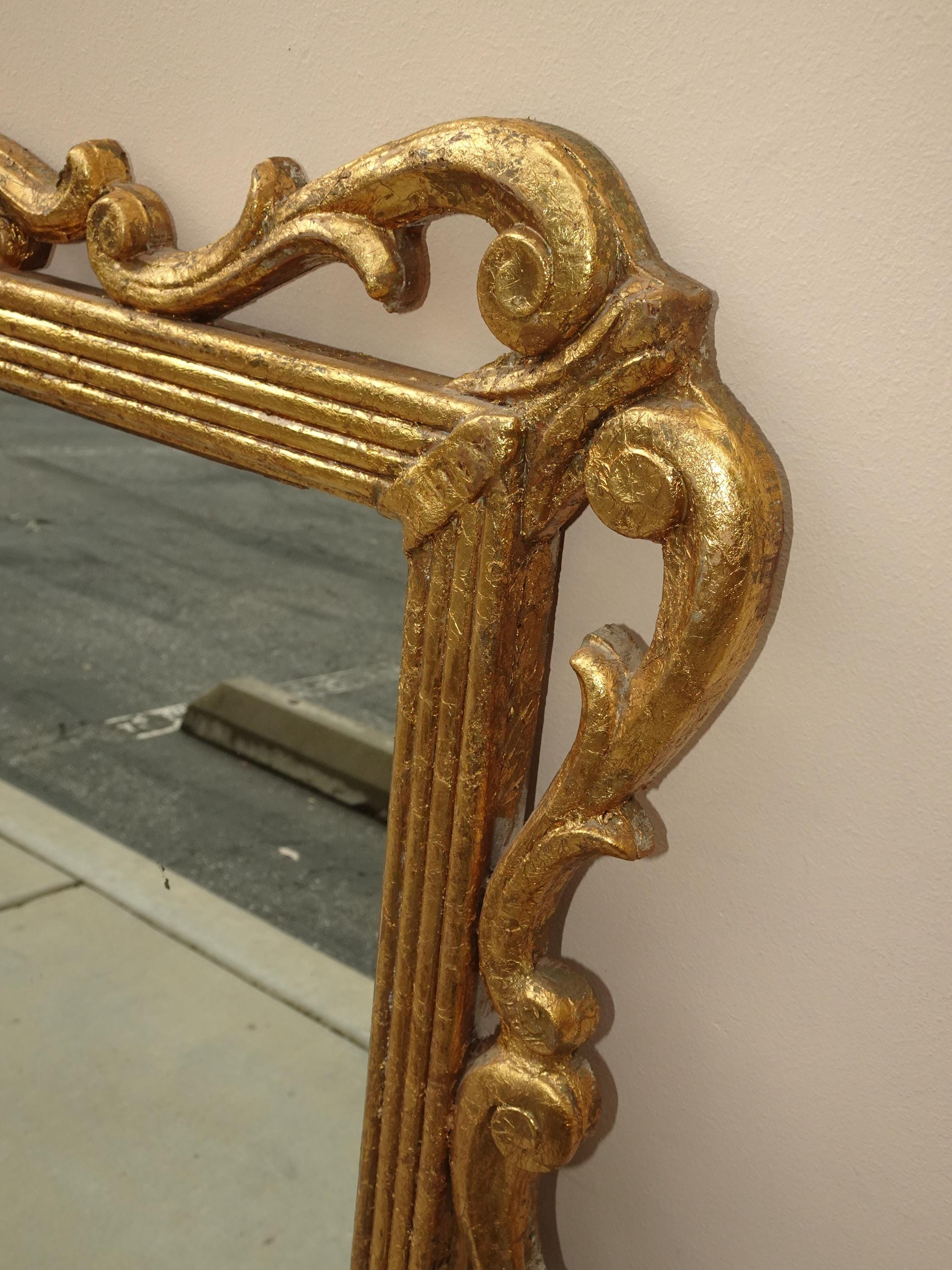 41" High Antique French Provincial Gold Gilt Wall Mantle Mirror w Scrolls