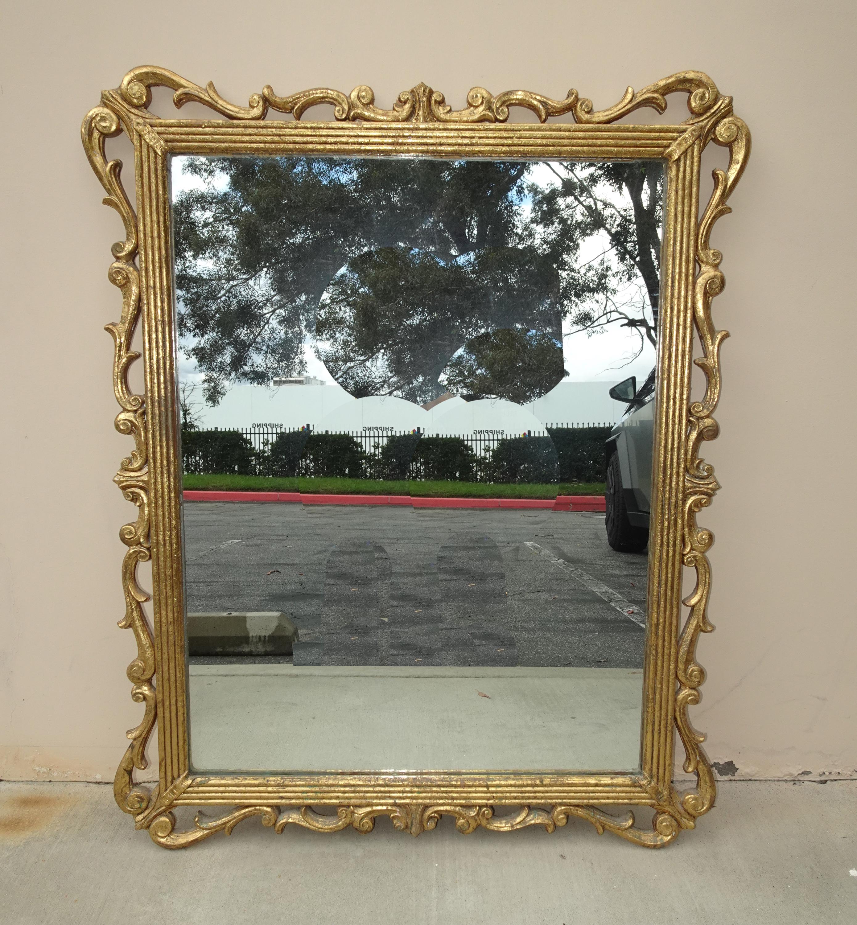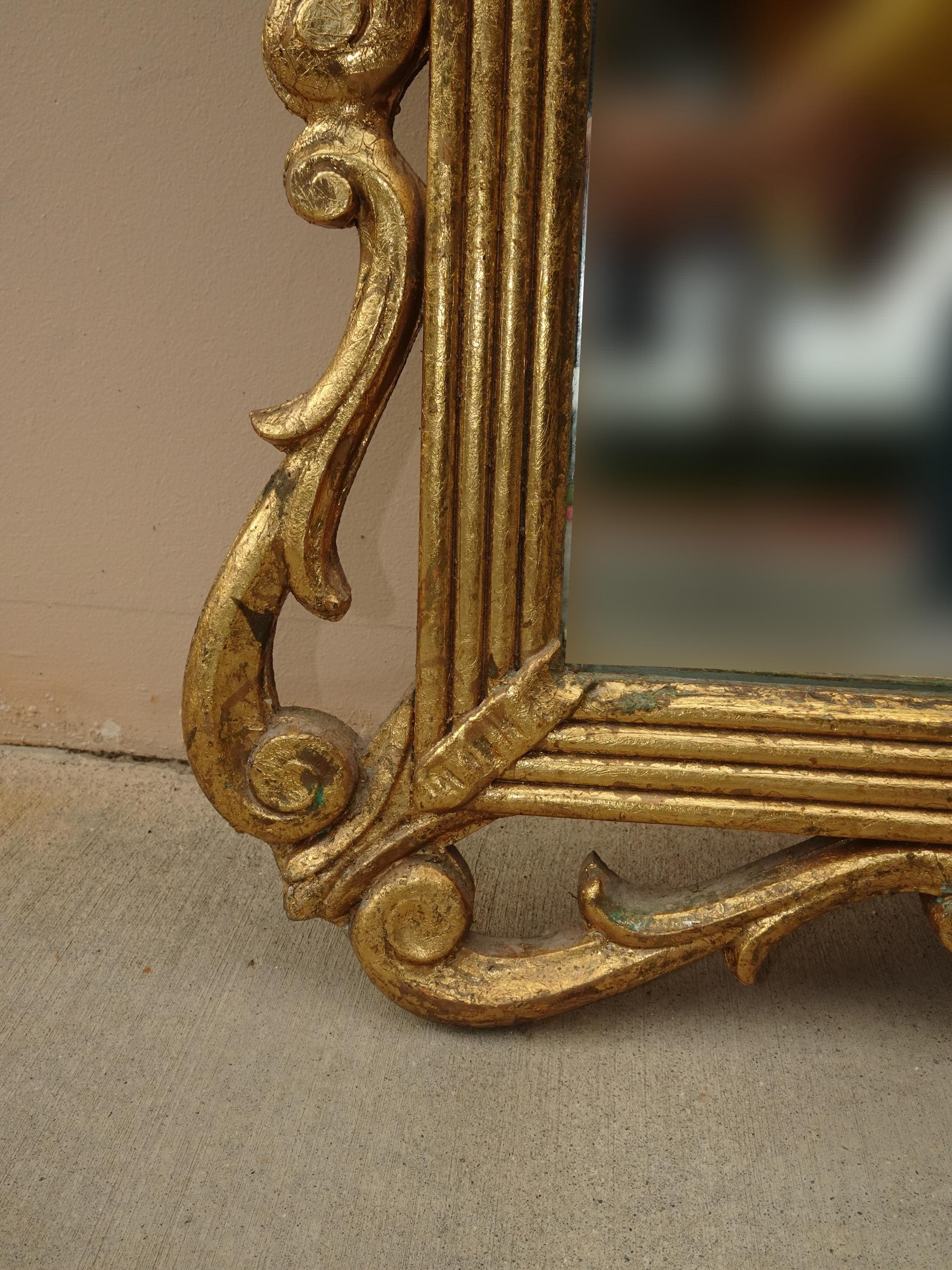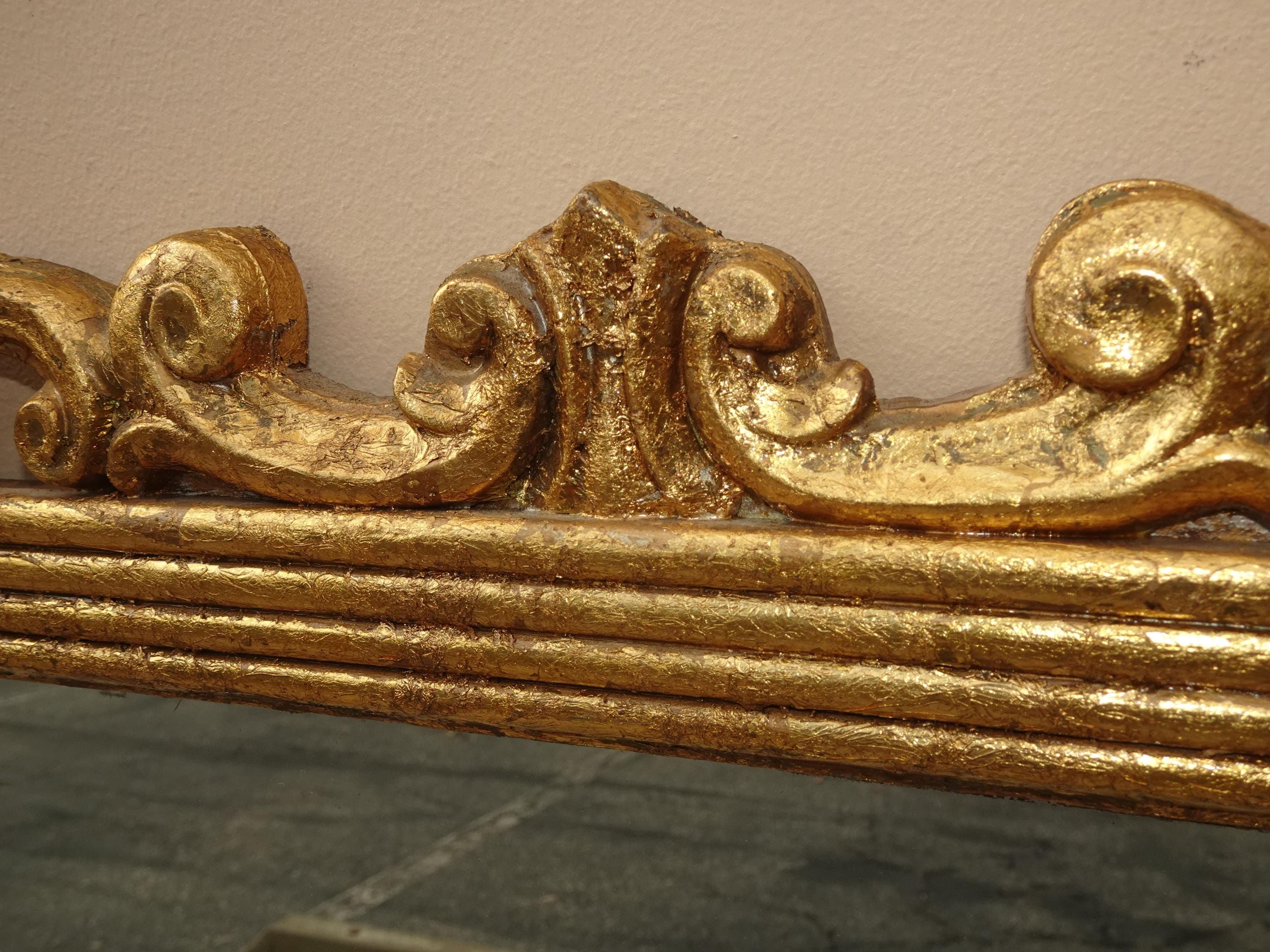 41" High Antique French Provincial Gold Gilt Wall Mantle Mirror w Scrolls