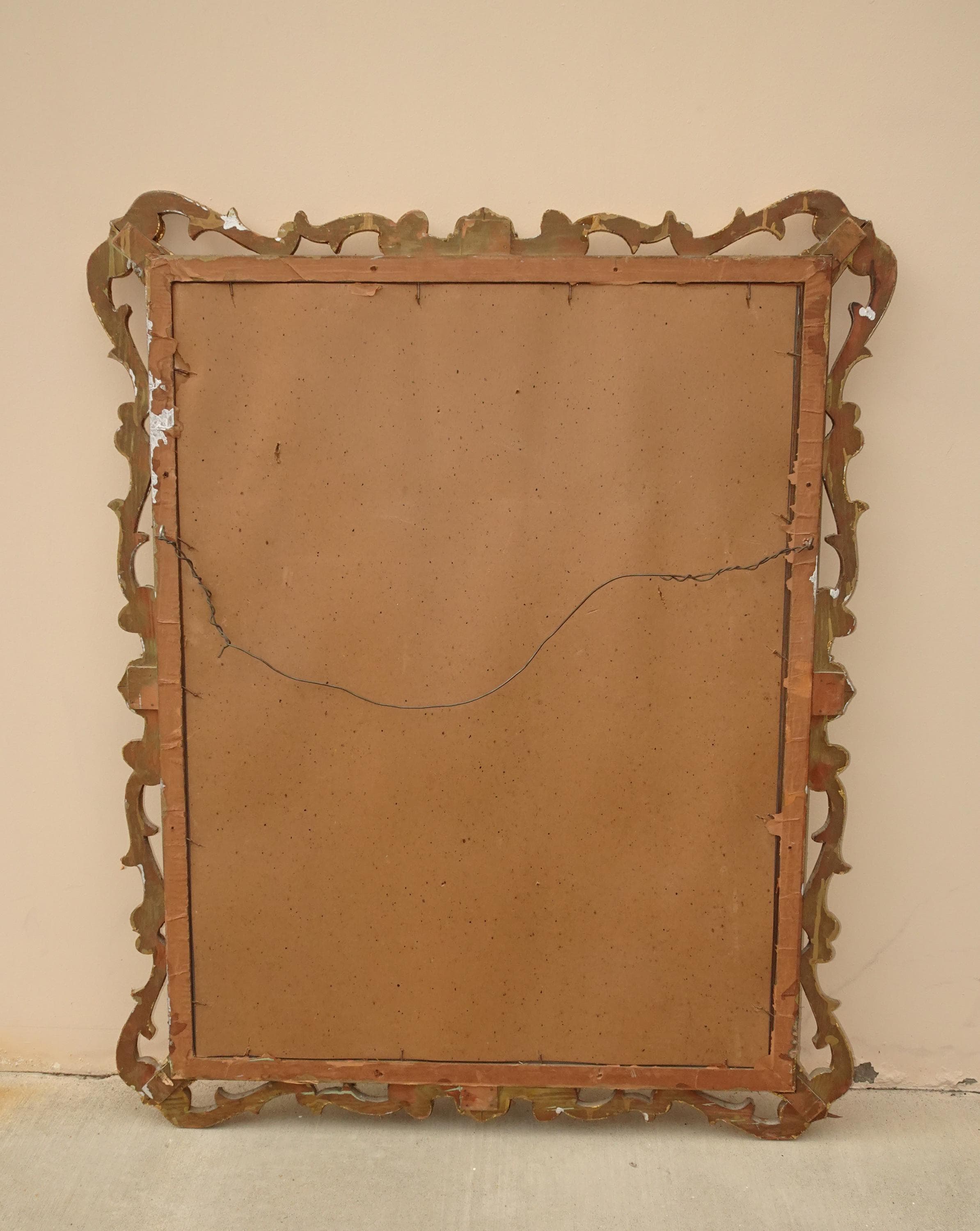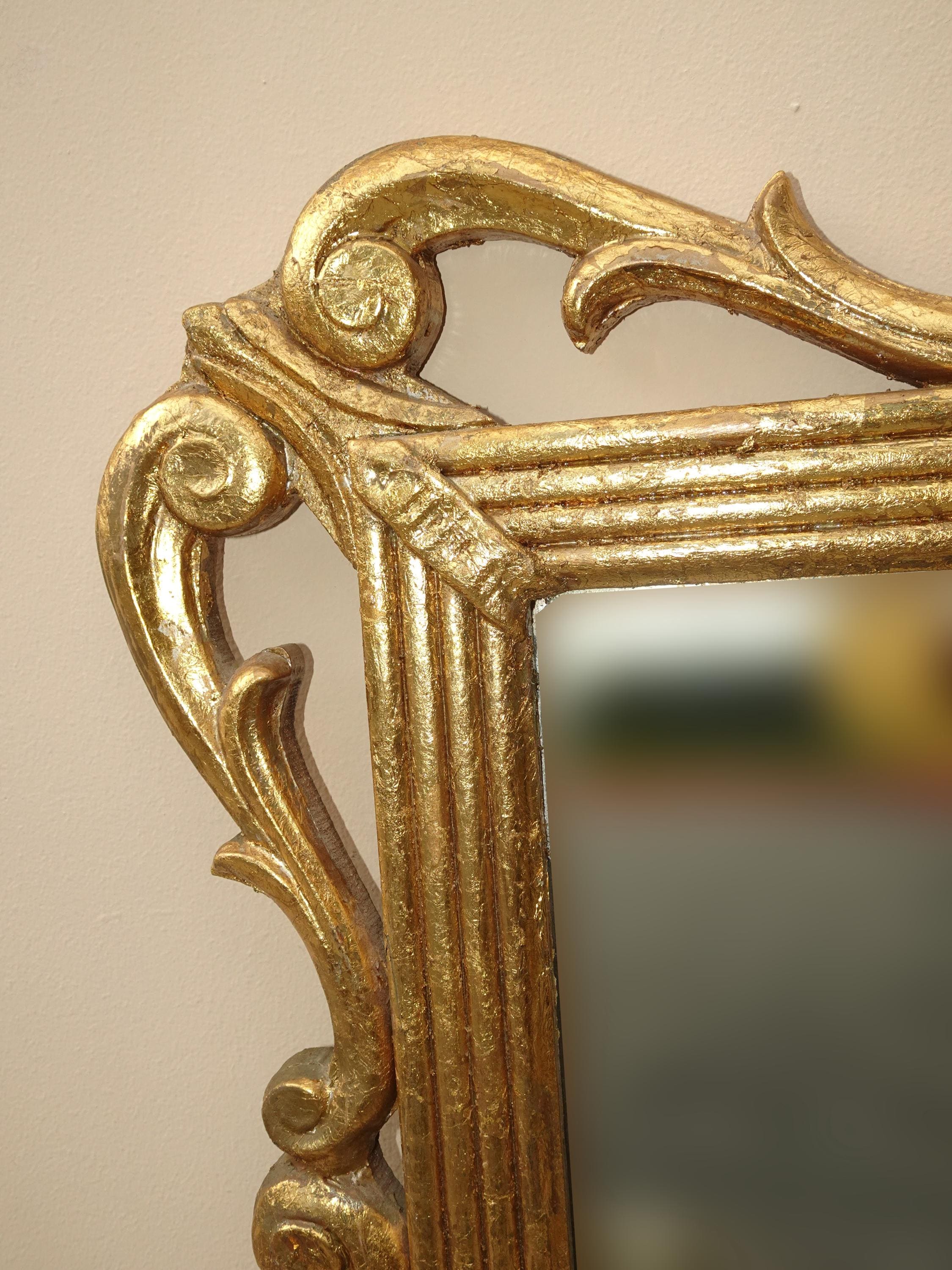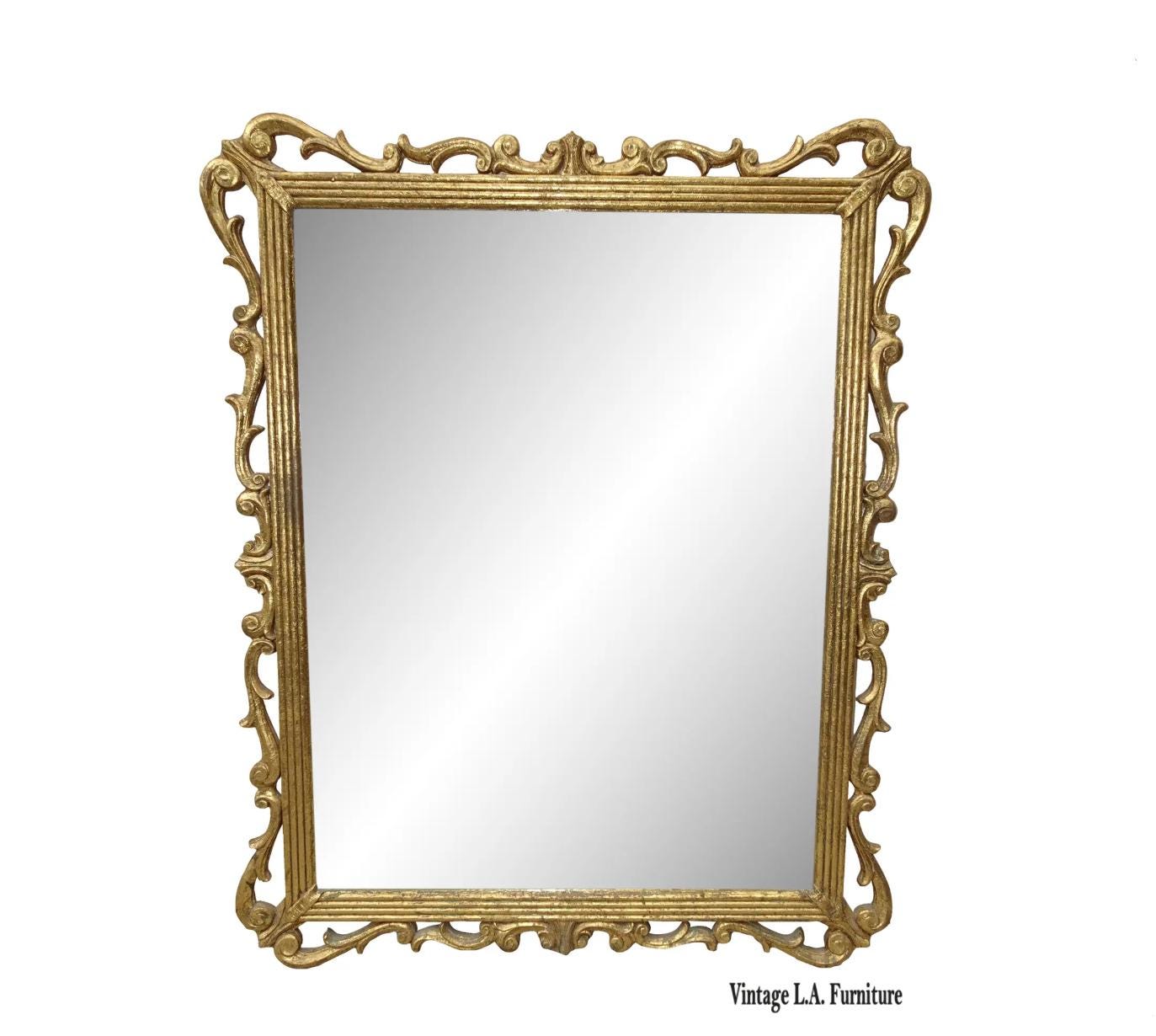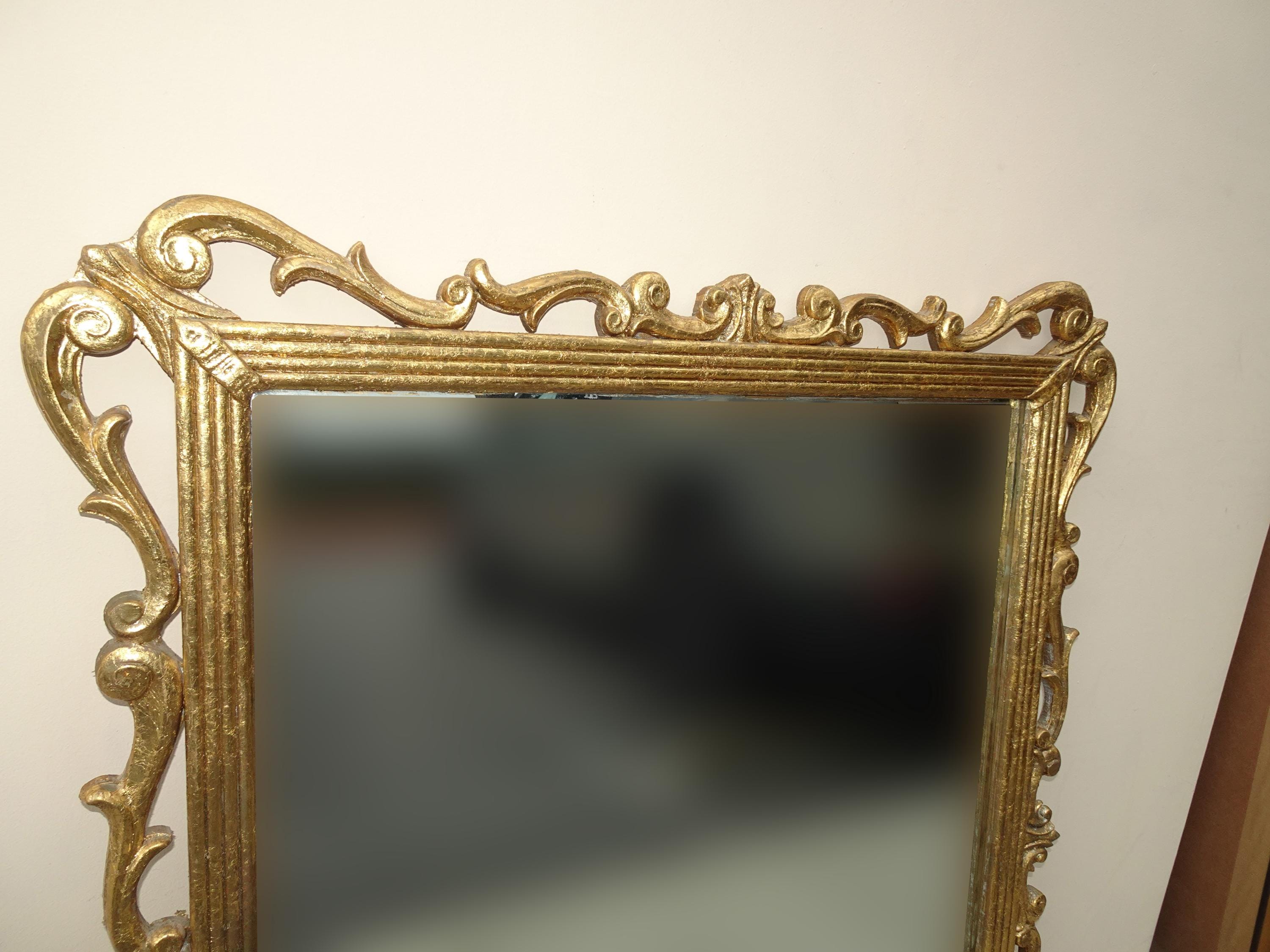 41" High Antique French Provincial Gold Gilt Wall Mantle Mirror w Scrolls