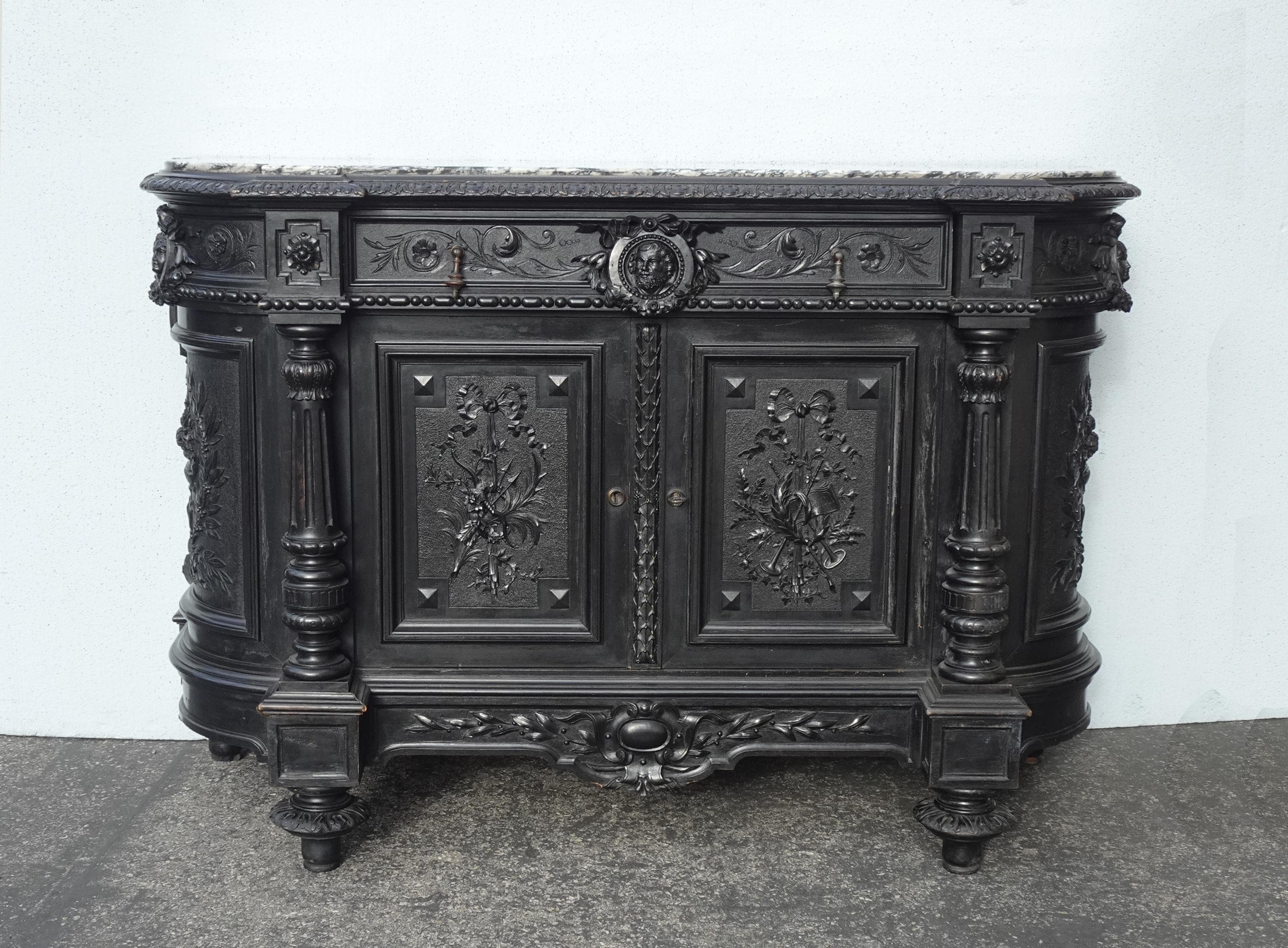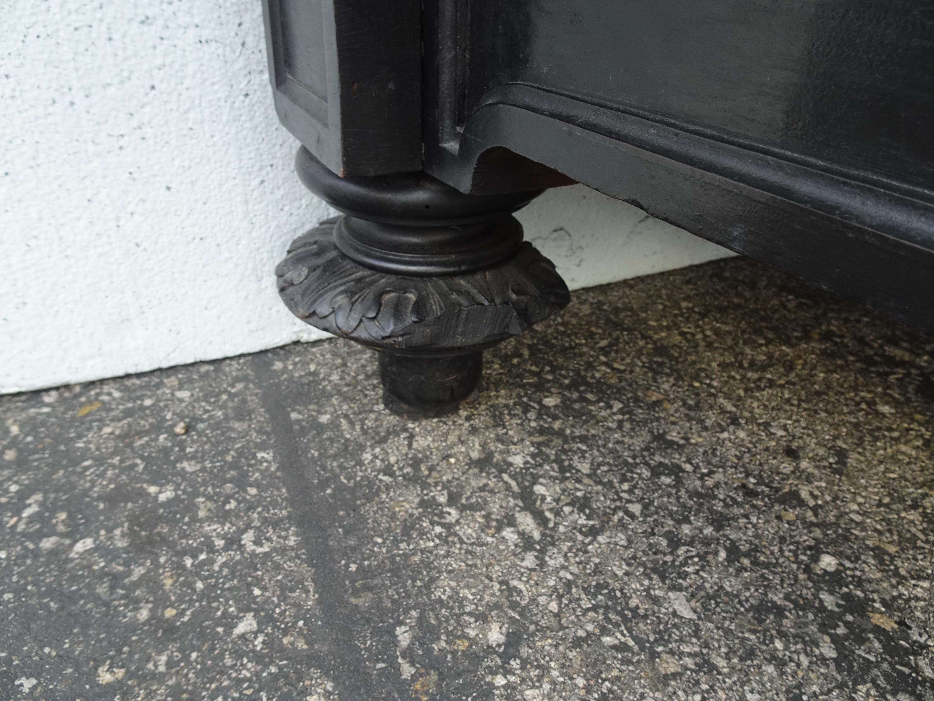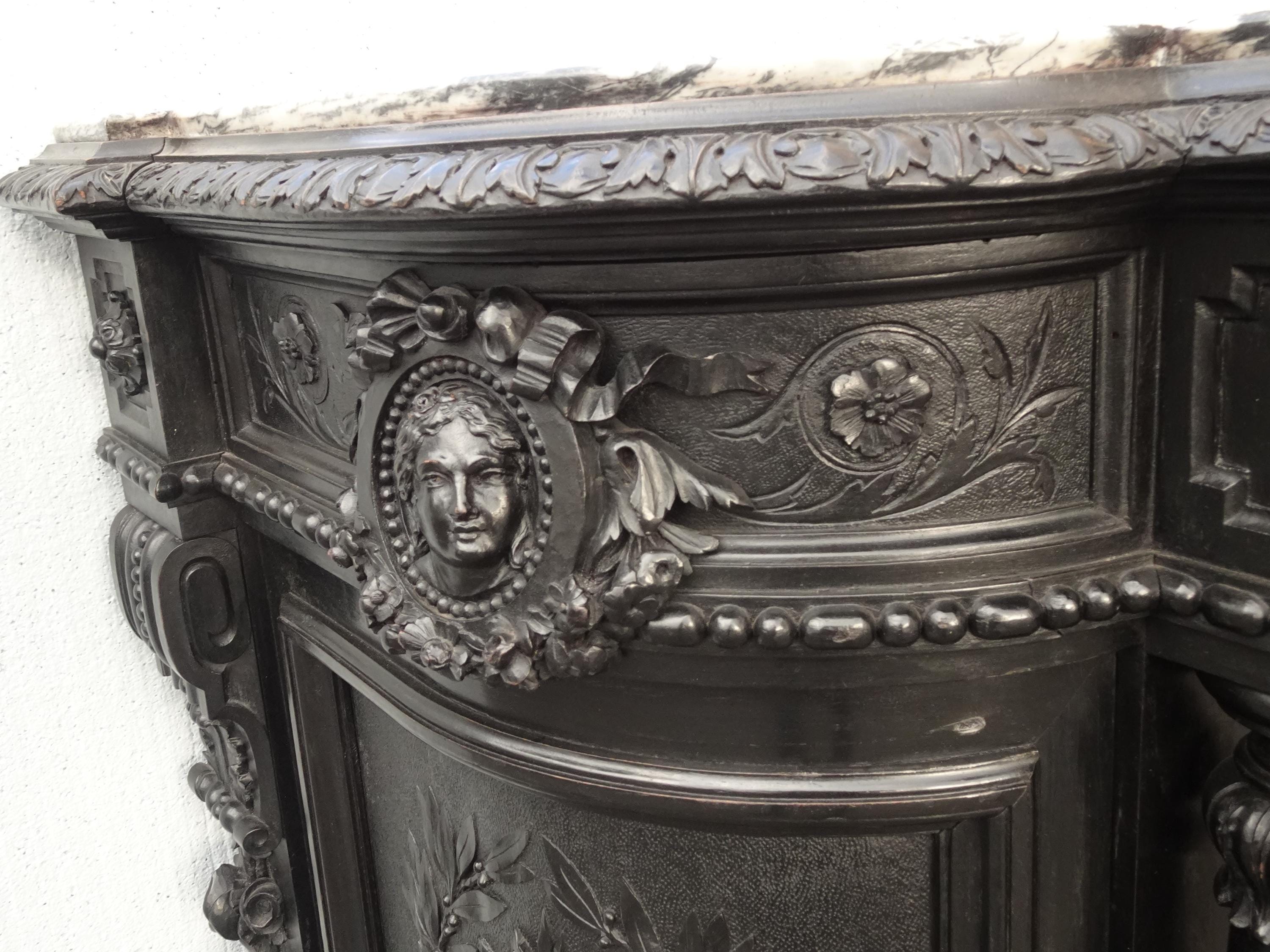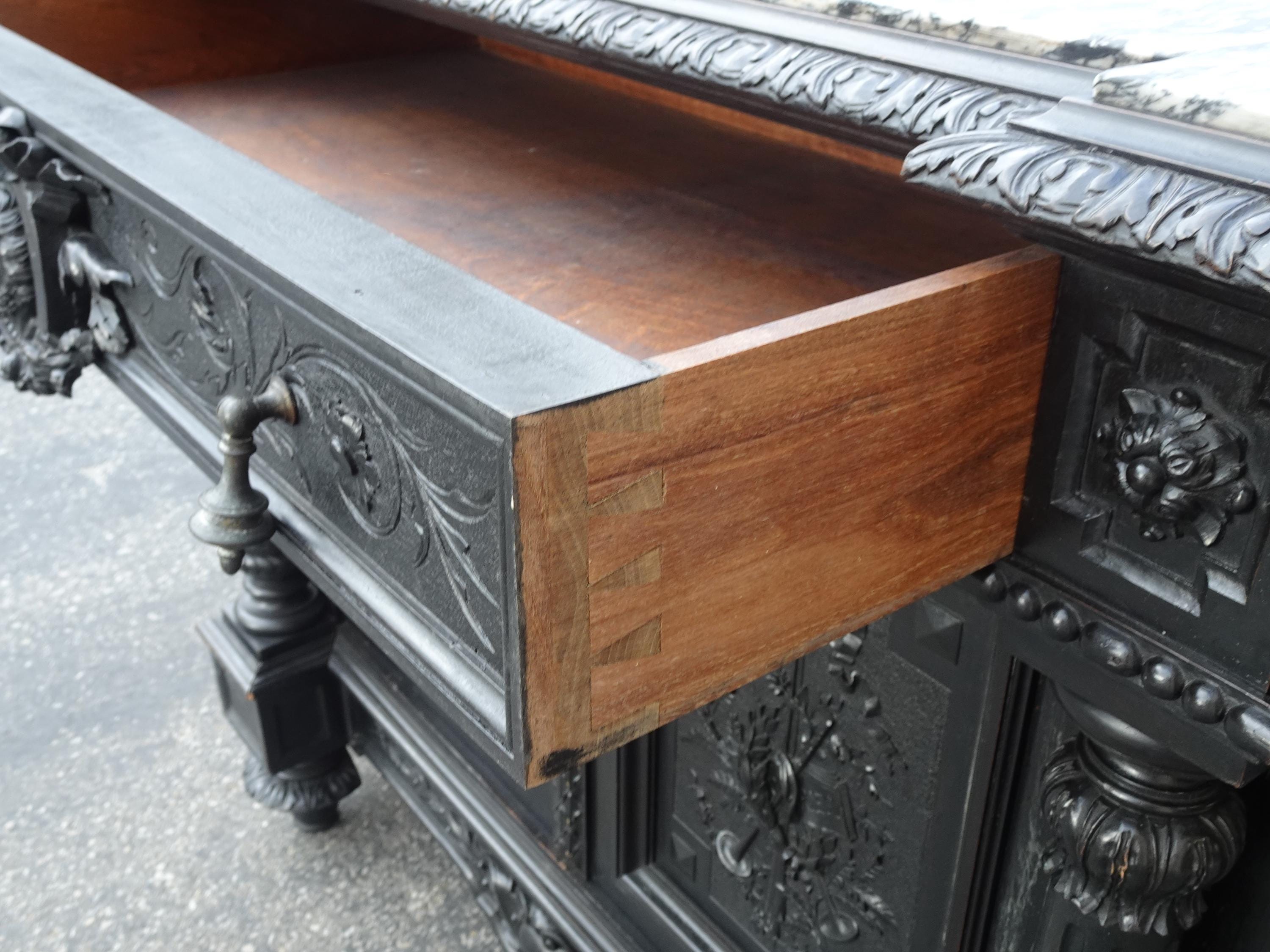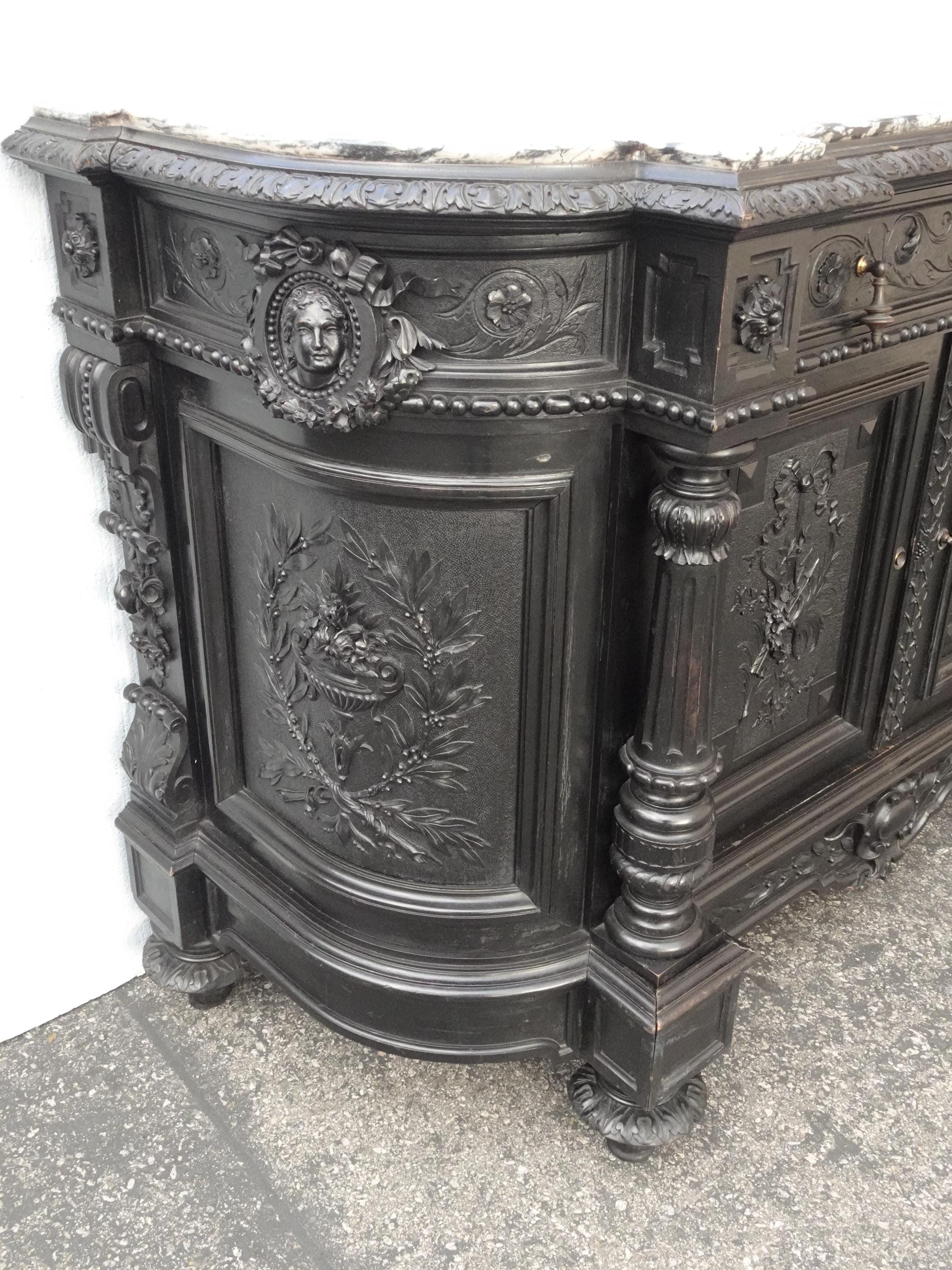 Antique French Renaissance Ebonized Baroque Marble Sideboard Buffet France 1of2