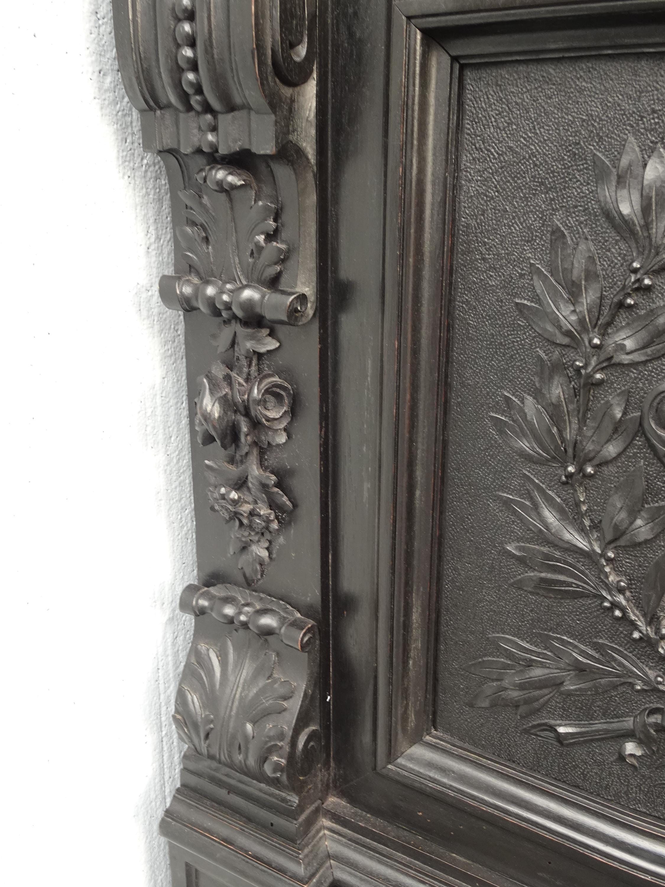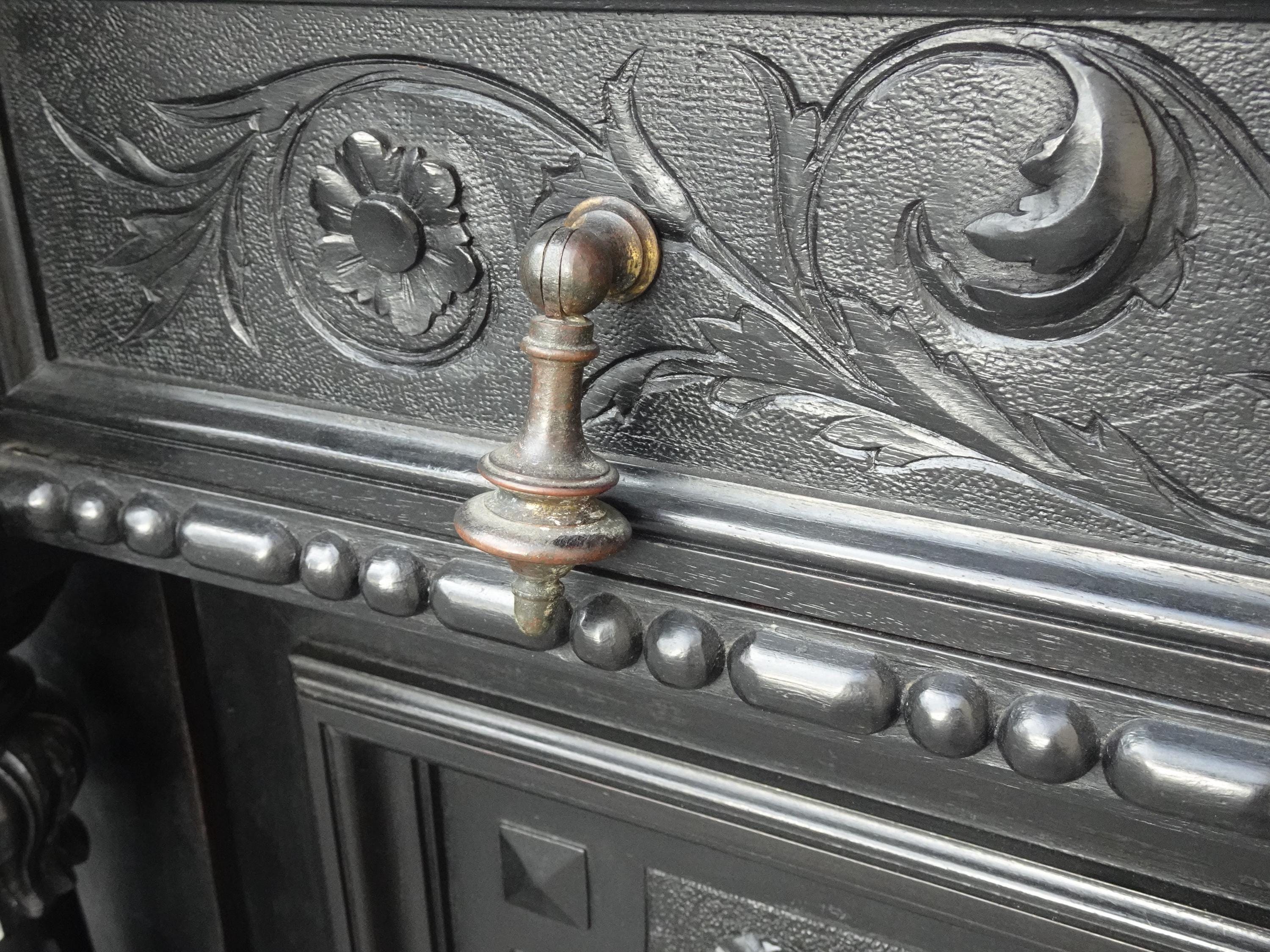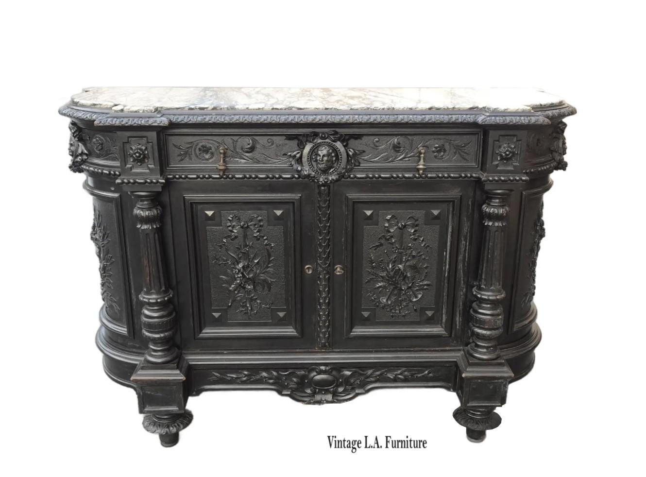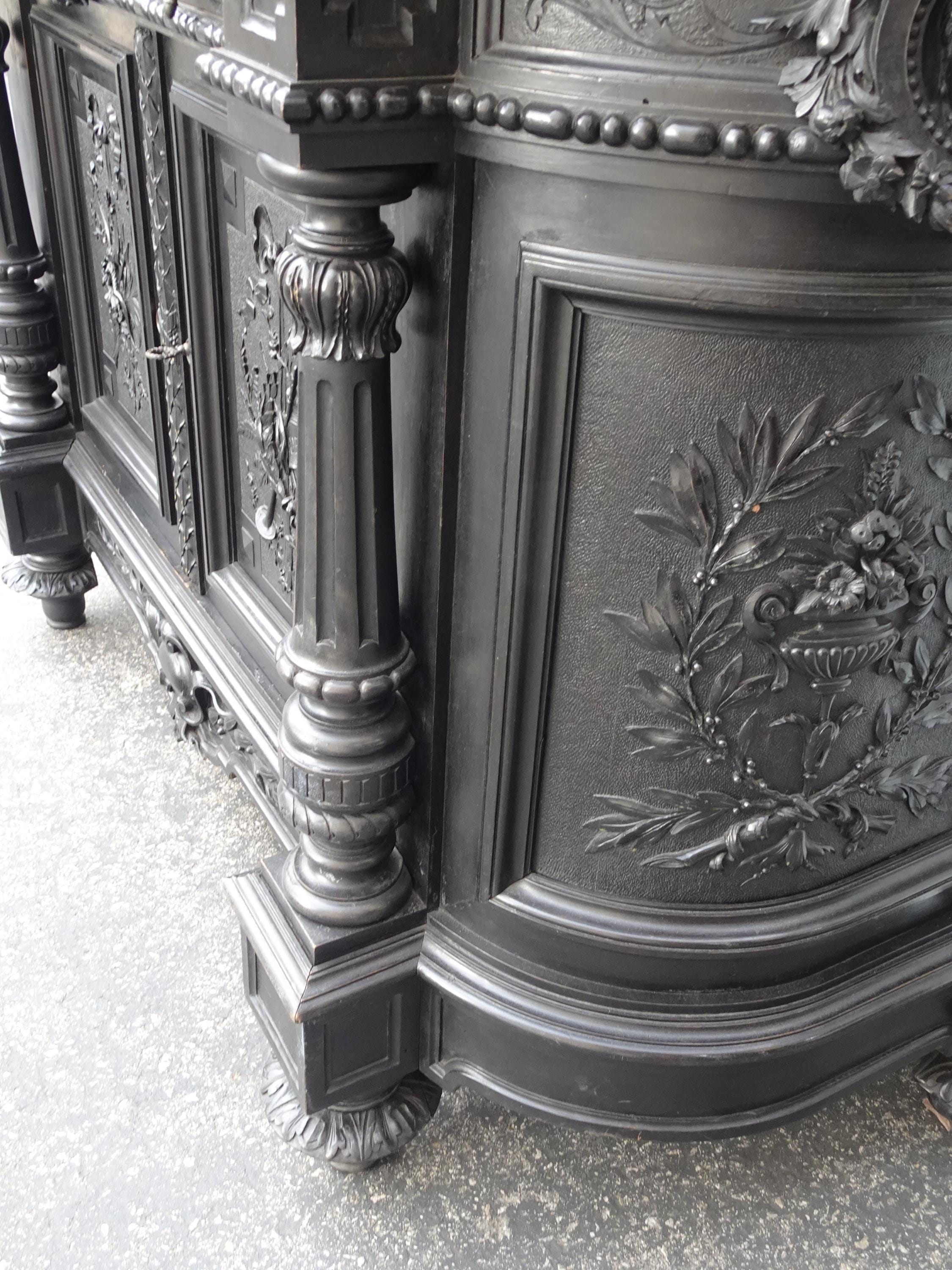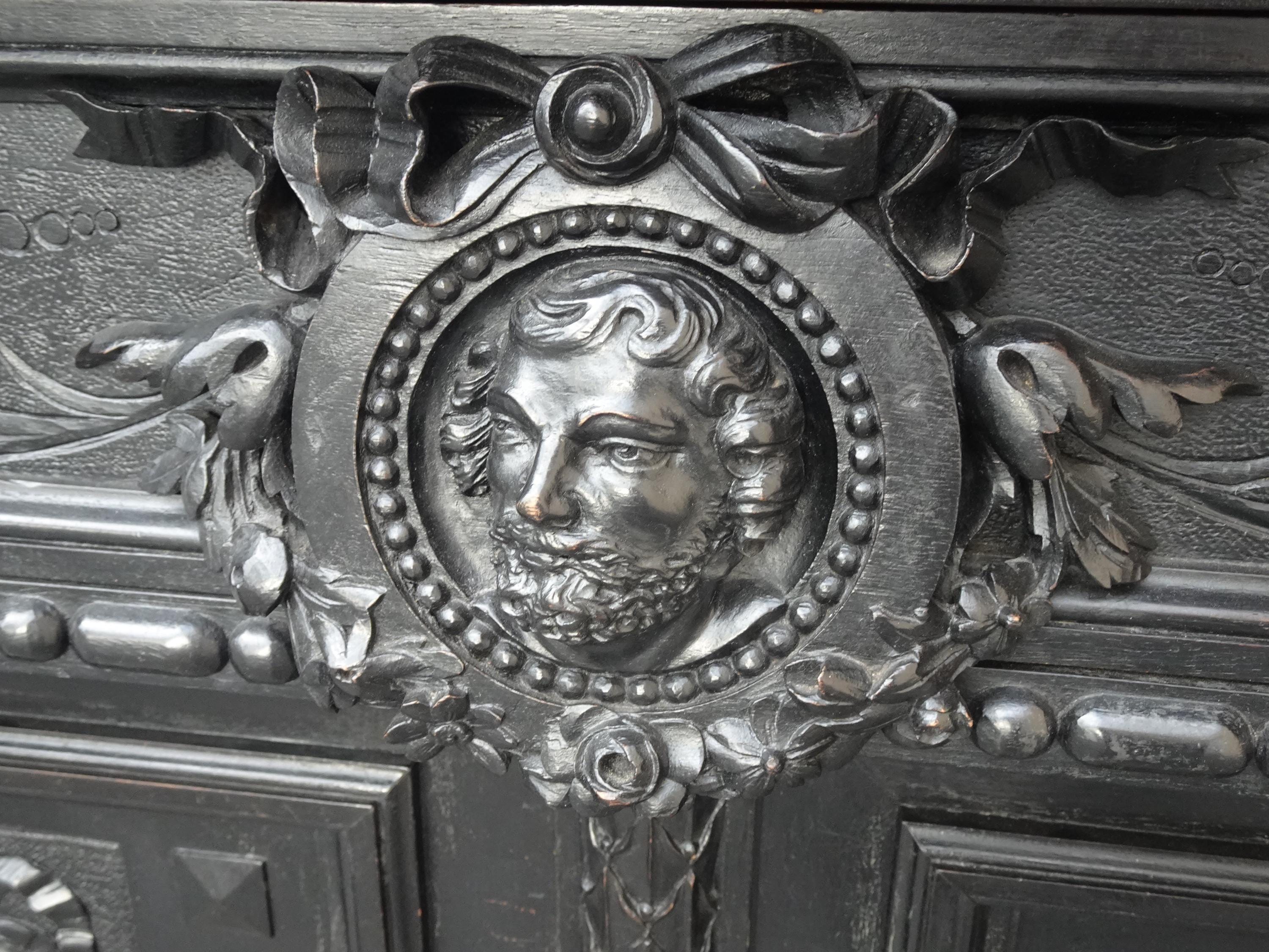 Antique French Renaissance Ebonized Baroque Marble Sideboard Buffet France 1of2